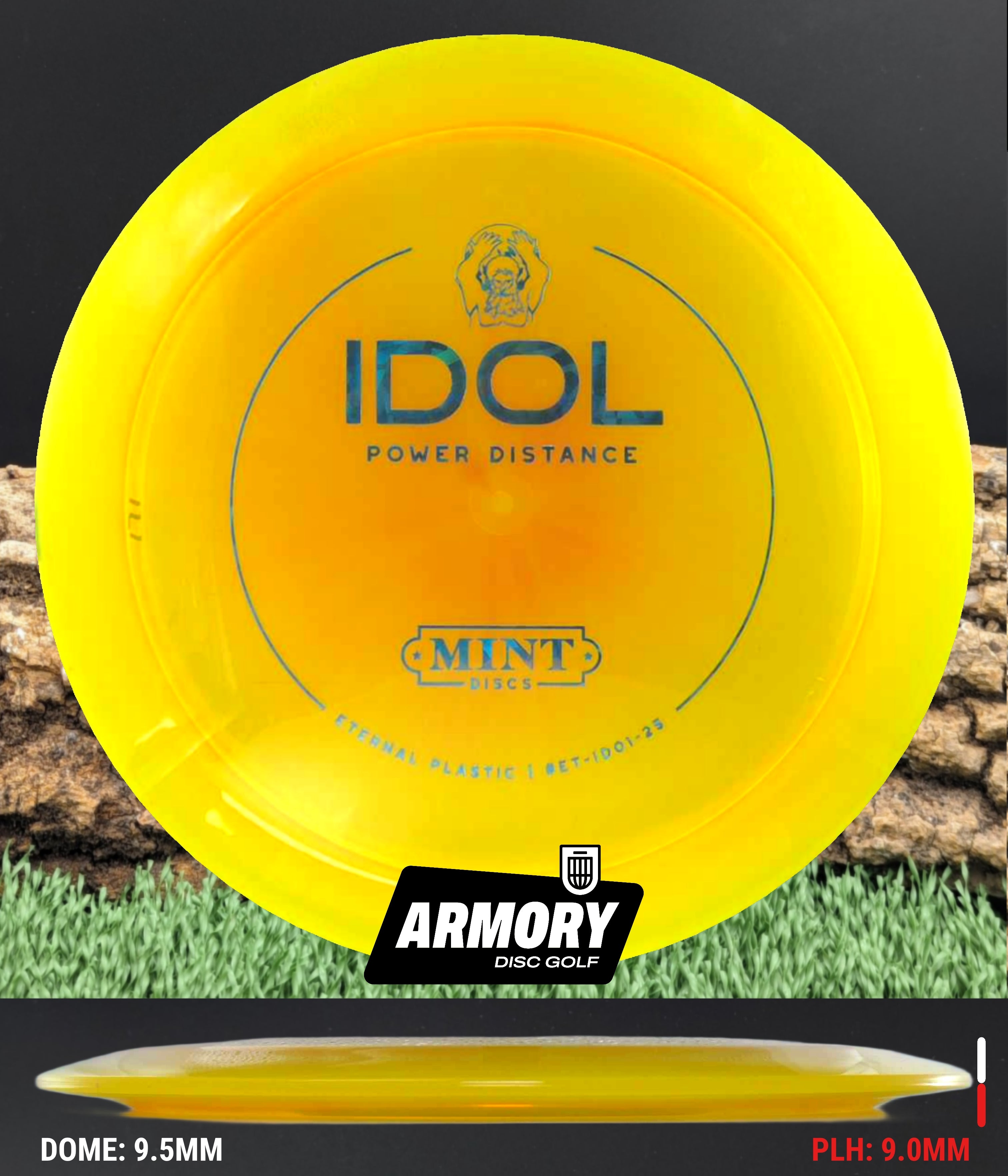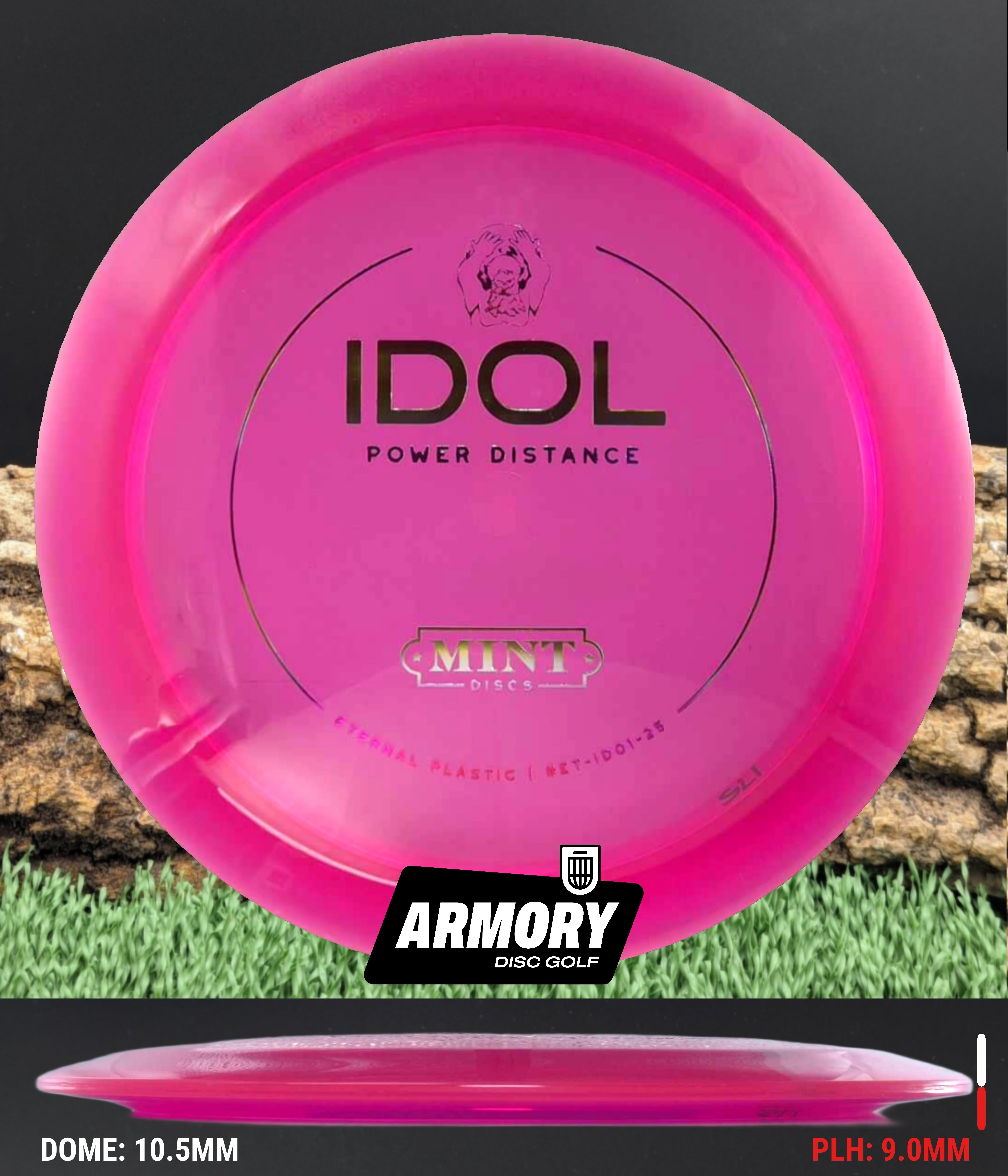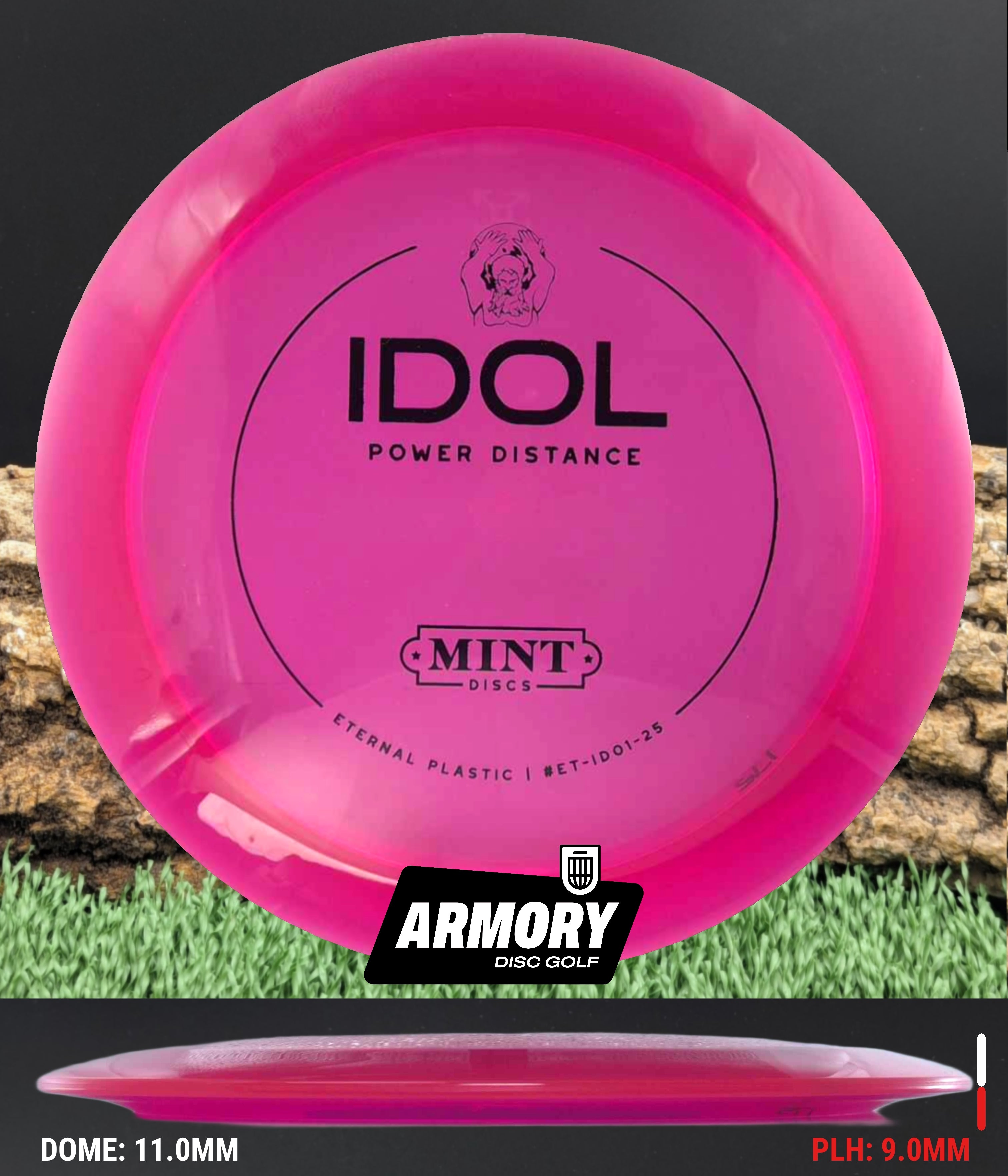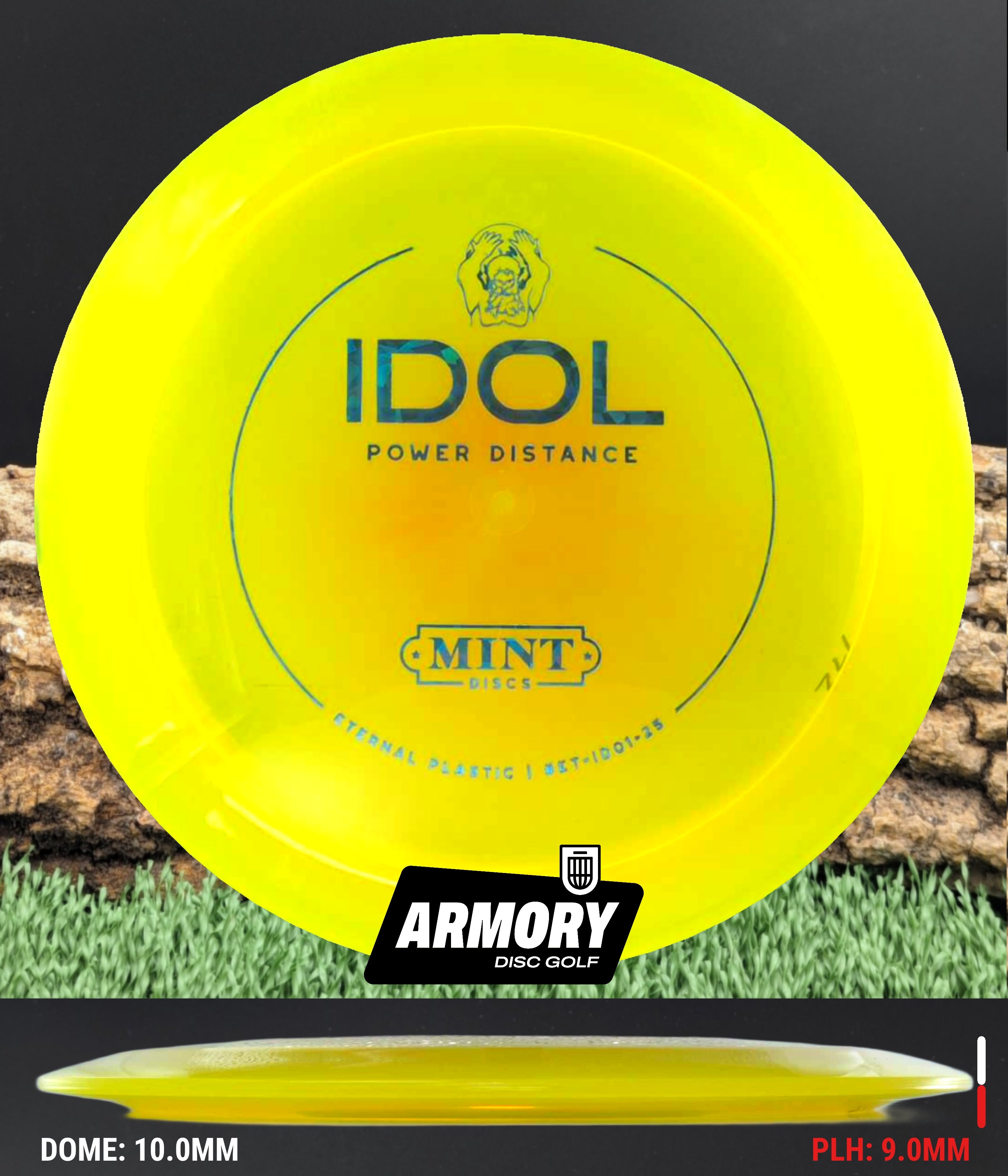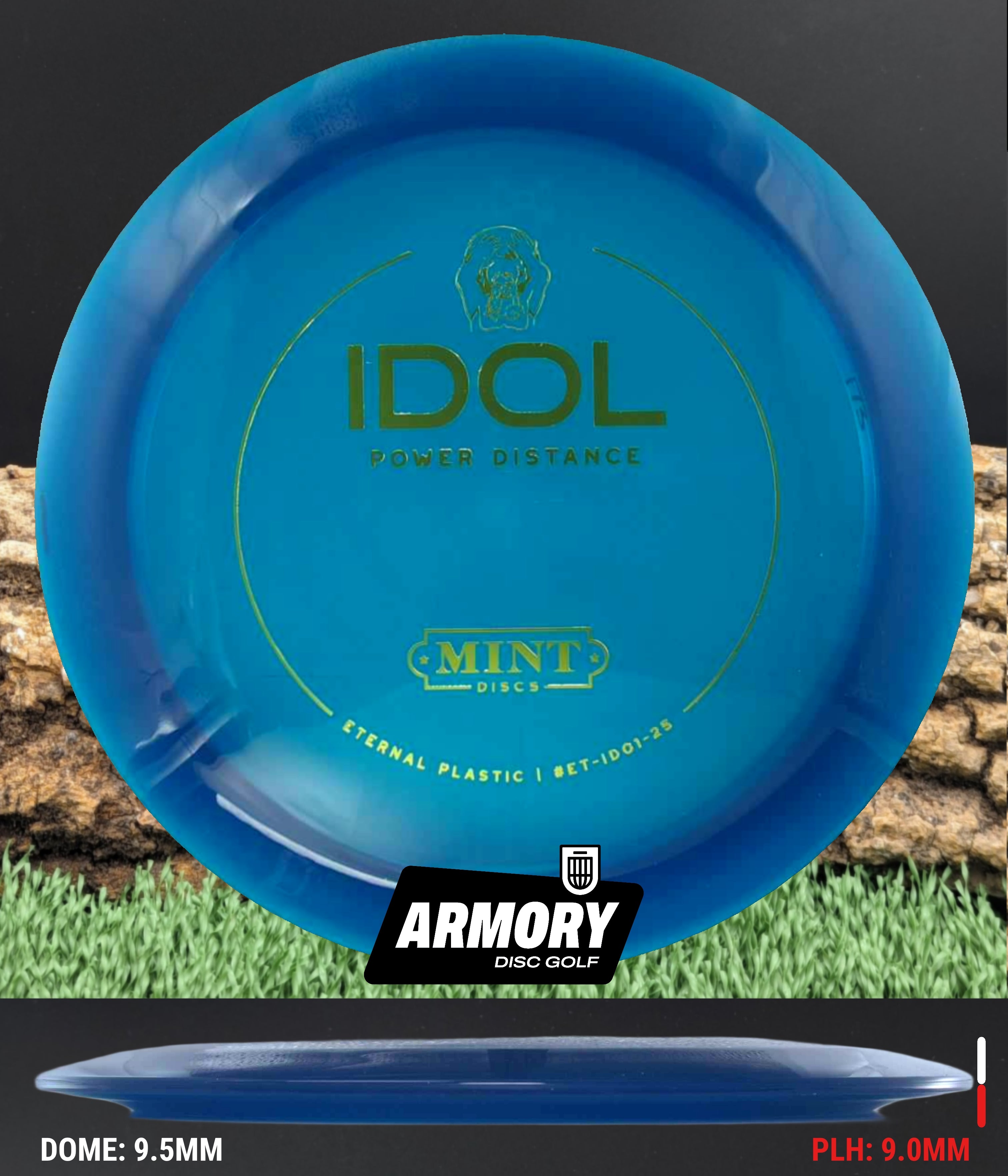 Armory Disc Golf believes the Idol is a modified take on the Prodigy Falcor. Both discs share nearly identical PDGA technical specs, and visually, they’re nearly twins. The difference? Neither Mint nor Prodigy has confirmed this, and we're also betting that there’s a degree of manufacturing differences that make them unique.