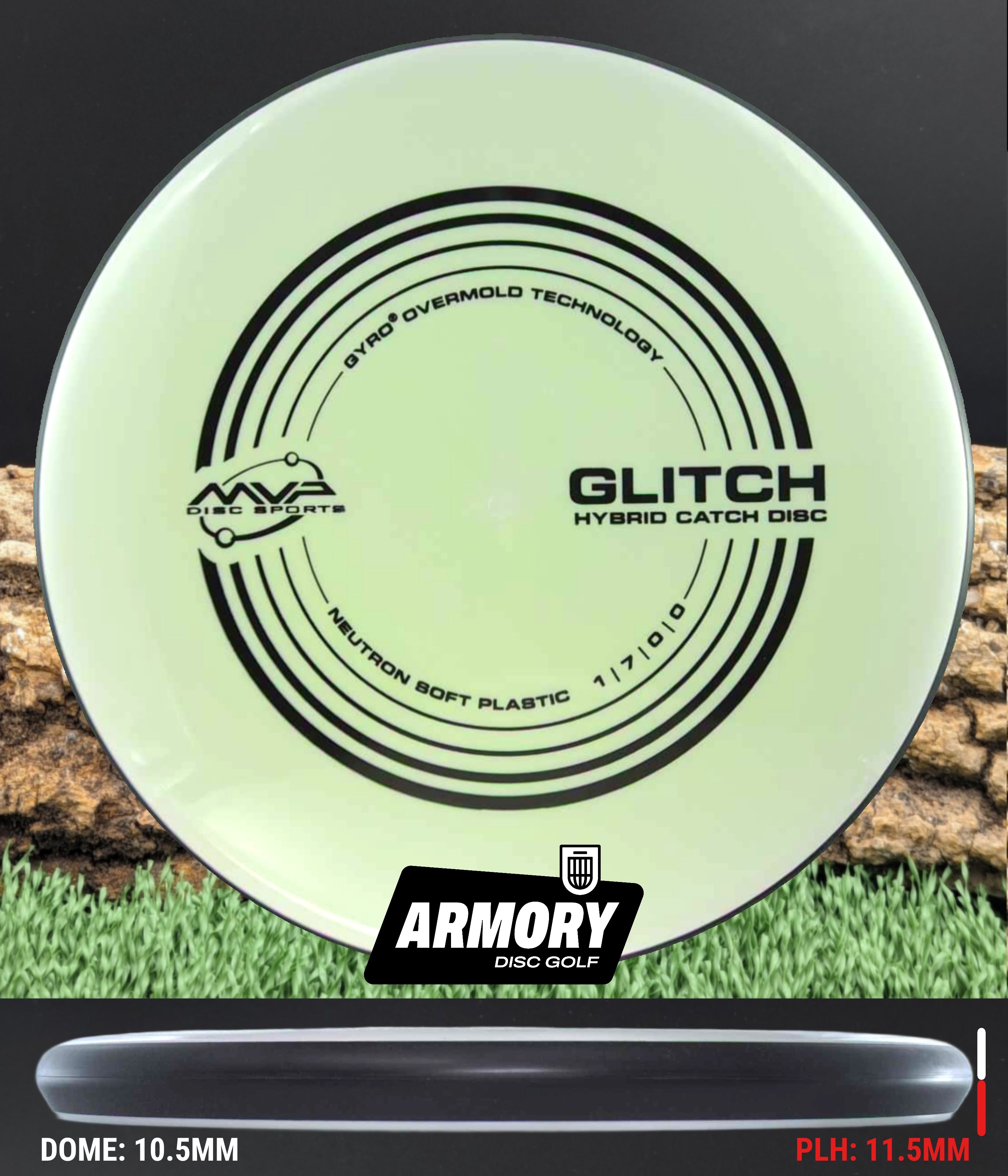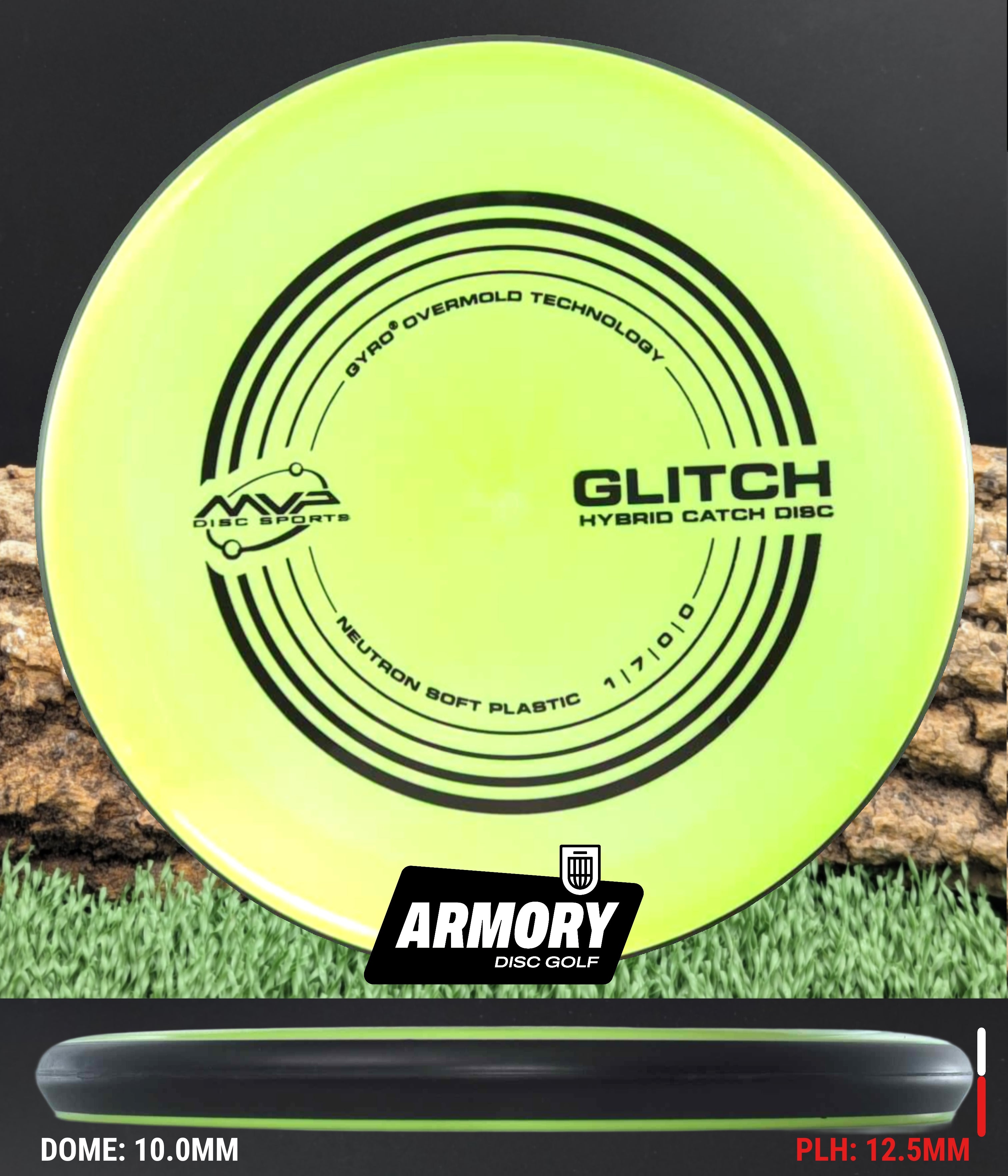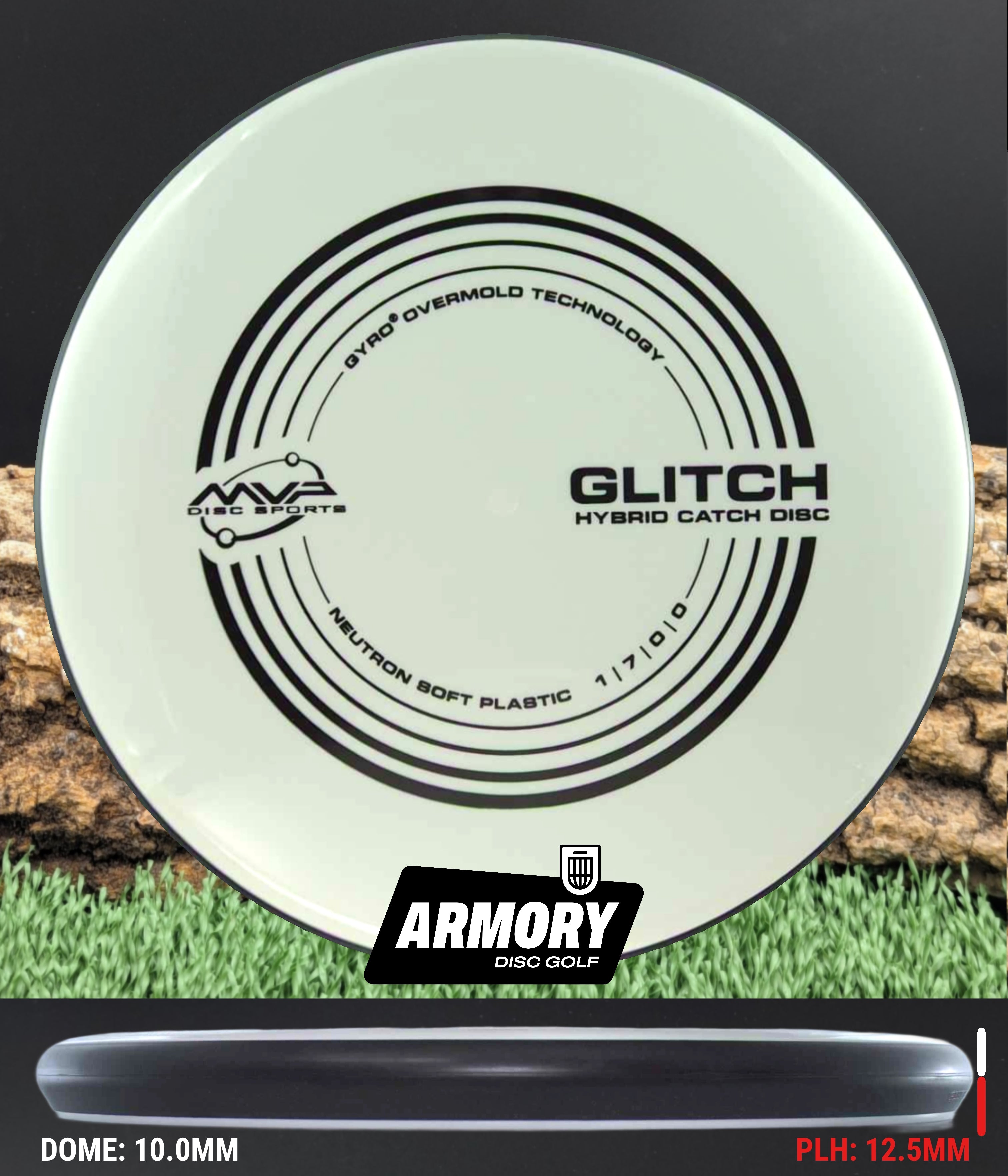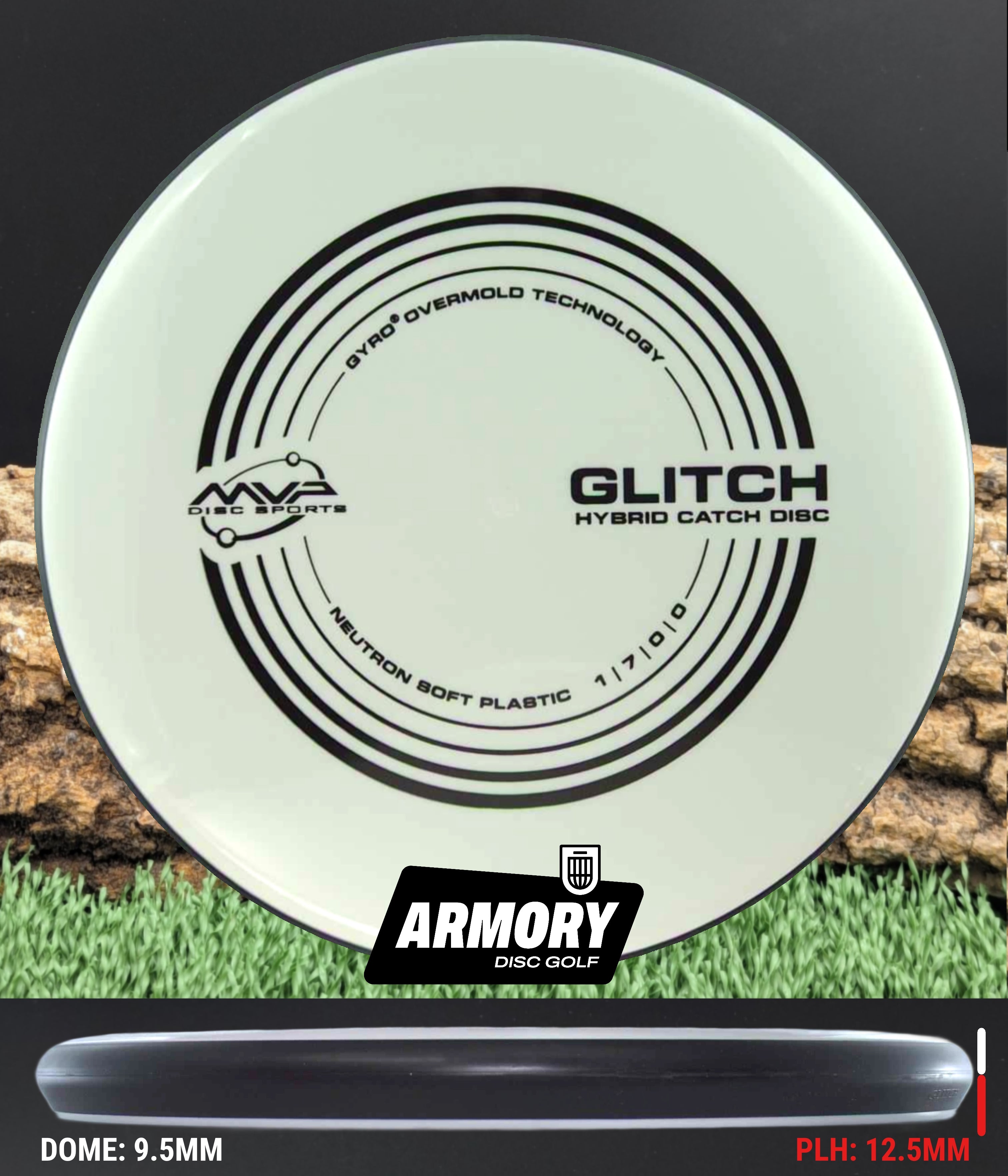 The Neutron Glitch is MVP’s glide-first hybrid: a PDGA-legal, putter-diameter disc that doubles as a fun catch disc and a seriously useful approach tool. With massive glide (7) and a neutral, sit-where-it-lands finish, the Glitch is effortless to throw and easy to control. In Neutron plastic it gains premium durability and a clean, confident feel, making it a great all-weather option for both casual play and round-saving approaches.