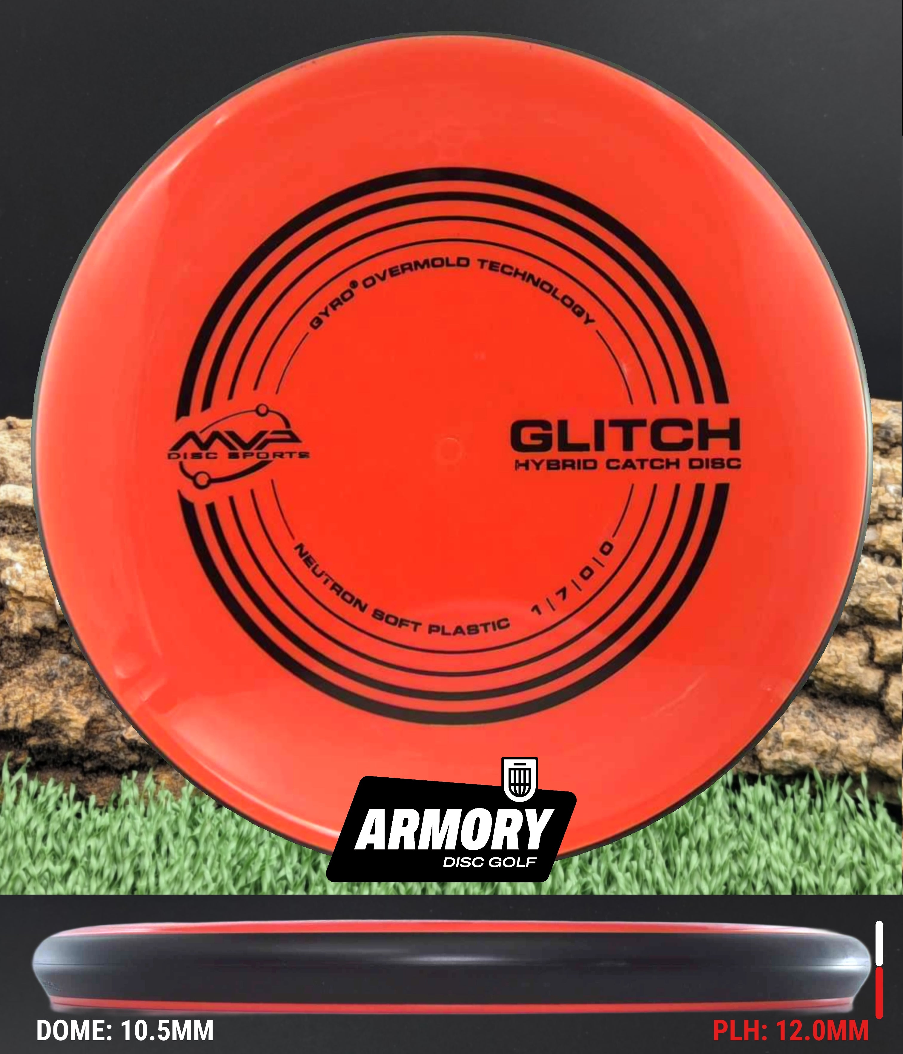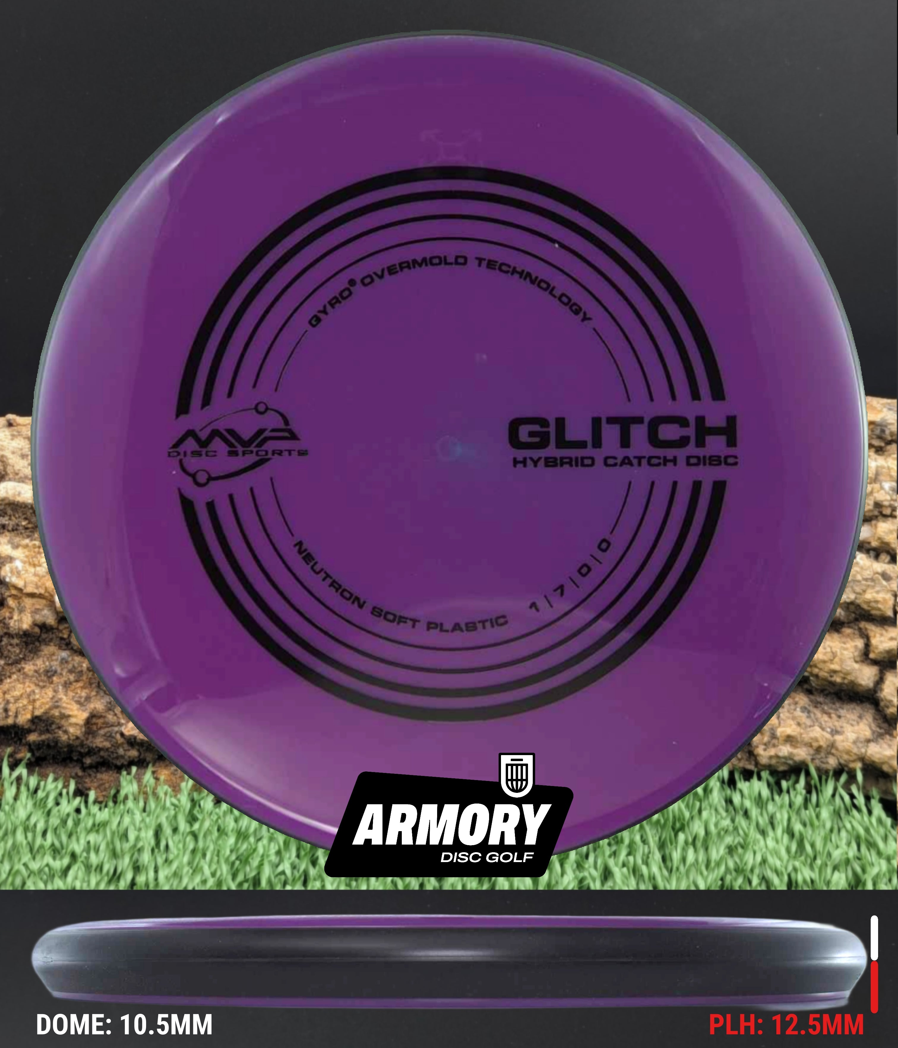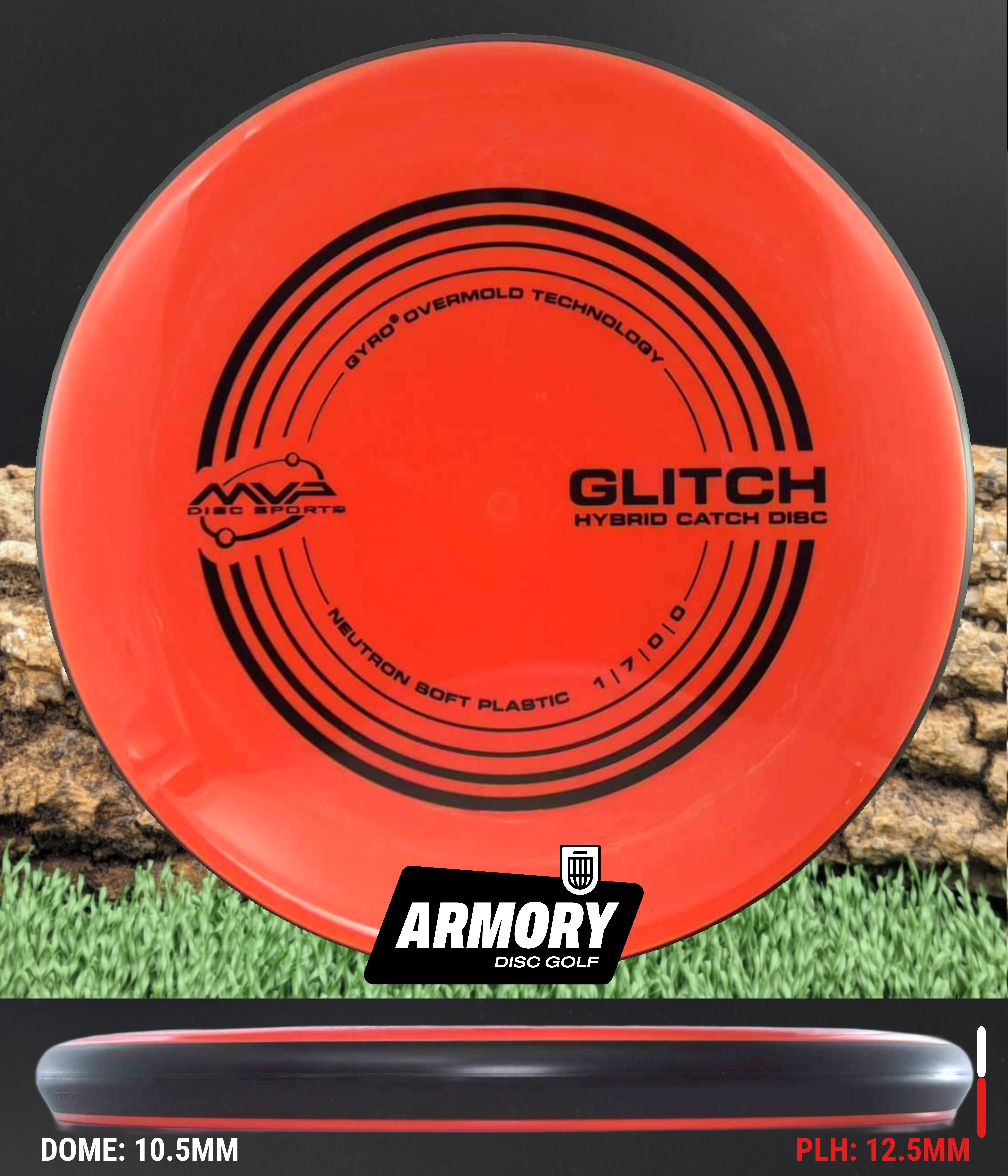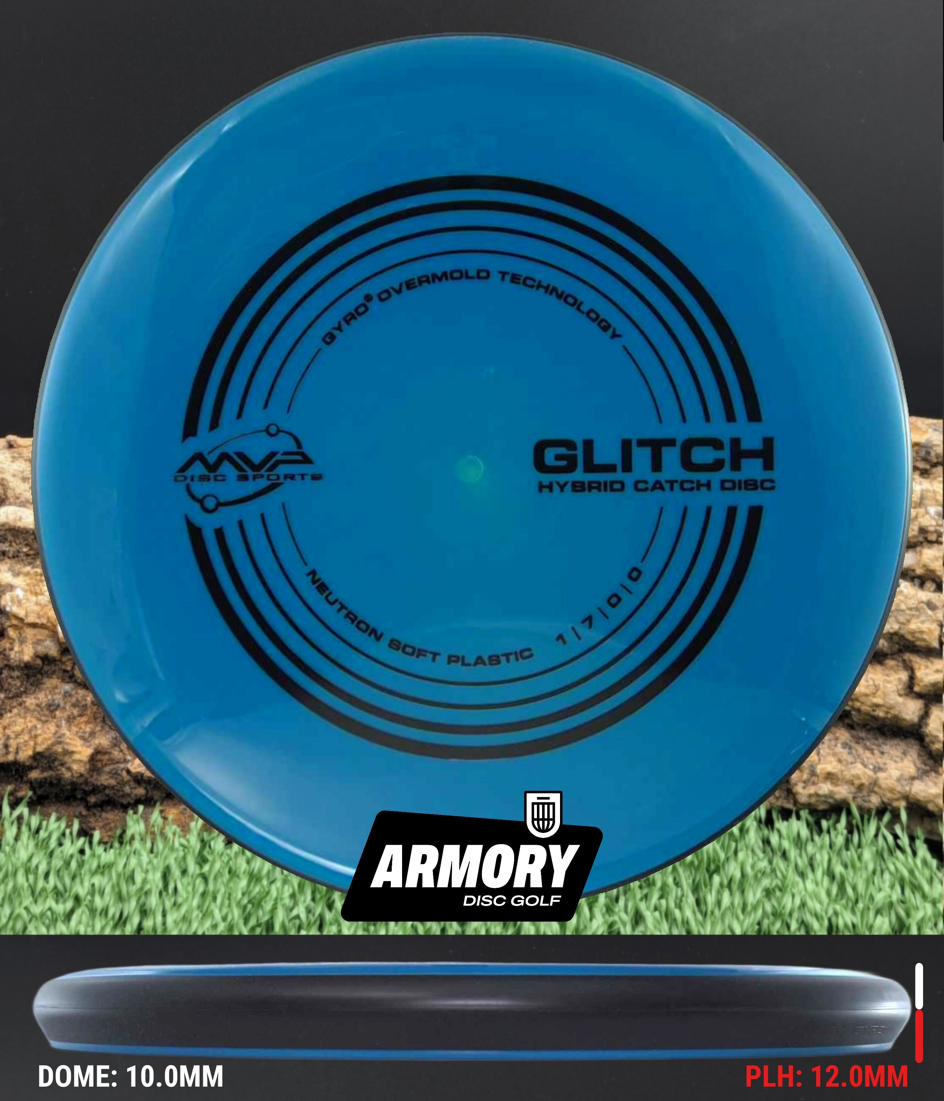 The Neutron Glitch is MVP’s glide-first hybrid: a PDGA-legal, putter-diameter disc that doubles as a fun catch disc and a seriously useful approach tool. With massive glide (7) and a neutral, sit-where-it-lands finish, the Glitch is effortless to throw and easy to control. In Neutron plastic it gains premium durability and a clean, confident feel, making it a great all-weather option for both casual play and round-saving approaches.
