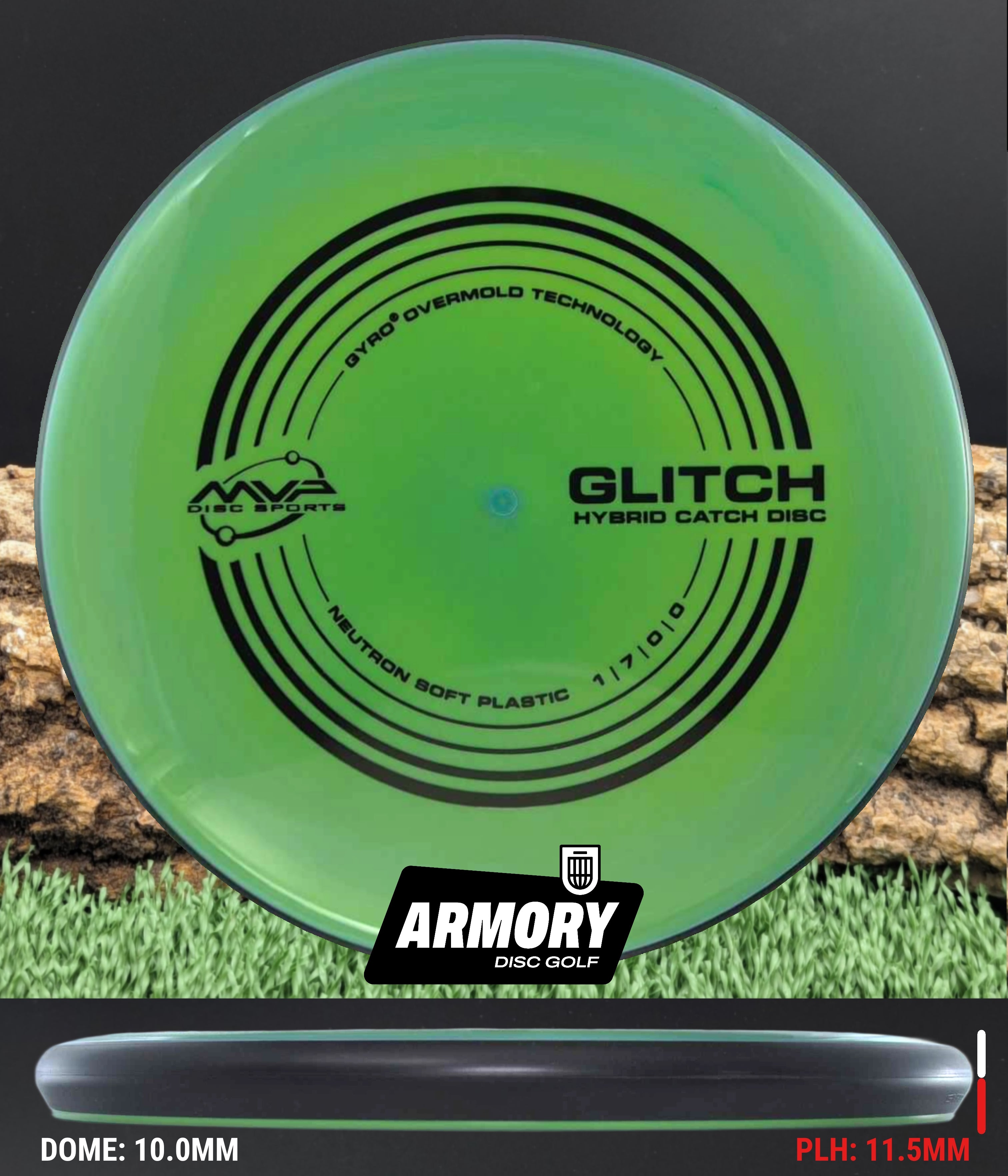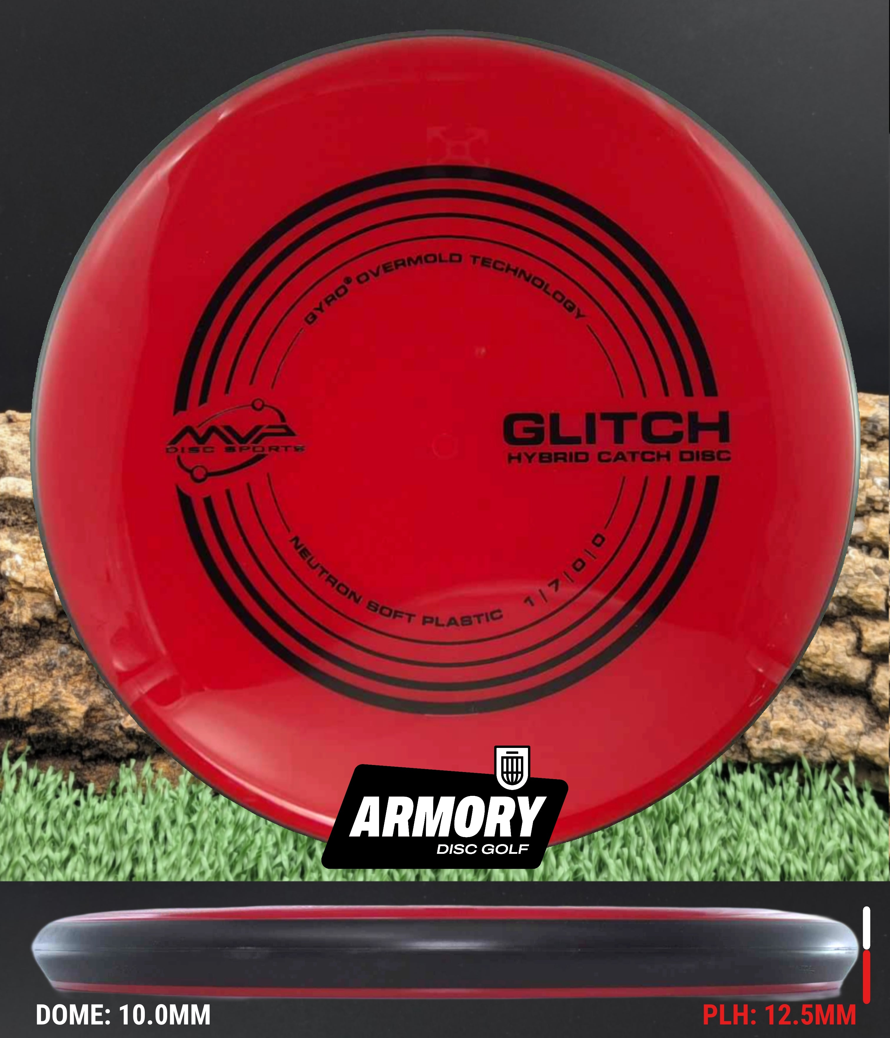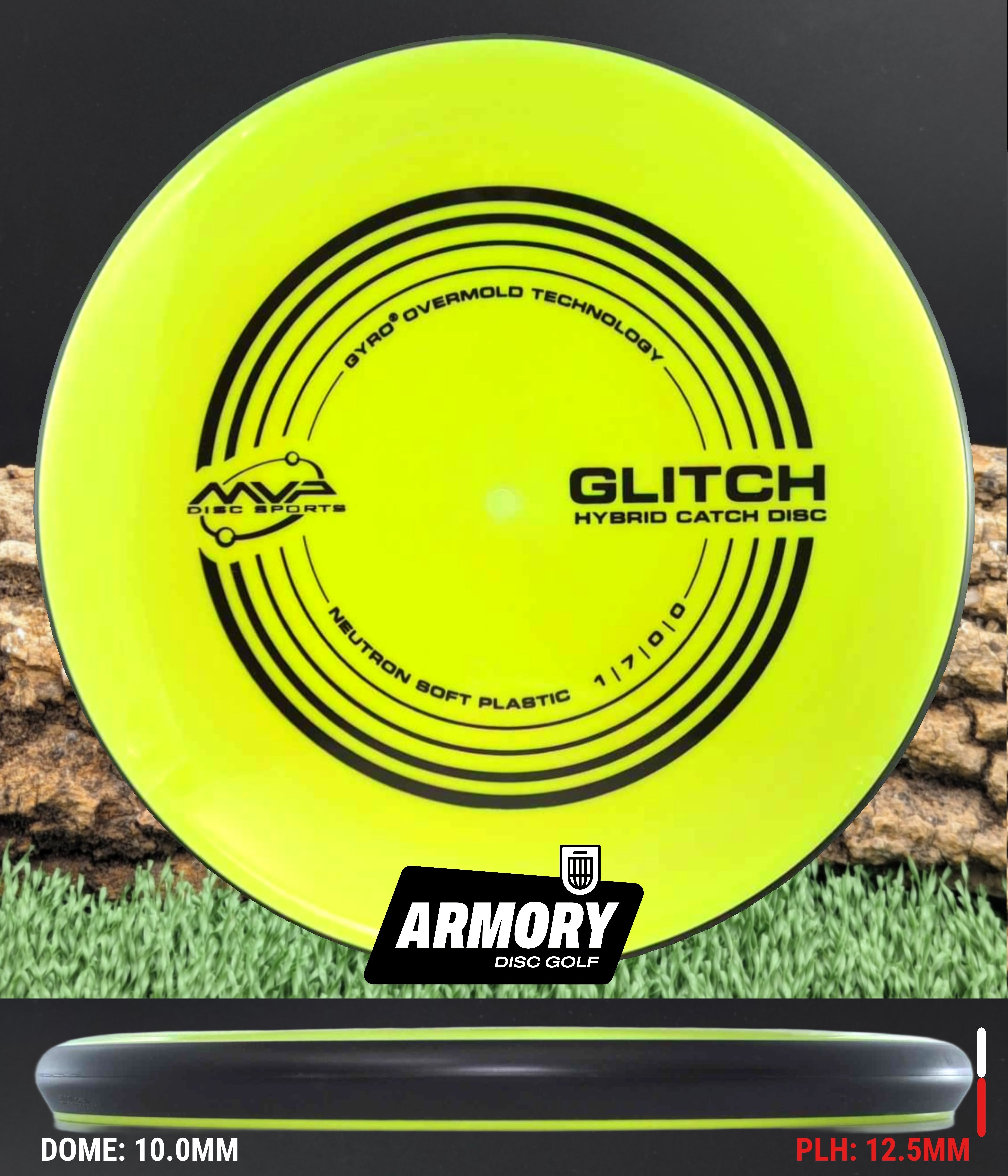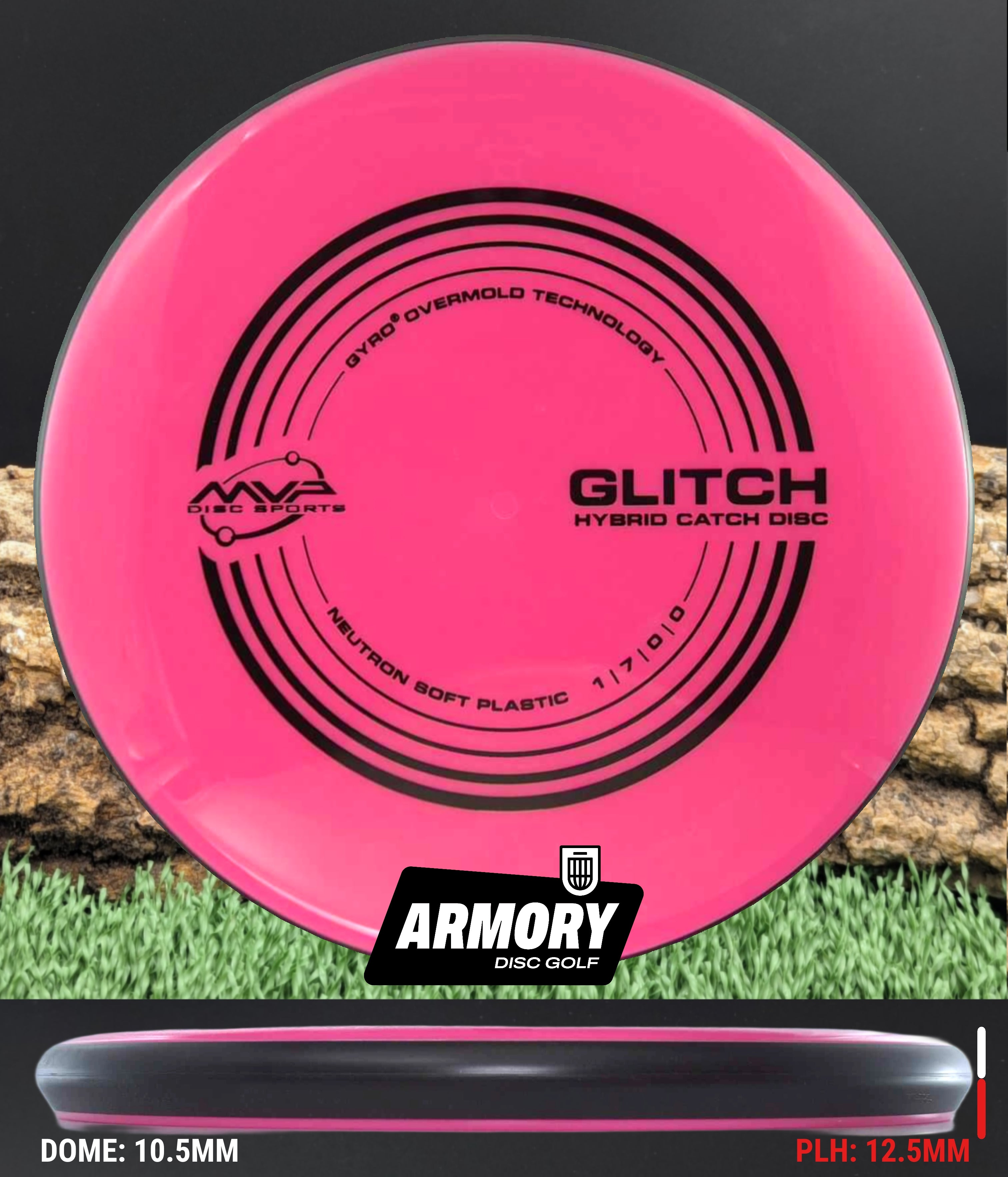 The Neutron Glitch is MVP’s glide-first hybrid: a PDGA-legal, putter-diameter disc that doubles as a fun catch disc and a seriously useful approach tool. With massive glide (7) and a neutral, sit-where-it-lands finish, the Glitch is effortless to throw and easy to control. In Neutron plastic it gains premium durability and a clean, confident feel, making it a great all-weather option for both casual play and round-saving approaches.