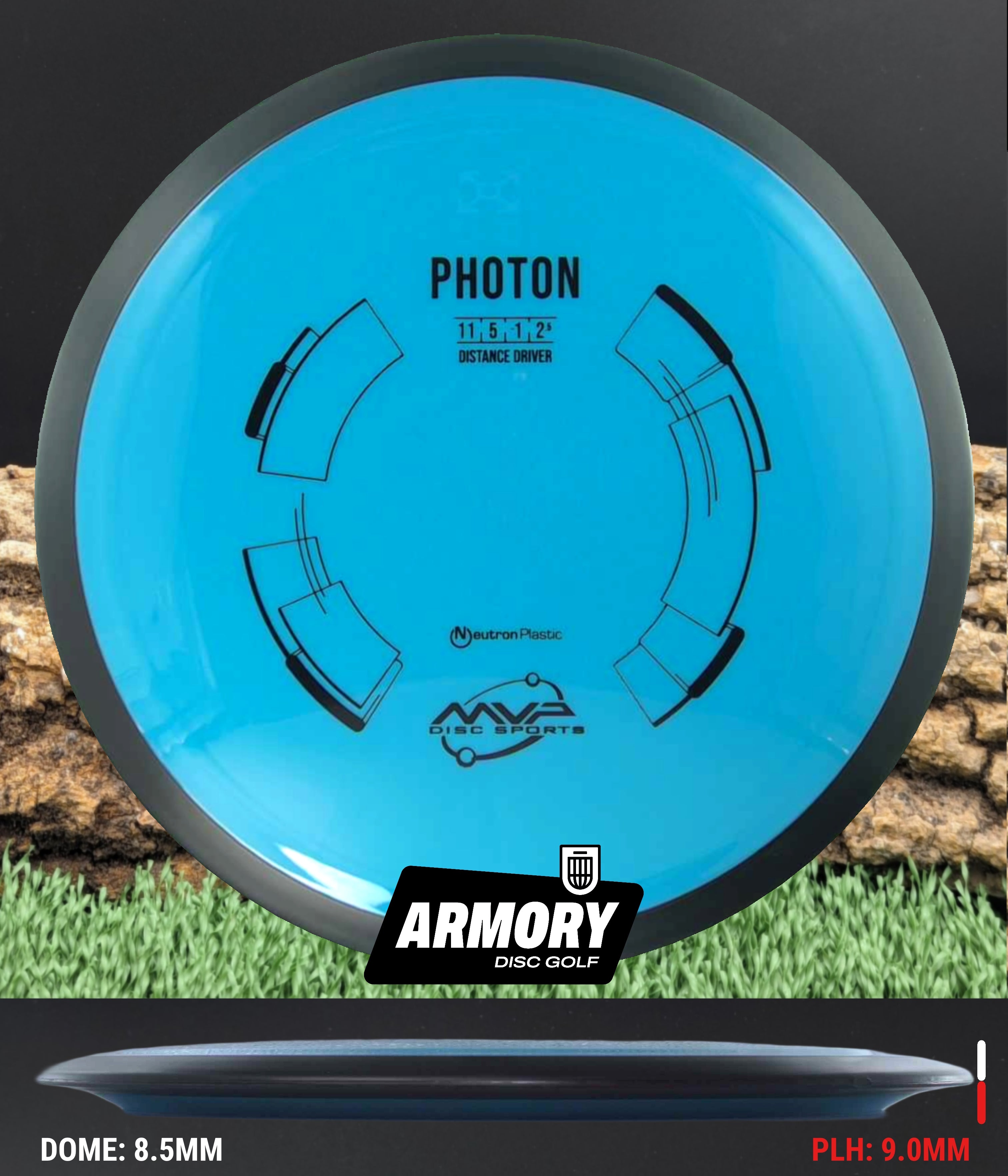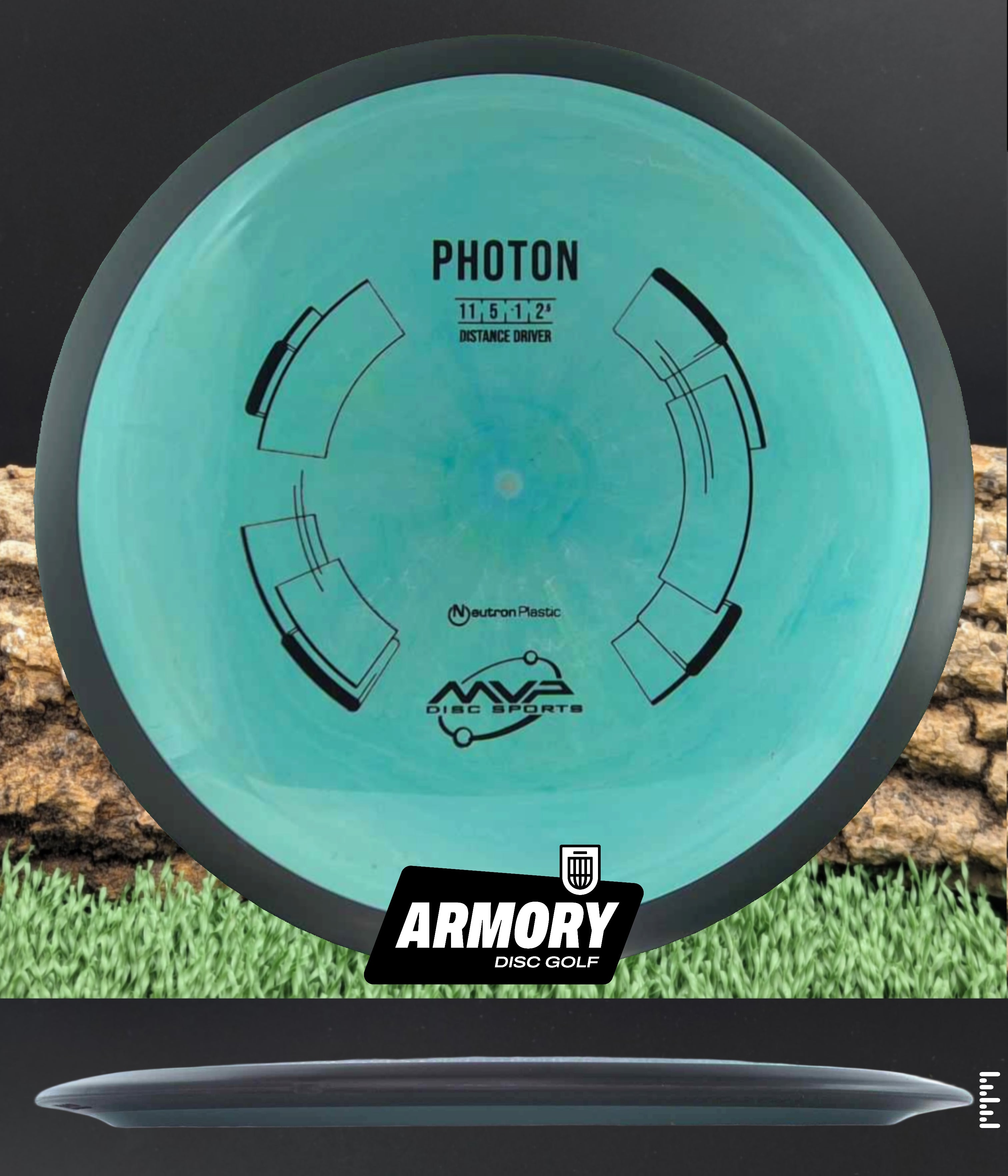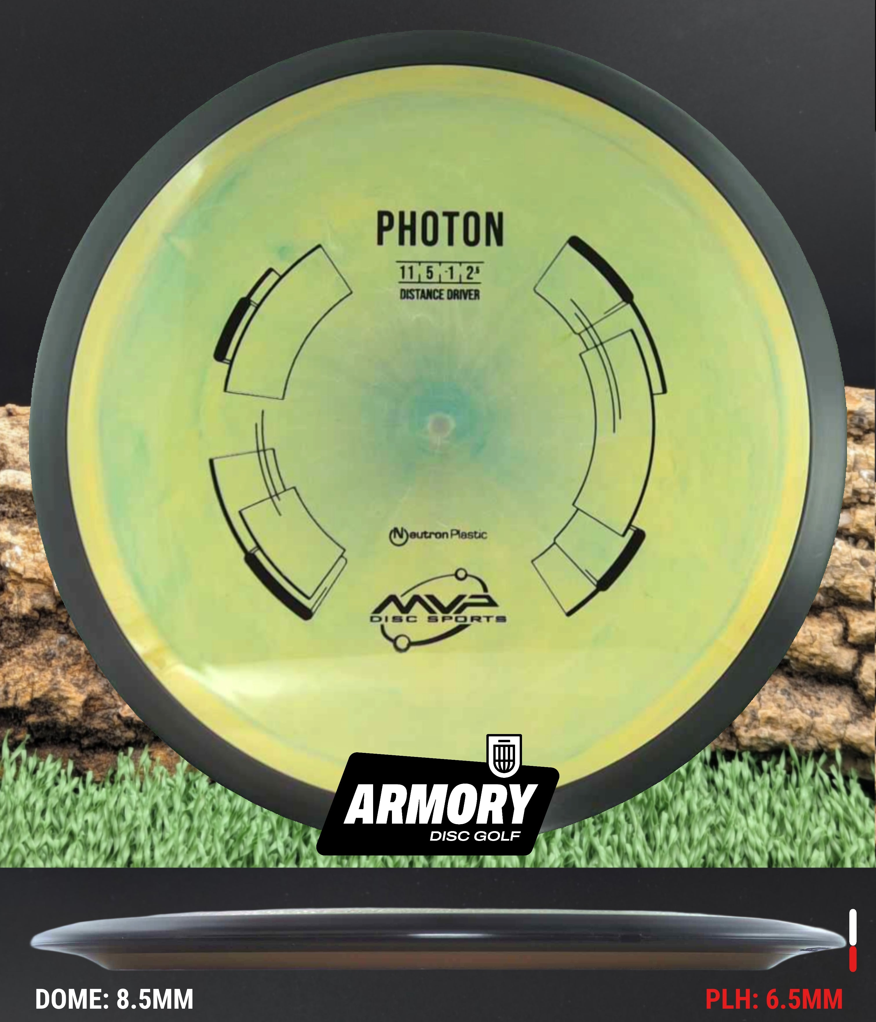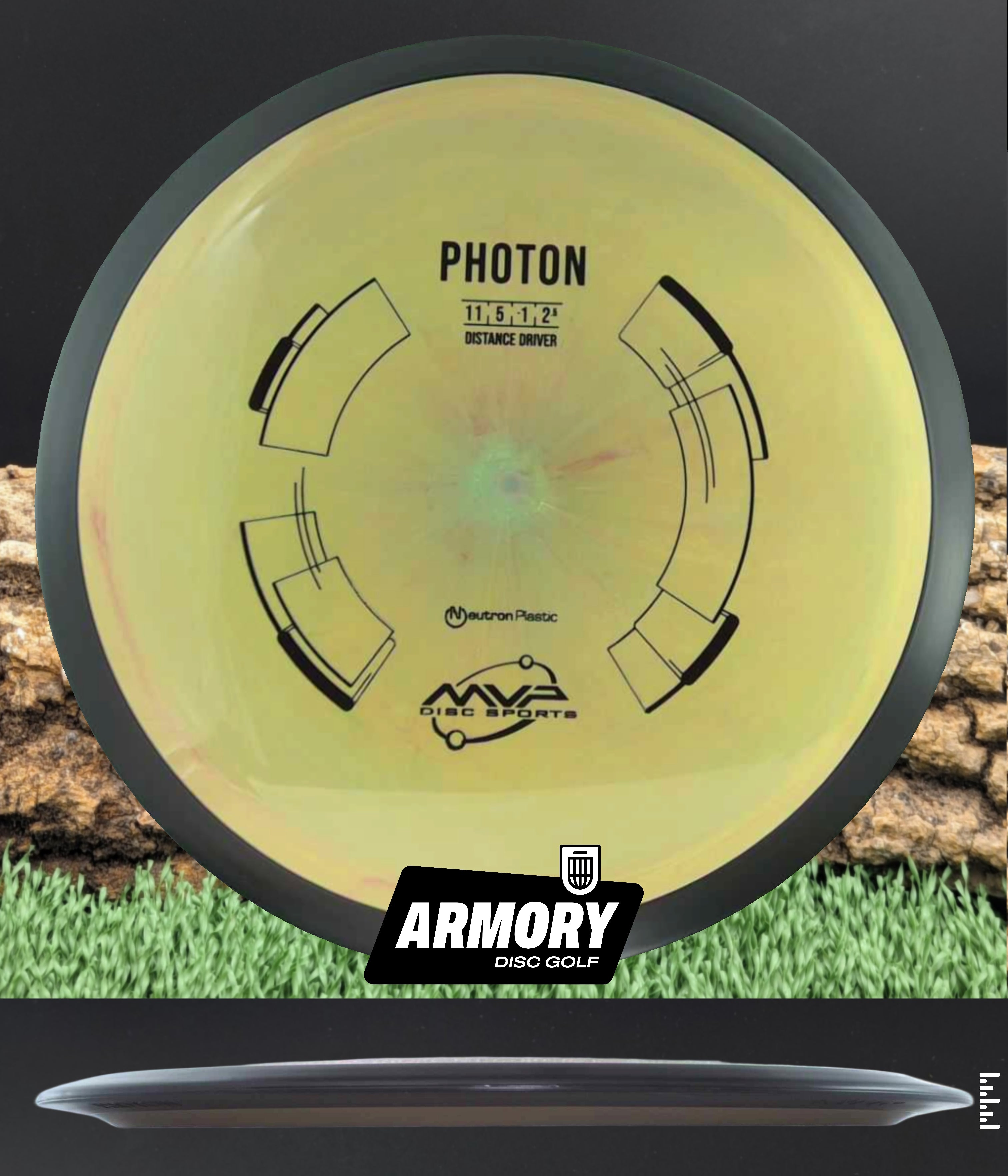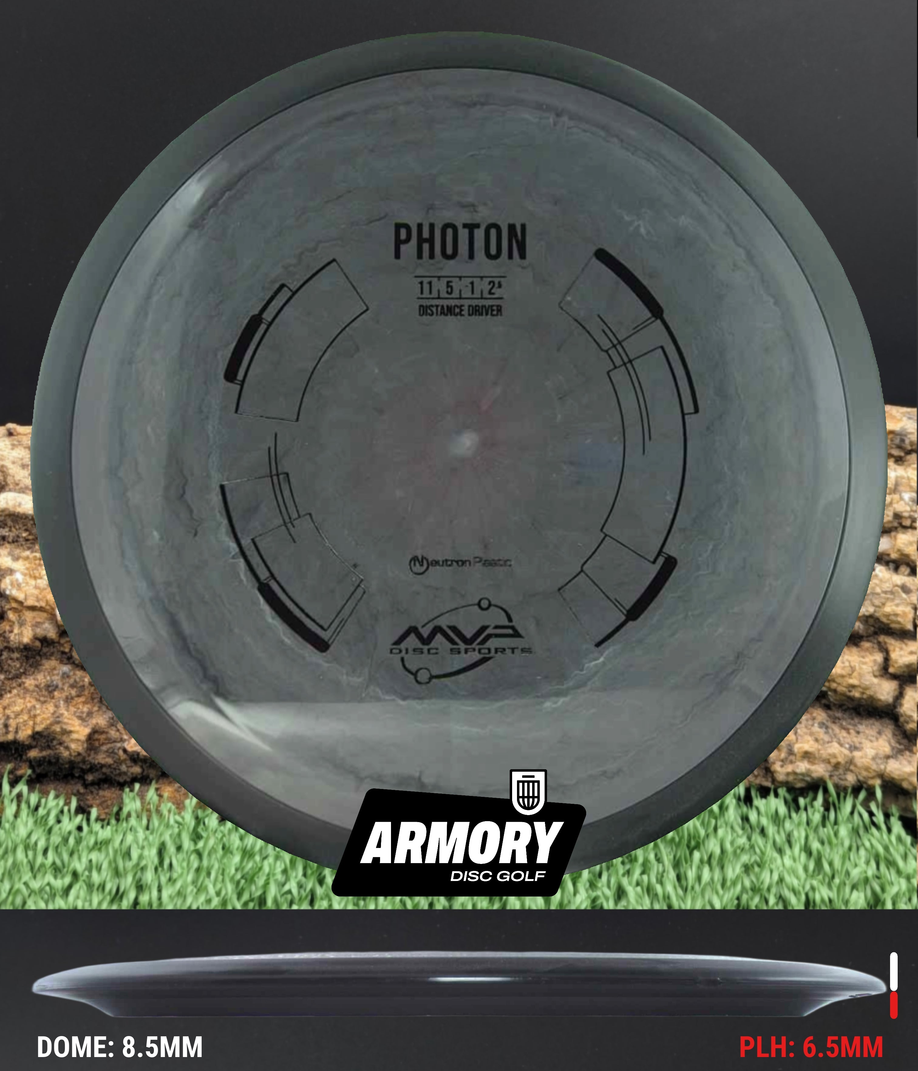 The Neutron Photon is a stable-to-overstable distance driver from MVP designed to deliver reliable, high-speed performance for power throwers. With flight numbers of 11 | 5 | –1 | 2.5, the Photon offers a touch of high-speed turn followed by a dependable fade, allowing for confident flex lines, straight bombs, and hard-fading finishes.