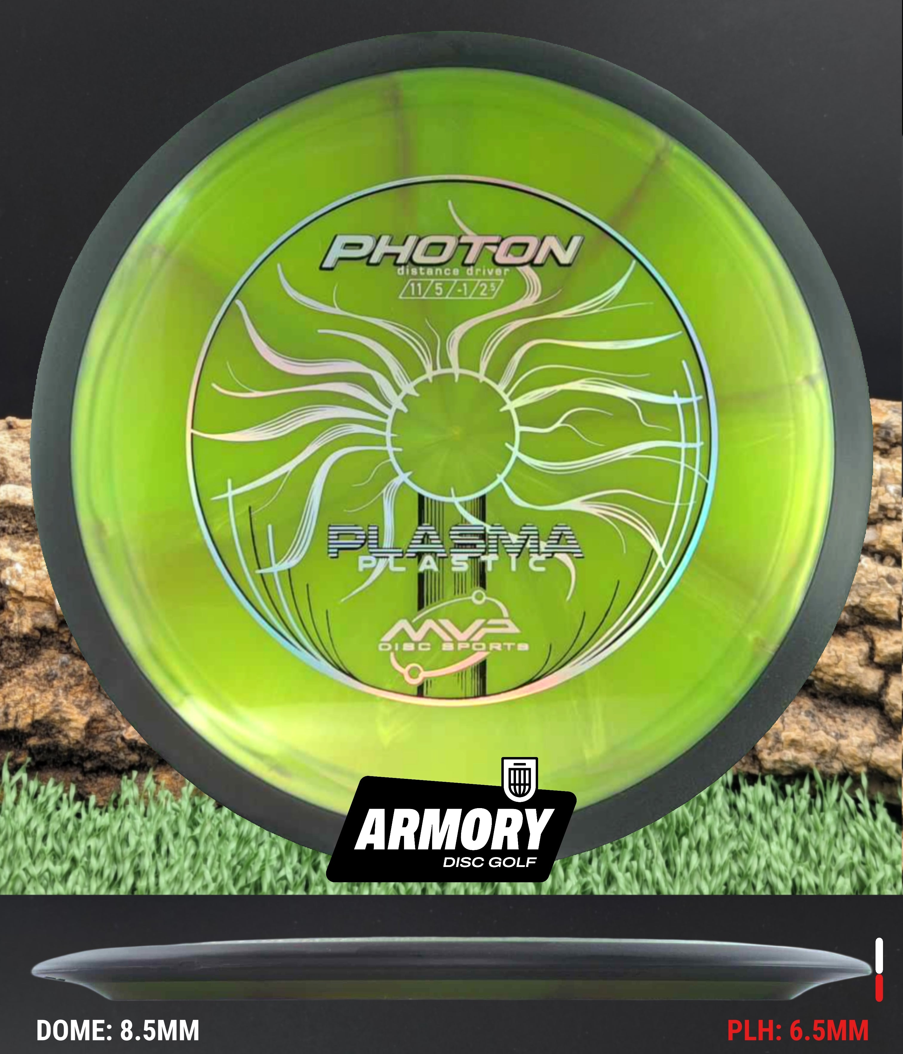 The MVP Plasma Photon is a fast, stable distance driver that blends consistent flight with eye-catching aesthetics. With flight numbers 11 | 5 | –1 | 2.5, the Photon offers long, accurate drives with torque resistance and a reliable fade—ideal for power throwers looking for a dependable line in all conditions.