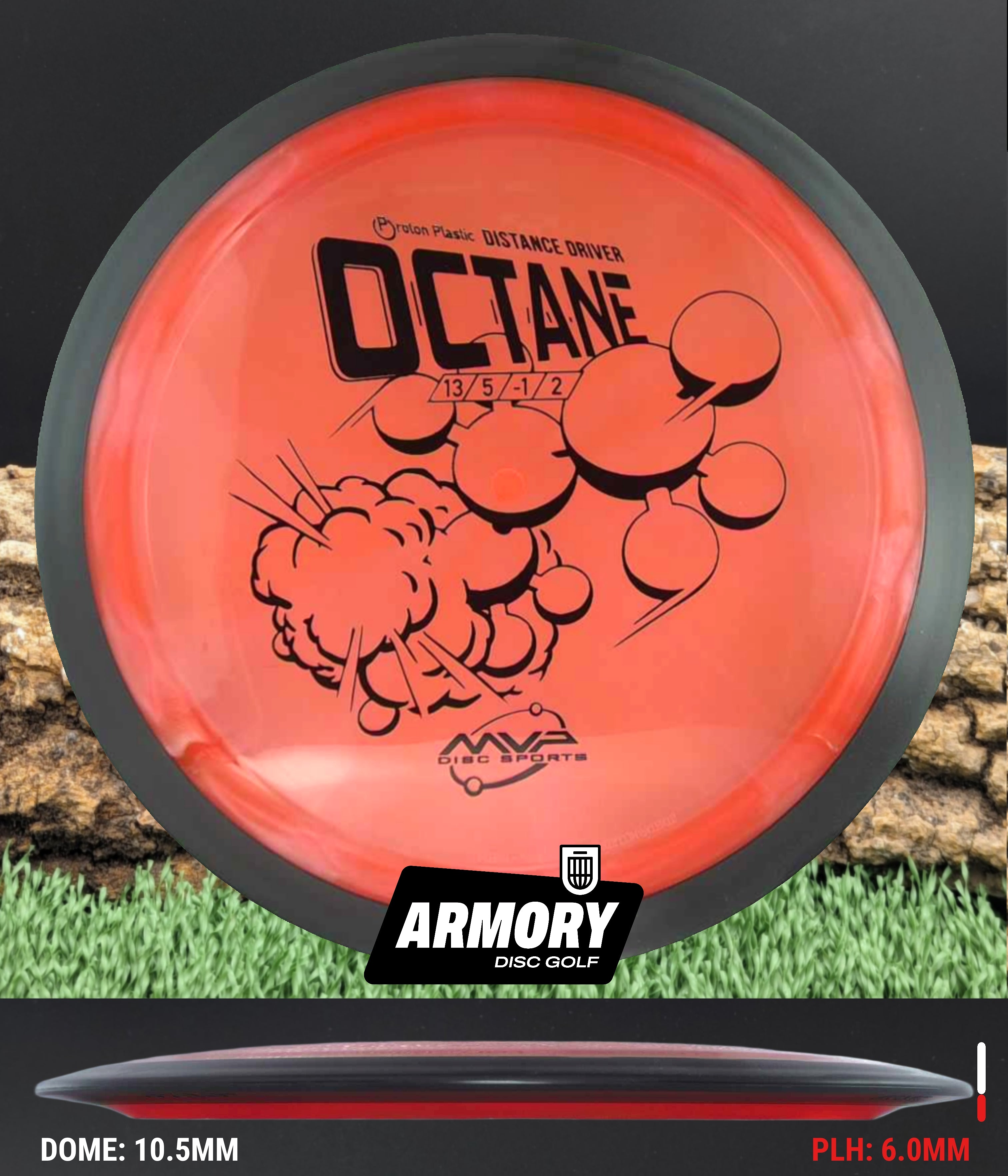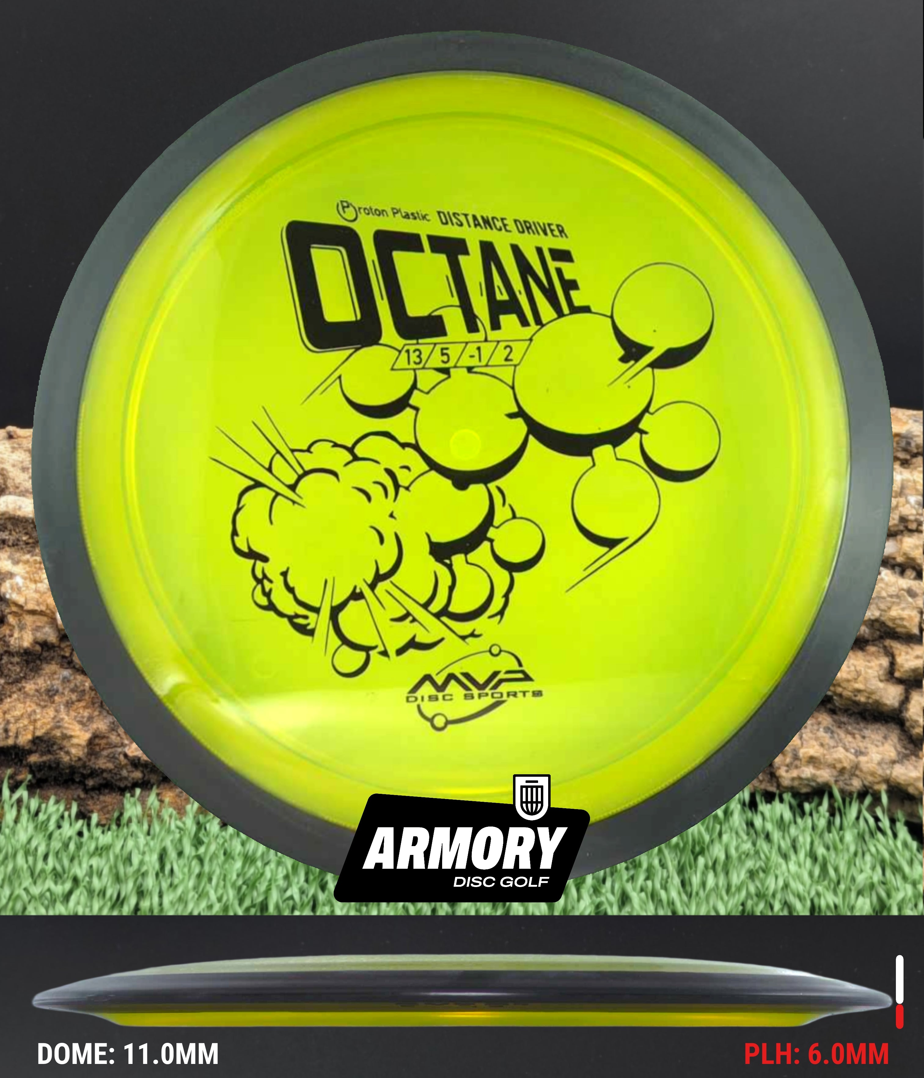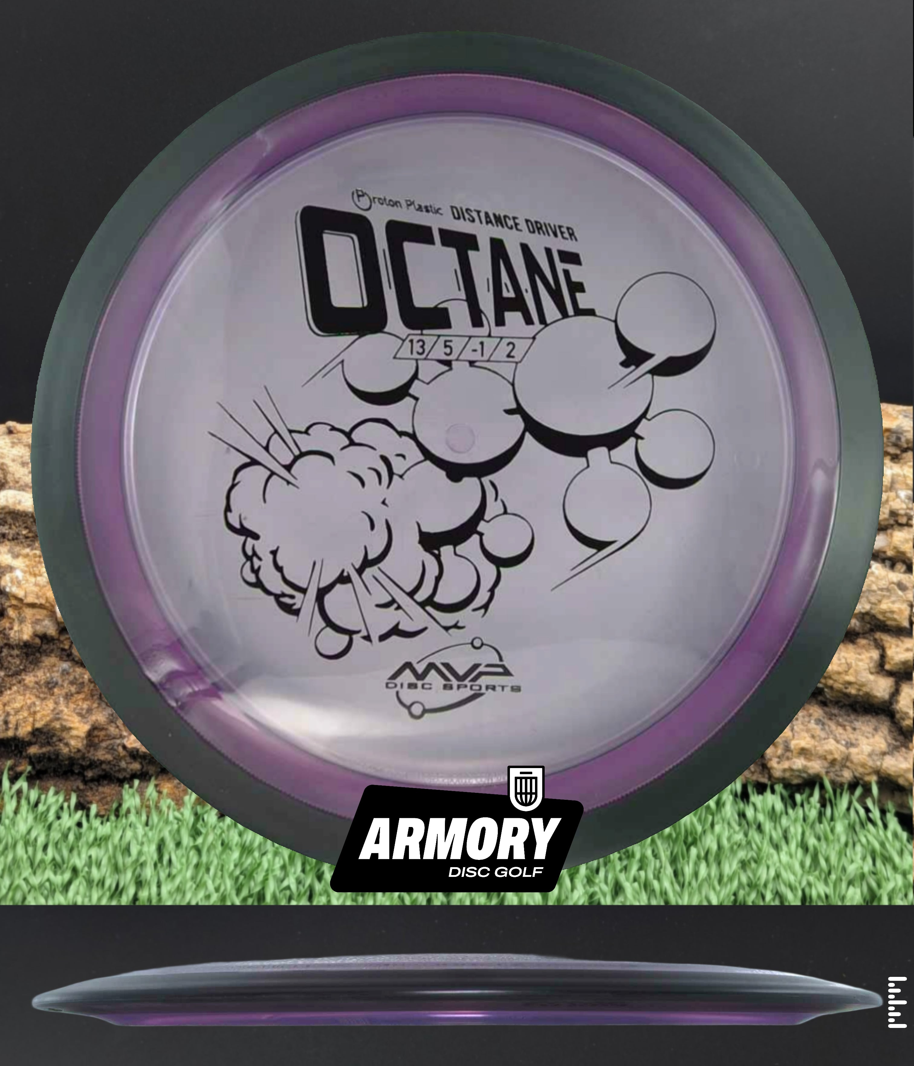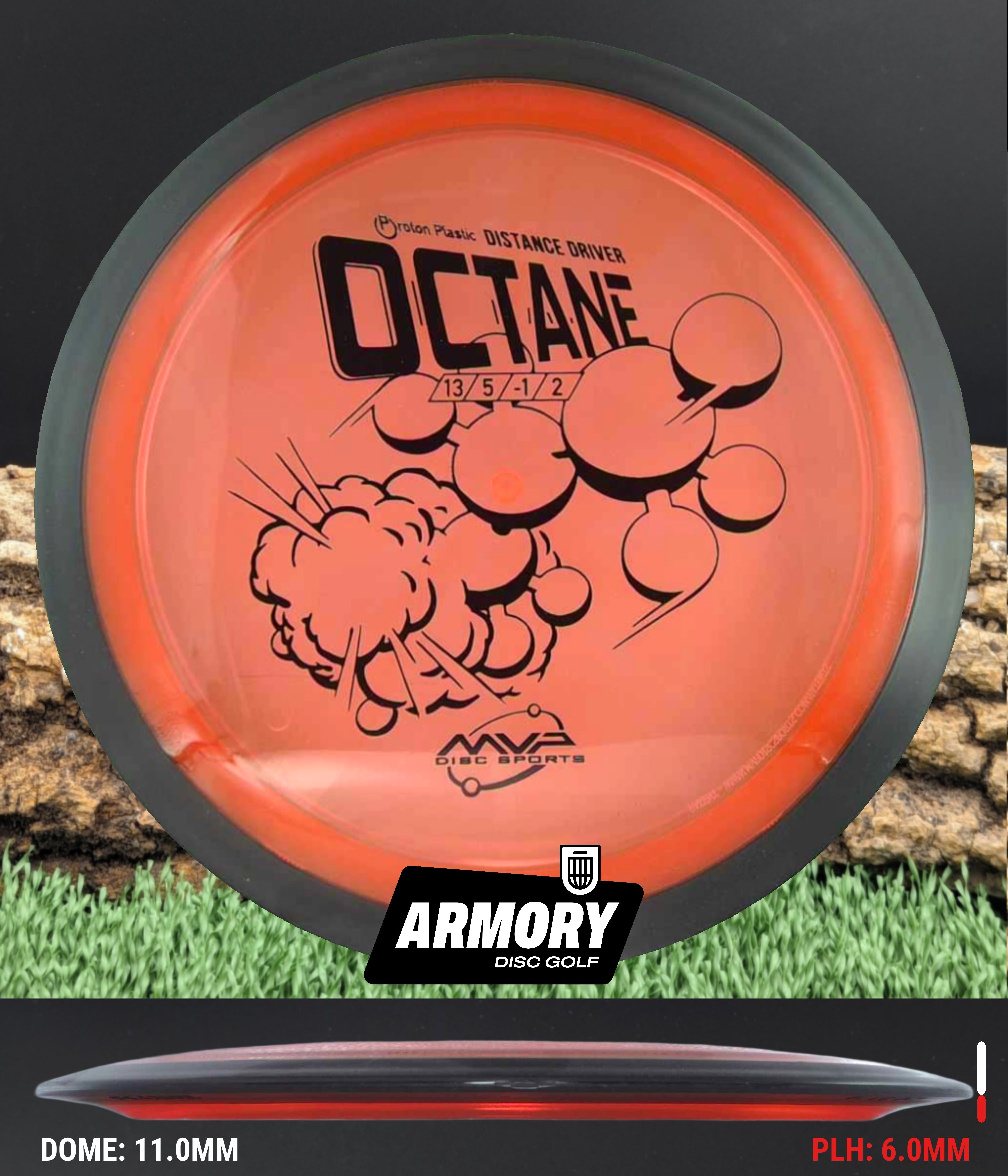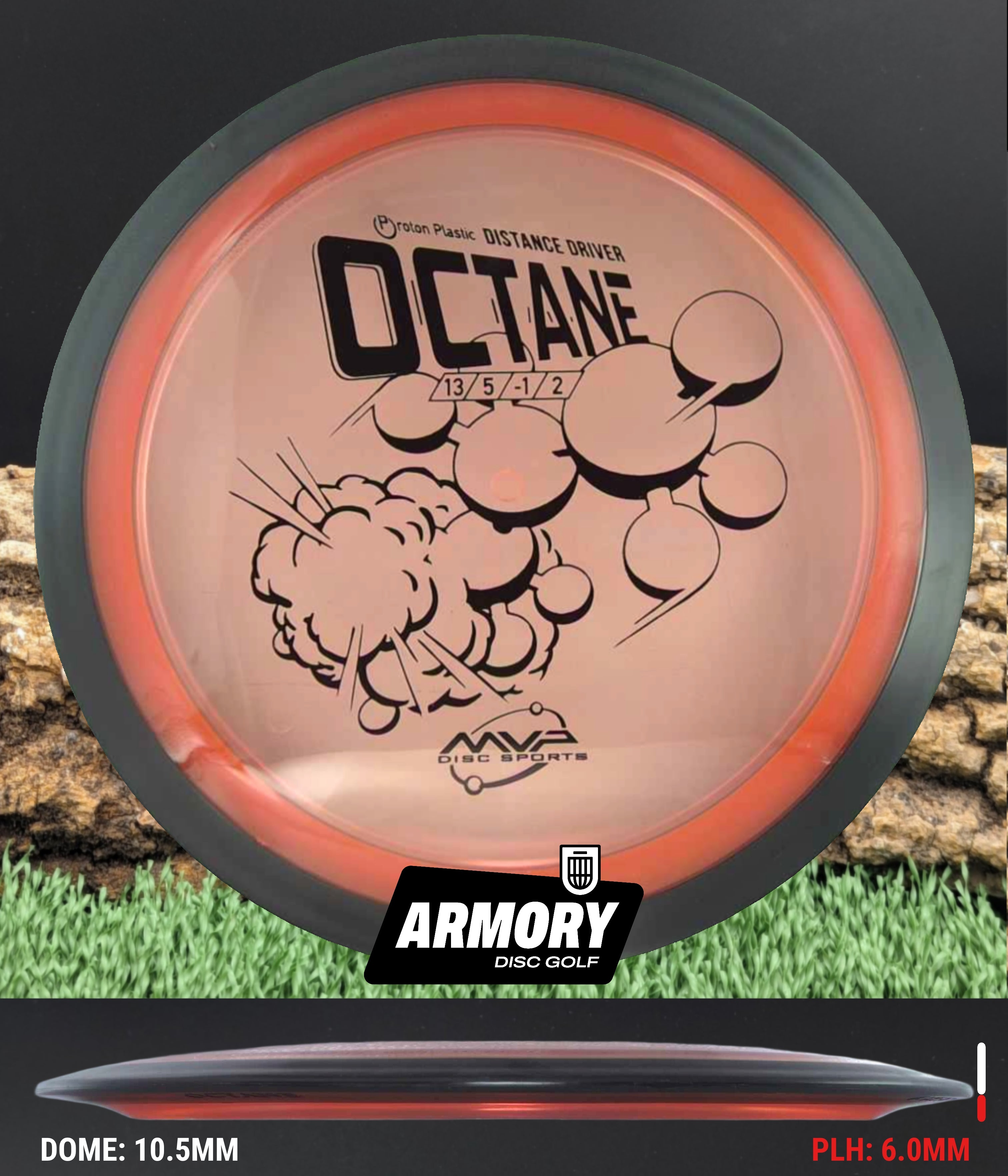 Octane falls in the general stability lineage of Switch, Amp, Inertia, and Wave, with a slow-turning profile that holds long and straight until its fade finish. The 23mm Octane is designed to be relatively more overstable than its 21.5mm counterpart Wave. Average throwers should see straight flights with a bit of shallow turn, while power throwers will be able to hyzerflip for max distance and tailwind lines.