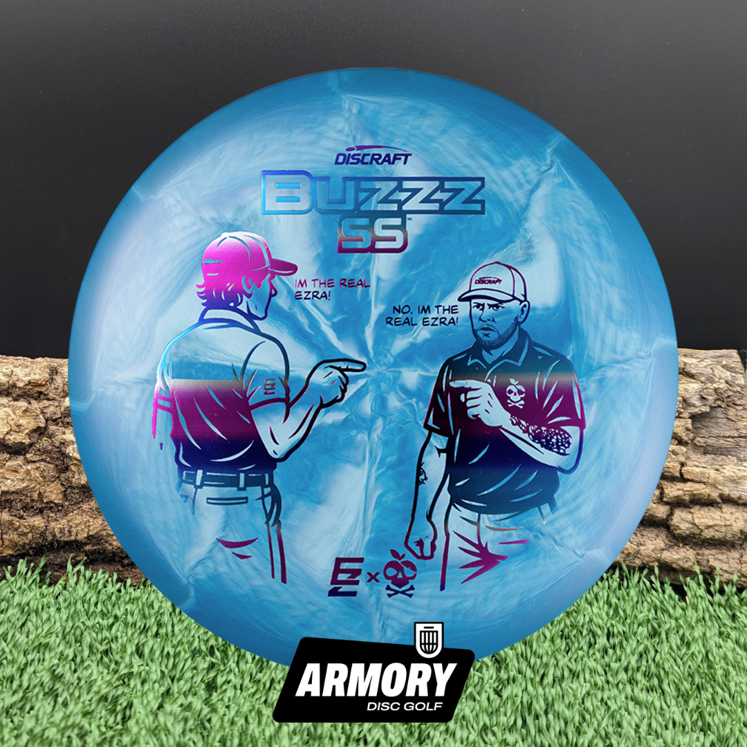 This Ezra Aderhold x Ezra Robinson collaboration brings a fun, lighthearted twist to a professional-grade disc. The “Who’s the real Ezra?” stamp design captures the personality of both players while offering collectors a unique piece of Discraft history.