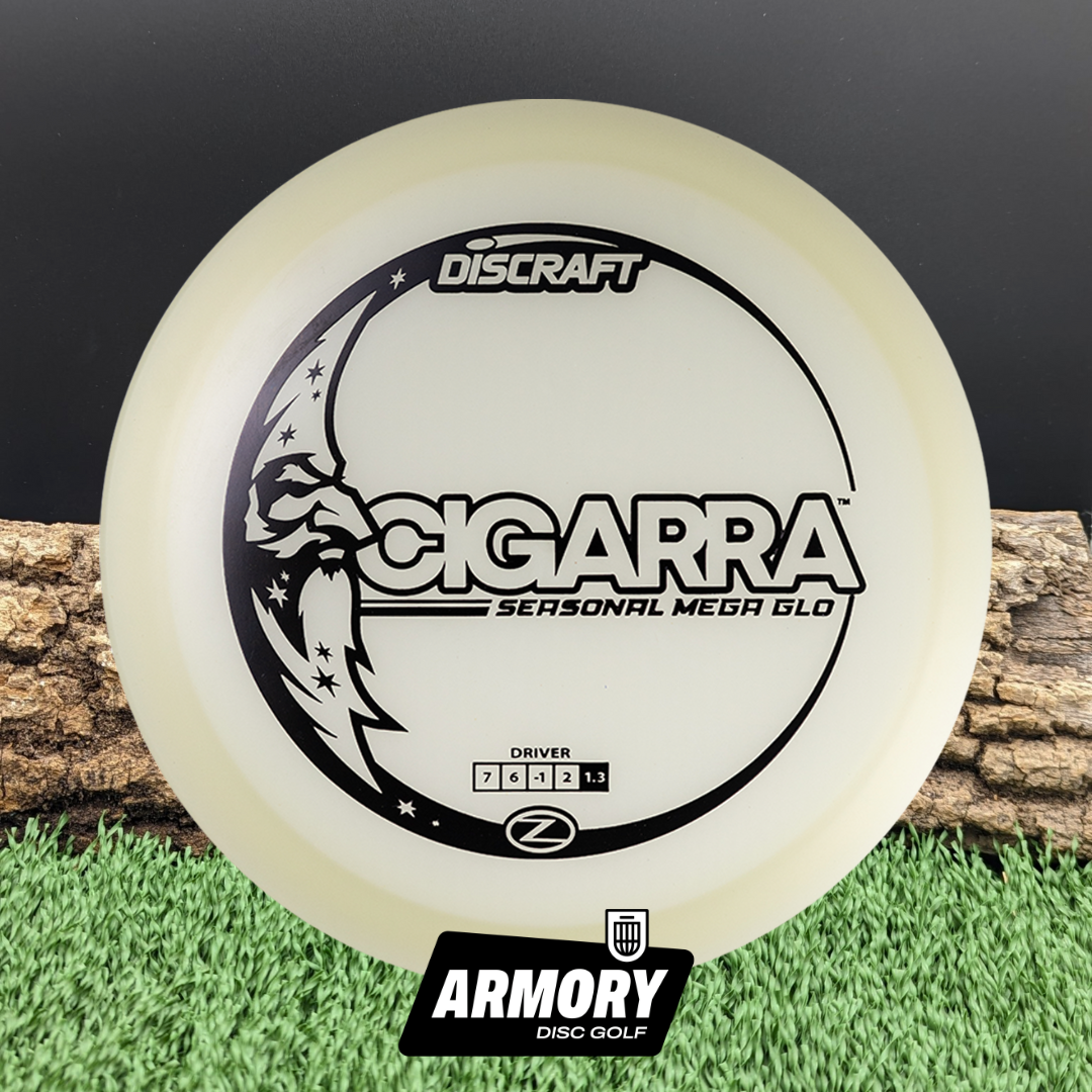 Now available in Discraft’s brightest-ever Mega Glo plastic, the Cigarra combines glowing visibility with tacky grip and durable flexibility — perfect for extending your game long after sunset. Whether you’re navigating wooded fairways or attacking open lines under the lights, the Mega Glo Cigarra keeps your flight path clear and controlled.
