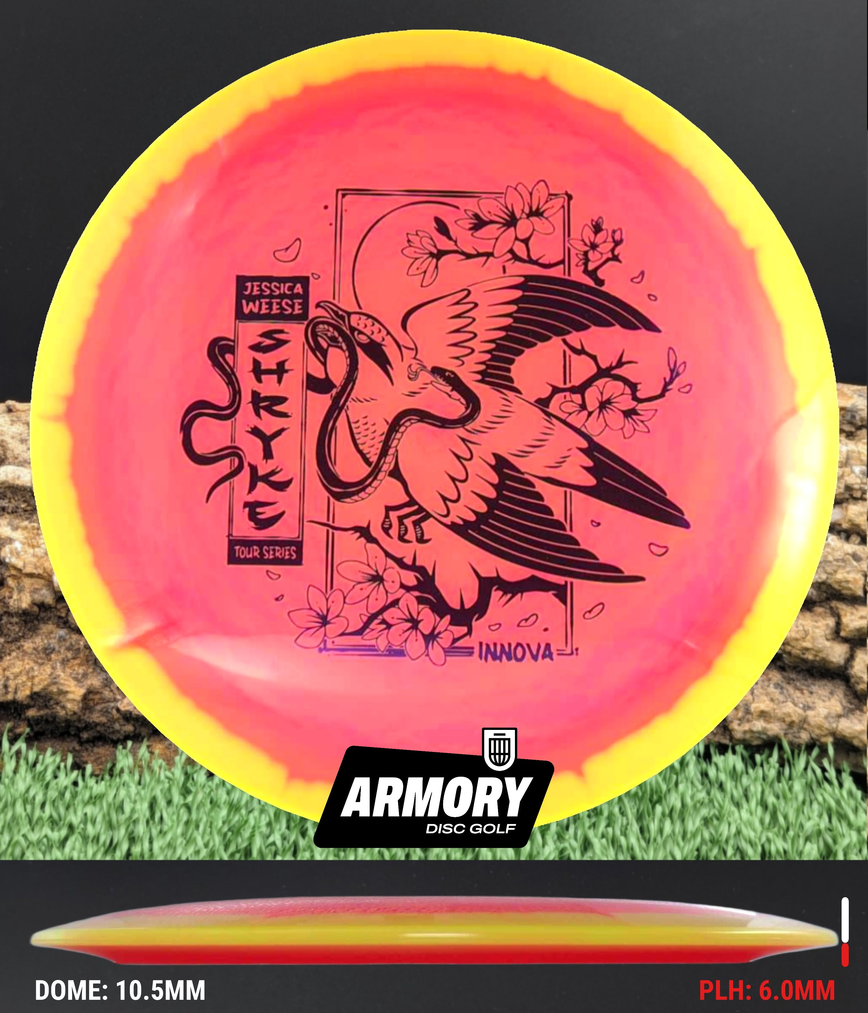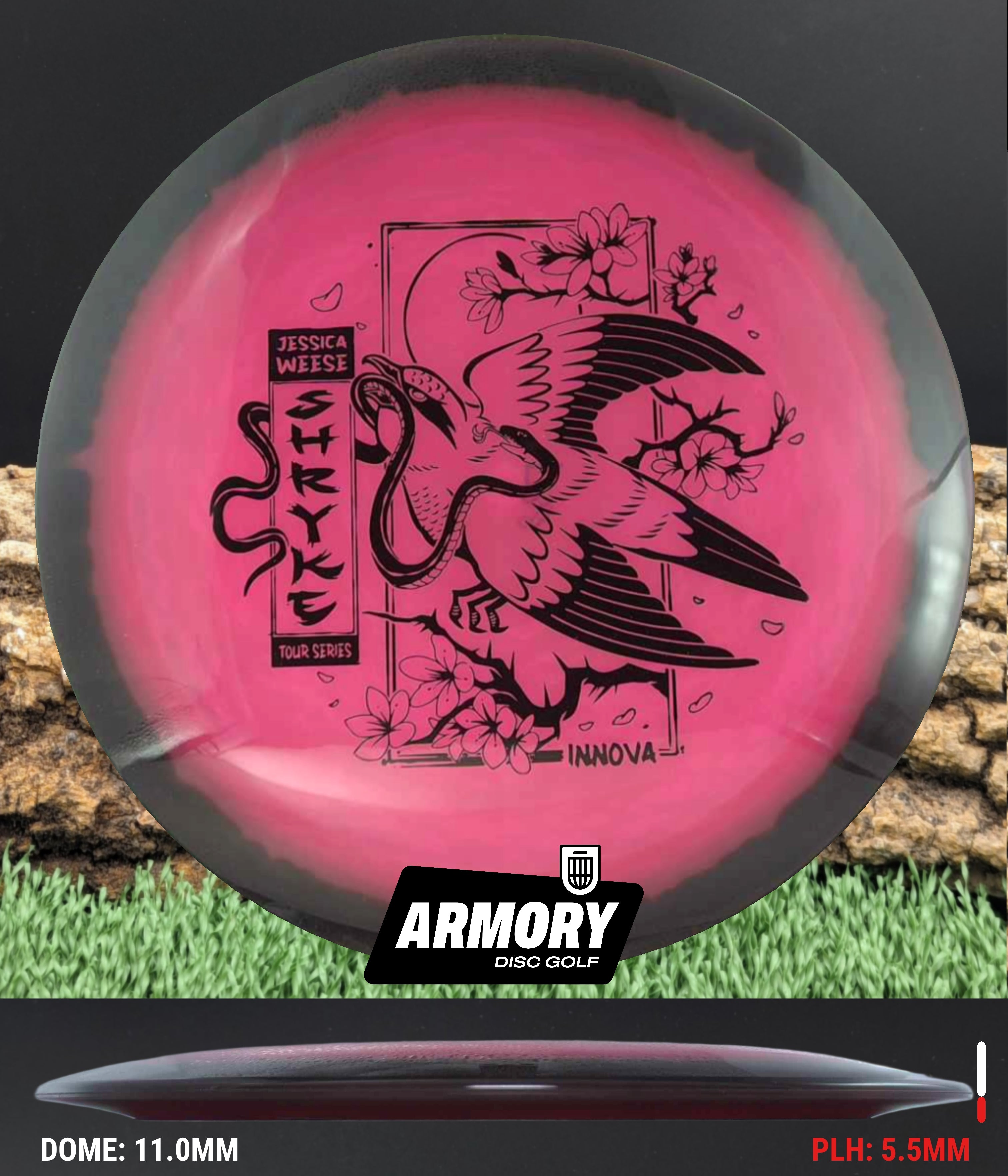 “My Tour Series Shryke bombs for a wide range of arm speeds—and looks amazing doing it. I wanted a disc that flies smooth and turns heads. Innova nailed it." - Jessica Weese