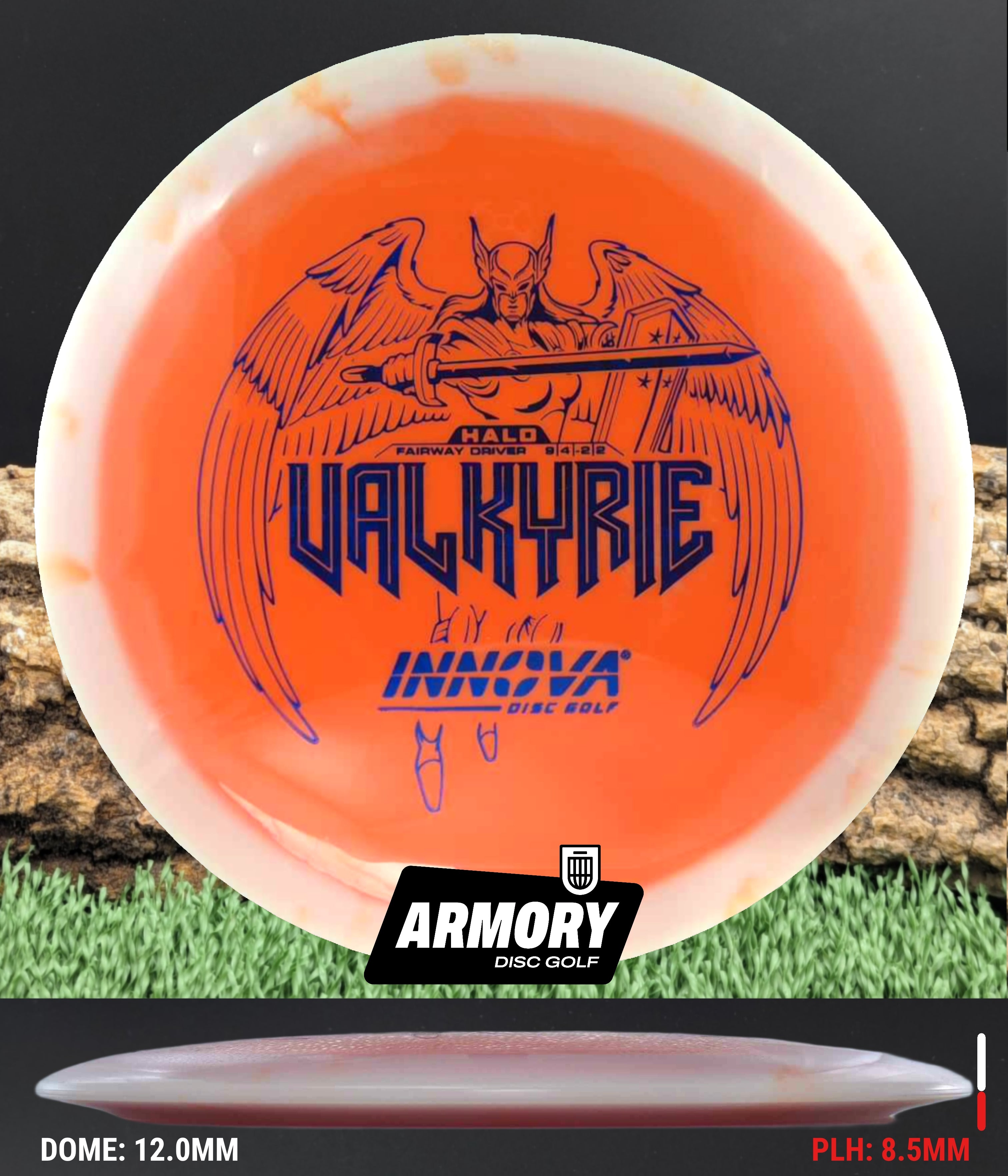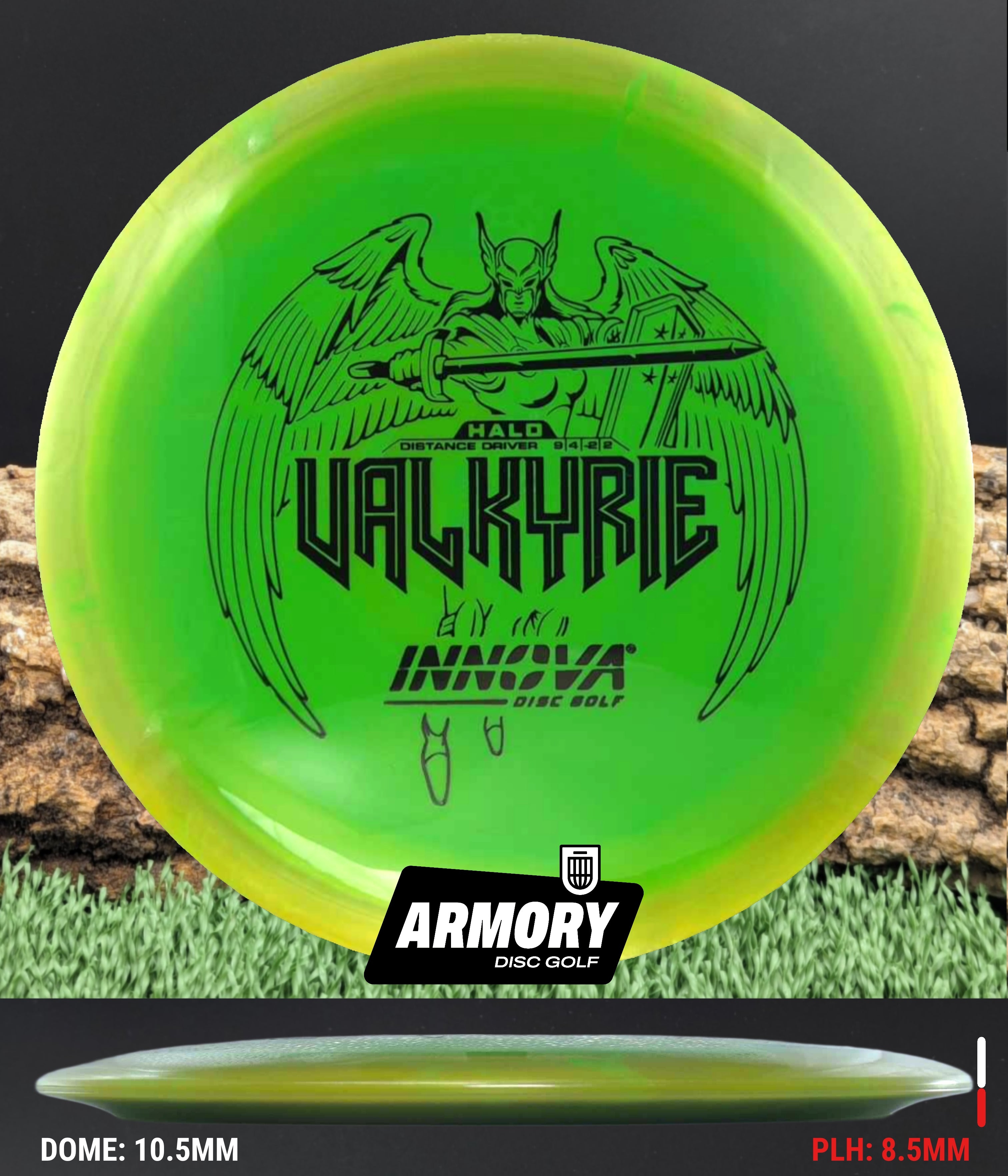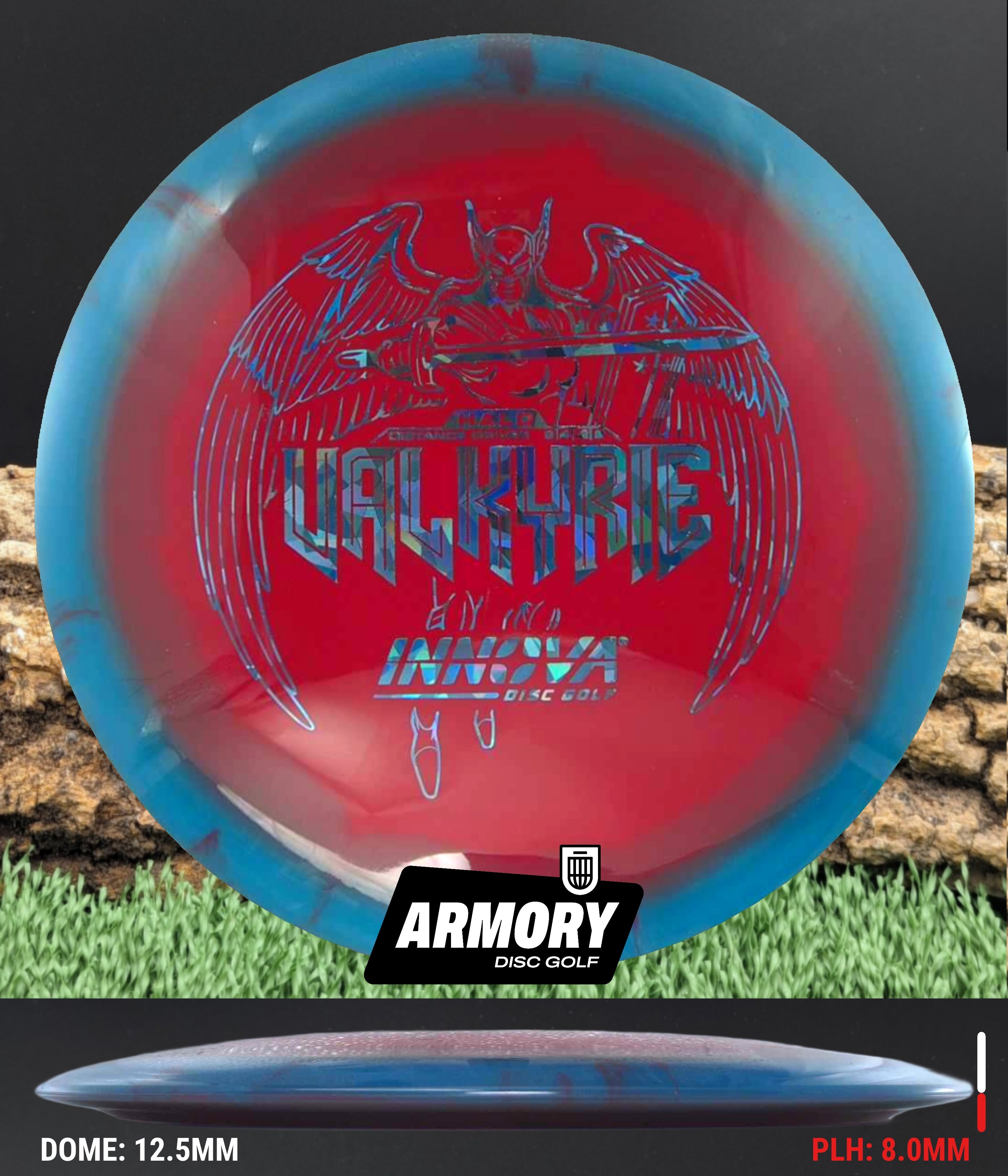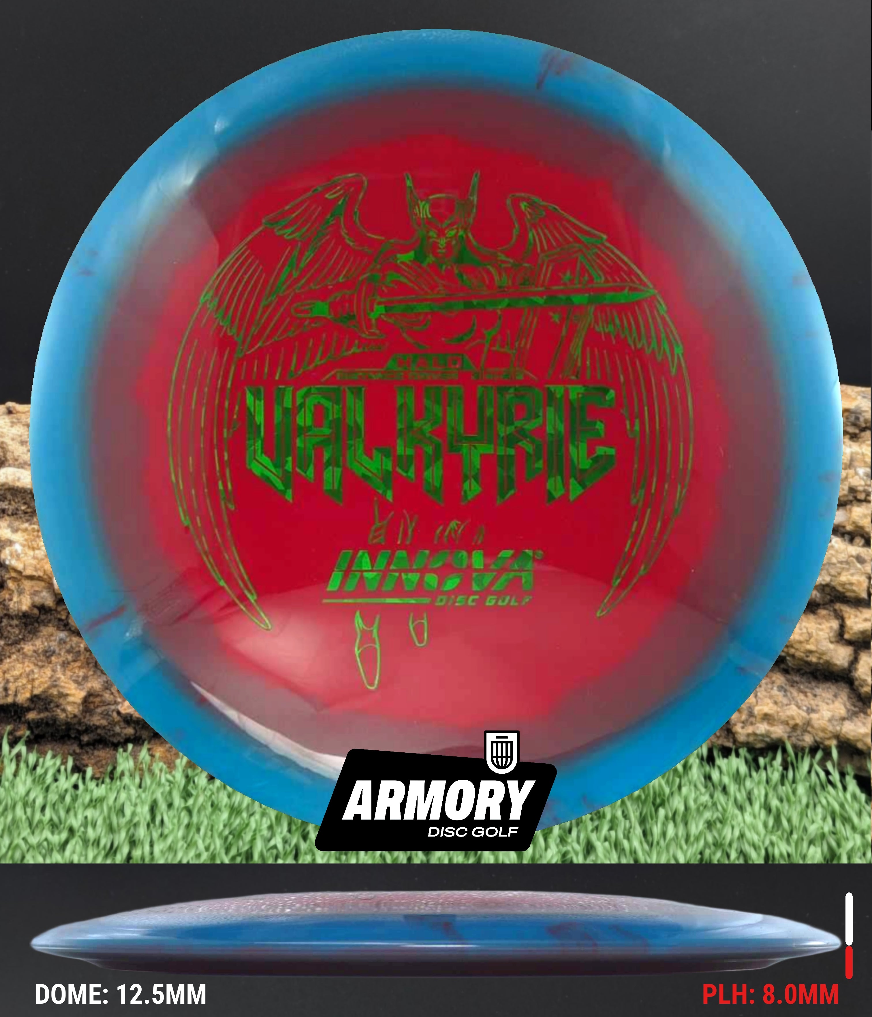 In lighter weights gives new players extra distance. Lighter weights also give players extreme range when thrown downwind, while maximum weights can give excellent upwind distance. The Valkyrie’s high speed turn and flight characteristics make it great choice for long range turnover shots and rollers.