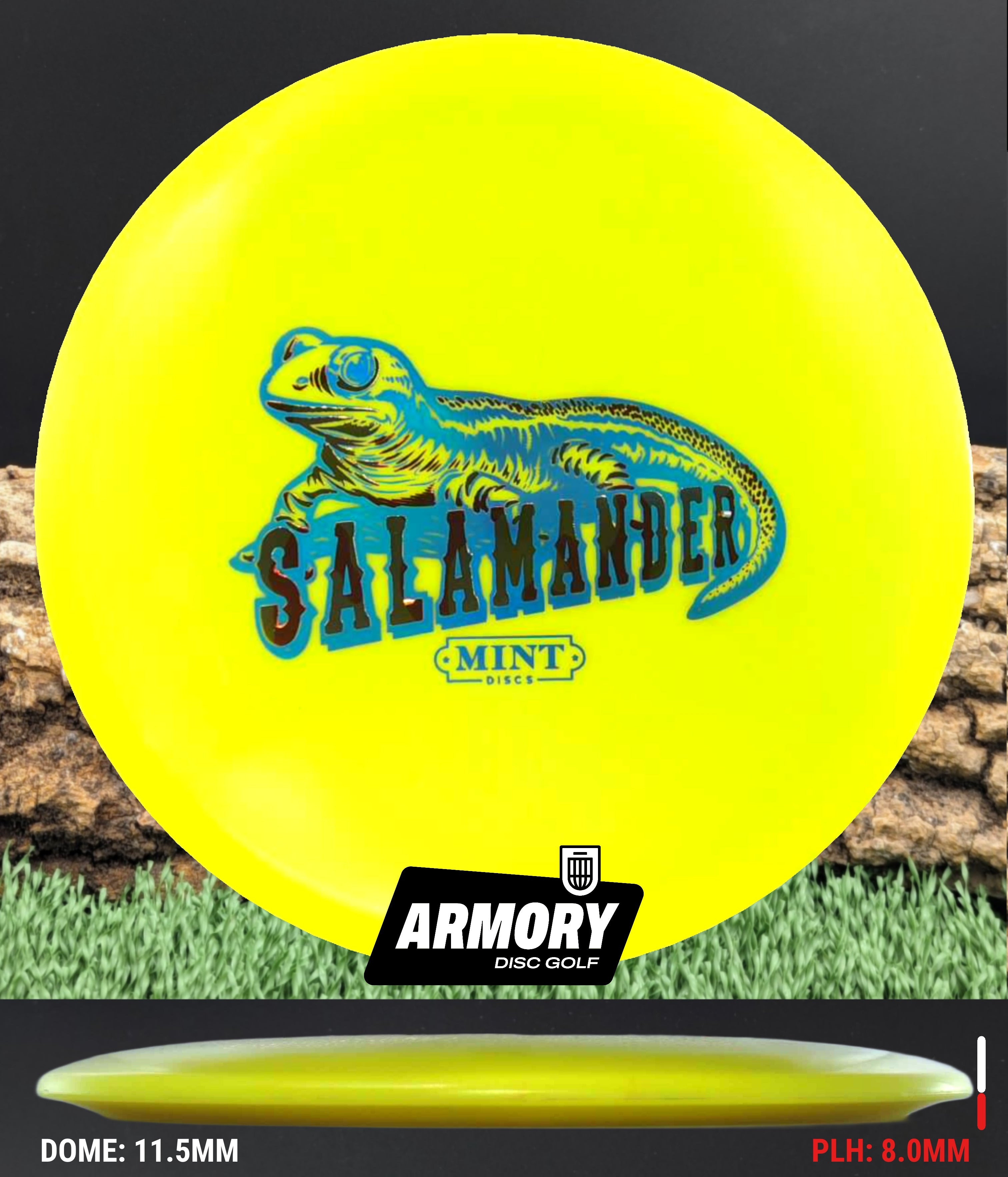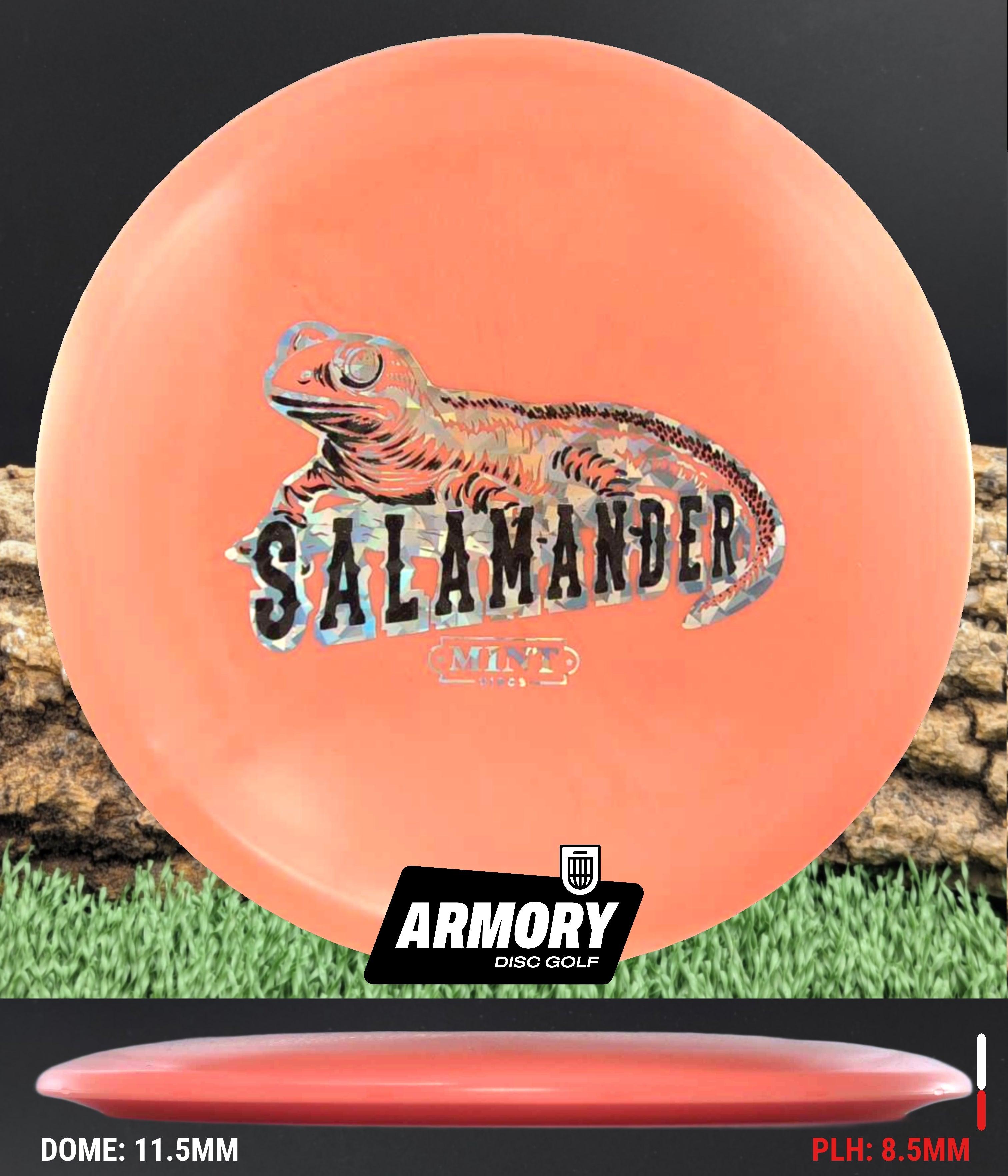 The Salamander is Mint Discs’ latest fairway driver—now available in a Lightweight Apex plastic that’s tuned for easy distance and smooth flight. With flight numbers of 6 | 6 | -2 | 1, this disc is ideal for players seeking effortless turnover lines, sweeping hyzer-flips, and floaty glide without needing big arm speed.