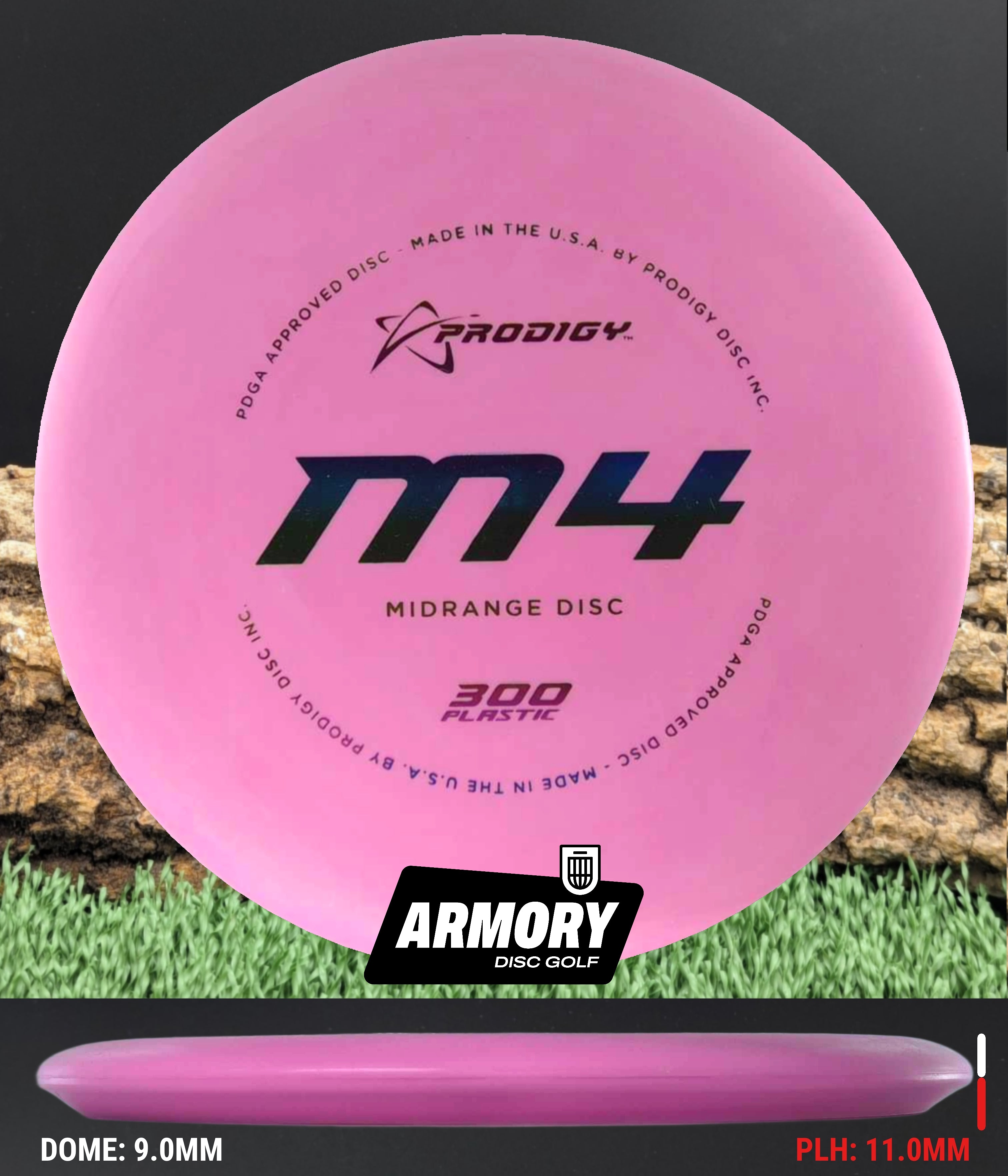 The Prodigy Disc M4 is an extremely reliable understable midrange disc. It is designed for all players and flies extremely far for a midrange. The M4 will turn up when thrown hard and will then have an extra long glide and a soft straight finish.
