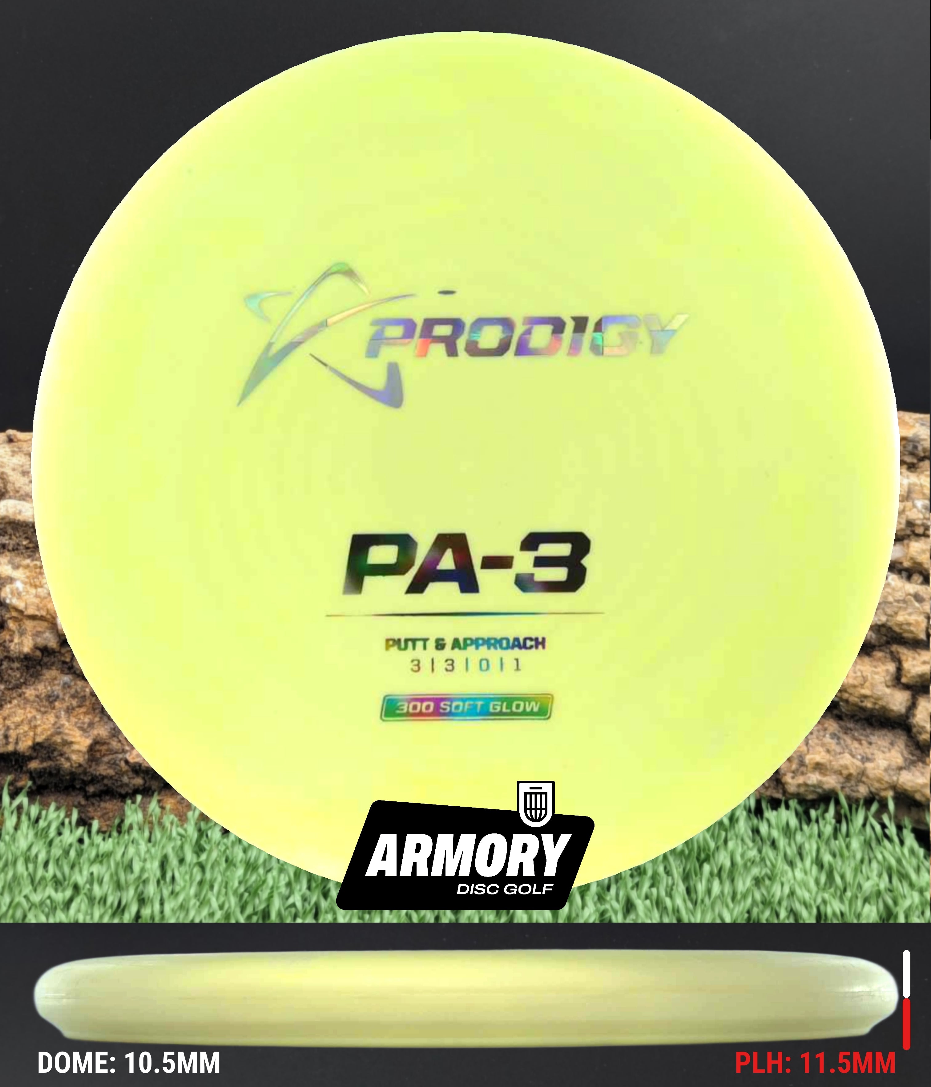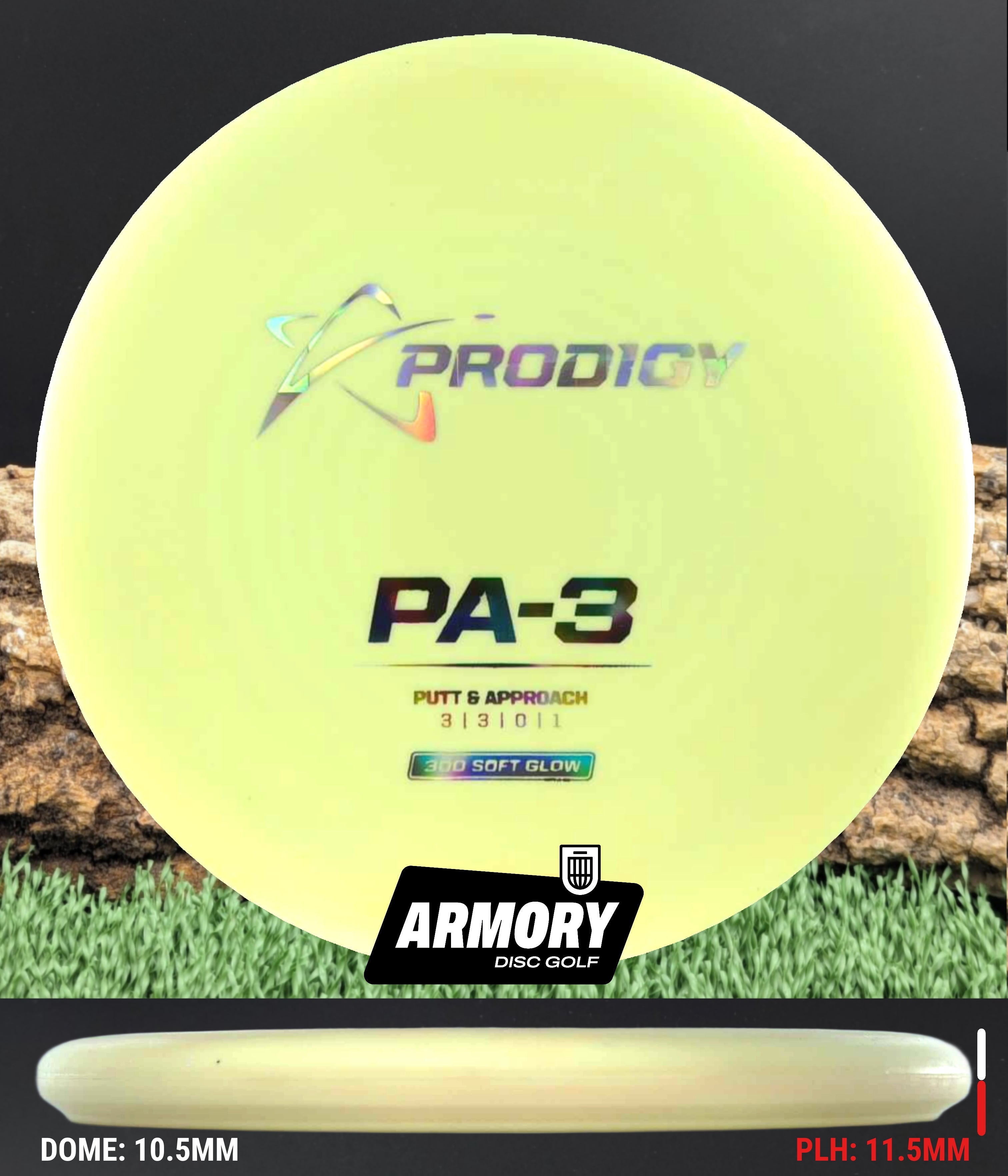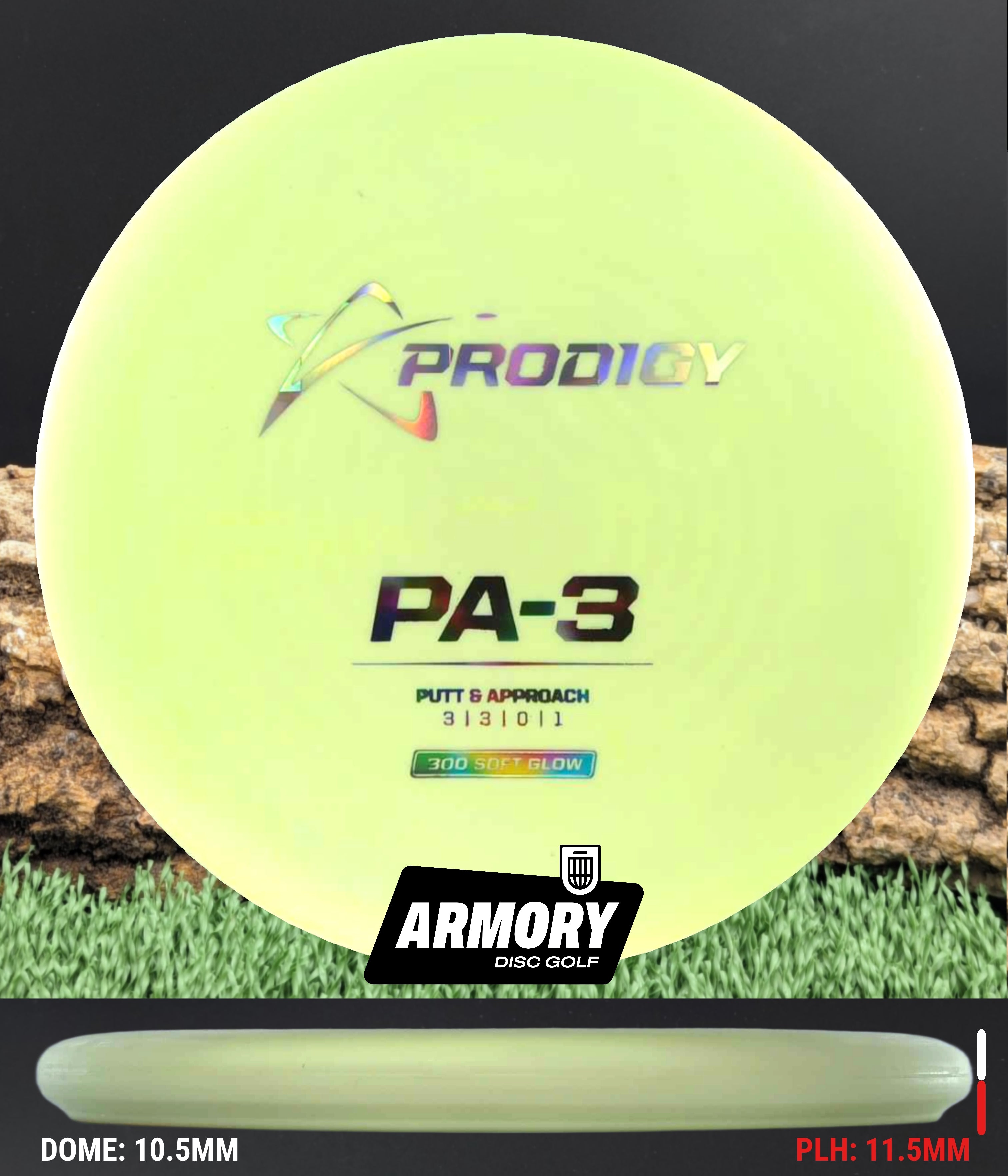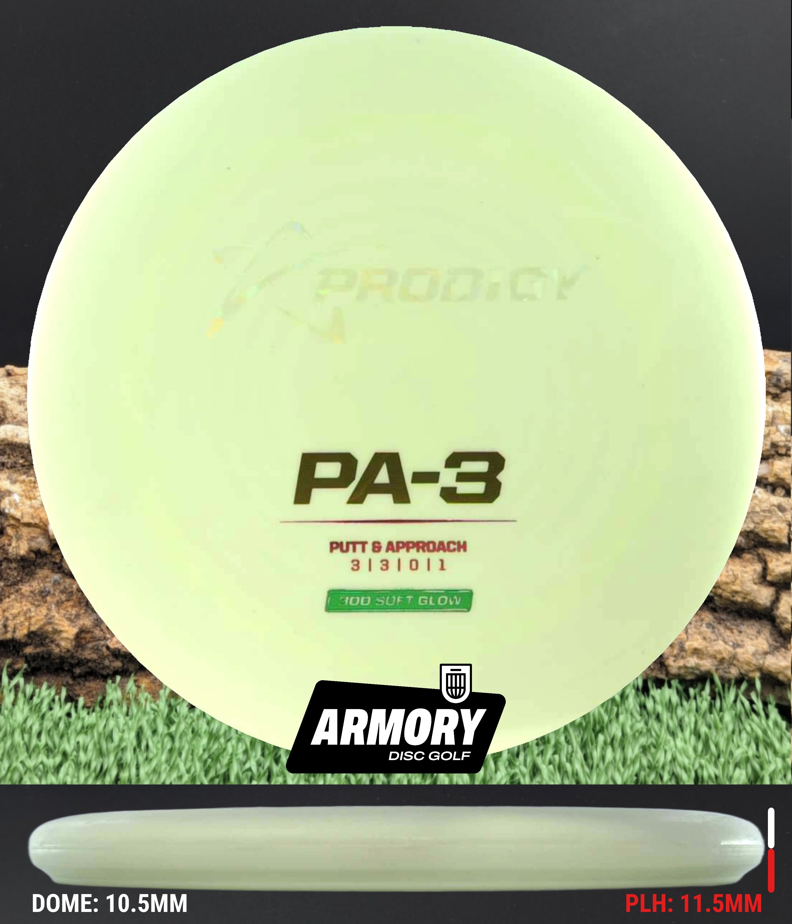 Out of the hand the PA-3 will feel confident and controlled: it tracks straight, resists unwanted turn, and lands with a predictable finish. Whether you’re lining up a calm circle 1 putt, powering a short tee shot, or needing an approach disc that will sit where it lands, the PA-3 in 300 Soft Glow is built to make those shots easier.