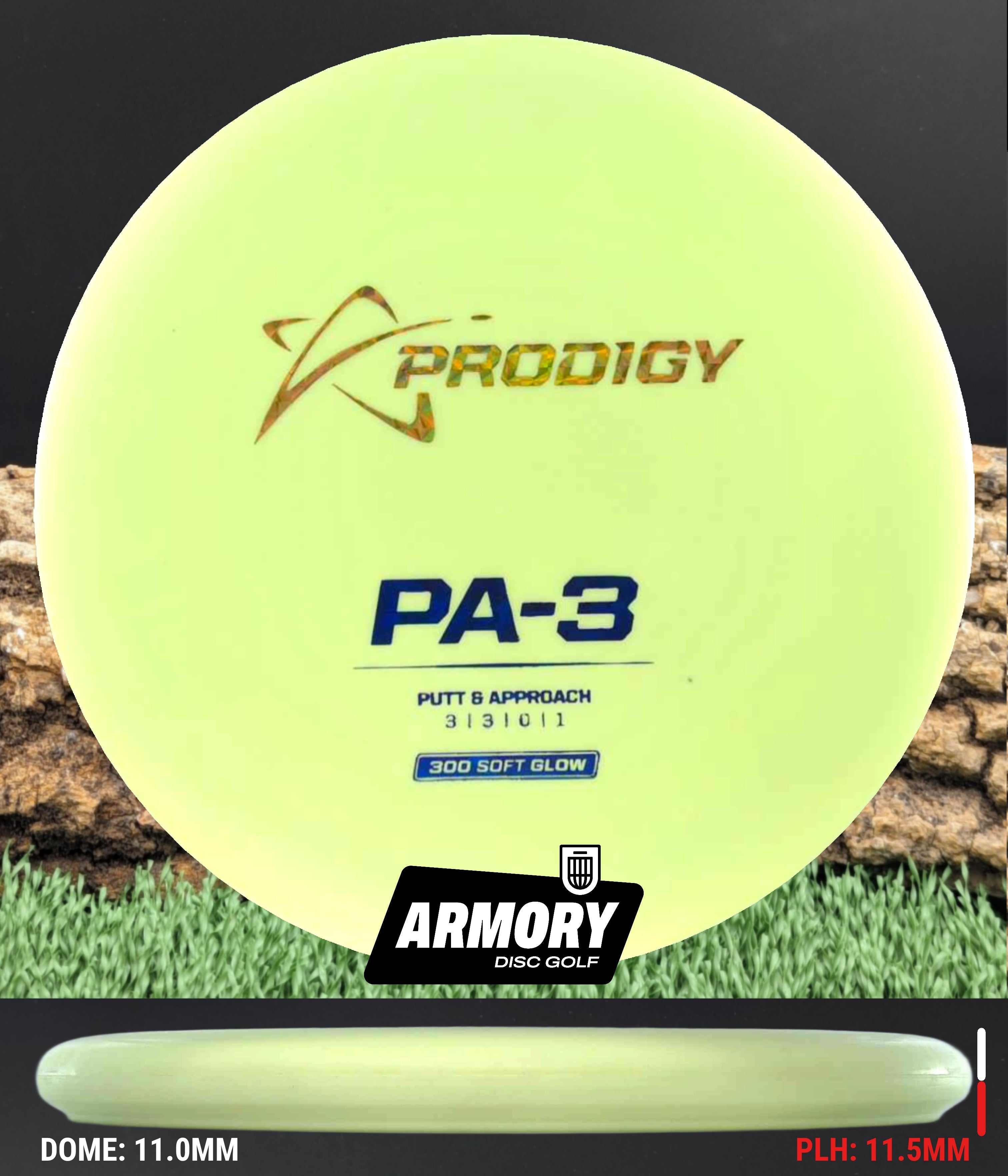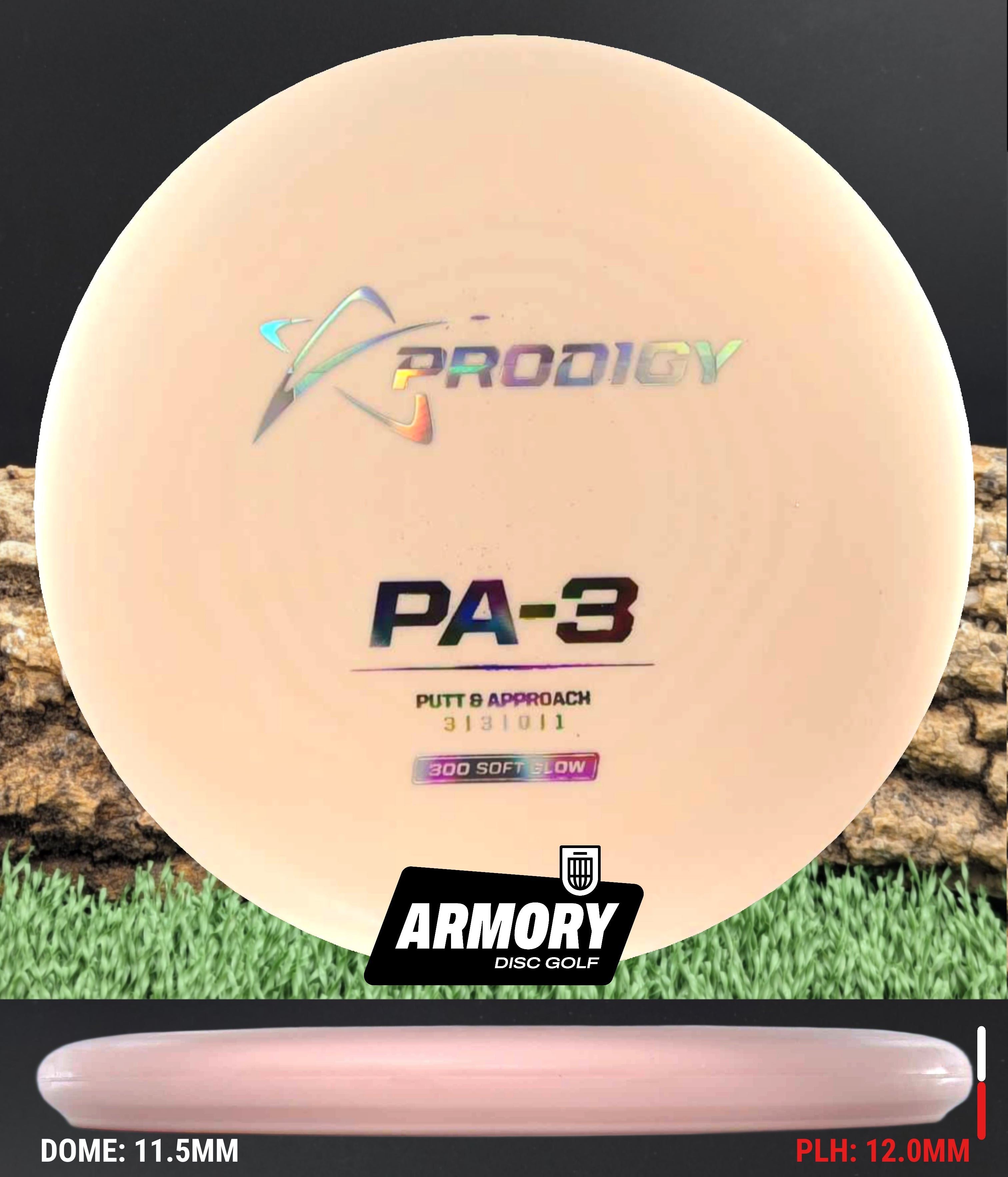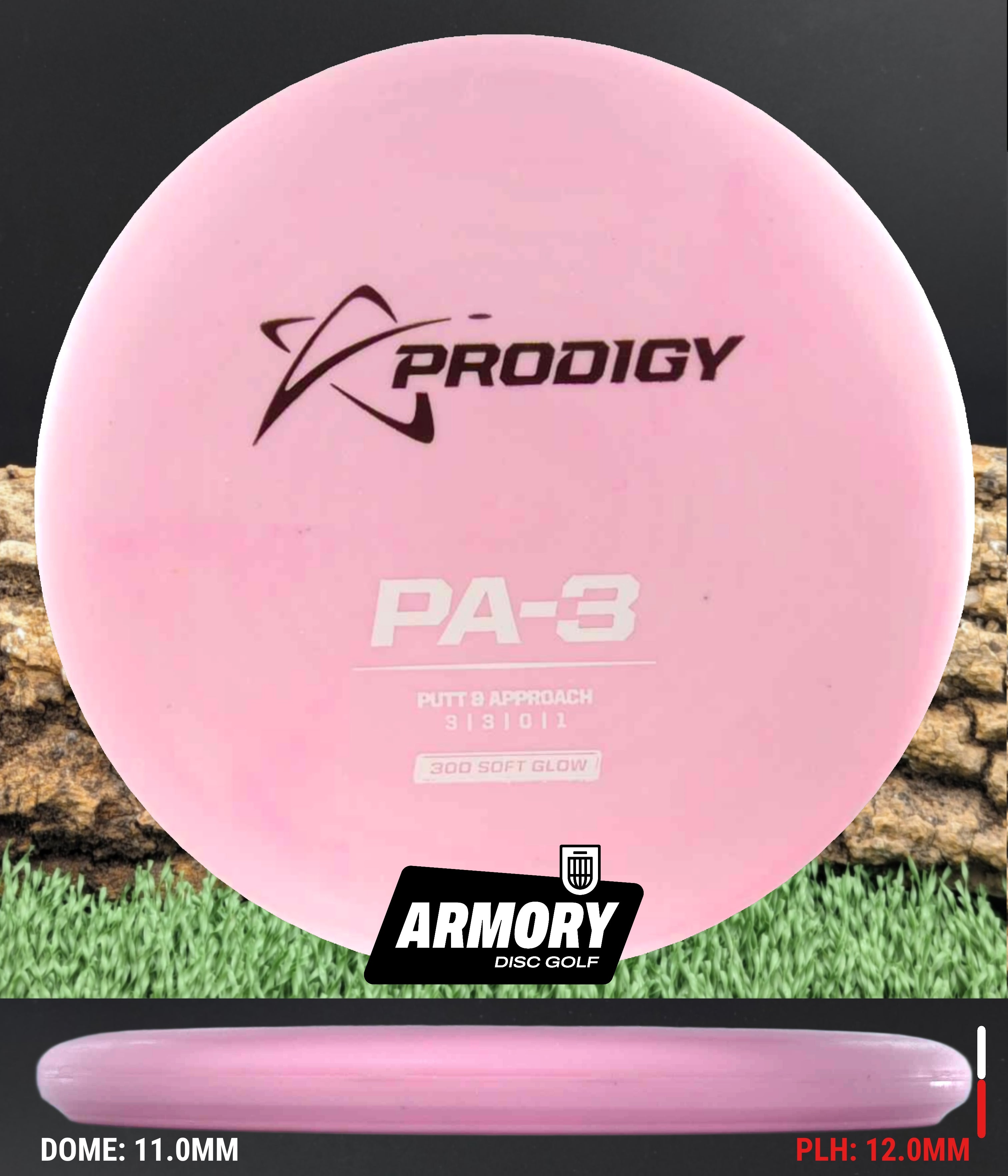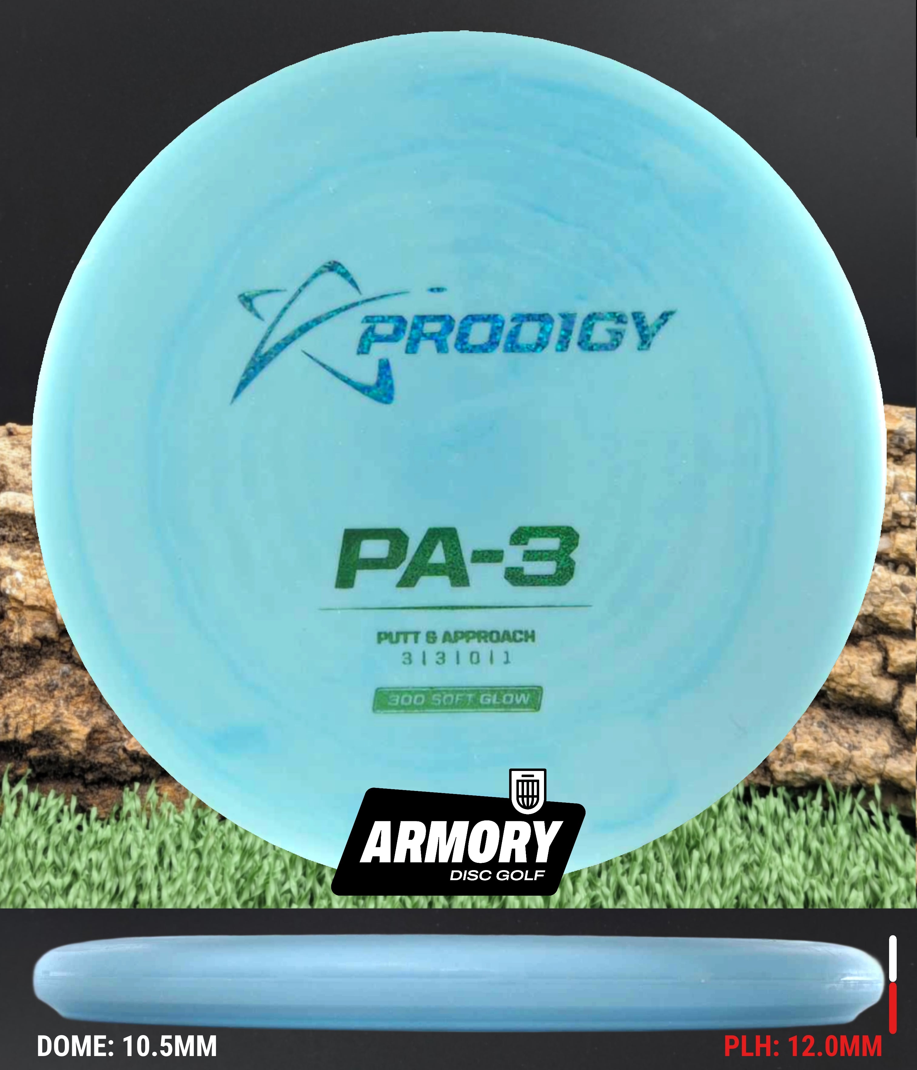Out of the hand the PA-3 will feel confident and controlled: it tracks straight, resists unwanted turn, and lands with a predictable finish. Whether you’re lining up a calm circle 1 putt, powering a short tee shot, or needing an approach disc that will sit where it lands, the PA-3 in 300 Soft Glow is built to make those shots easier.