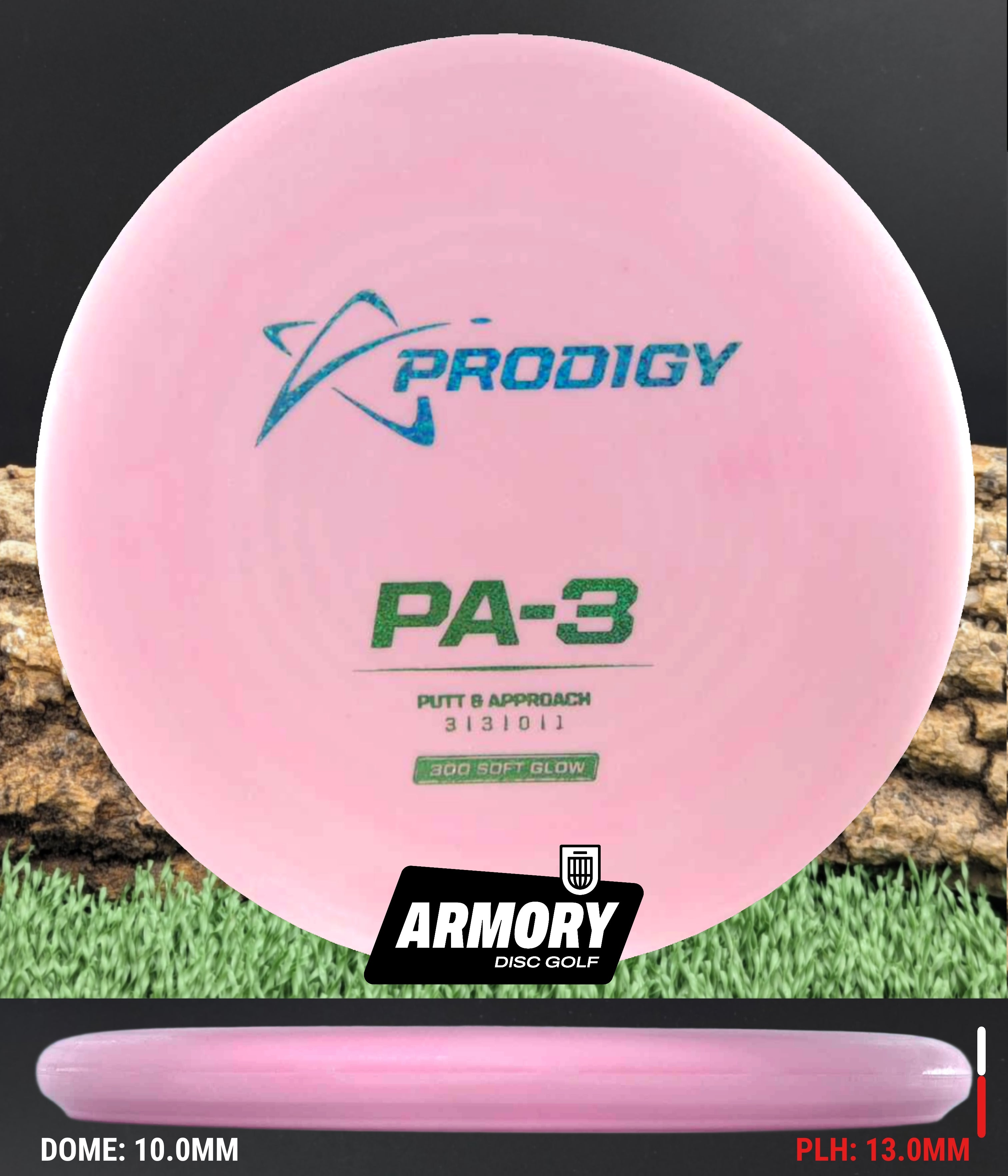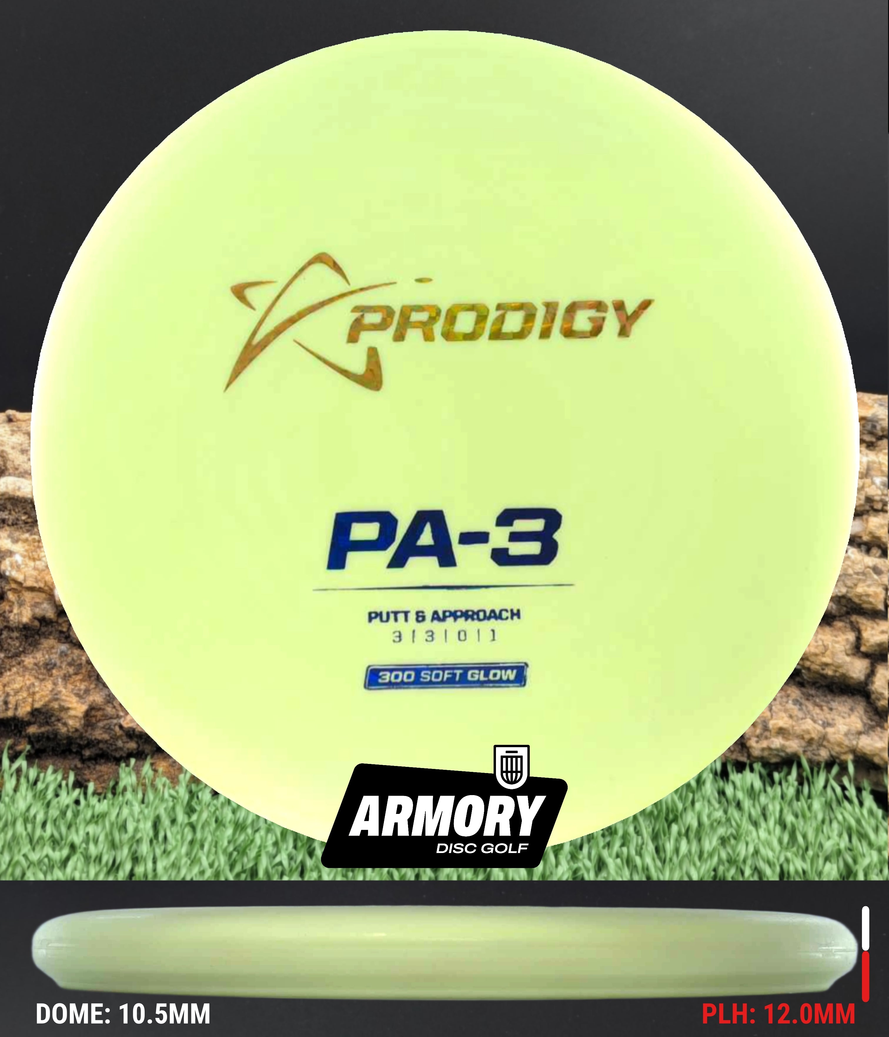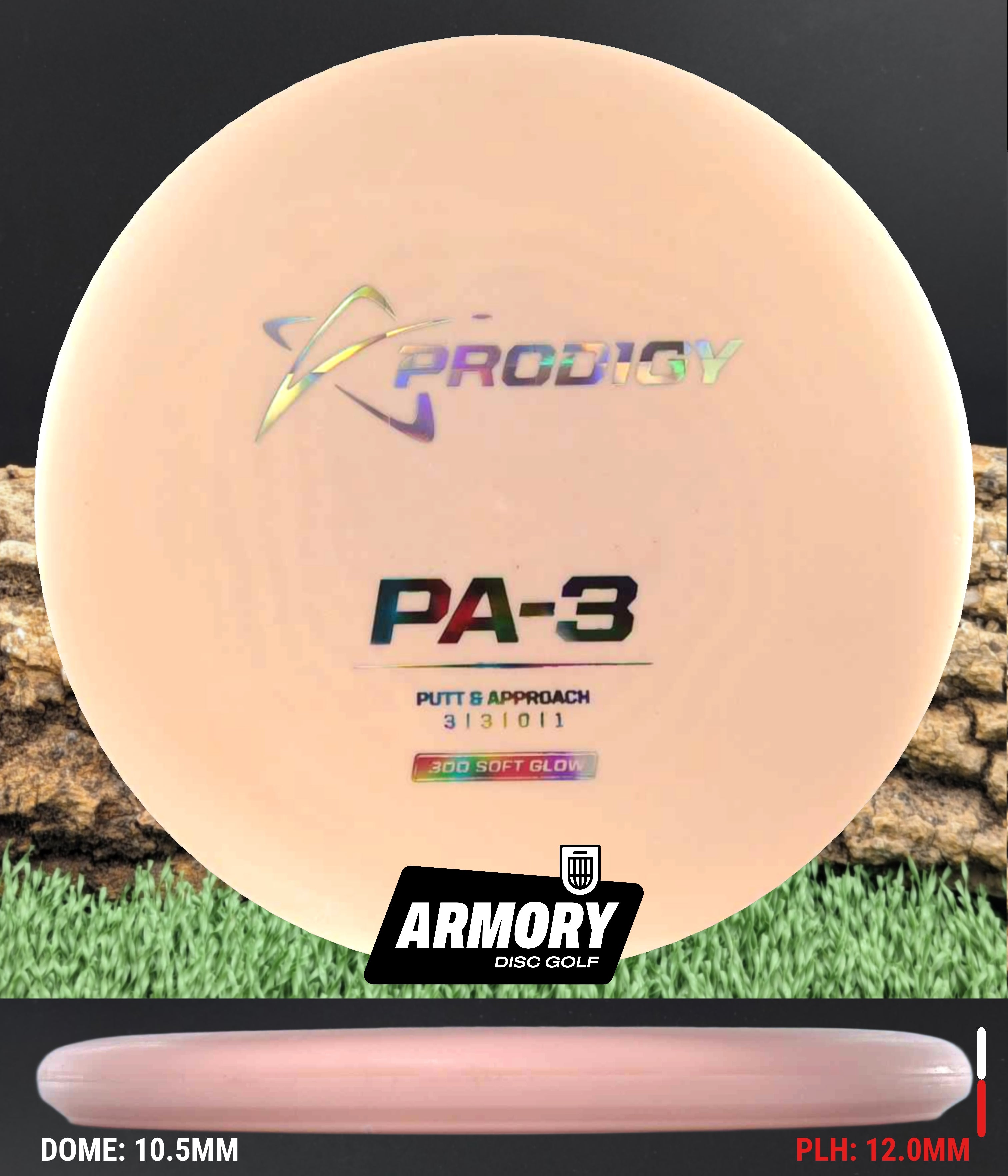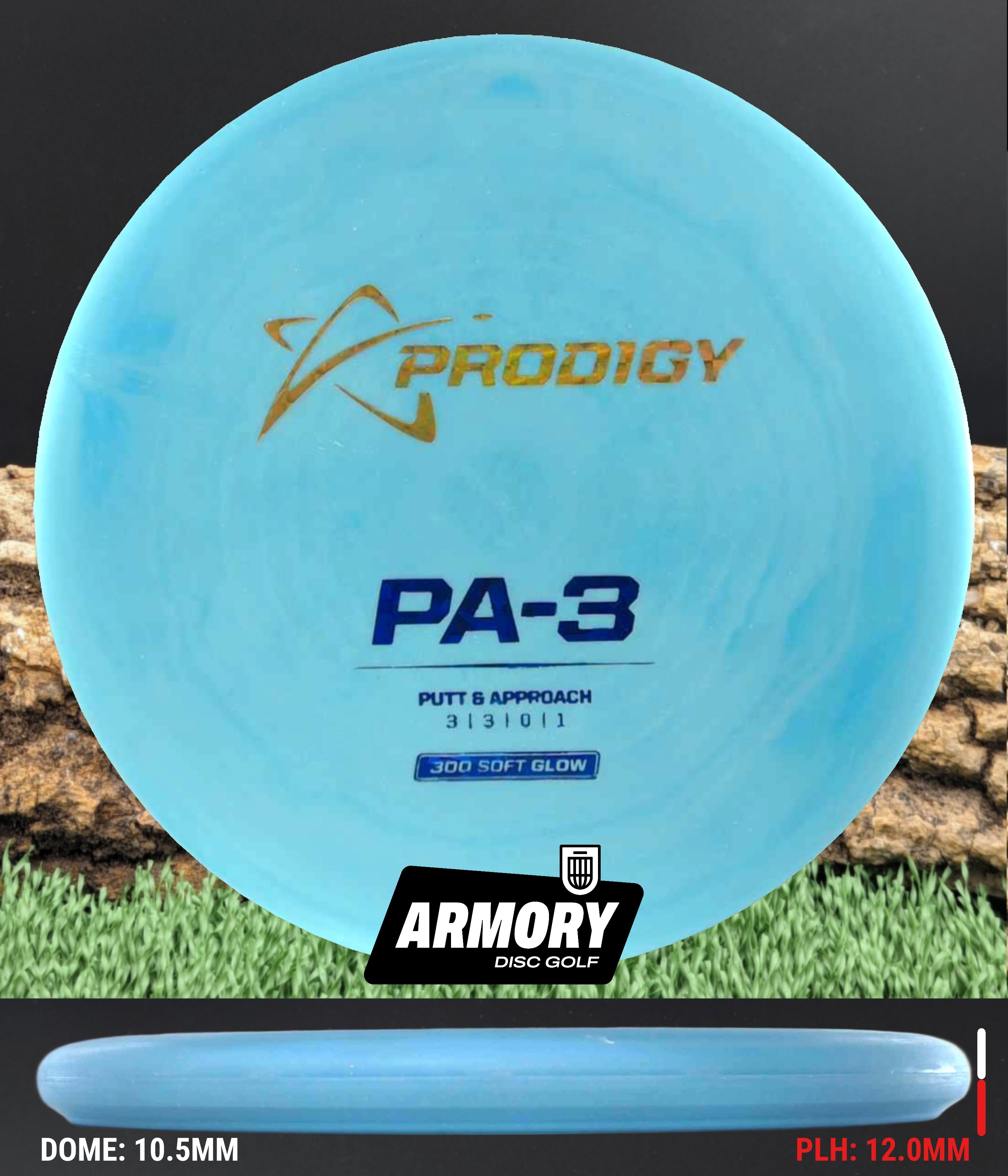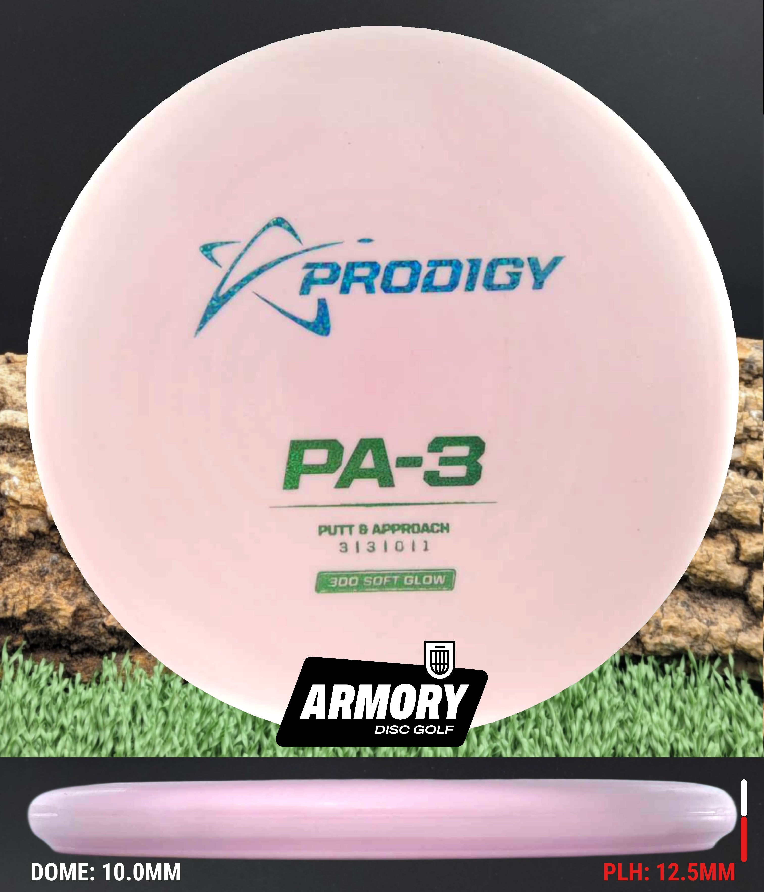 Out of the hand the PA-3 will feel confident and controlled: it tracks straight, resists unwanted turn, and lands with a predictable finish. Whether you’re lining up a calm circle 1 putt, powering a short tee shot, or needing an approach disc that will sit where it lands, the PA-3 in 300 Soft Glow is built to make those shots easier.
