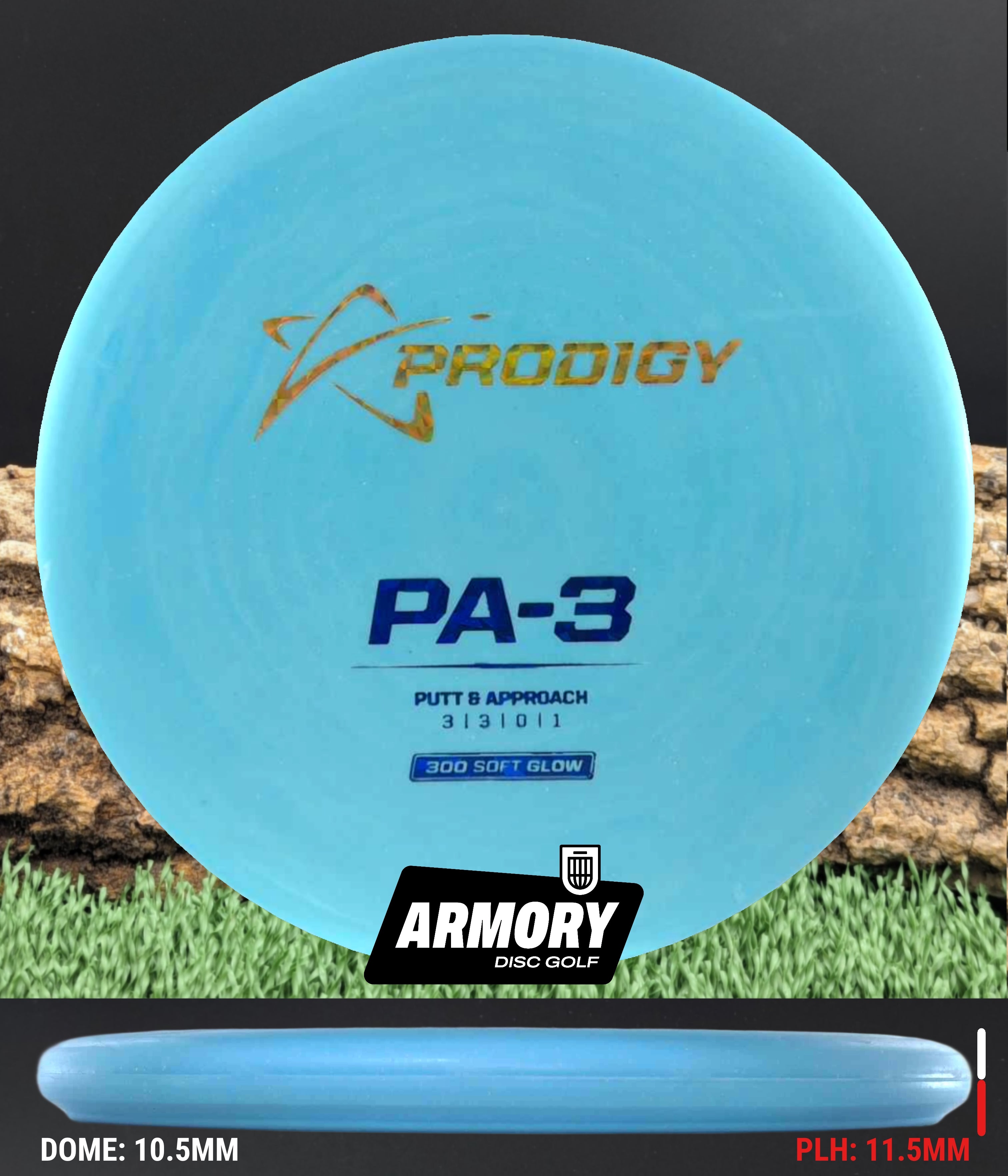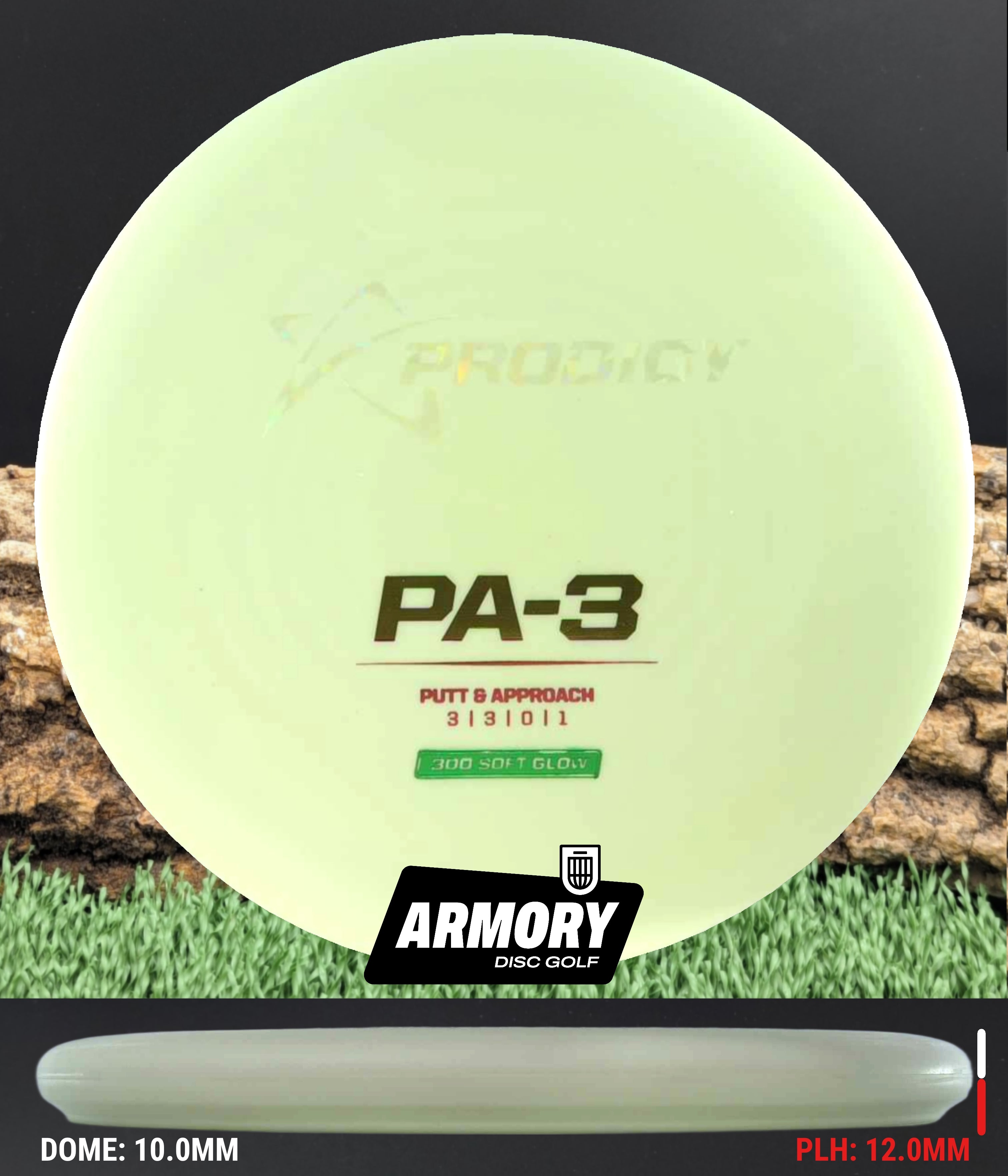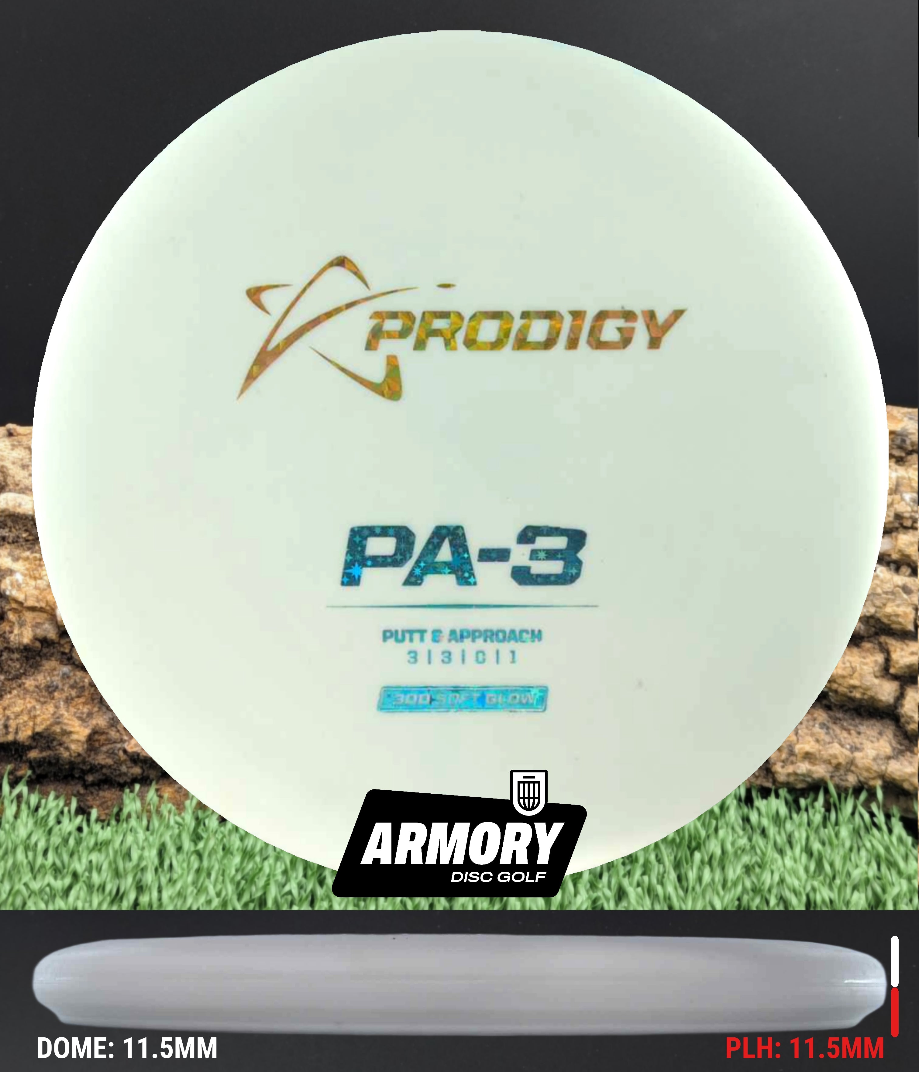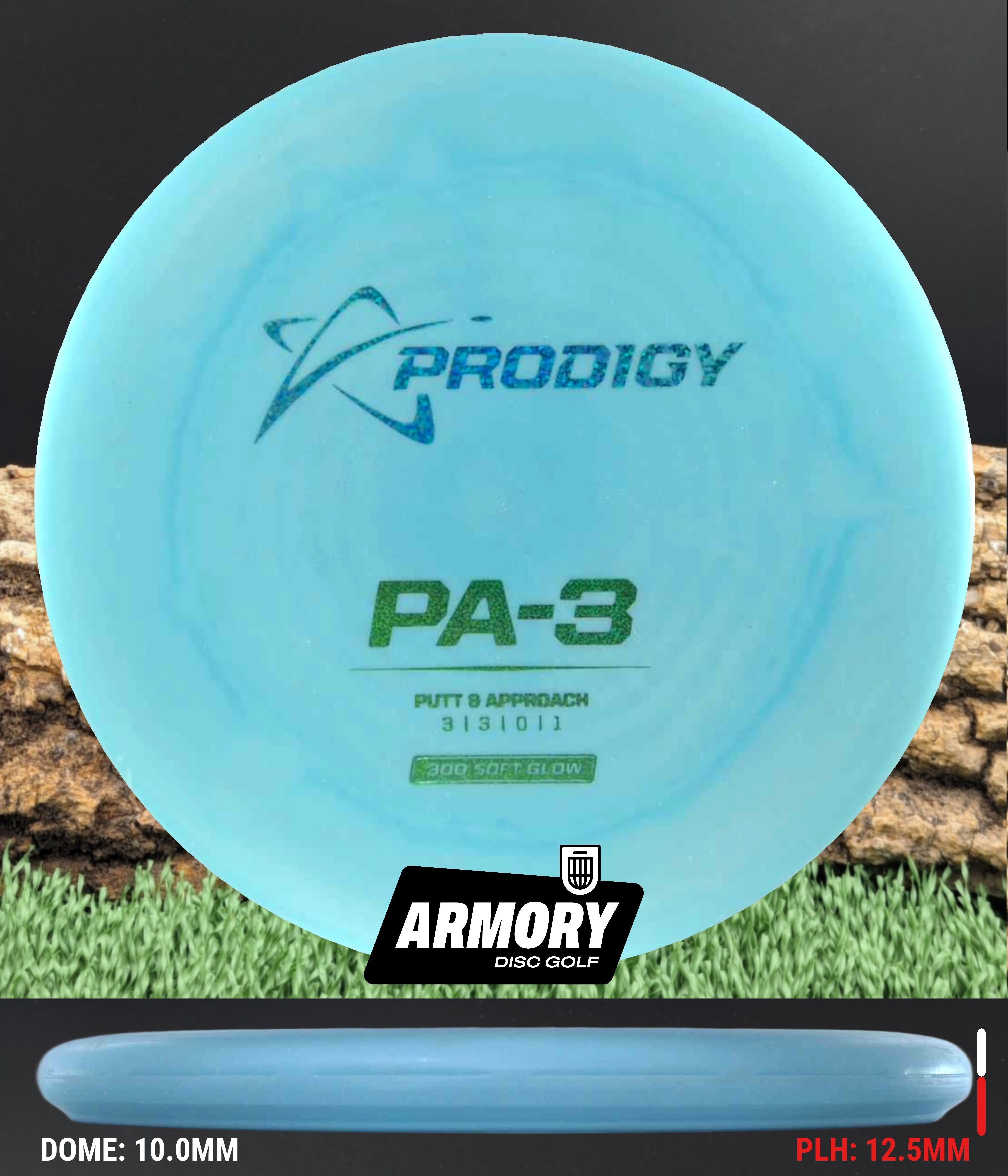 Out of the hand the PA-3 will feel confident and controlled: it tracks straight, resists unwanted turn, and lands with a predictable finish. Whether you’re lining up a calm circle 1 putt, powering a short tee shot, or needing an approach disc that will sit where it lands, the PA-3 in 300 Soft Glow is built to make those shots easier.
