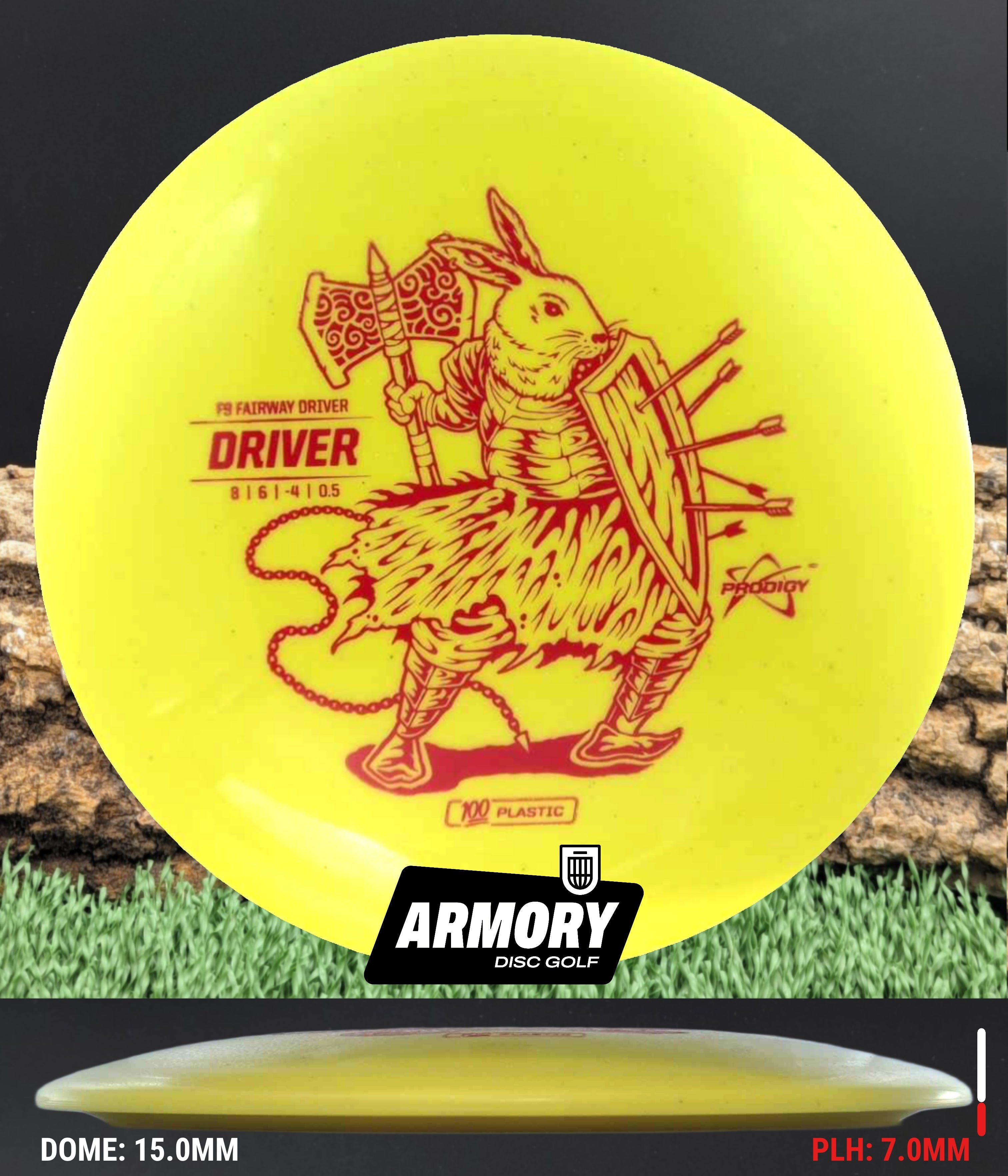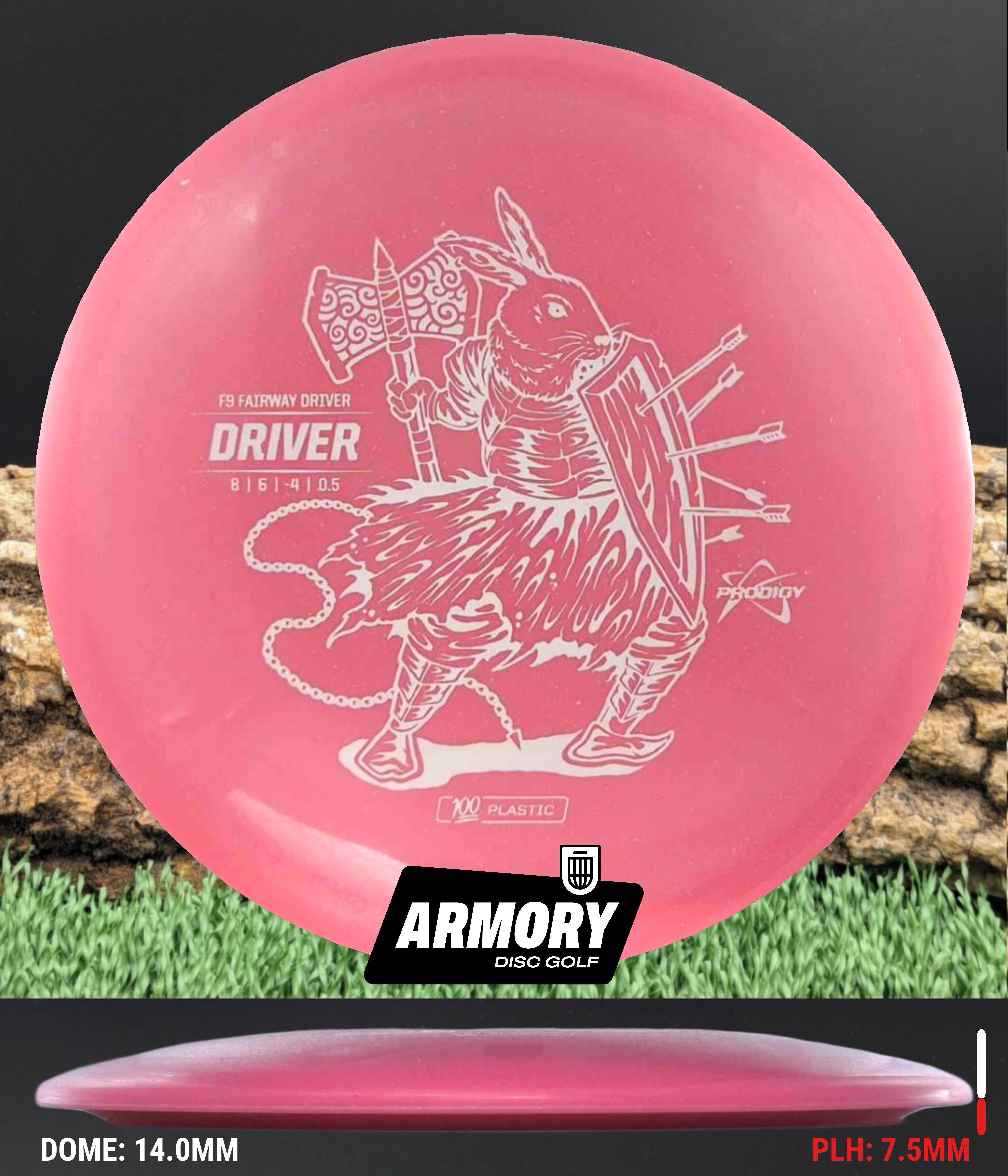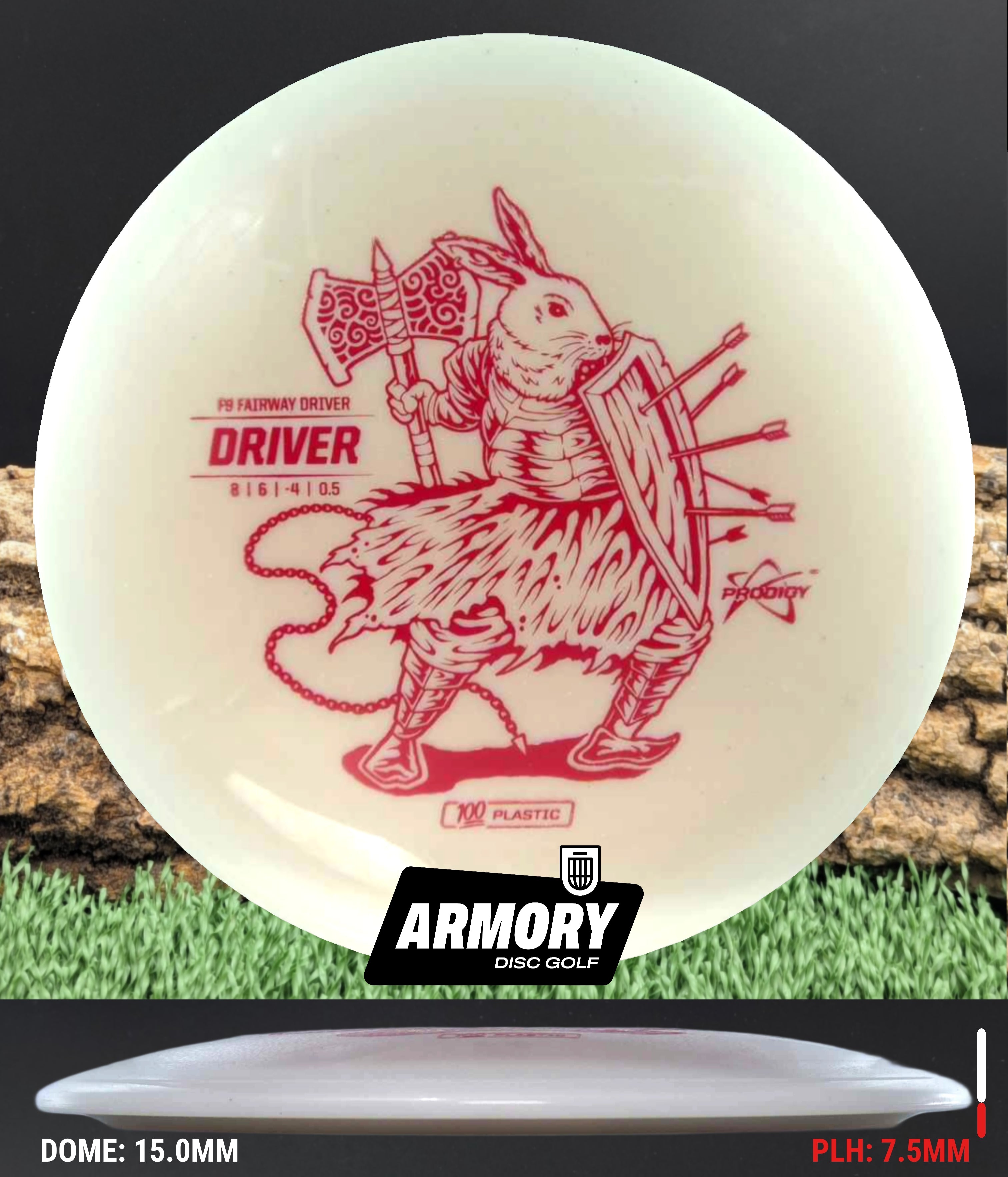 F9 — a controllable fairway driver that hyzer-flips and carries for developing arms.