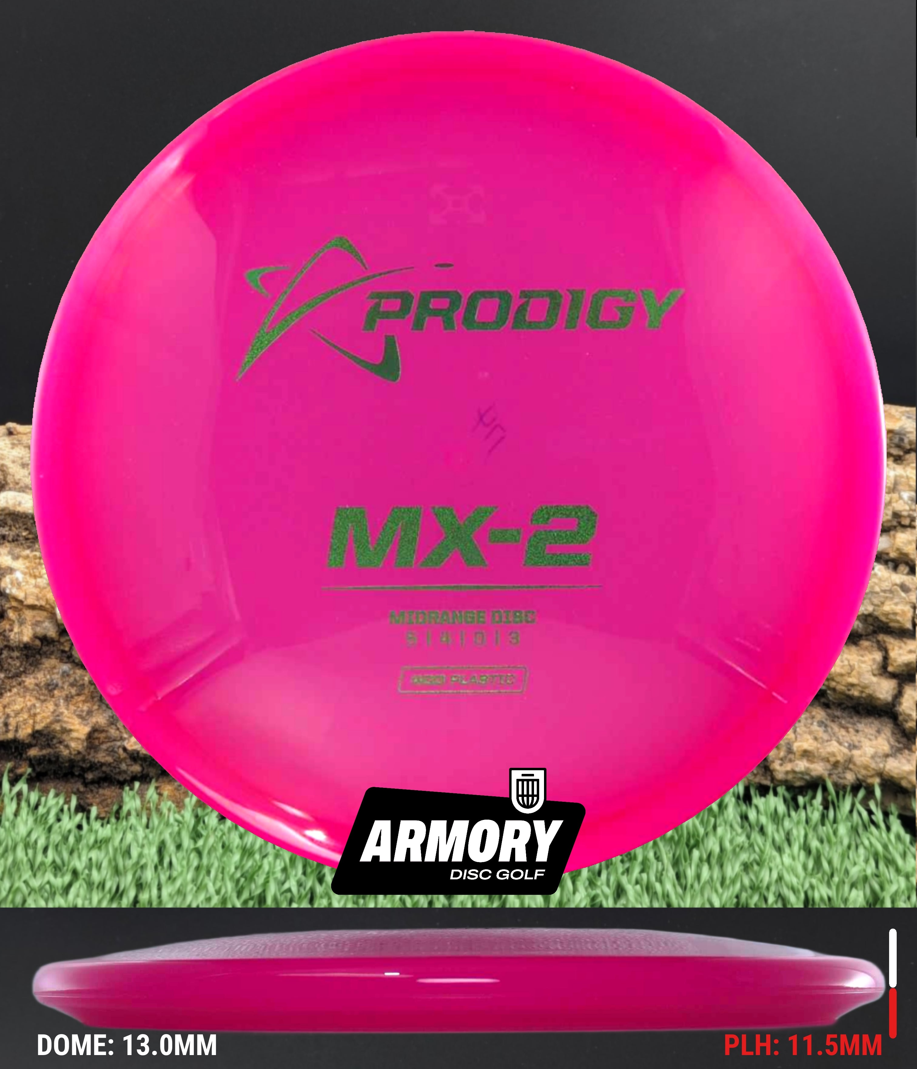 The MX-2 was originally released as an exclusive model for Prodigy Club members in the Q3 2023 box, and member feedback was taken to confirm flight numbers and the official name of the disc. For those familiar with our M Series midrange discs, the MX Series midranges are slightly smaller in diameter and slimmer in profile. The MX-2 packs a similar stability to the M1, but with more glide and a later fade in its flight path. It is slightly more overstable than the Isaac Robinson Archive and has a more rounded edge to the rim than an Archive or MX-1.