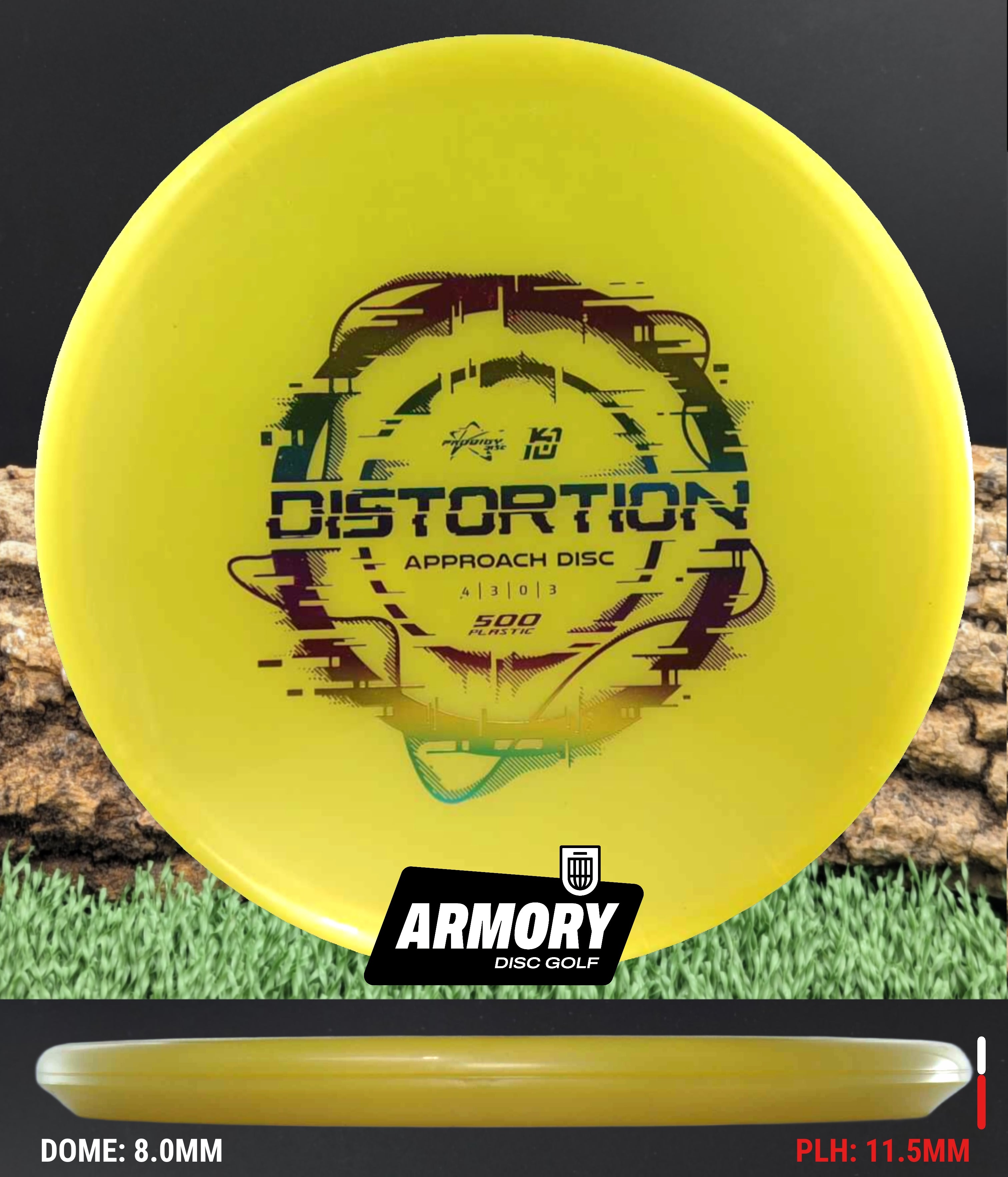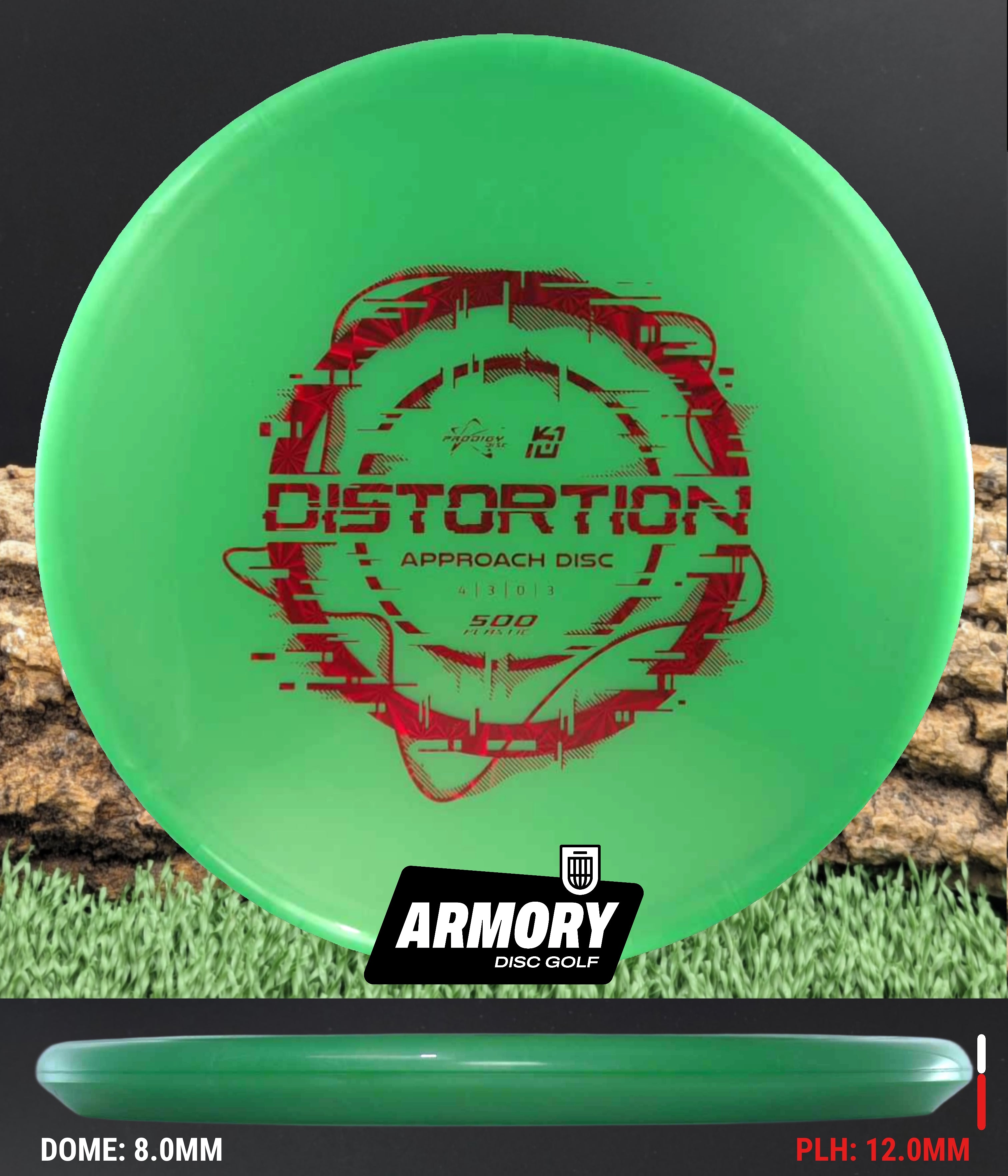 The Distortion is an overstable approach disc in the Prodigy Collabs Series. It was created in partnership with Kevin Jones. It has a smooth, rounded feel and a slightly slimmer profile than putters traditionally used for putting. It has the overstable characteristics Kevin was looking for in a reliable approach disc, and will finish toward the basket consistently. The Distortion is comfortable whether you're going backhand or forehand, and you'll quickly see why it's Kevin's go-to when he's looking to find his way onto the green.