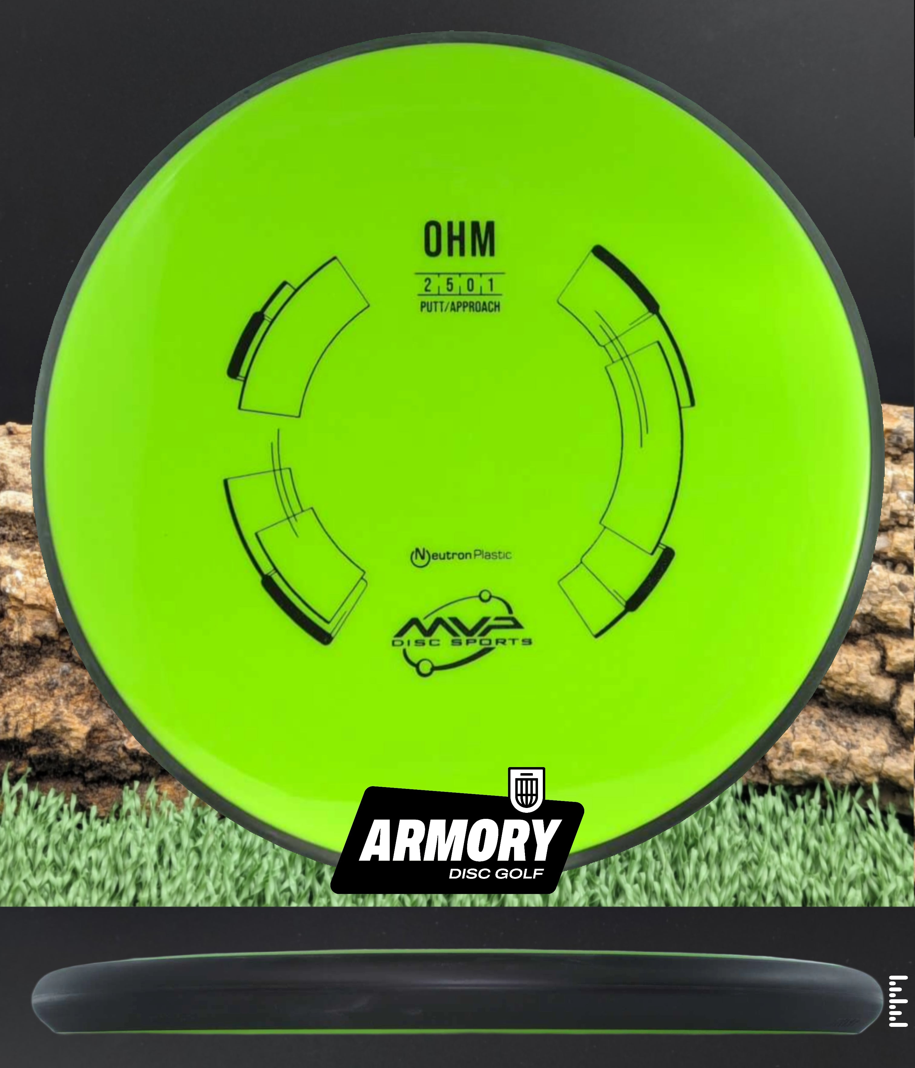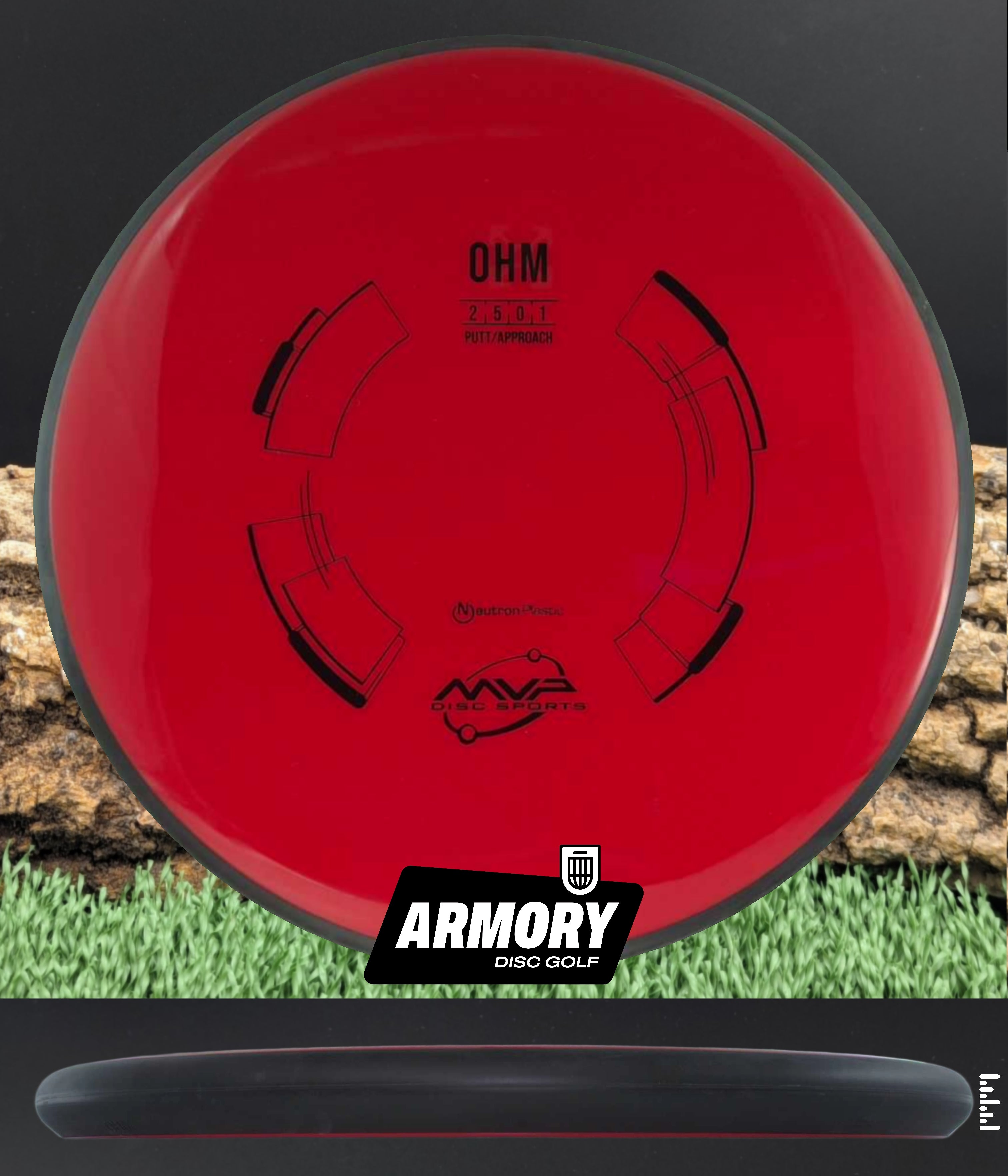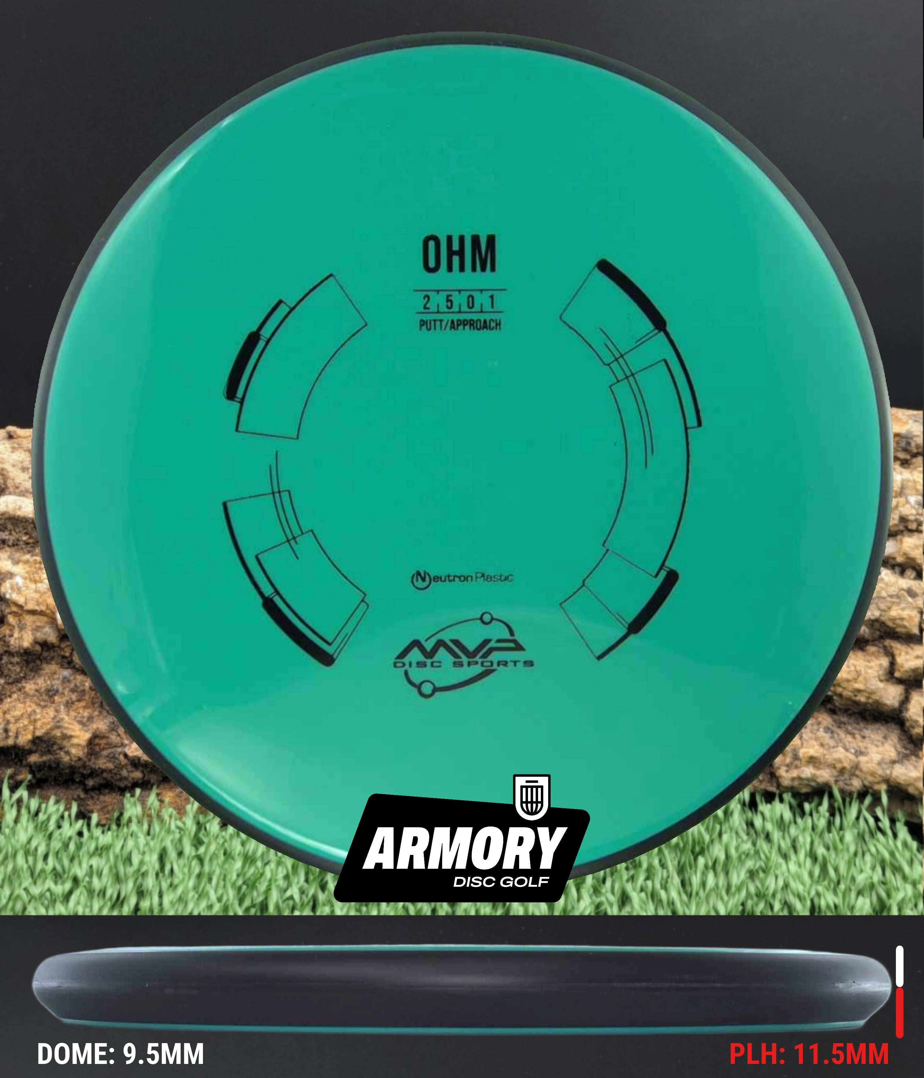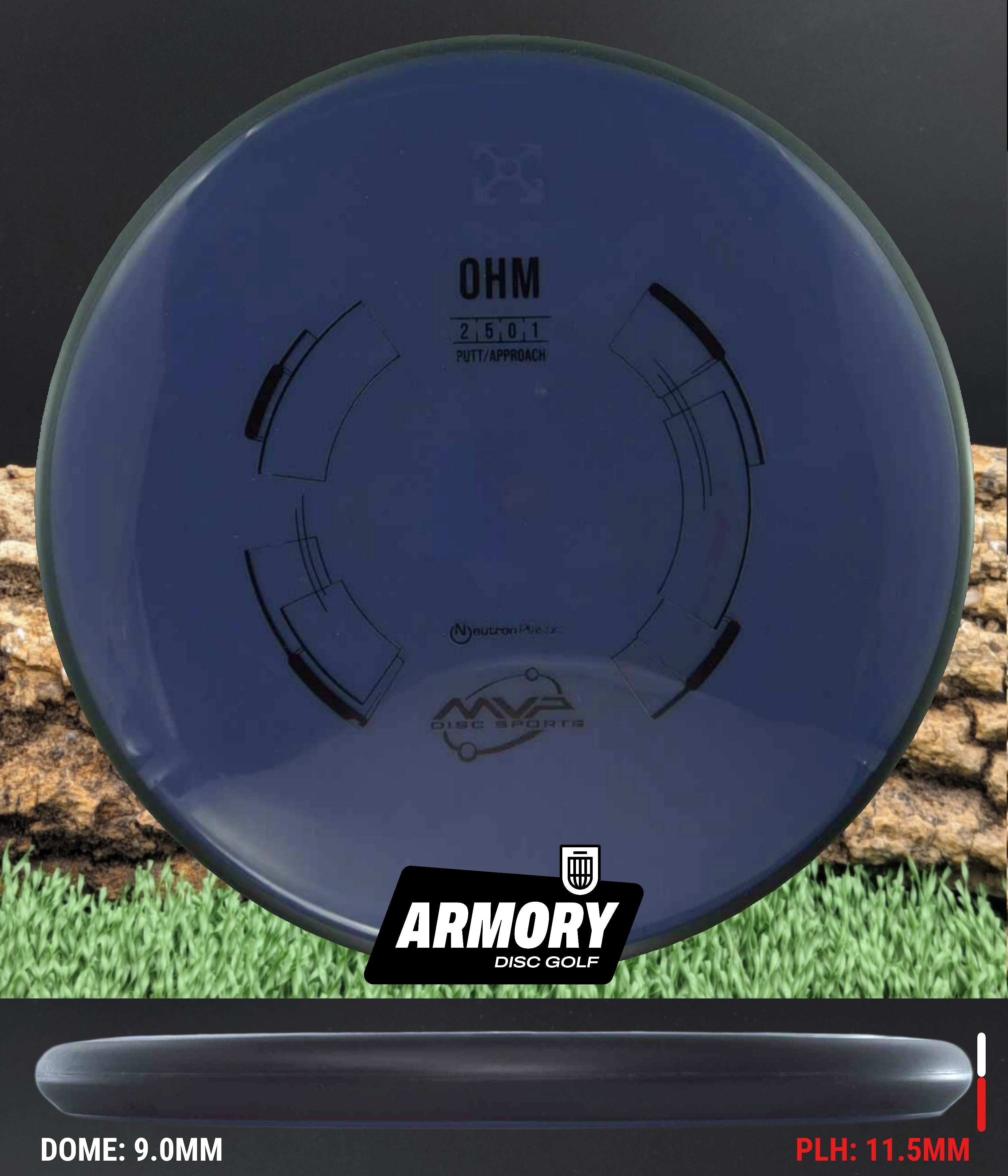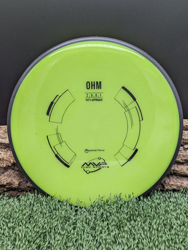 Laser straight drives and confident putts are the best ways to describe the brand new Ohm from MVP. Debuting in Neutron plastic, the Ohm is inspired by the Streamline fan-favorite Pilot, but with enhanced GYRO® effect. The results are incredible! The tried and true shape provides both a reliable grip and loads of glide for some truly impressive drives and putts. The Ohm is sure to find a place in every disc golfer’s bag and, thanks to the durability of Neutron plastic, stay there.