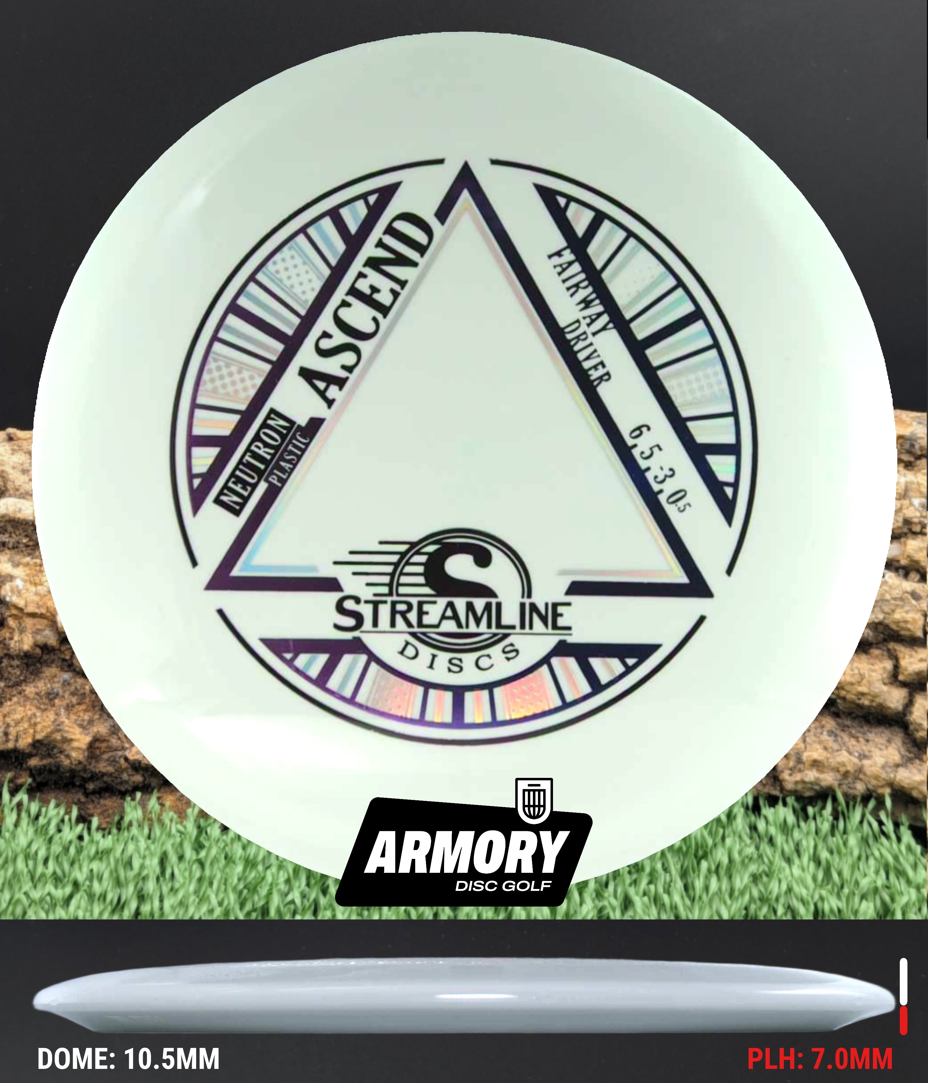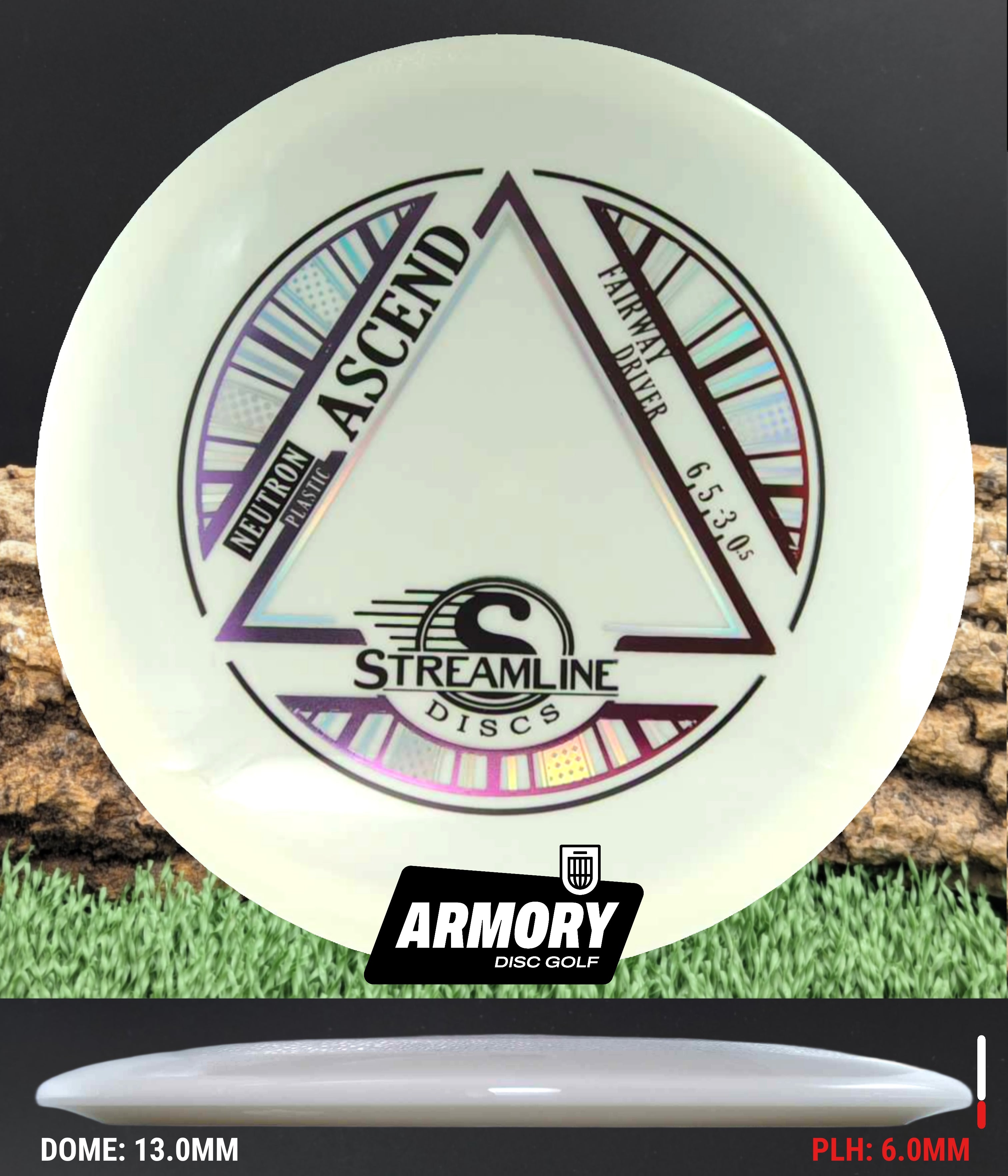 The Ascend is here to lift your understable fairway game to new levels! With a speed of 6, glide of 5, turn of -3, and a fade of 0.5, the Ascend is a truly understable fairway driver designed for players of all skill levels. Players who are learning the game will love the Ascend’s easily attainable straight flights and, thanks to its glide, surprising distance for a fairway driver. Experienced and higher power players will appreciate the controllable turn the Ascend has to offer — allowing them to carve a lot of lines from hyzer angles and launch massive turnovers. With that easy flight, comfortable feel in the hand, and the tremendous Streamline Neutron plastic, the Ascend will find a place in any bag!