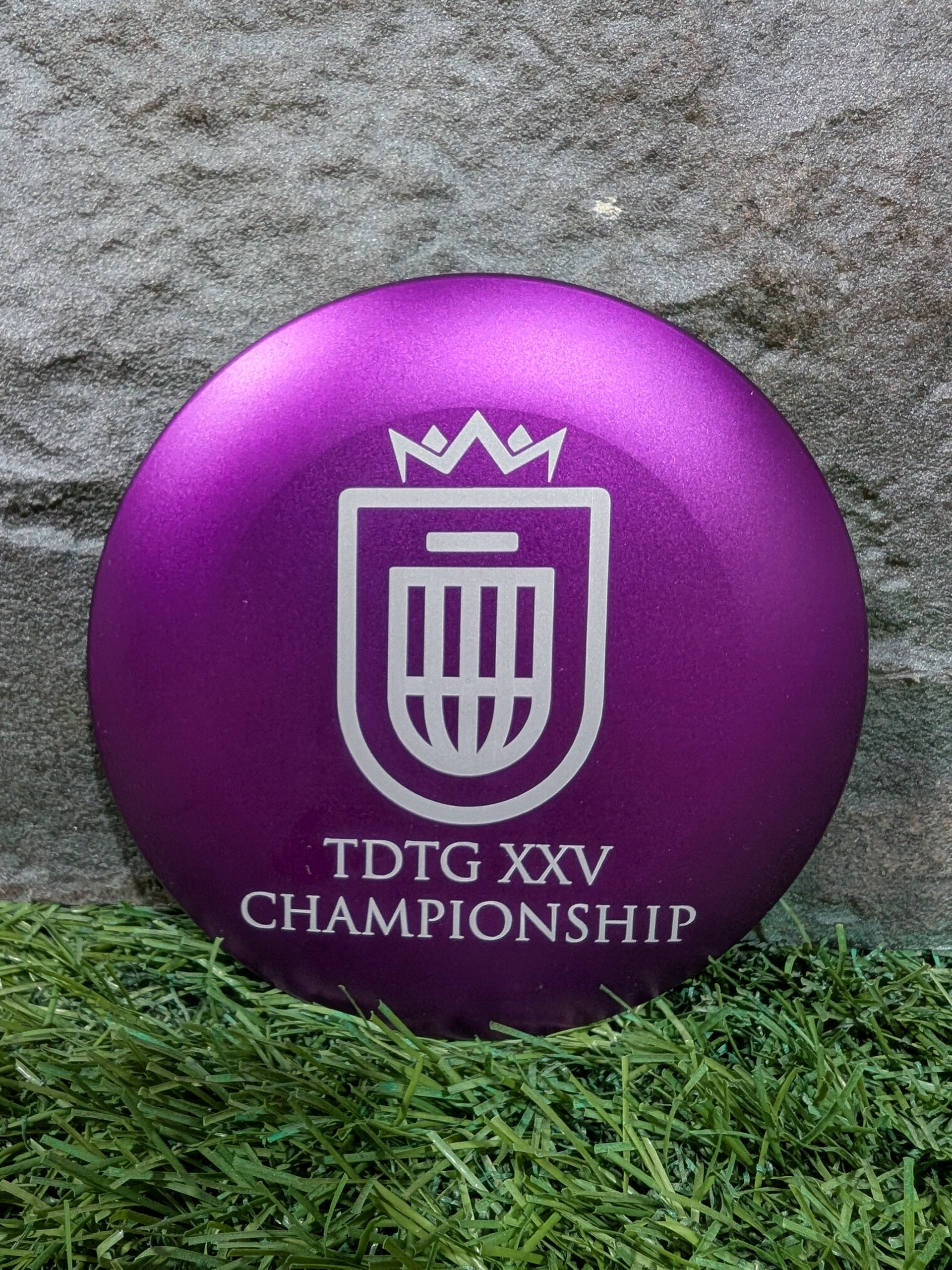 Carry the mark of a champion. The TDTG XXV Championship Metal Mini is a precision-crafted commemorative piece built to perform as good as it looks. Machined from anodized aluminum, this 10 cm mini combines sleek aesthetics with the feel of a true driver — setting it apart from traditional flat minis.