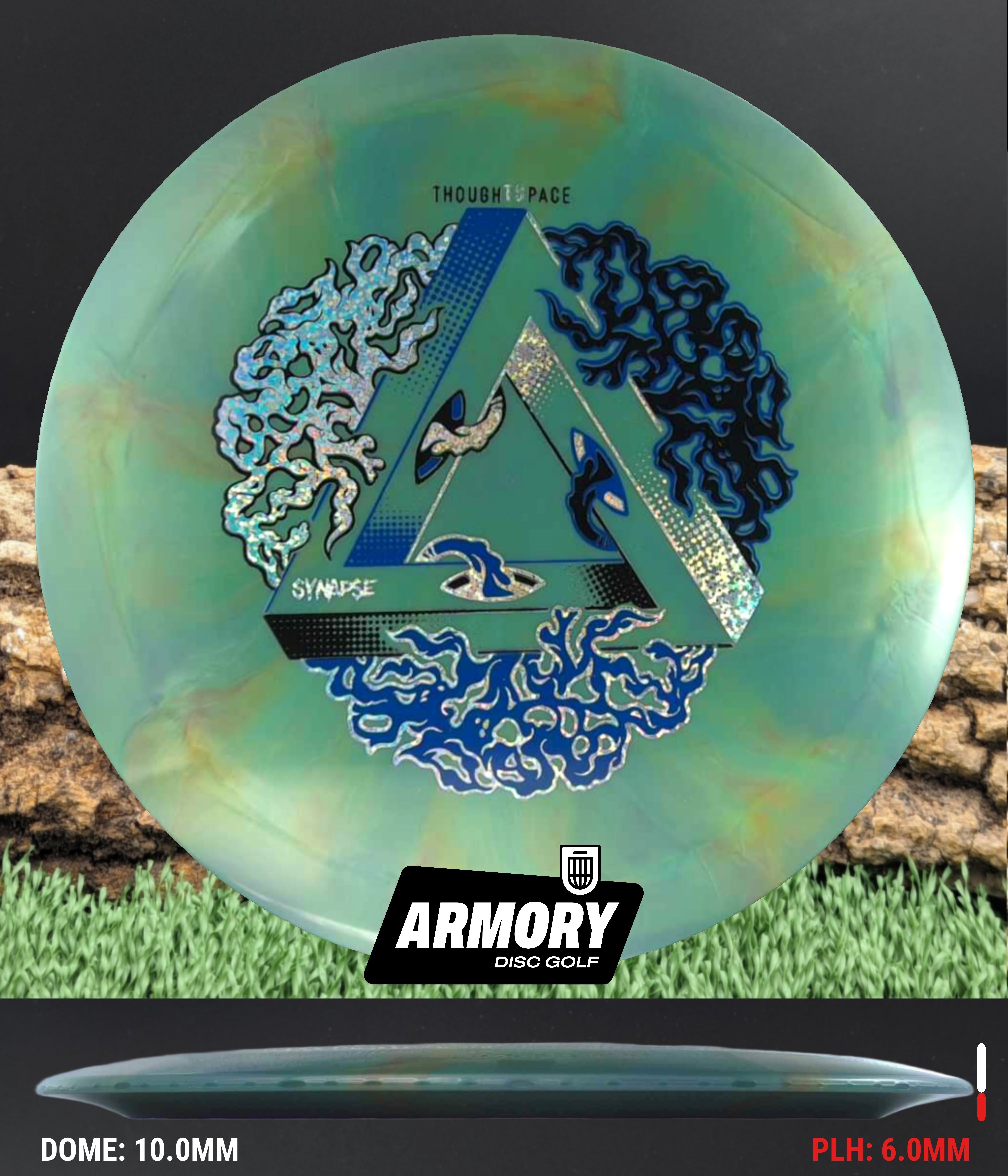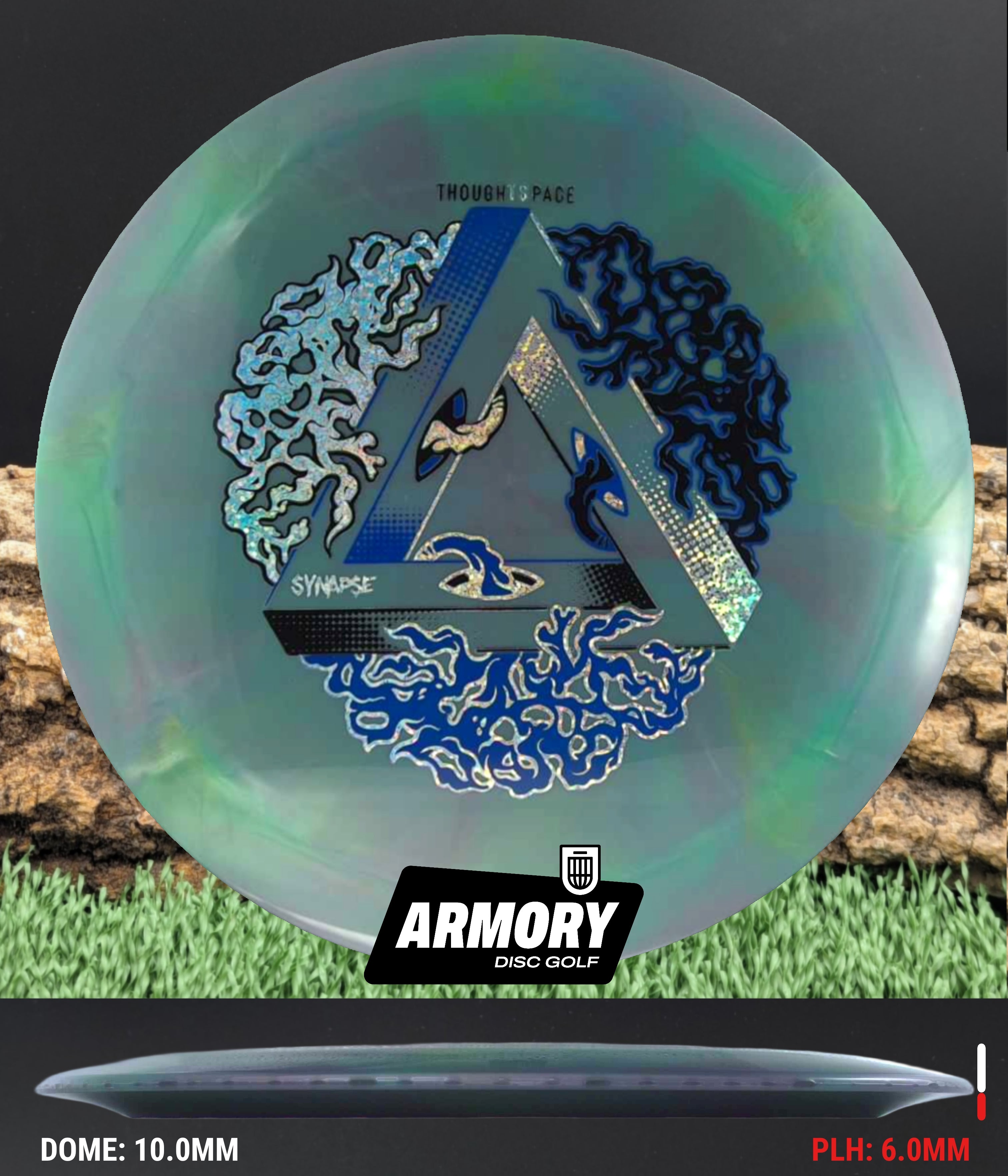 Striking a harmonious balance between distance and accuracy, the Synapse is the flagship entry into the true "pro" distance driver slot for Thought Space Athletics. It is stable enough to handle big arm speed or a stiff headwind, with just a hint of high-speed turn. The Synapse finds its equilibrium as the reliably stable long-bomber in your bag.