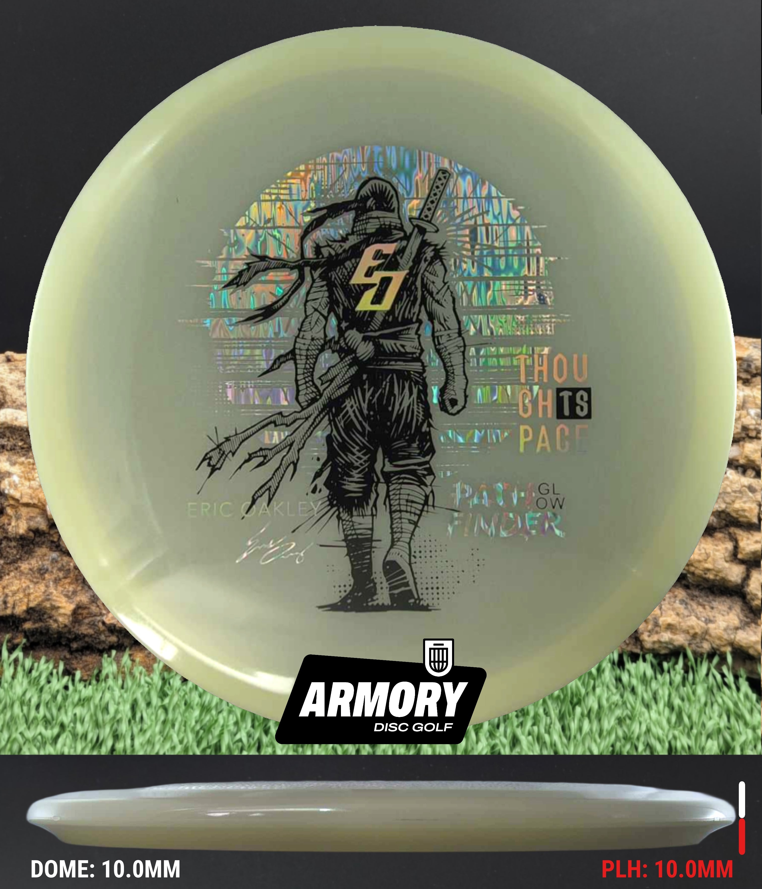After years of touring, connecting with fans, and shaping the disc golf scene with his energy and passion, Eric Oakley is stepping away from the road. To honor his incredible journey, Thought Space Athletics proudly presents the Glow Pathfinder – Final Chapter Signature Edition.