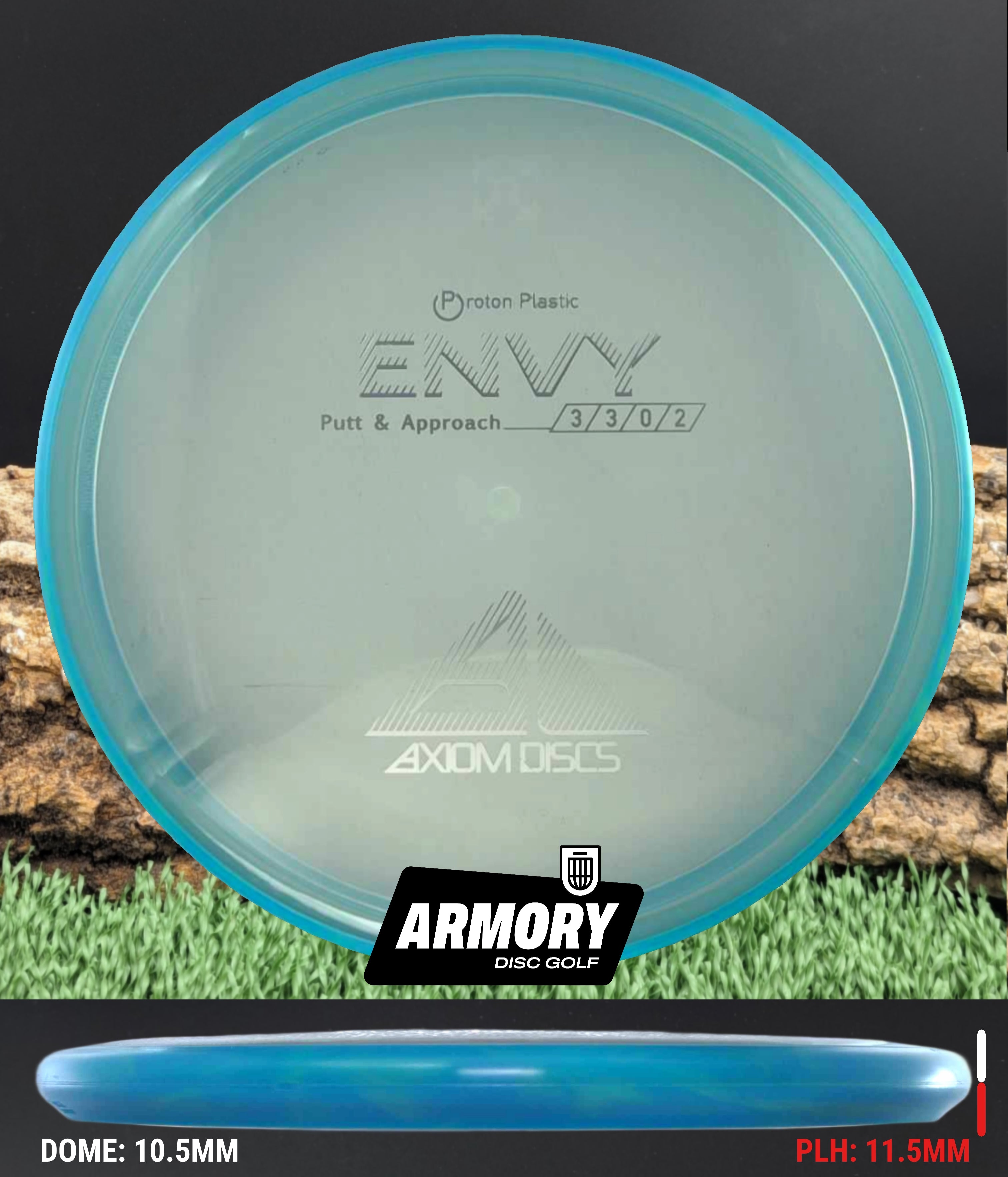 The Proton Envy is the classic straight-to-stable throwing putter you can trust on tight lines and placement approaches. It comes out clean, pushes forward, and finishes with a dependable, on-time fade—equally confident on backhand or forehand. If you need a point-and-shoot driving putter that holds angle without dumping early, the Envy delivers.