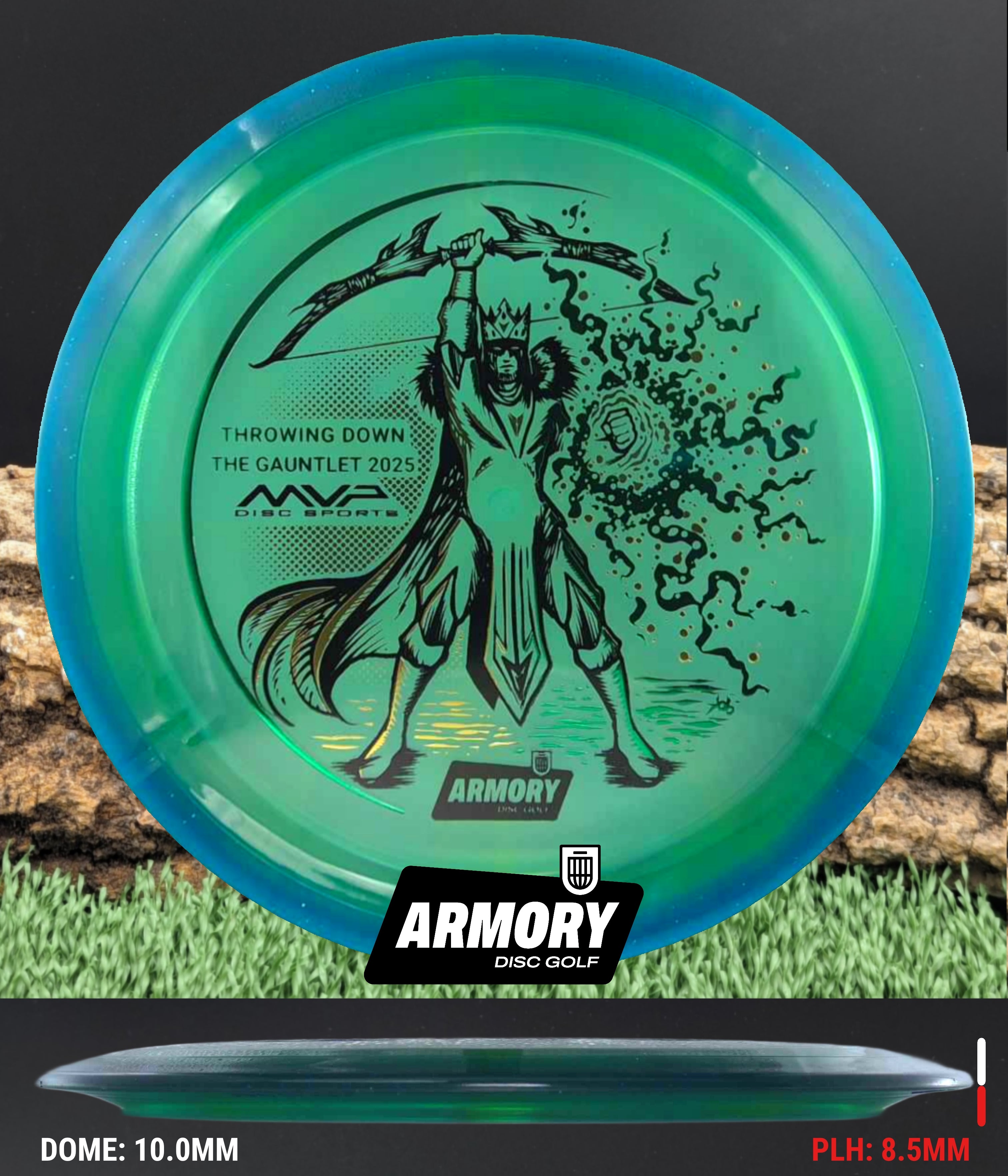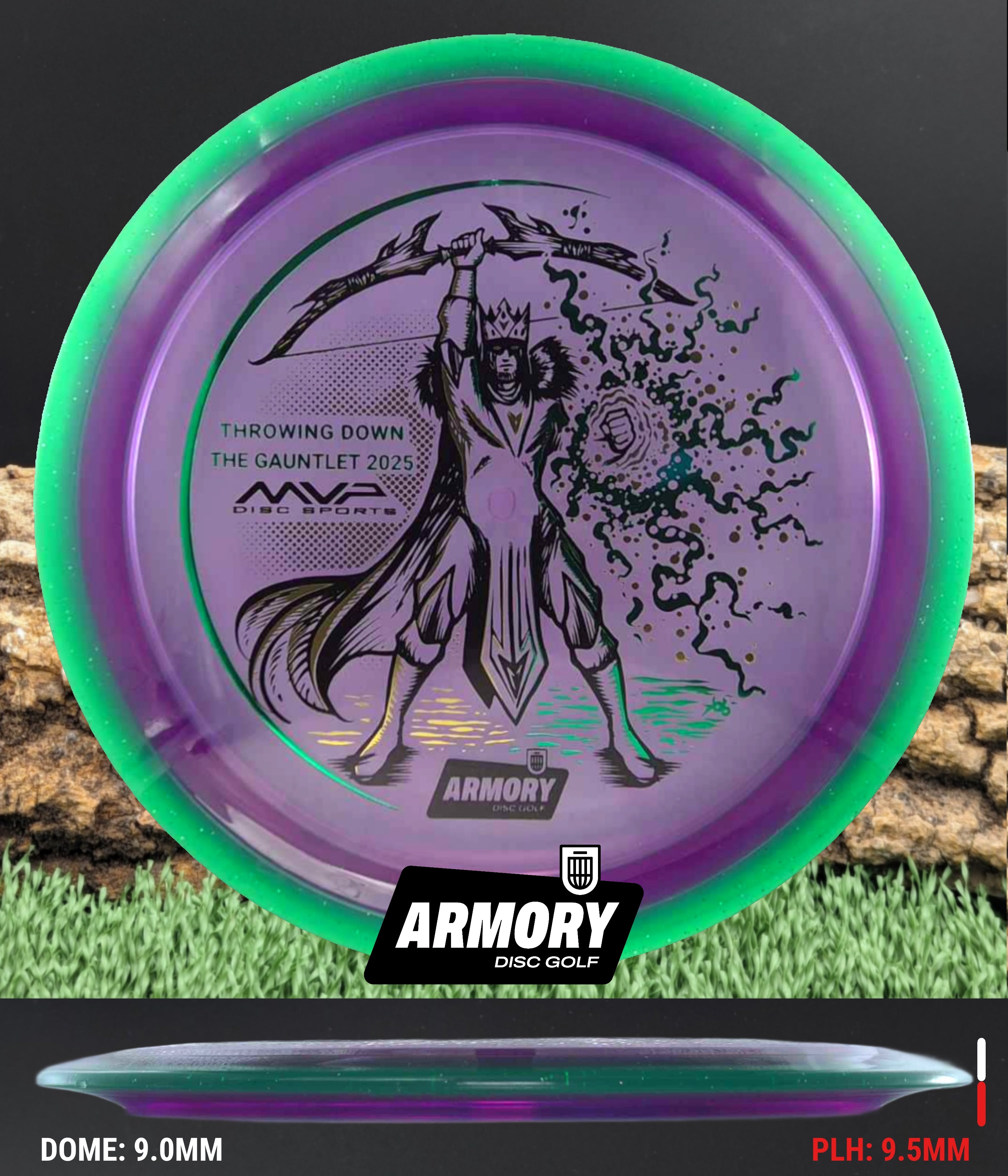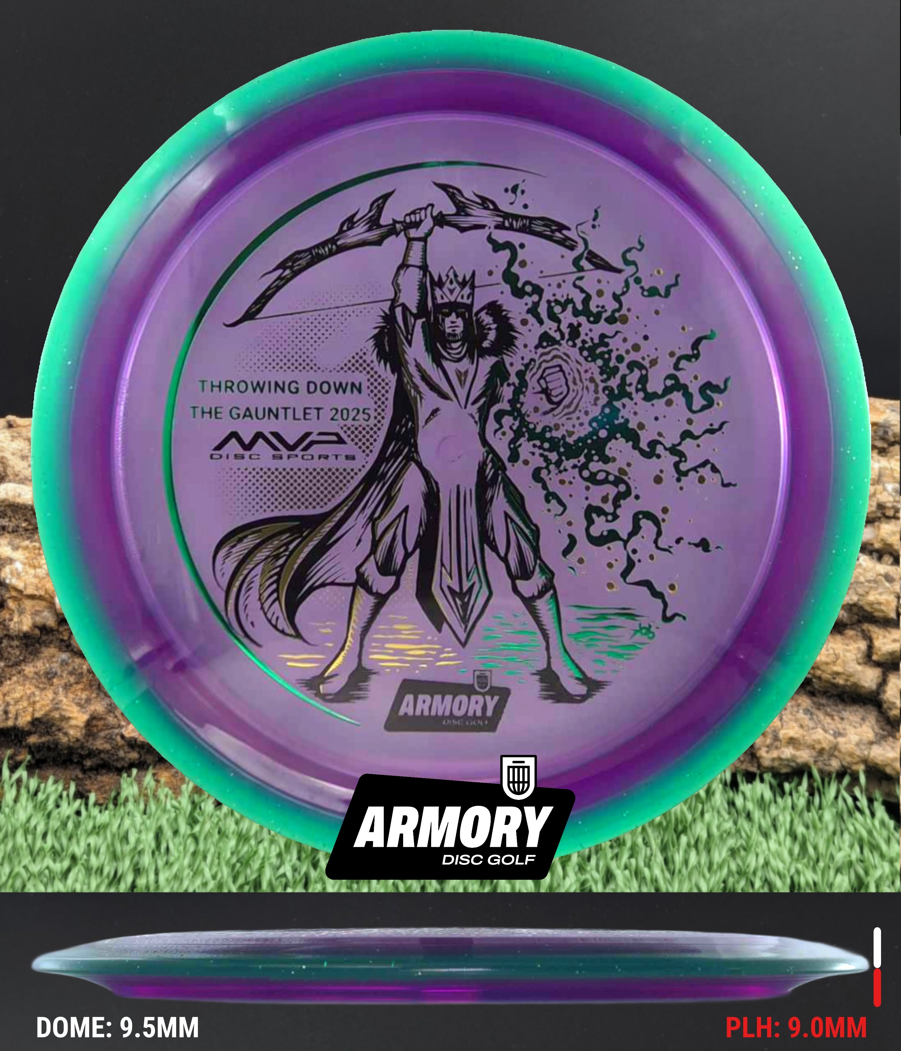 Celebrate the 2025 Championship with the Prism Proton Soft Vanish, featuring an exclusive 3-foil design (black, gold, and emerald) by Kelly “KoB” Baber. The stamp depicts a crowned Syndicate general standing victorious, bow raised high and magical energy extending from his hand — a tribute to precision, strategy, and triumph.