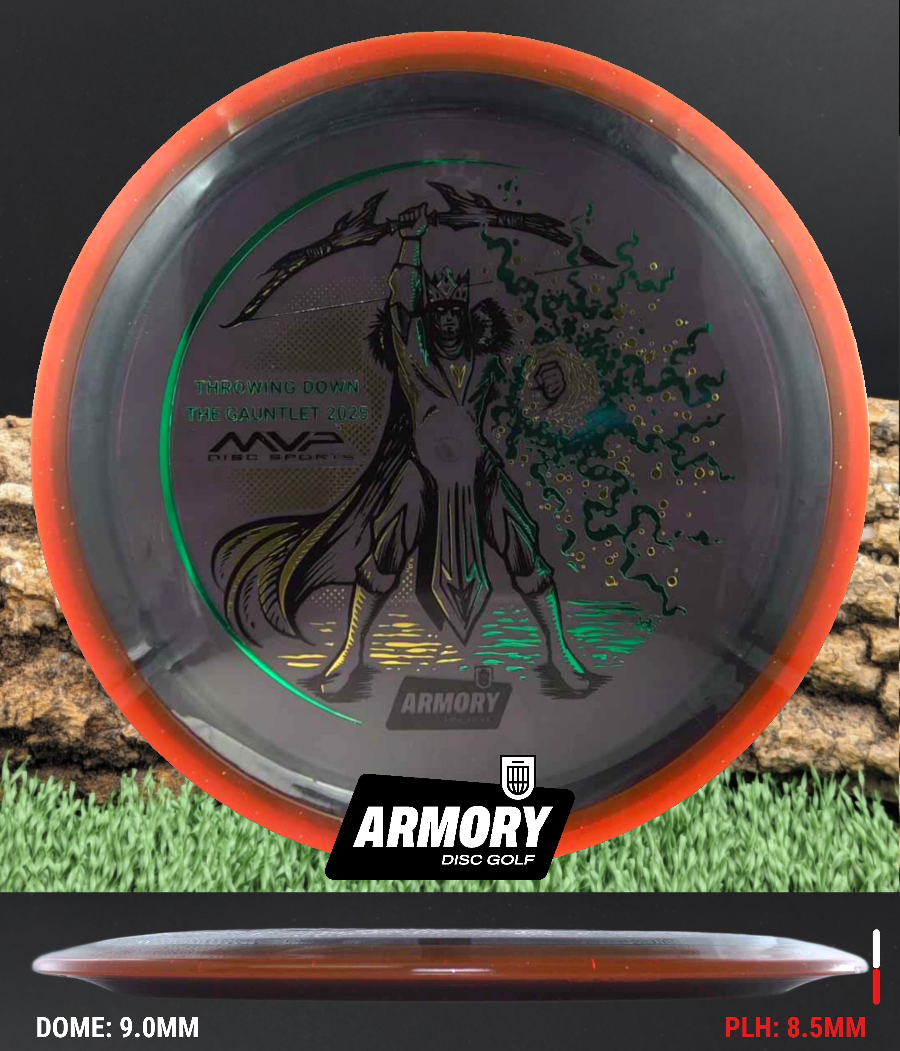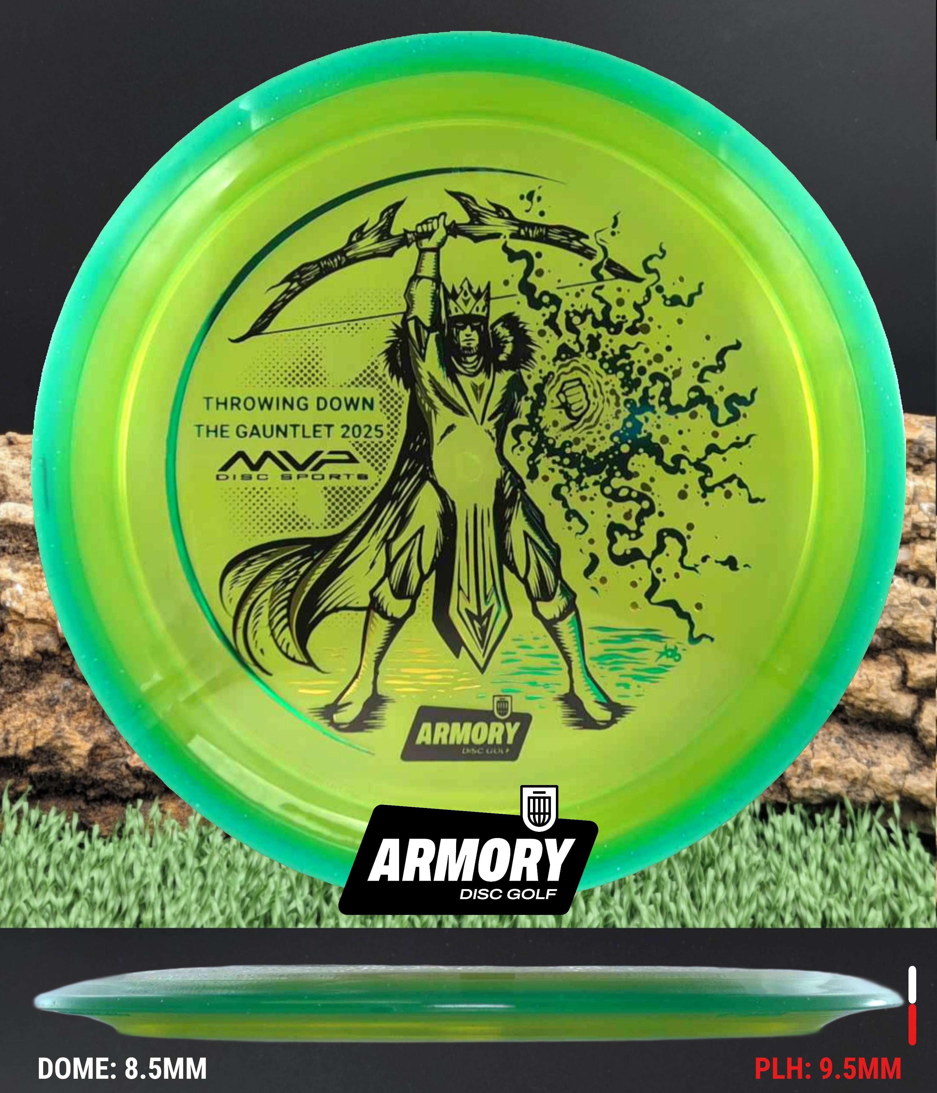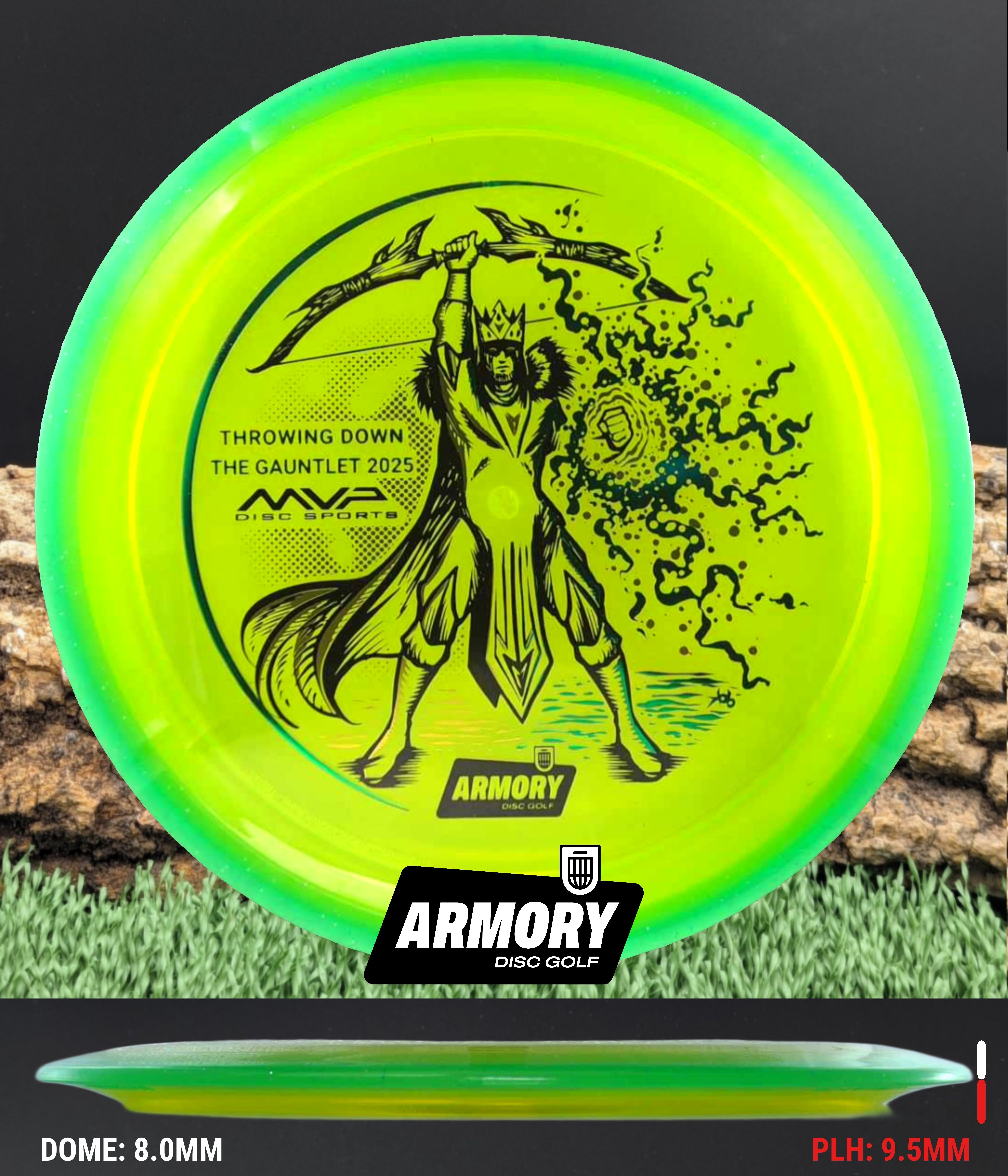 Celebrate the 2025 Championship with the Prism Proton Soft Vanish, featuring an exclusive 3-foil design (black, gold, and emerald) by Kelly “KoB” Baber. The stamp depicts a crowned Syndicate general standing victorious, bow raised high and magical energy extending from his hand — a tribute to precision, strategy, and triumph.