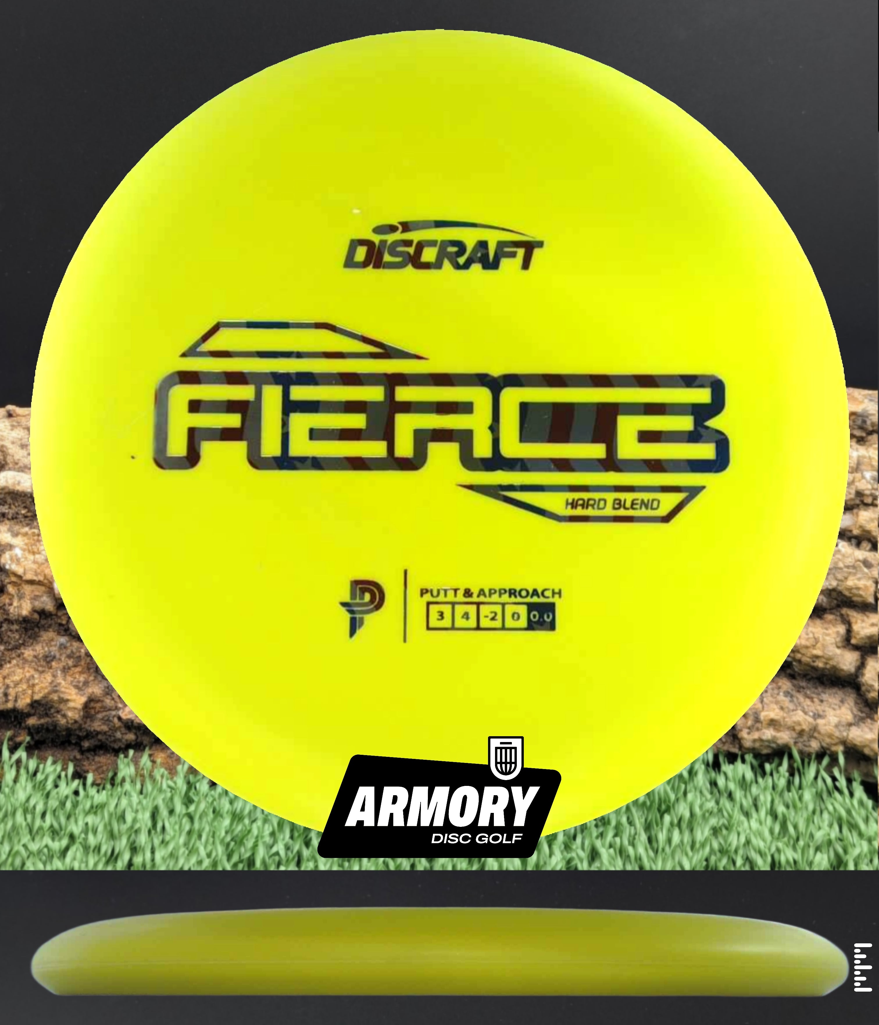 The first disc in the Paige Pierce line, the Fierce putter! The Fierce is a straight flying, understable putter that was designed along with Paige Pierce to create a small diameter putter with a good hand feel for players of all sizes. The Fierce putter demonstrates straight flights with effortless glide and excels at understable turnover approaches. (Rubber blend plastic)
