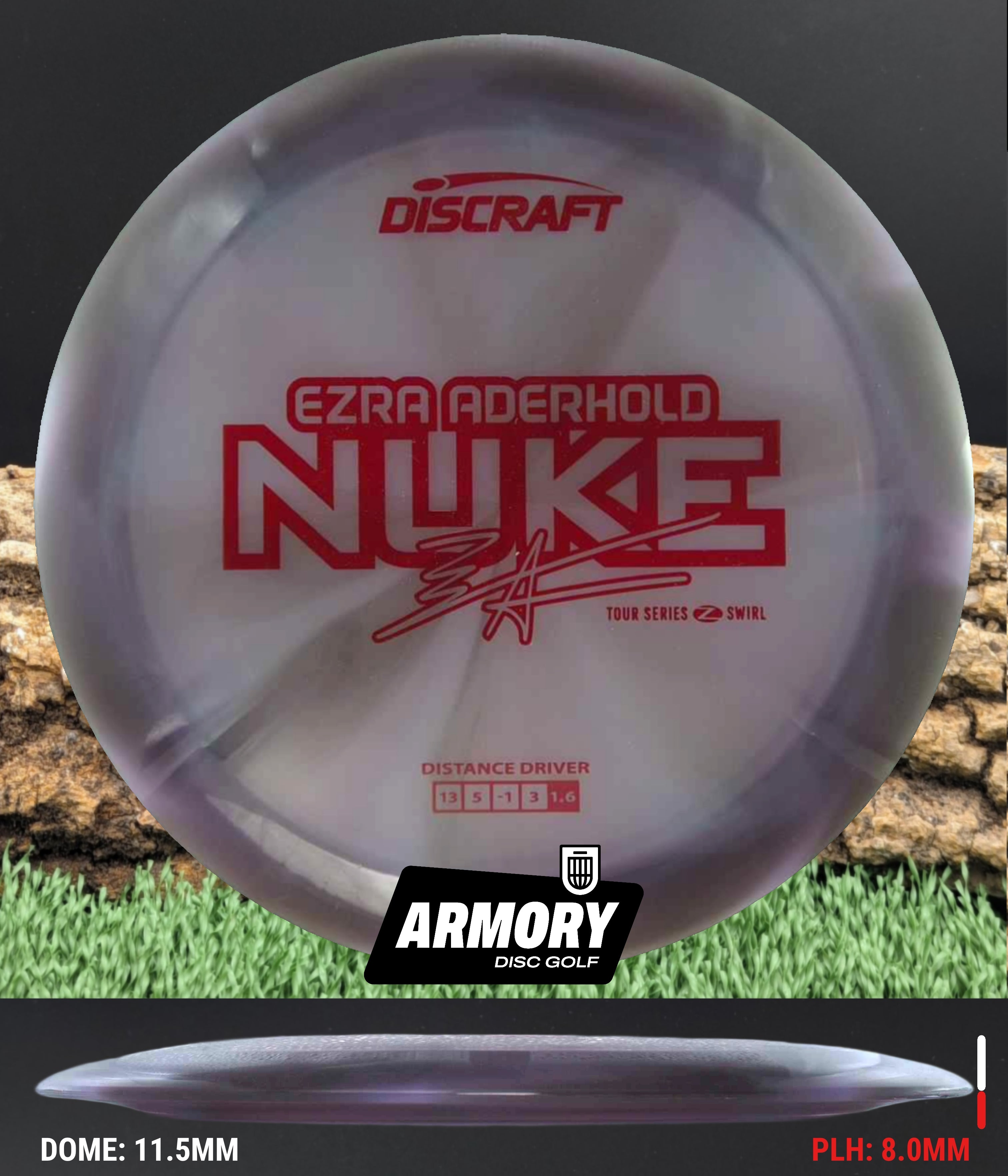 For max distance power, Ezra Aderhold’s Nuke is ready to launch. High-speed arms will love the aggressive turn and reliable fade this disc brings in Z Swirl plastic.