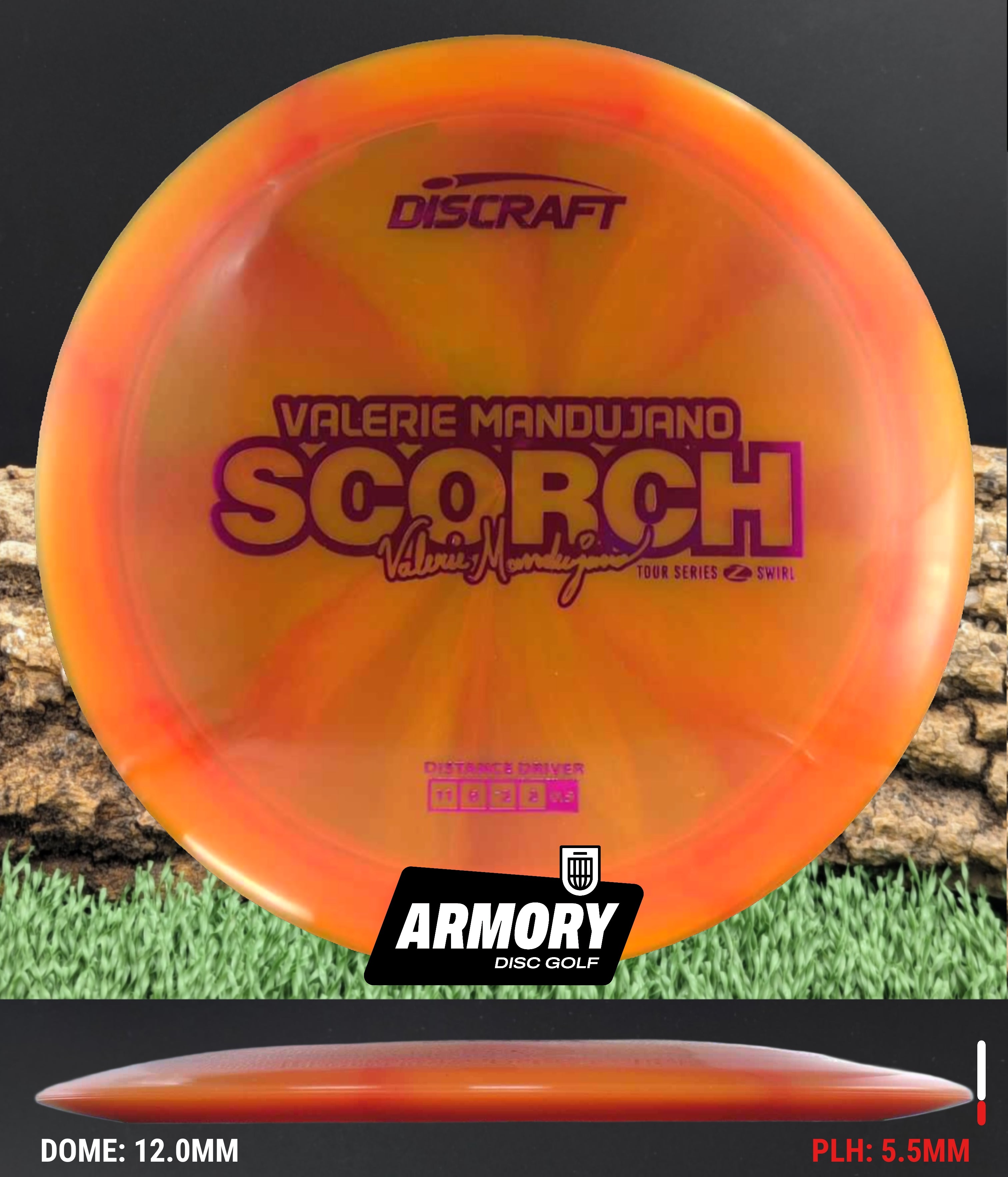 Valerie’s Scorch blends effortless distance with a touch of turn, perfect for players who want the best of both speed and glide. The Z Swirl plastic enhances grip and adds visual flair to an already-loved mold.