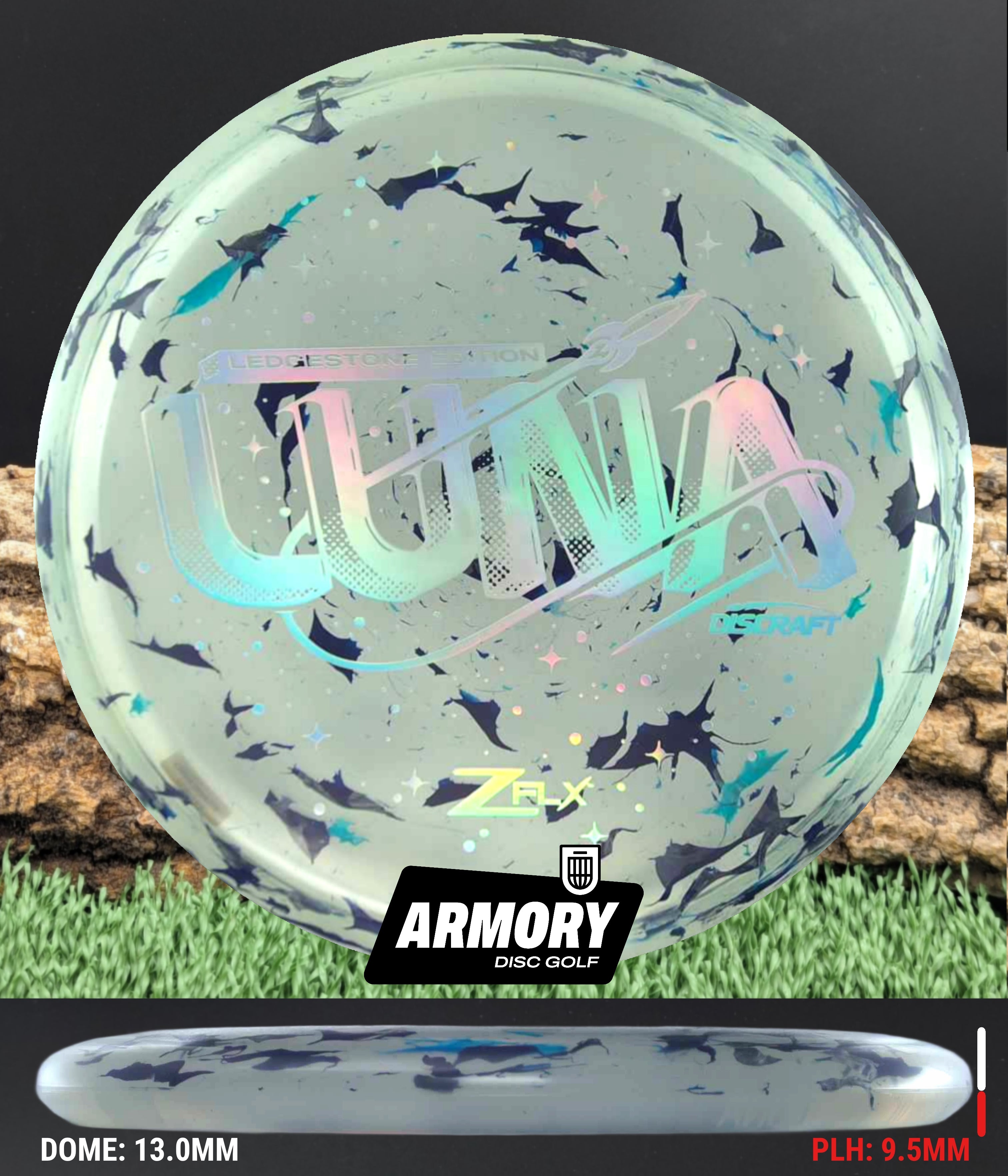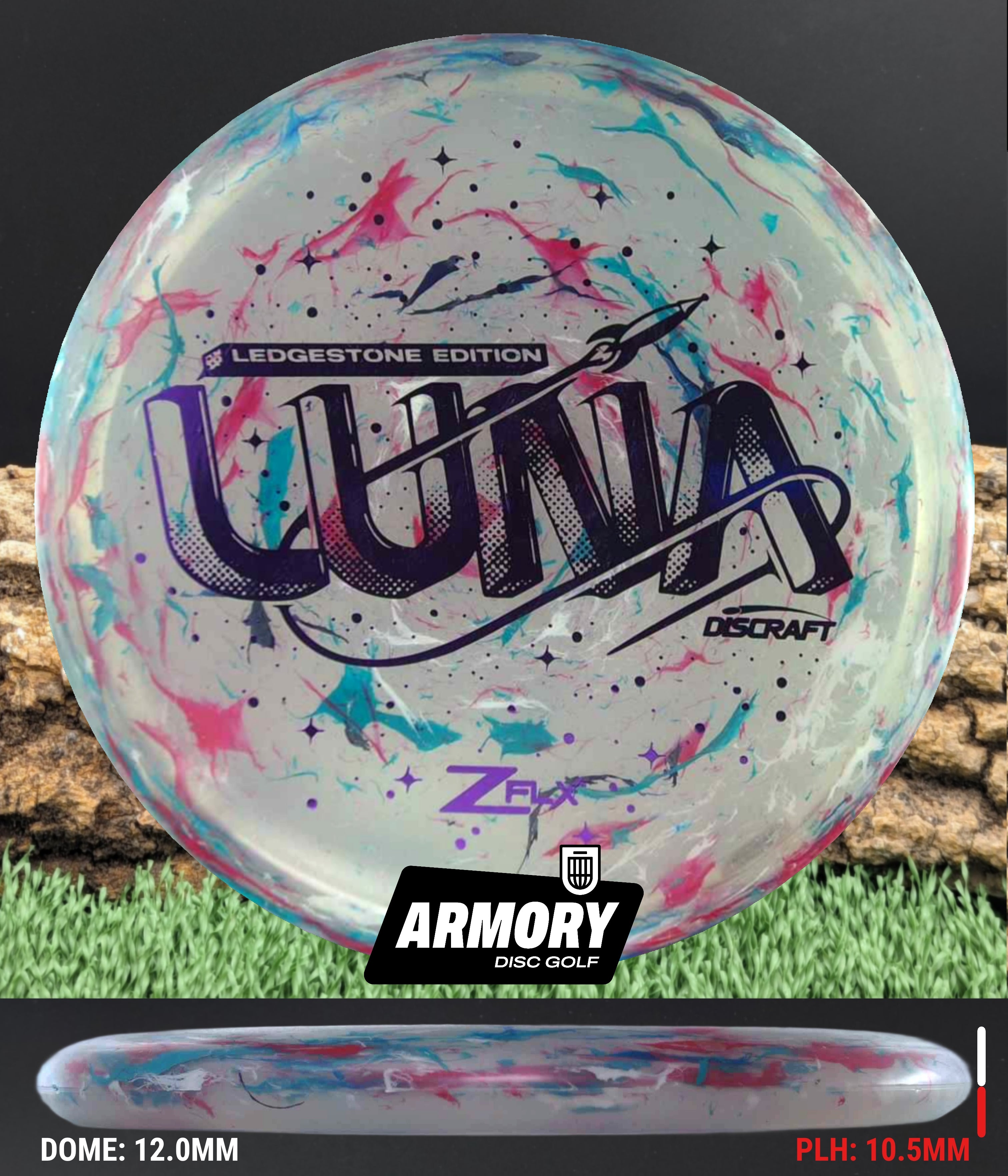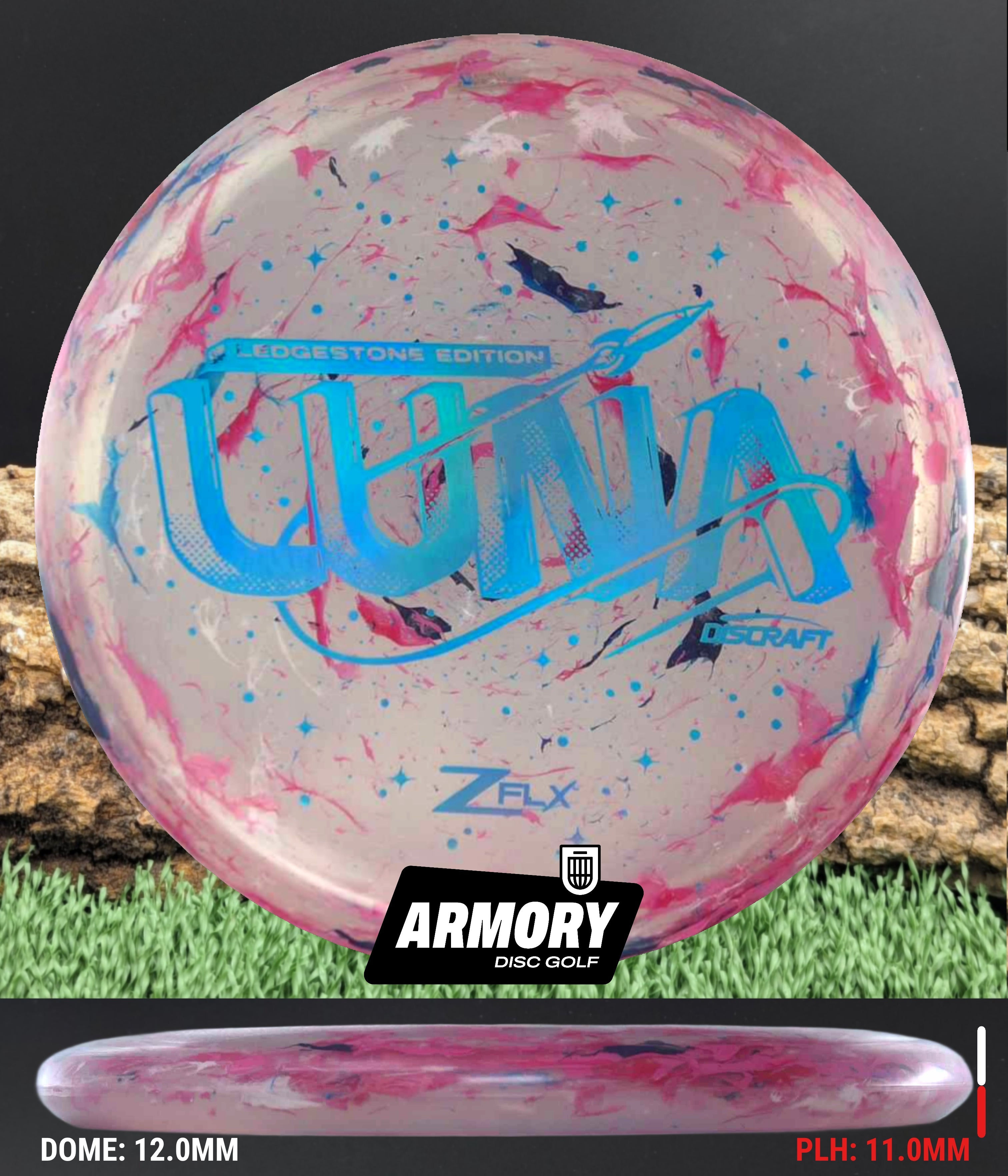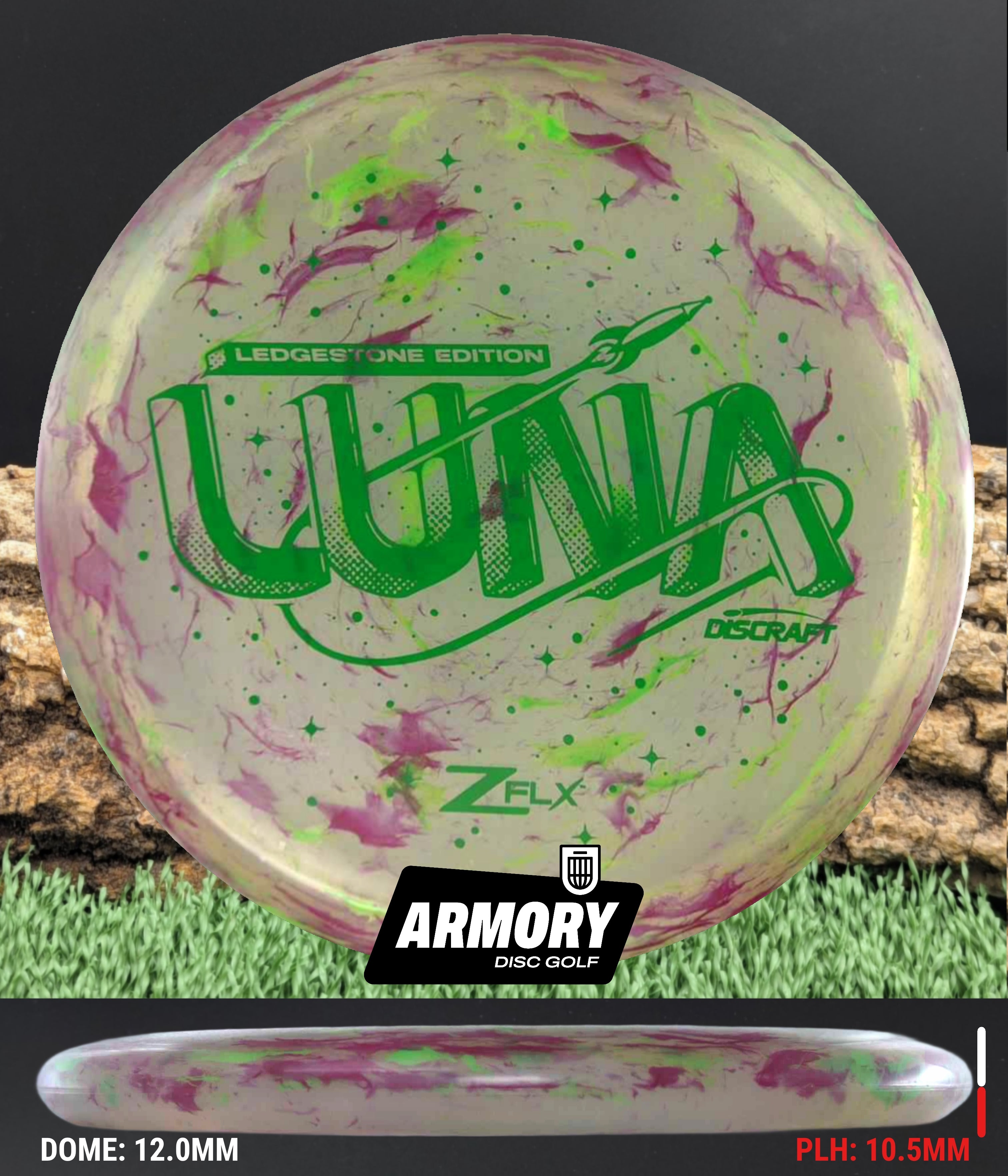 The Luna returns in a unique Ledgestone pre-release blend with the Jawbreaker Z Super FLX Luna, combining trusted flight with one of Discraft’s most intriguing plastic pairings.