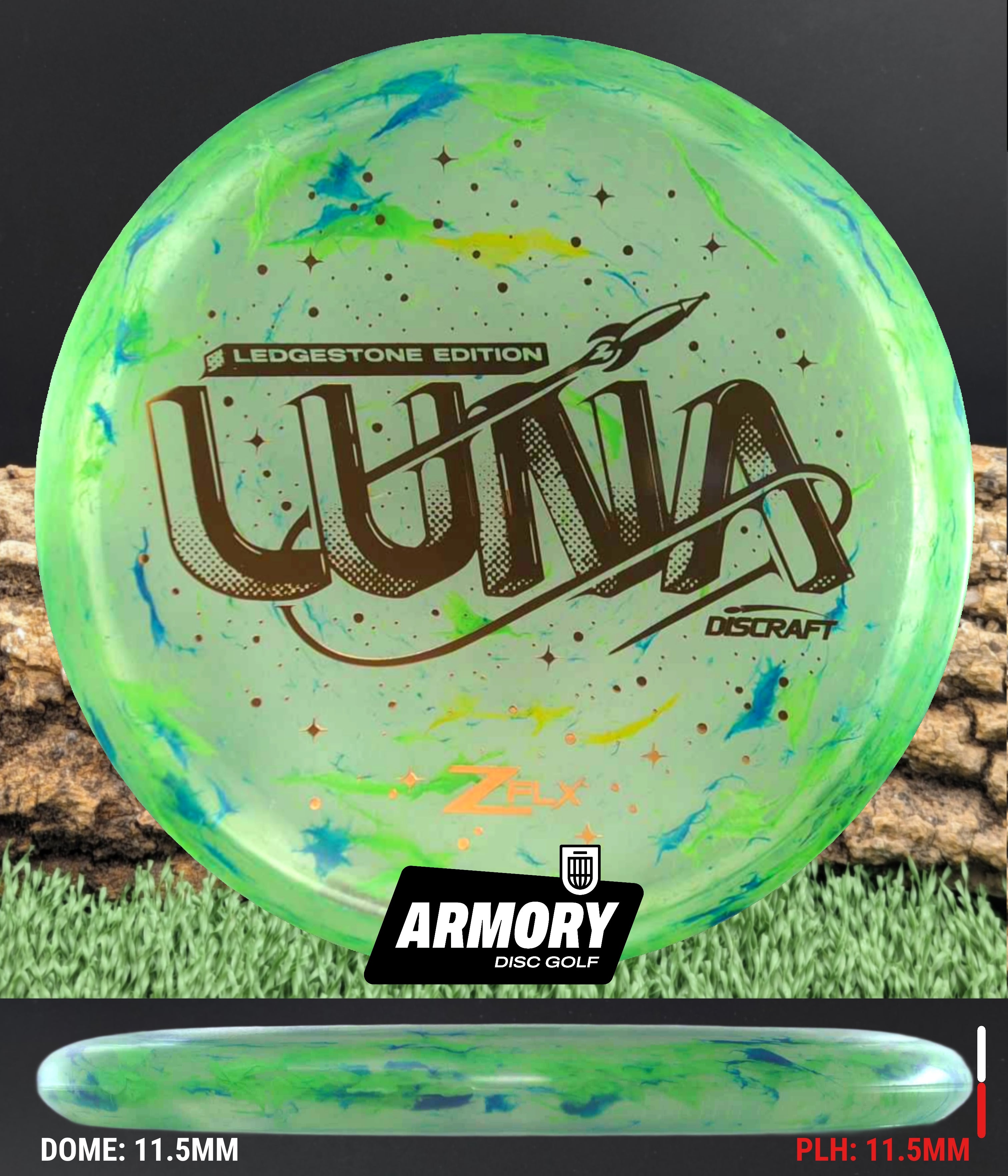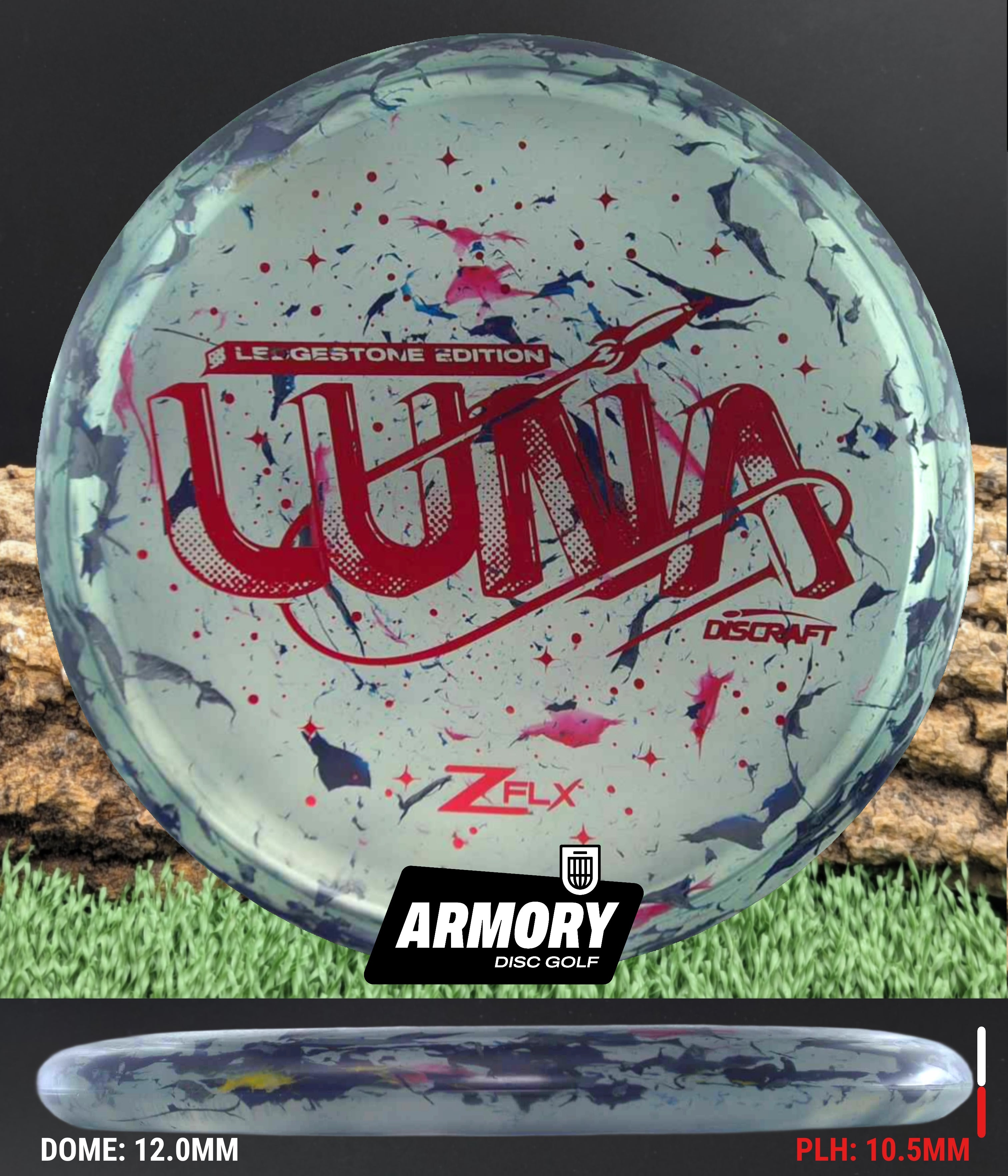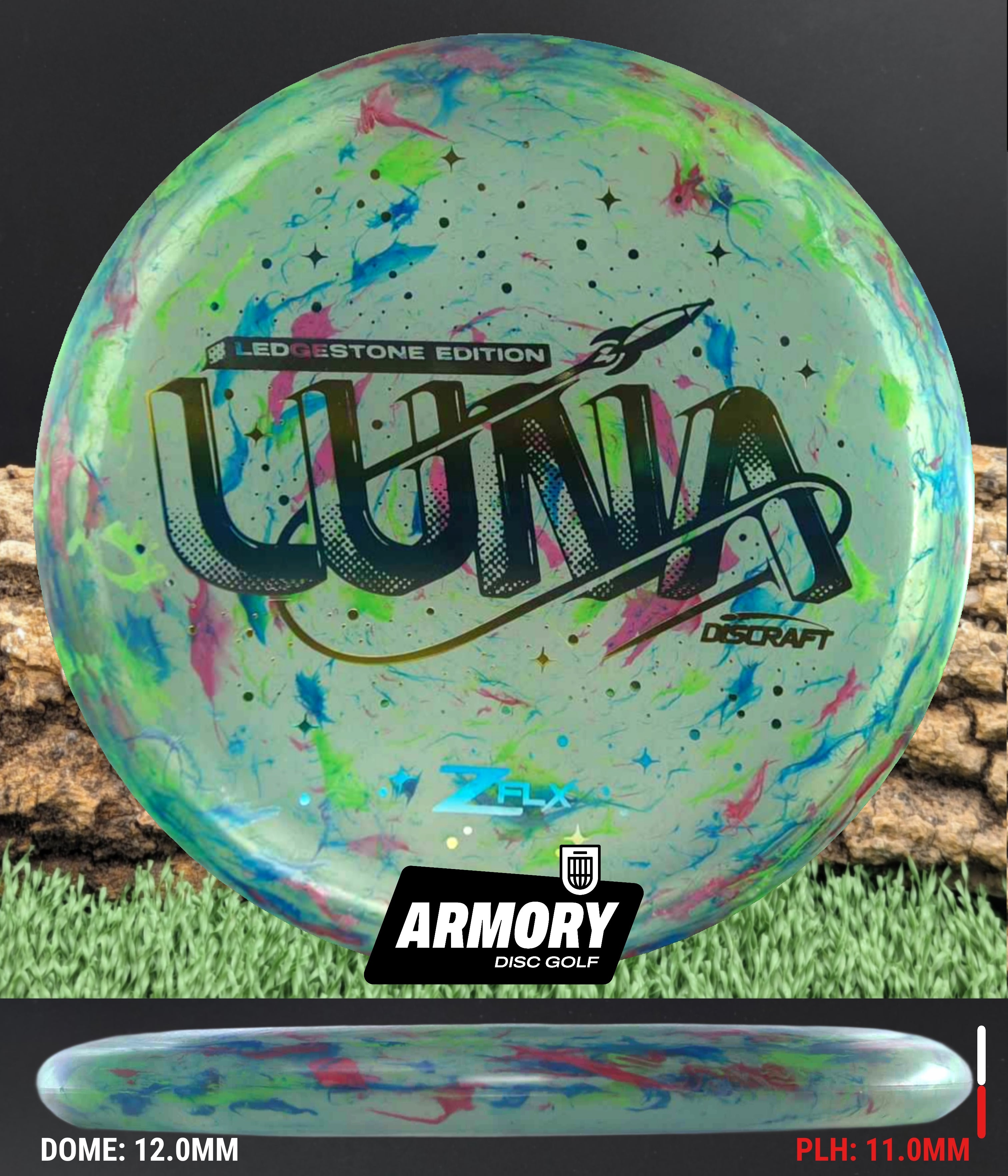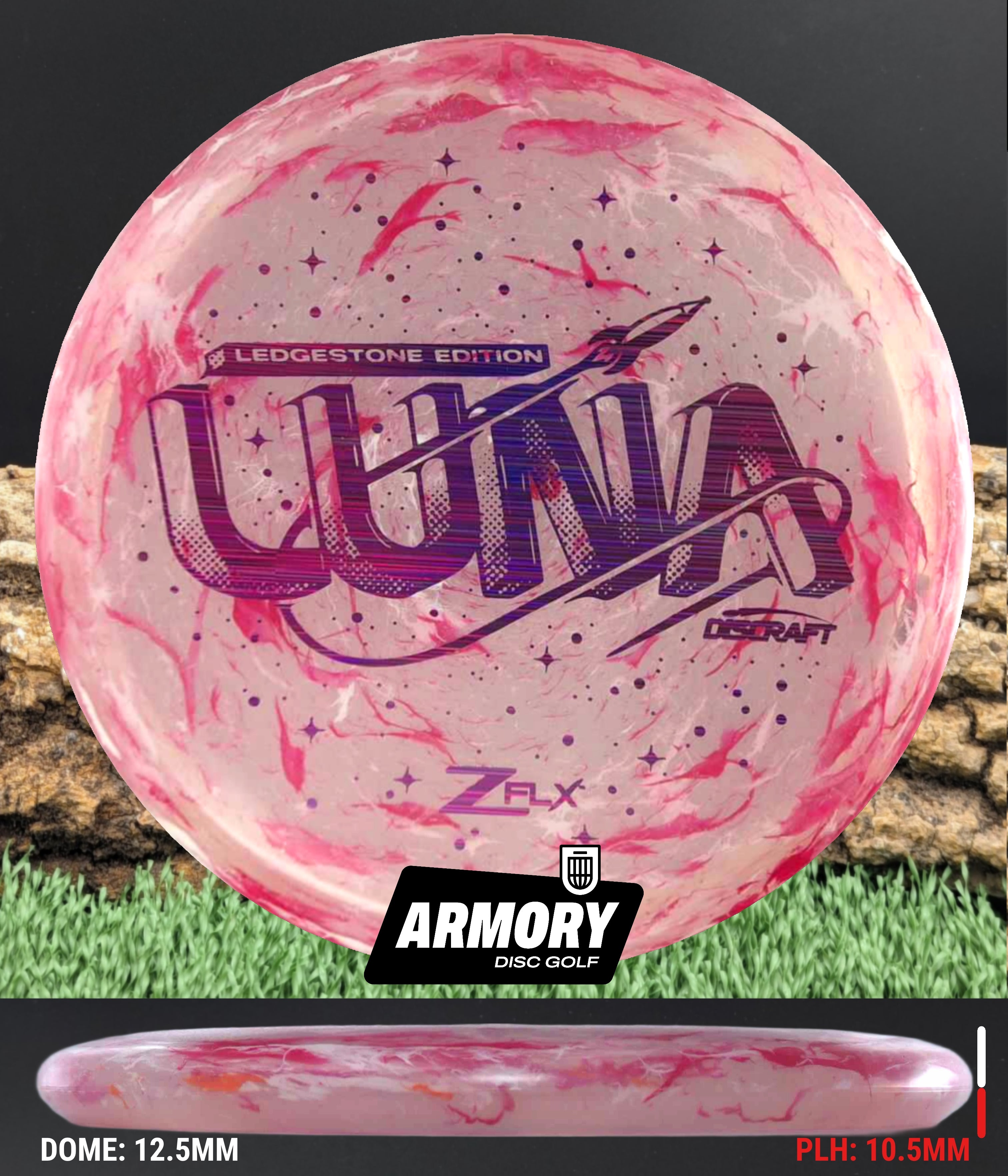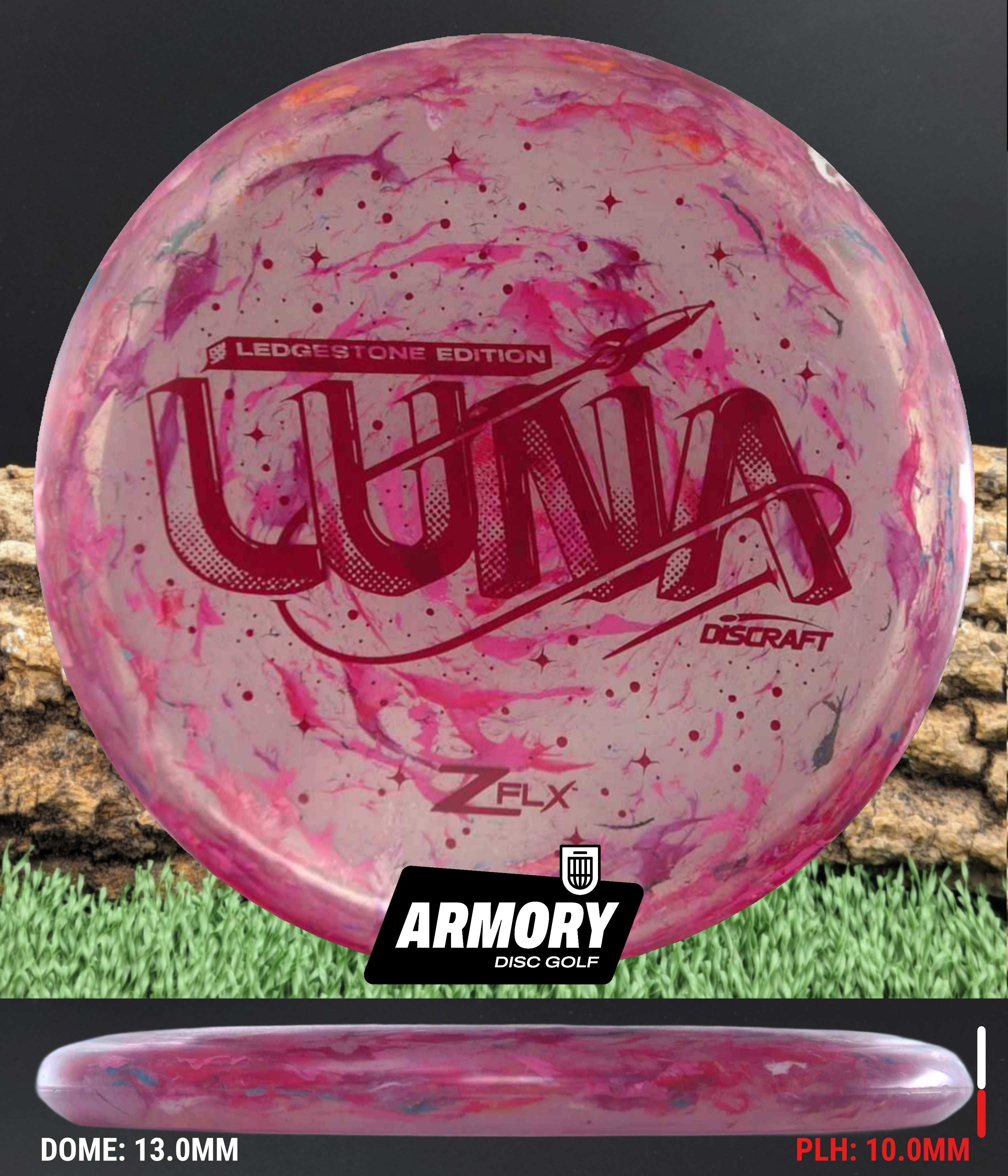 The Luna returns in a unique Ledgestone pre-release blend with the Jawbreaker Z Super FLX Luna, combining trusted flight with one of Discraft’s most intriguing plastic pairings.