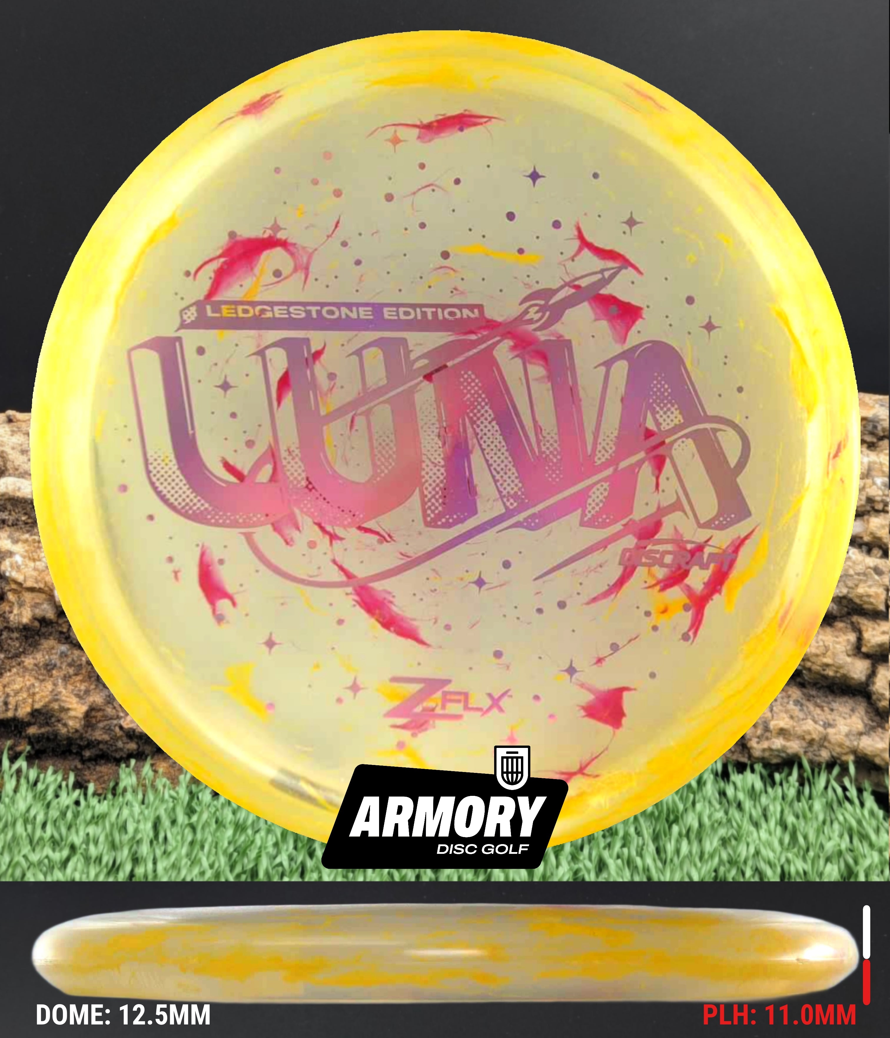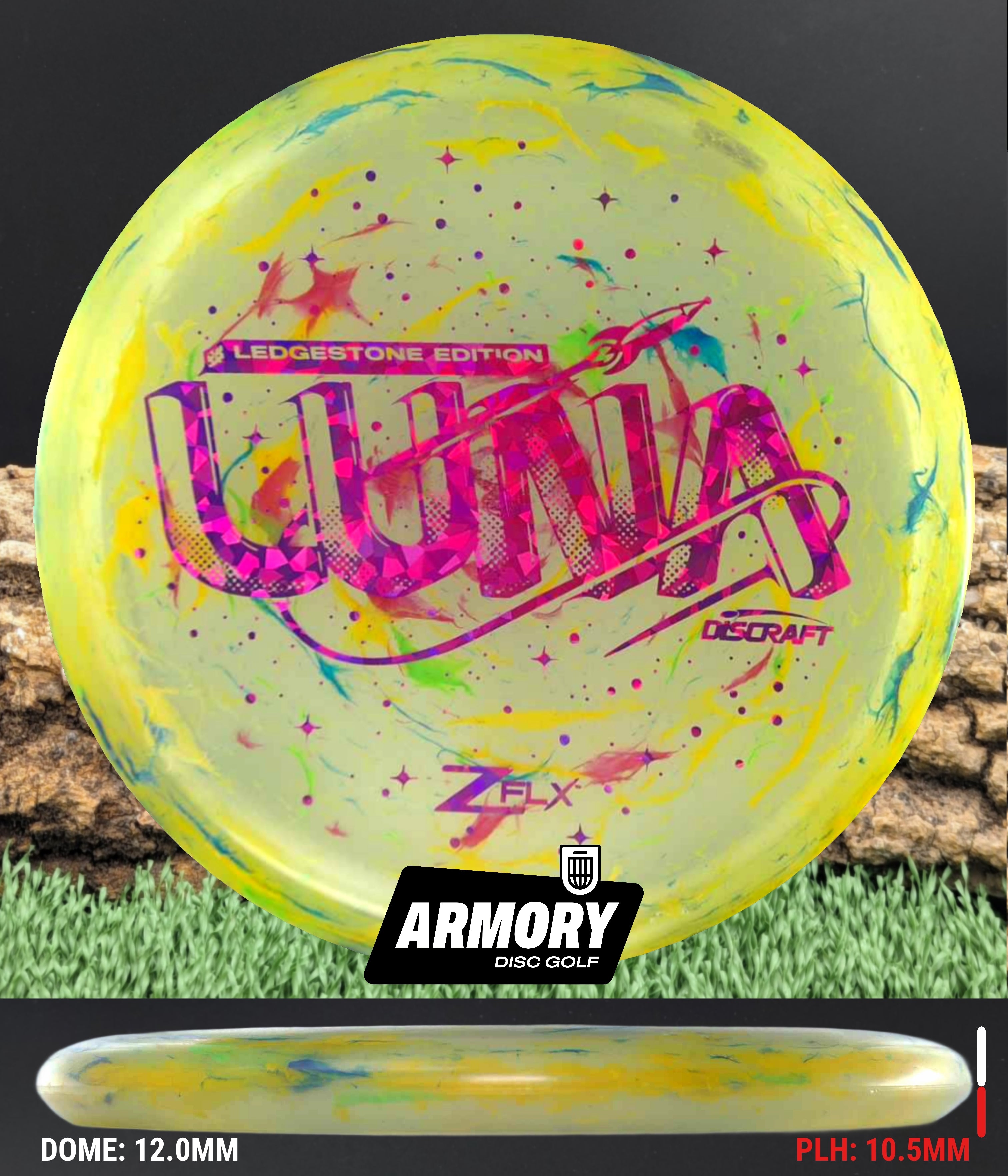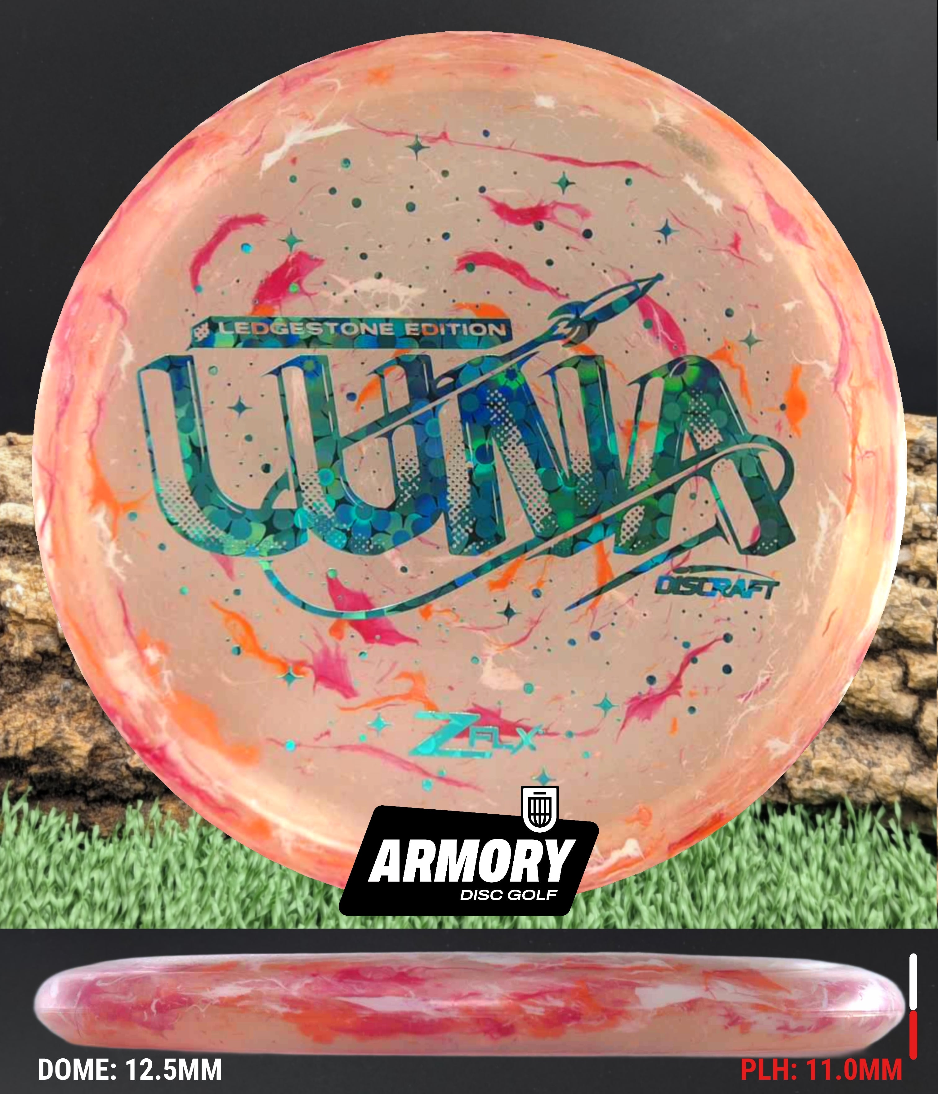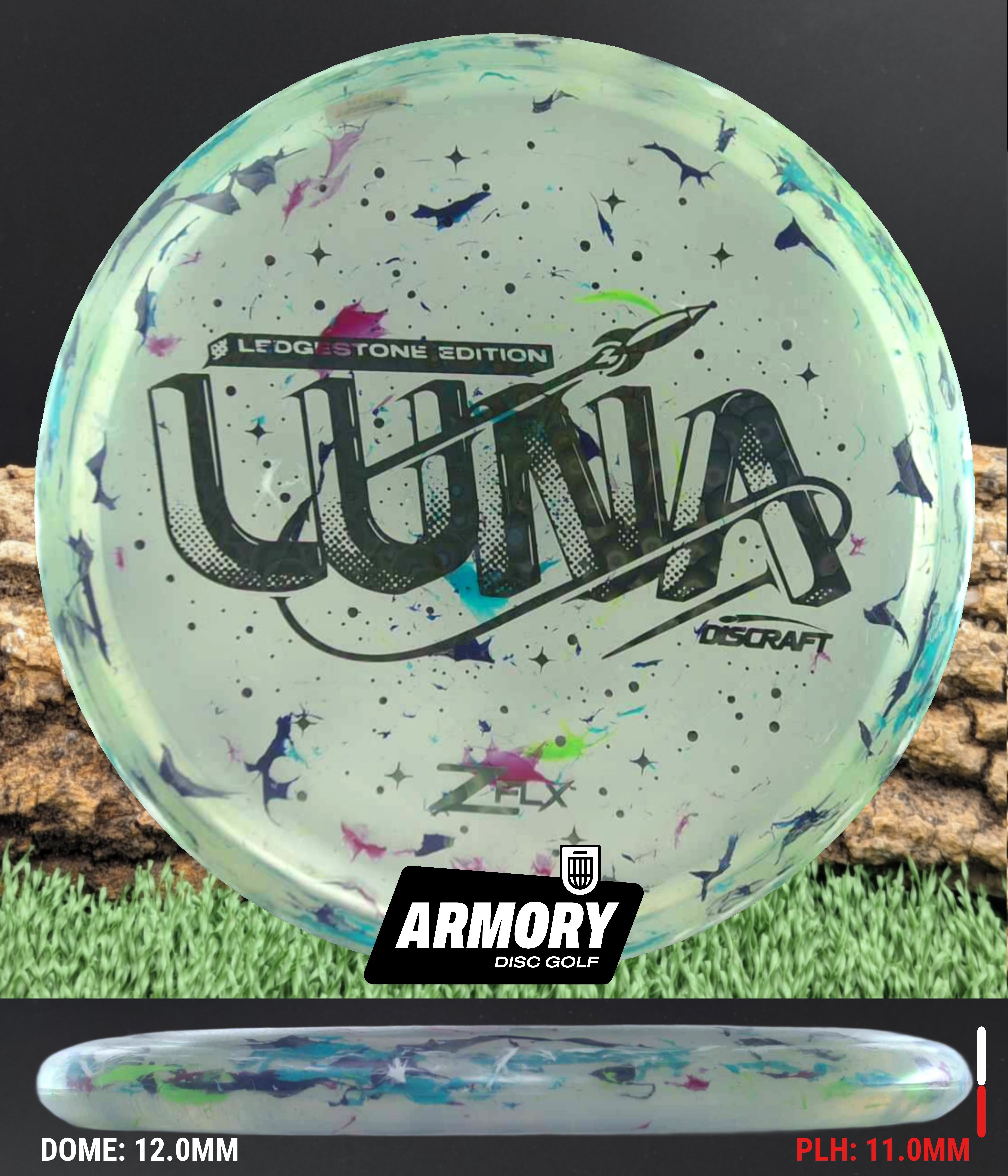 The Luna returns in a unique Ledgestone pre-release blend with the Jawbreaker Z Super FLX Luna, combining trusted flight with one of Discraft’s most intriguing plastic pairings.