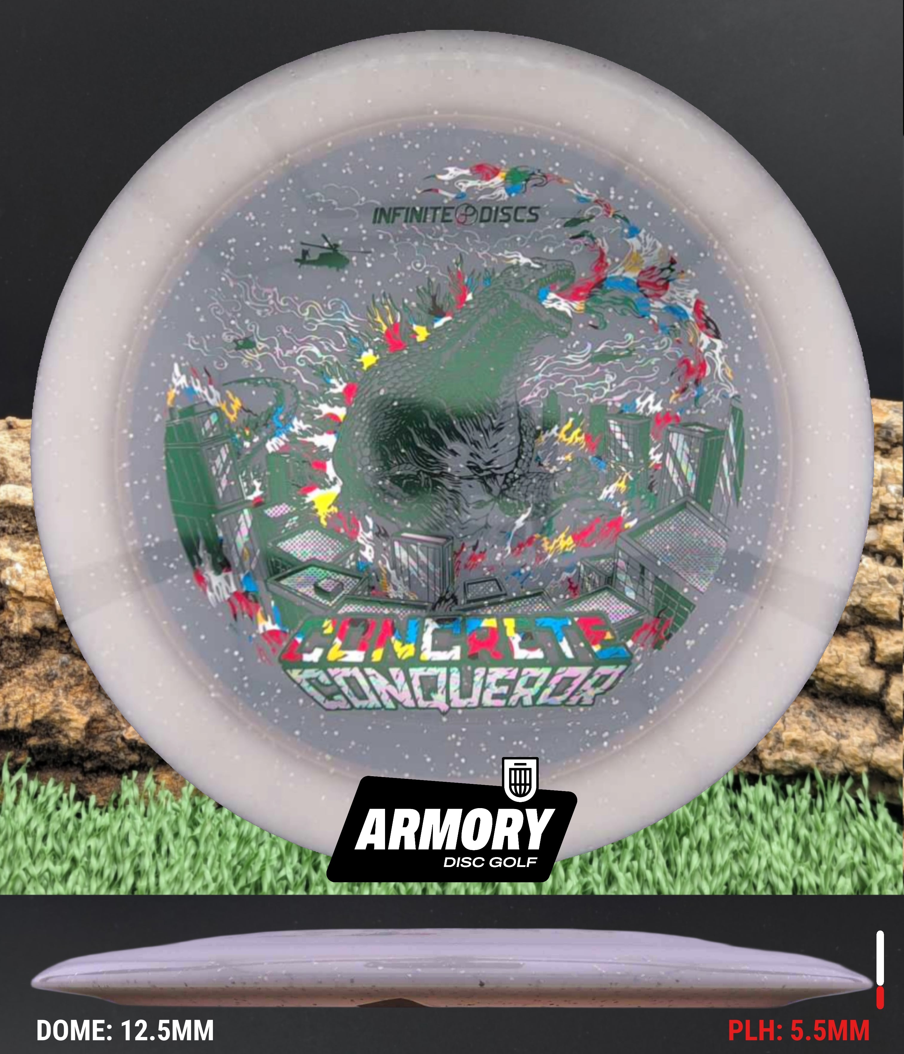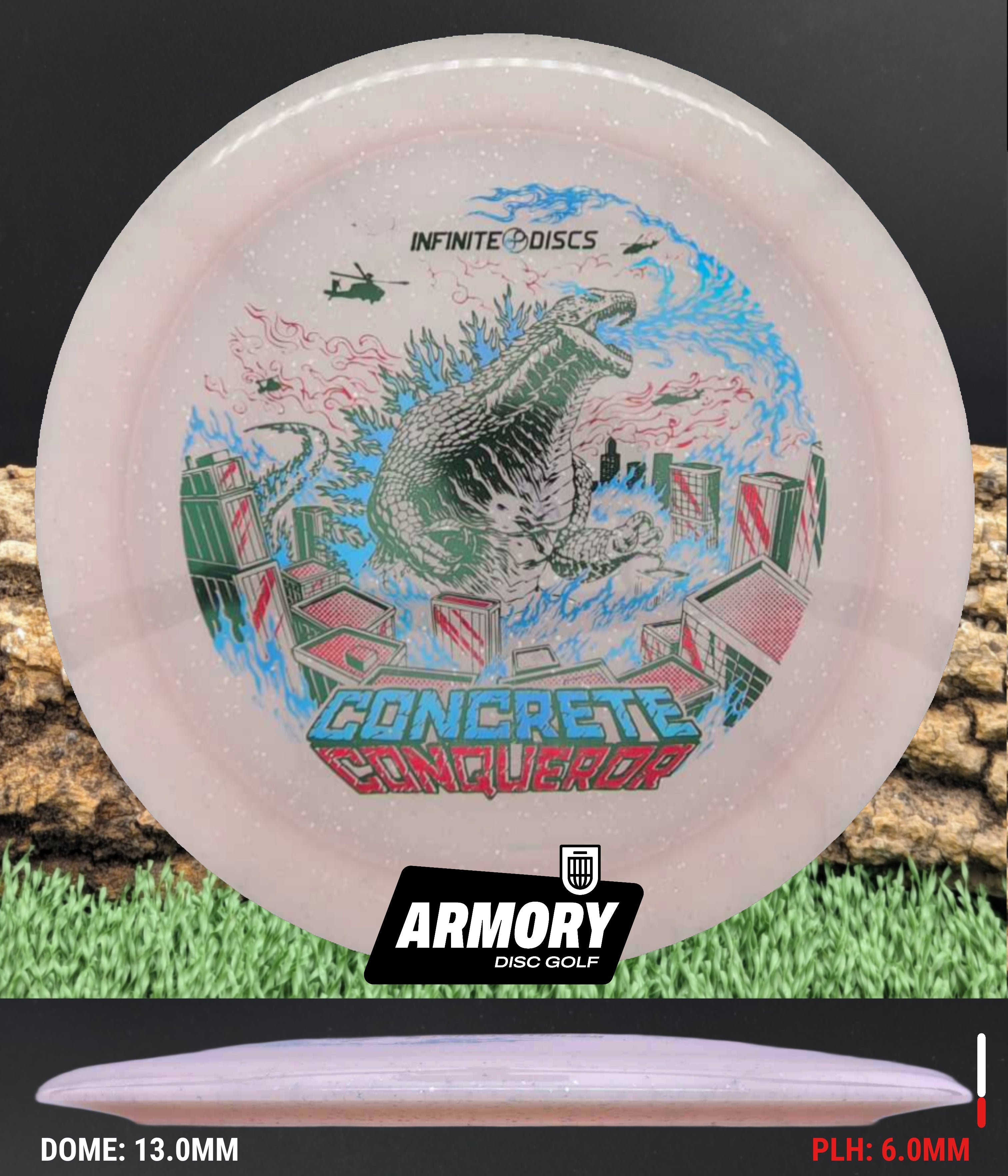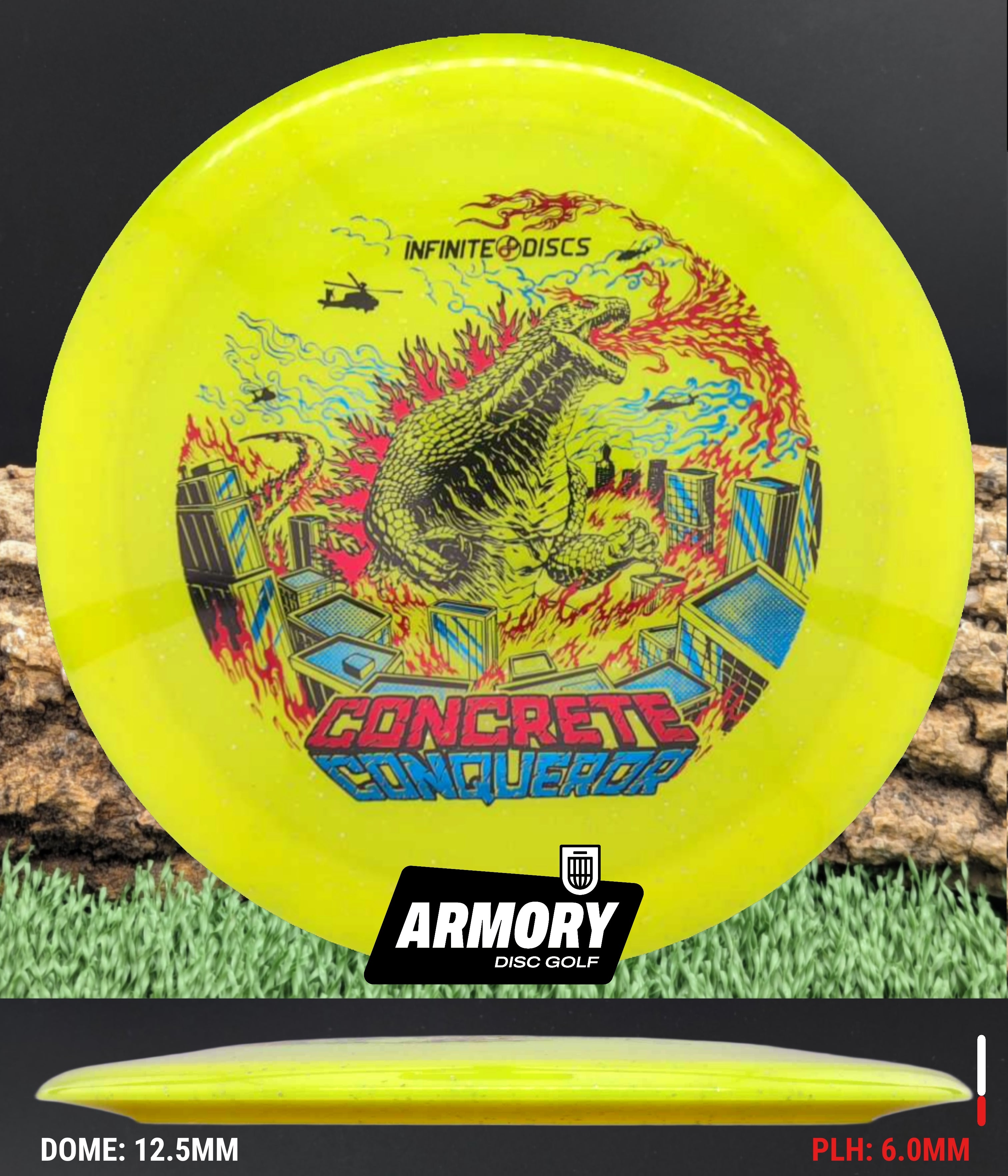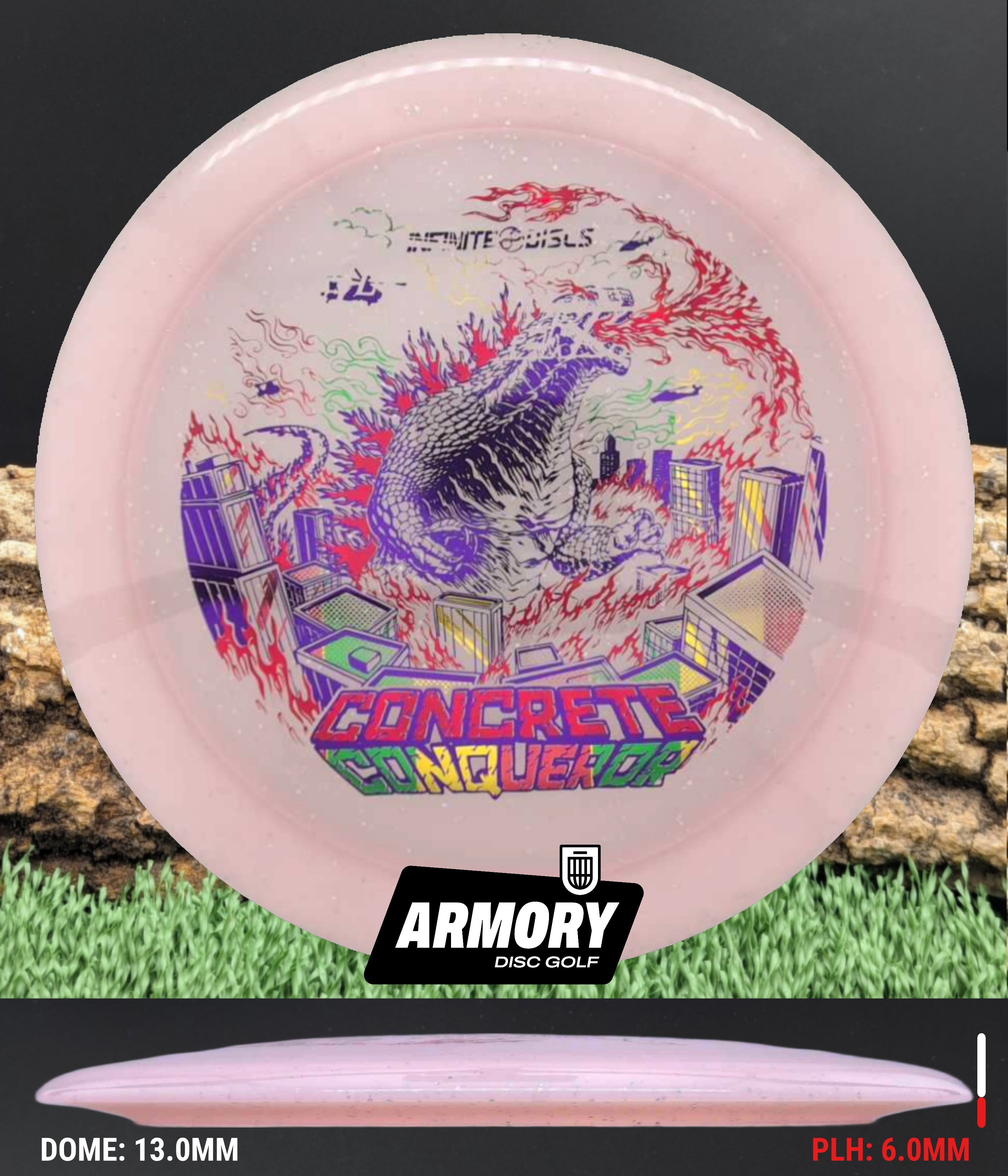 The Conqueror by Infinite Discs is a formidable overstable distance driver designed to conquer the challenges of the most powerful throws, even in the hands of professional players. When unleashed, the Conqueror showcases an impressive end-of-flight fade, whether launched forehand or backhand, and dependably conquers fierce headwinds with unwavering stability.