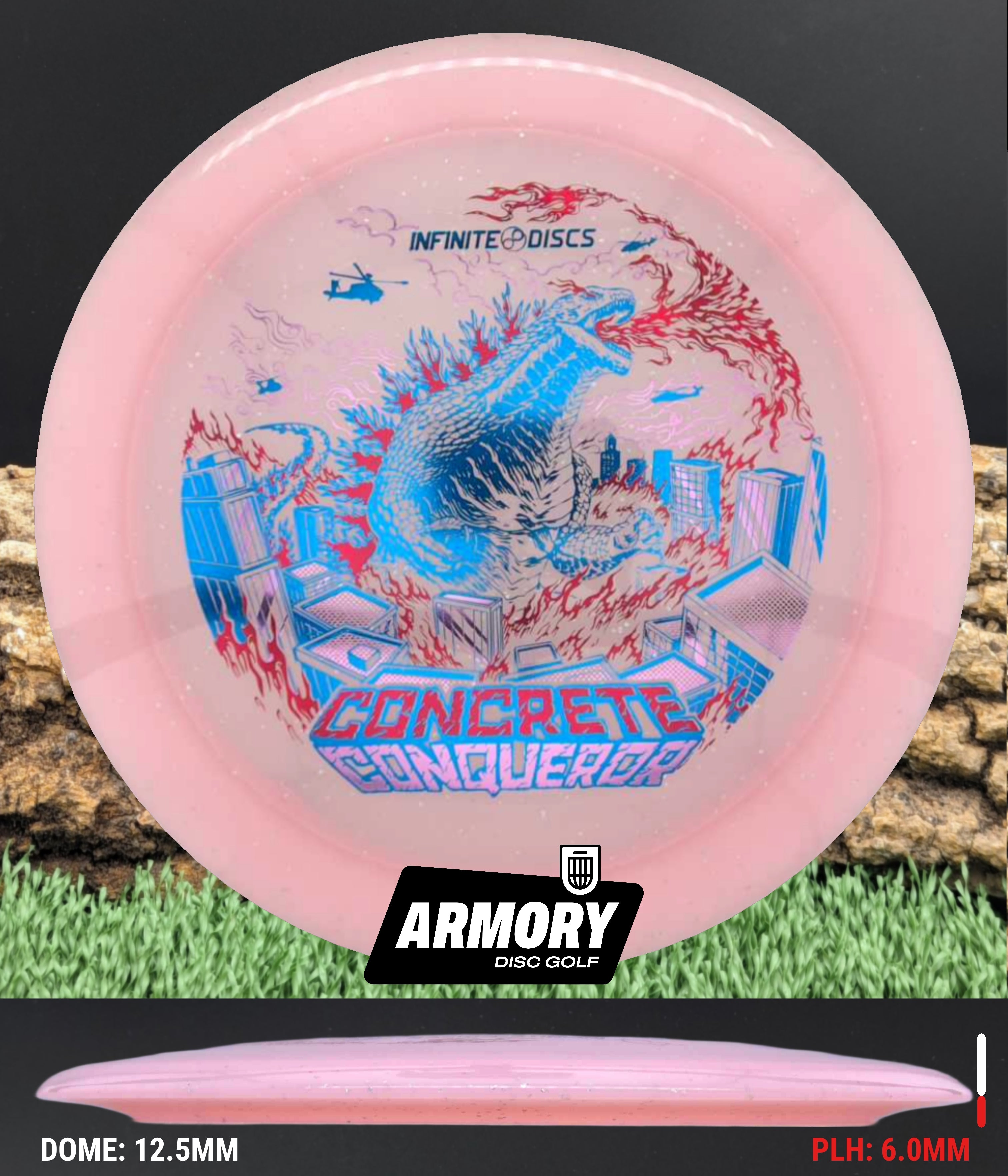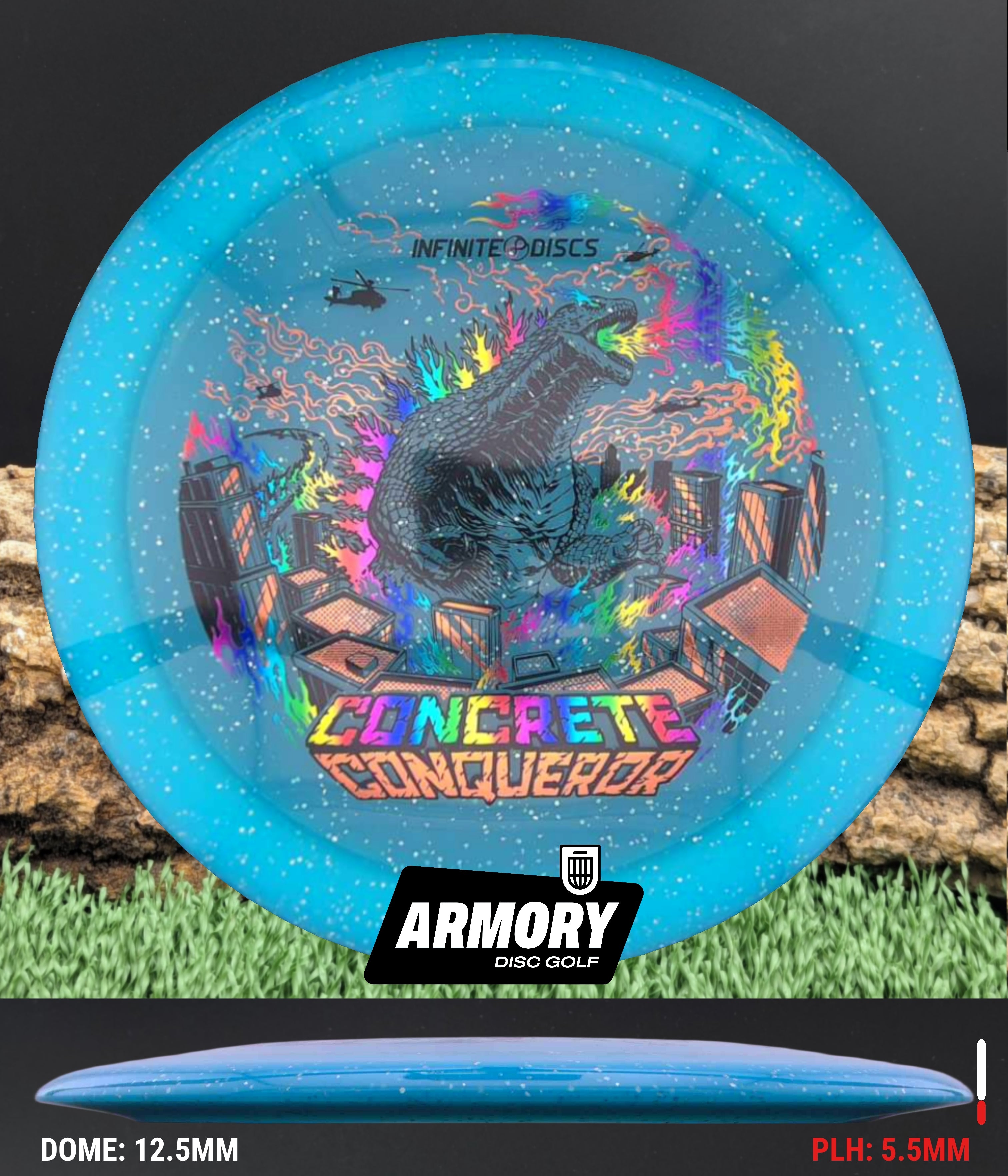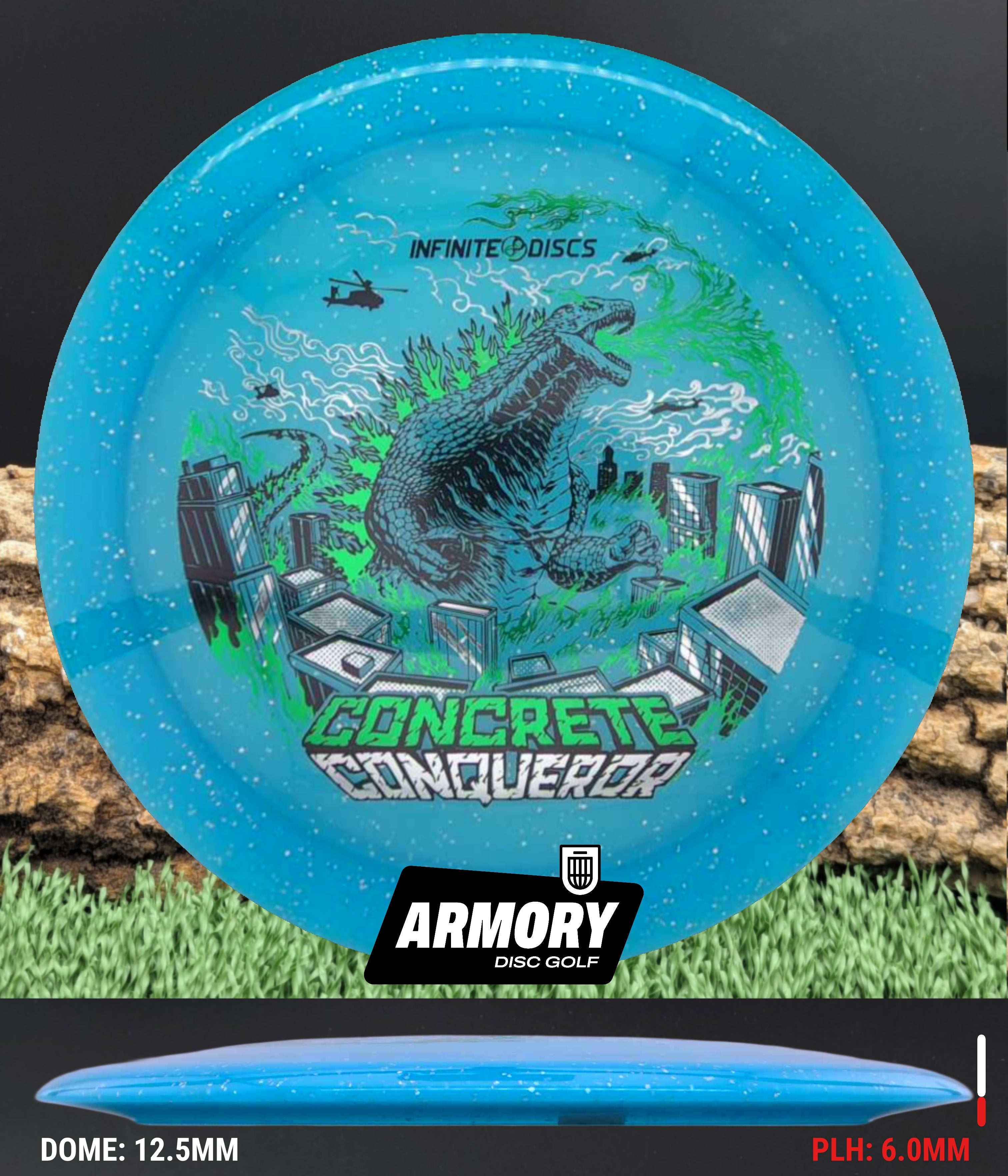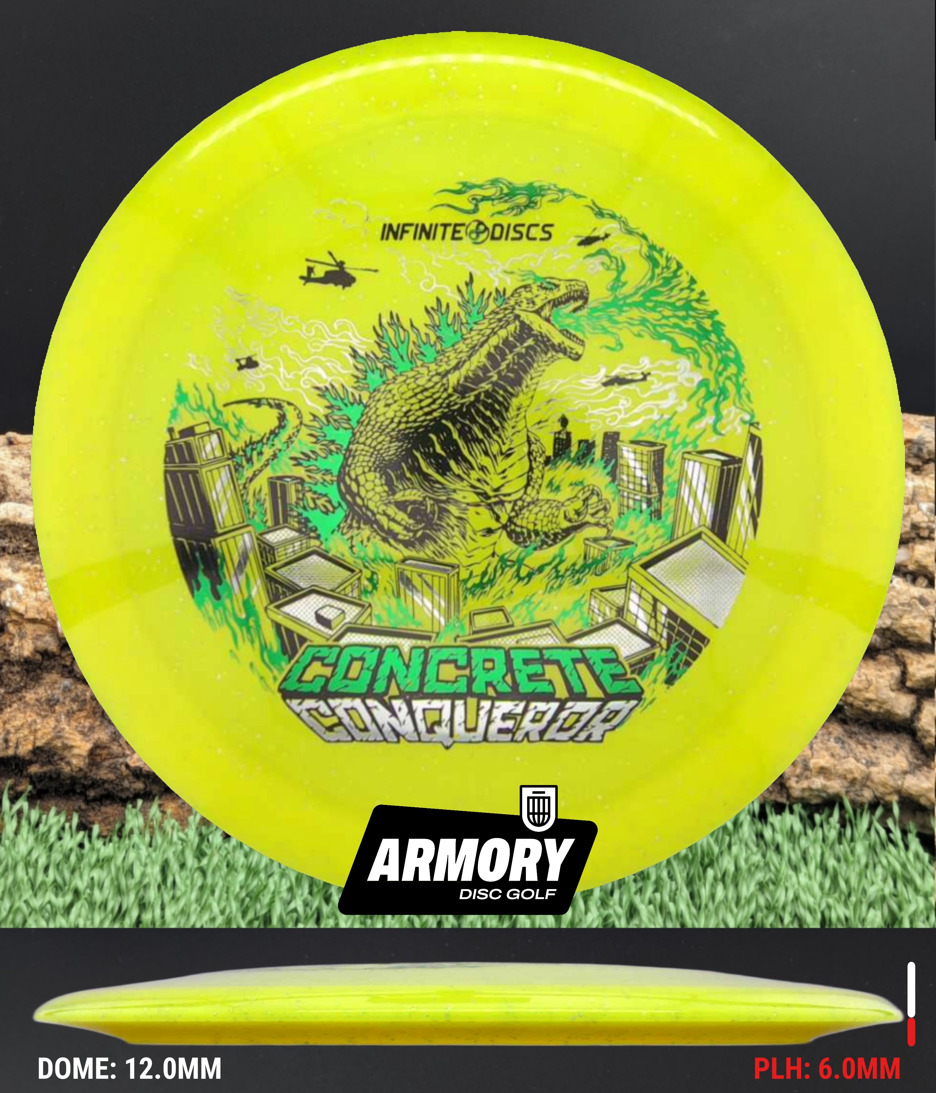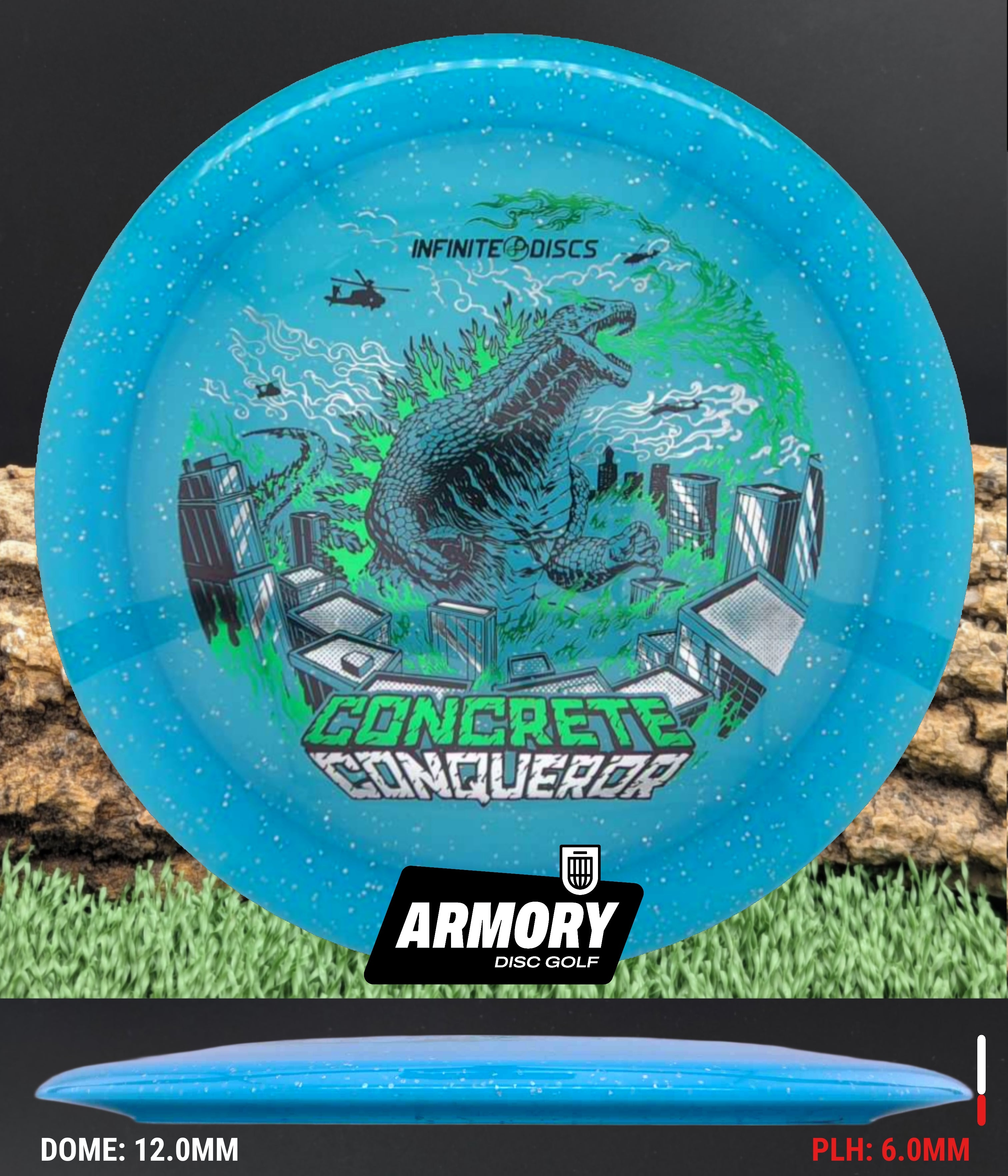 The Conqueror by Infinite Discs is a formidable overstable distance driver designed to conquer the challenges of the most powerful throws, even in the hands of professional players. When unleashed, the Conqueror showcases an impressive end-of-flight fade, whether launched forehand or backhand, and dependably conquers fierce headwinds with unwavering stability.