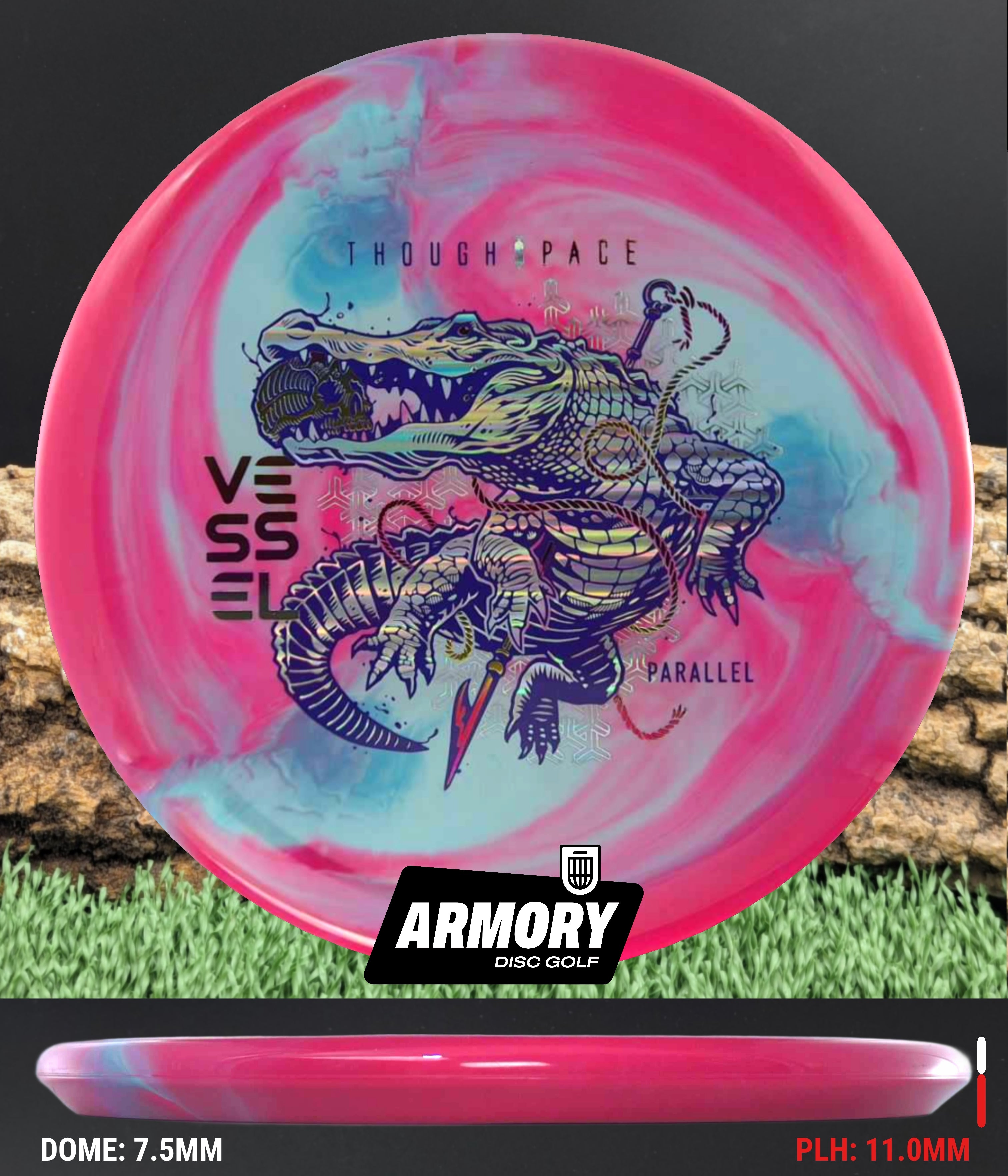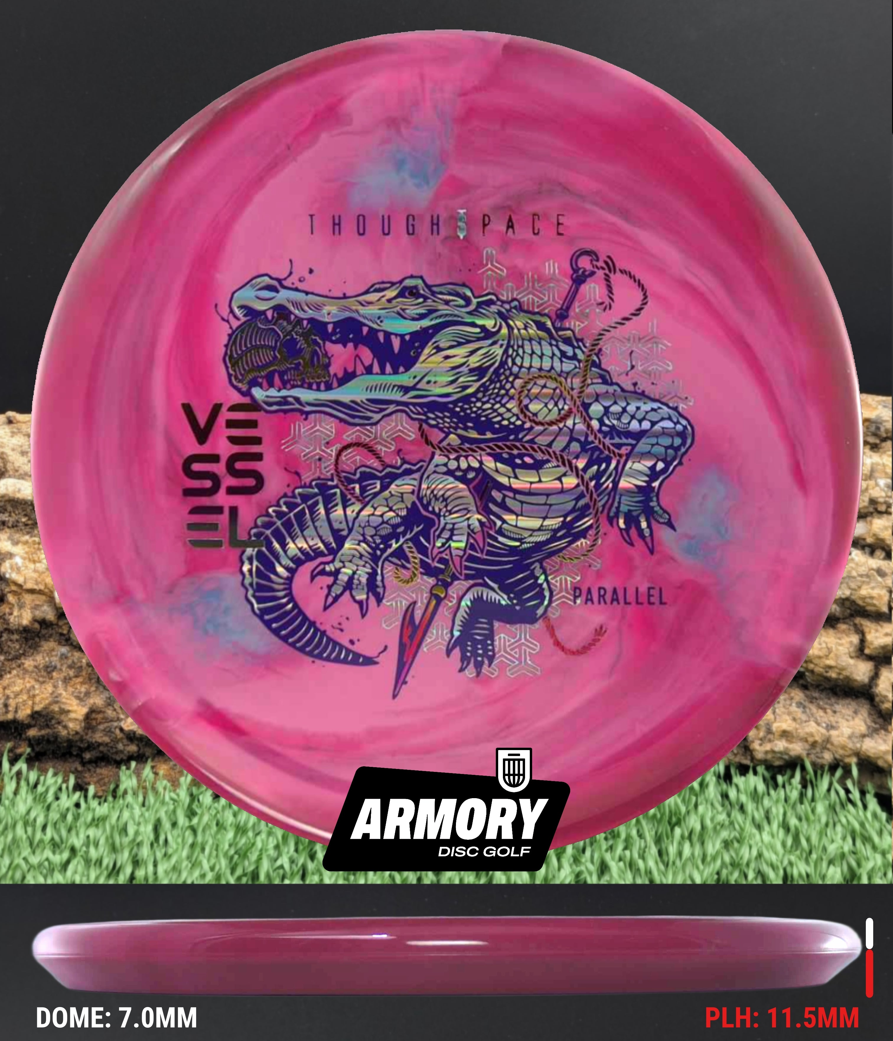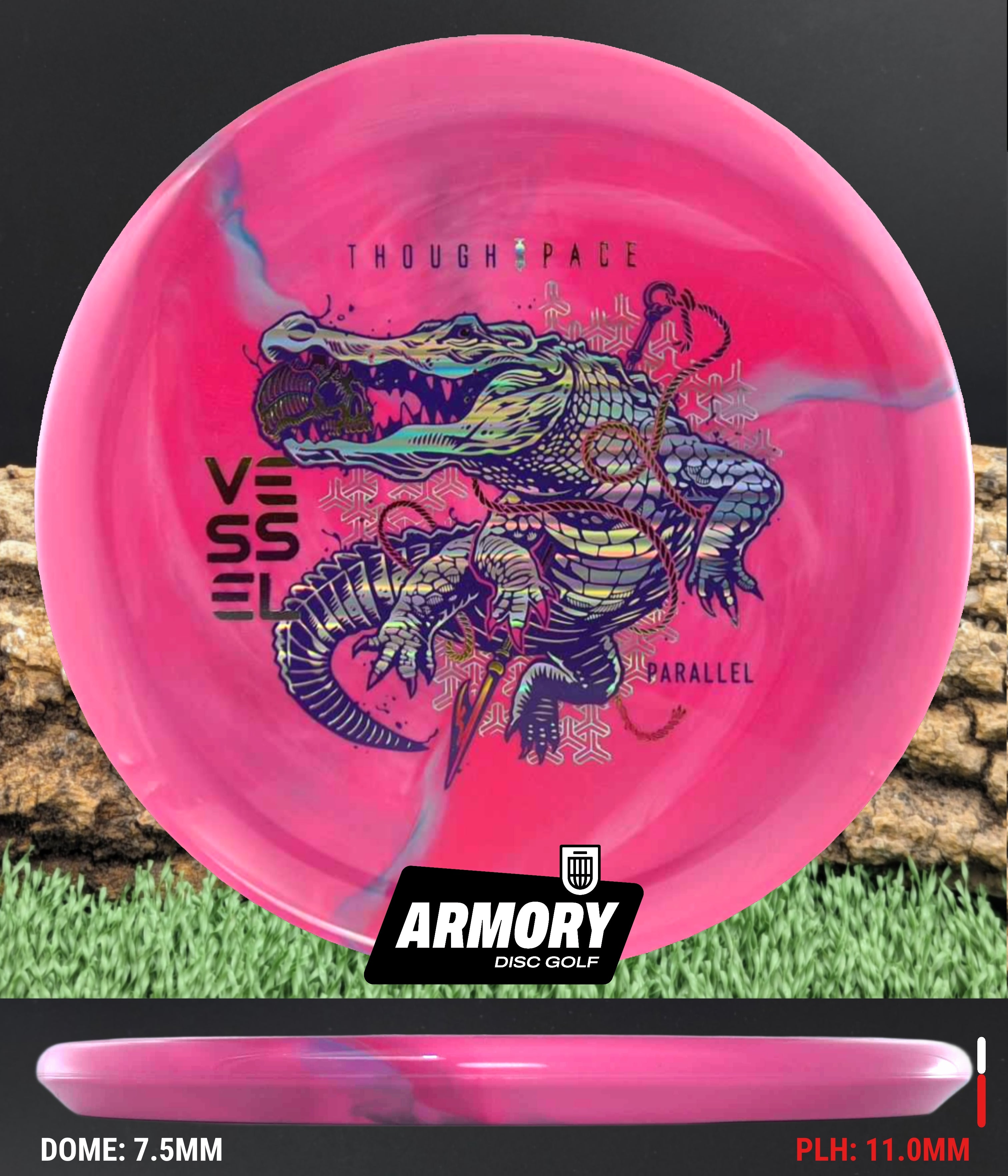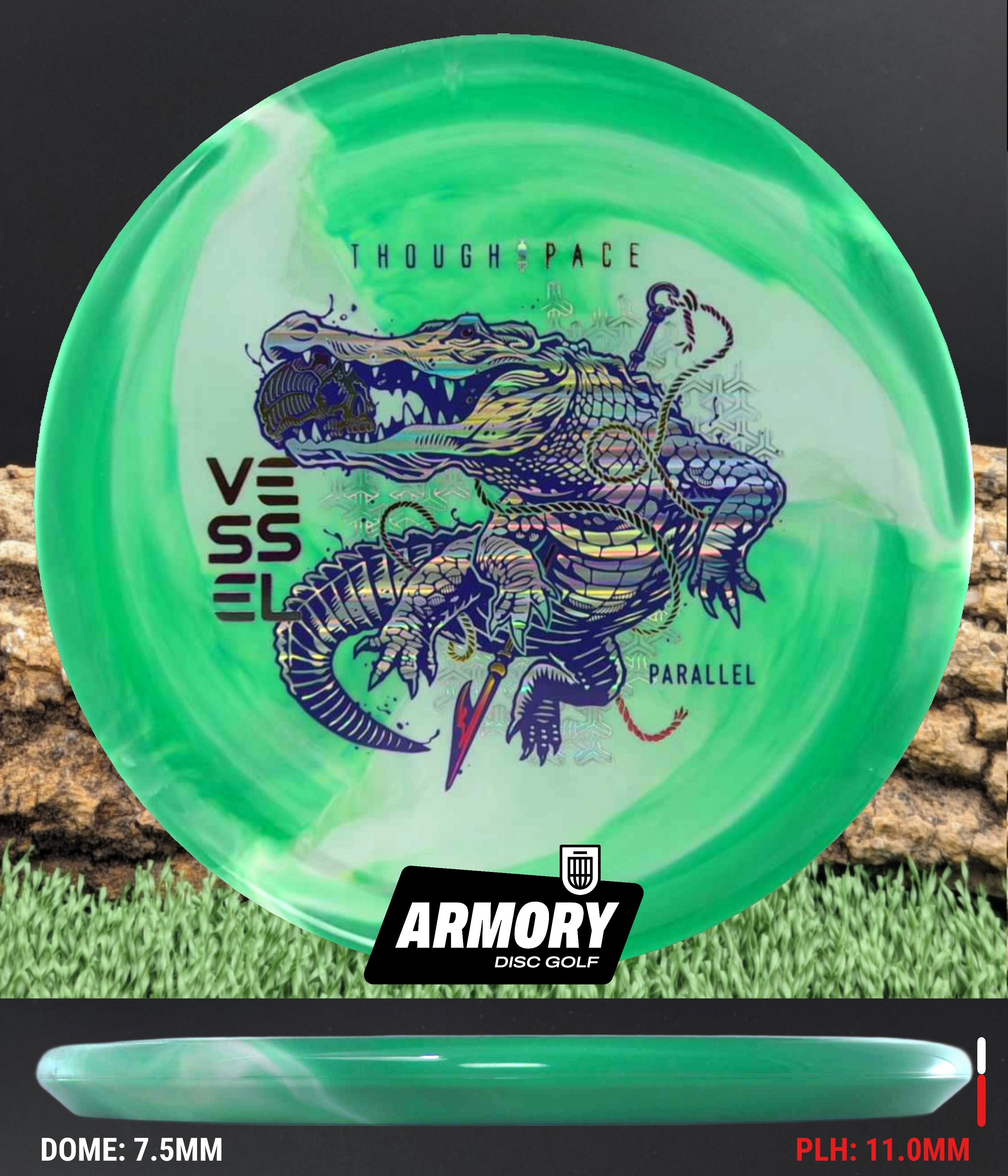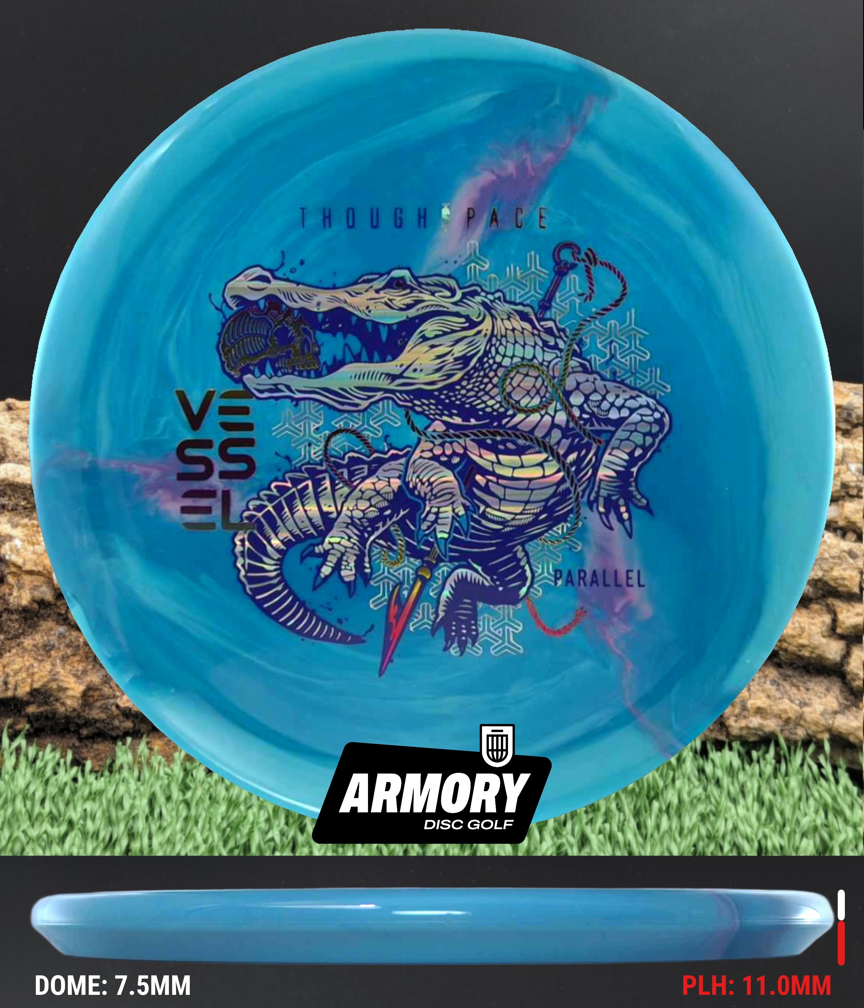 Now available in Parallel Plastic, the Vessel offers the same trusted performance with an upgraded tactile feel and stunning visual appeal. The swirled premium blend provides enhanced grip without sacrificing durability, making this one of the most dependable overstable approach discs on the market.