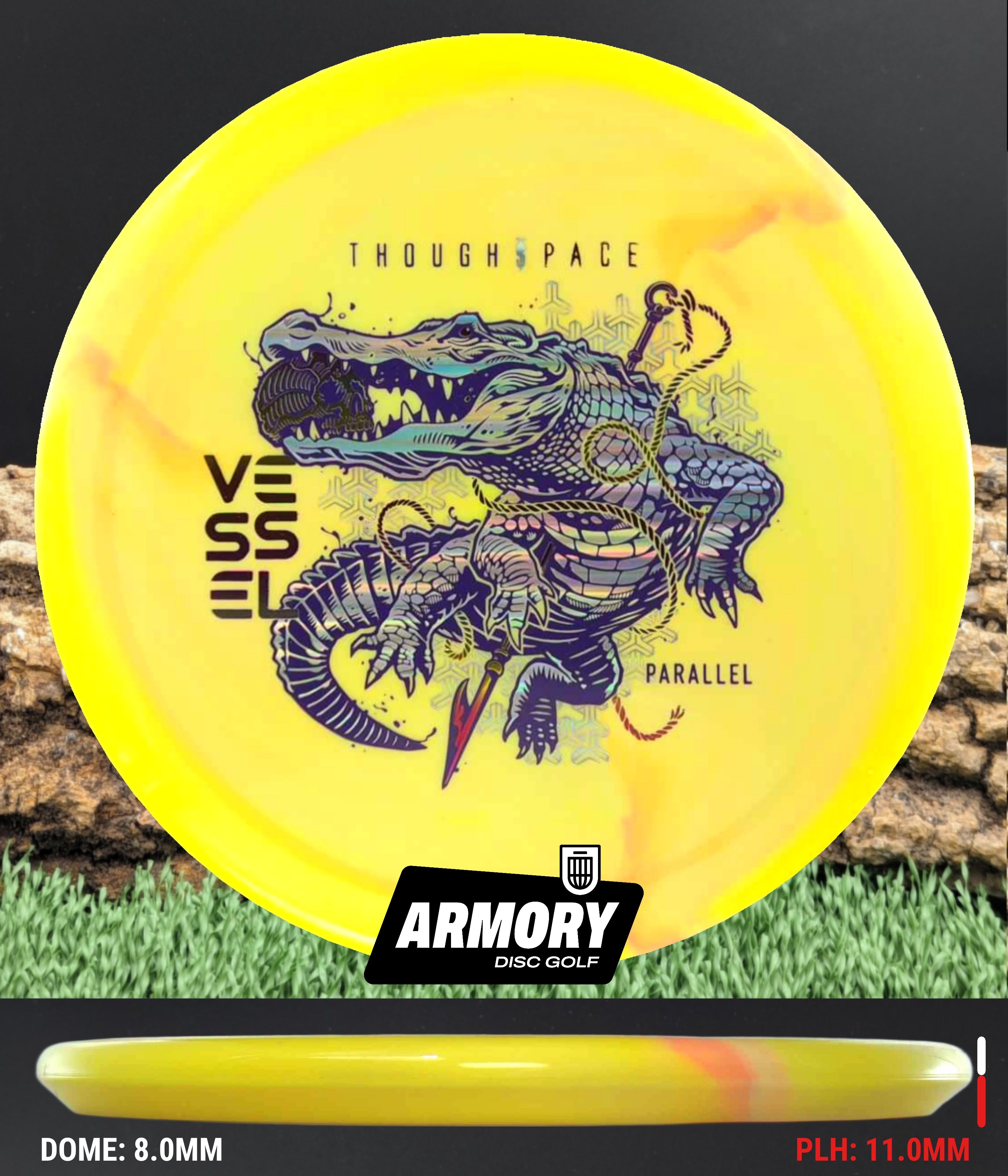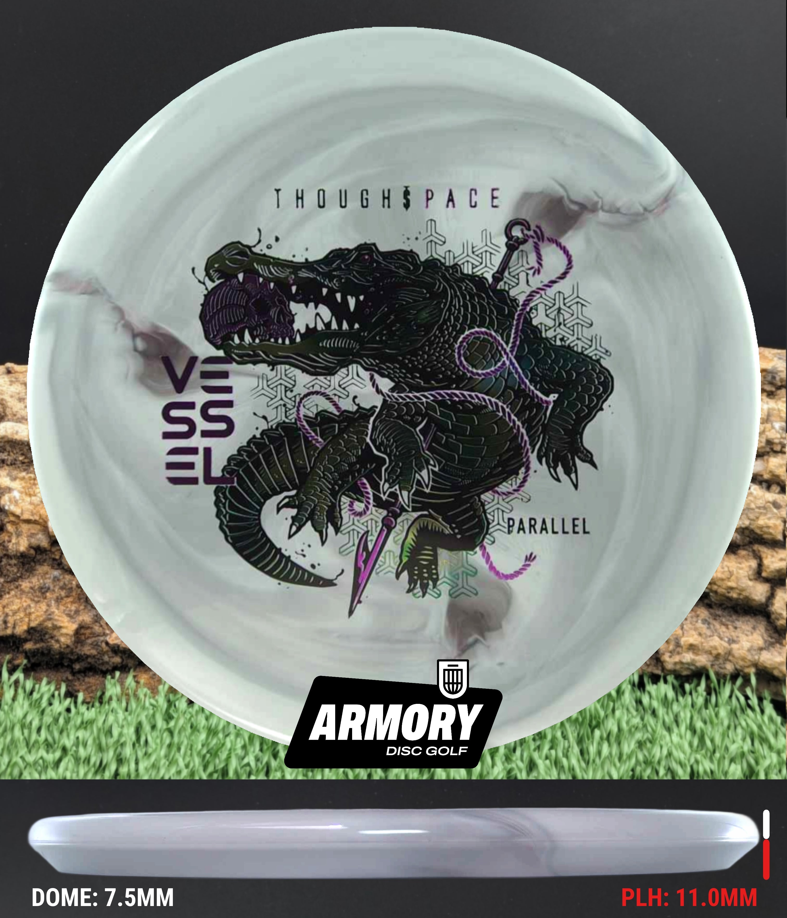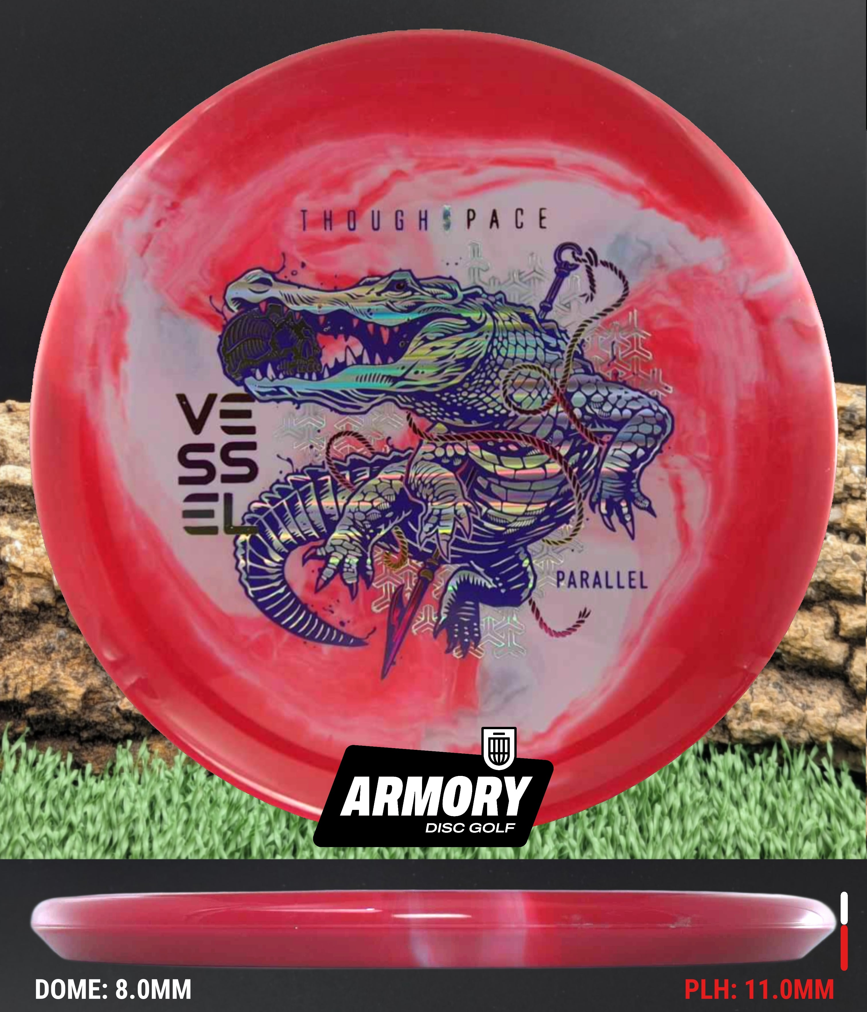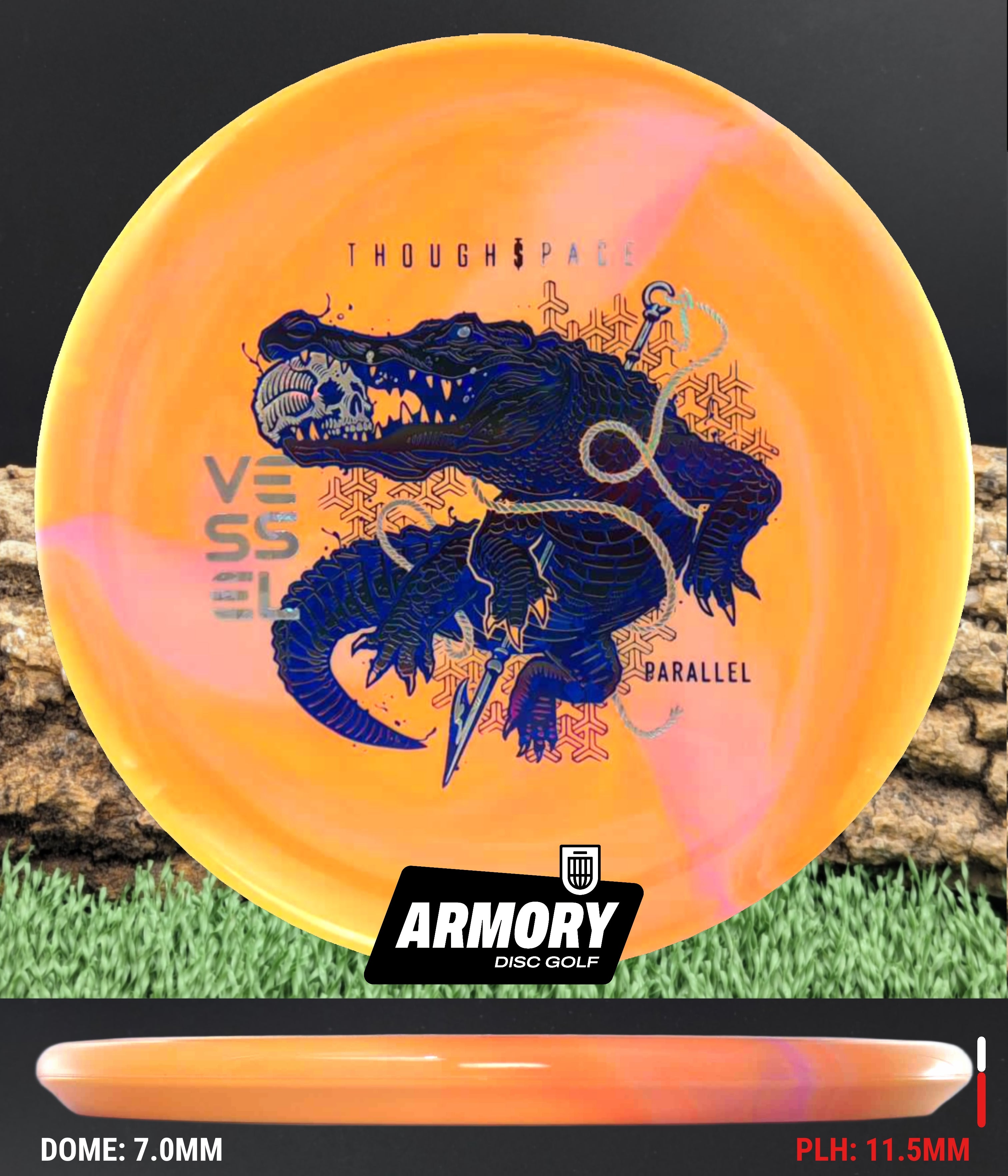 Now available in Parallel Plastic, the Vessel offers the same trusted performance with an upgraded tactile feel and stunning visual appeal. The swirled premium blend provides enhanced grip without sacrificing durability, making this one of the most dependable overstable approach discs on the market.