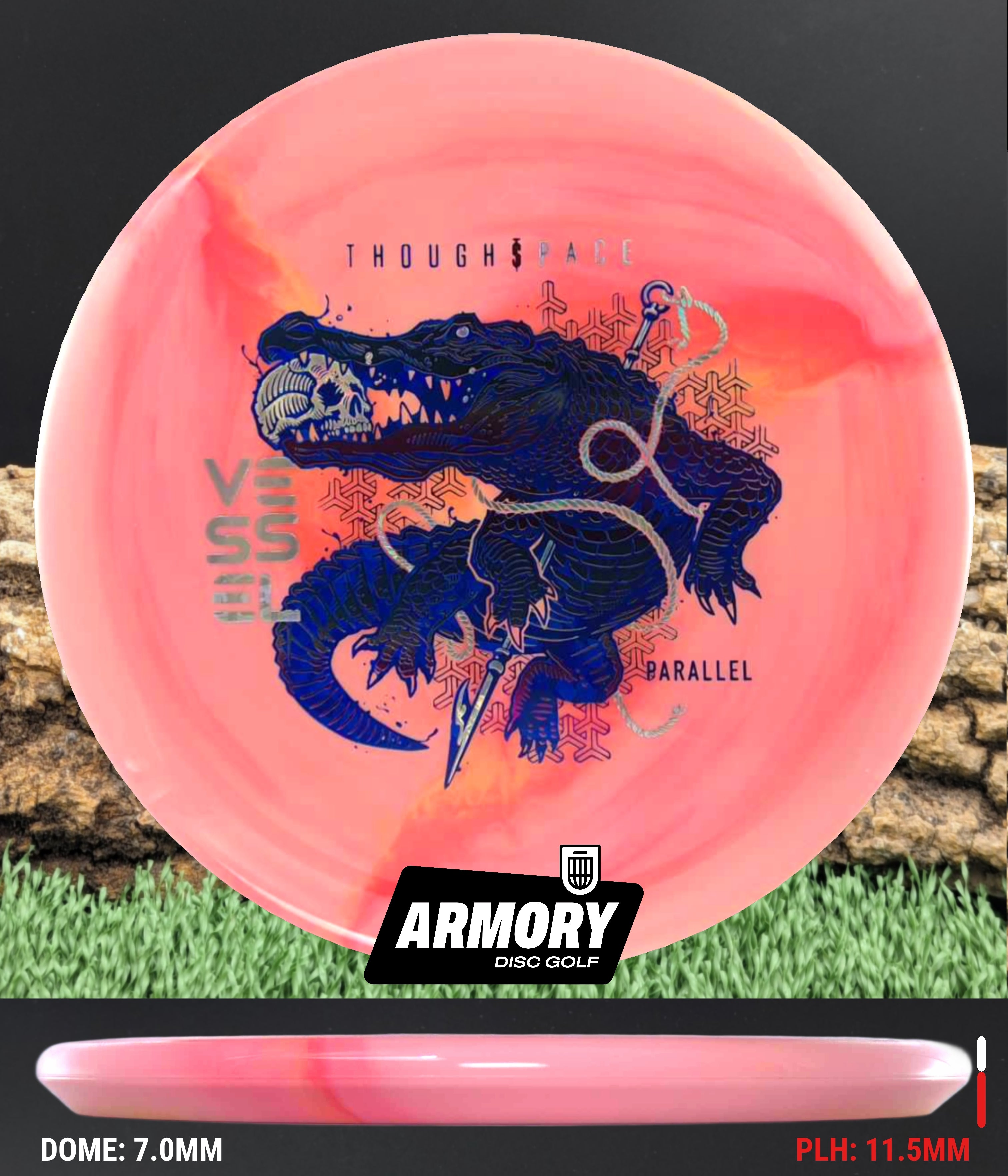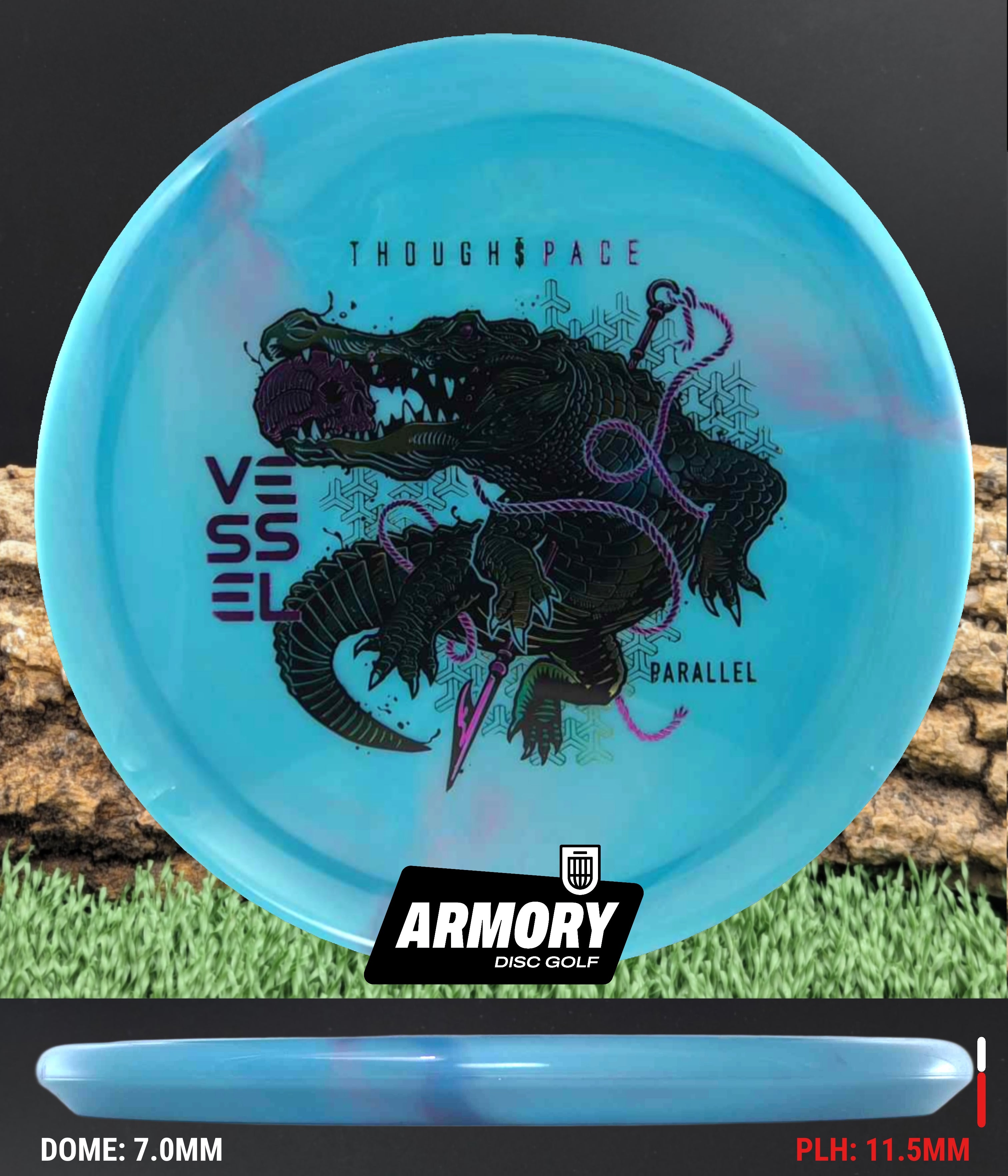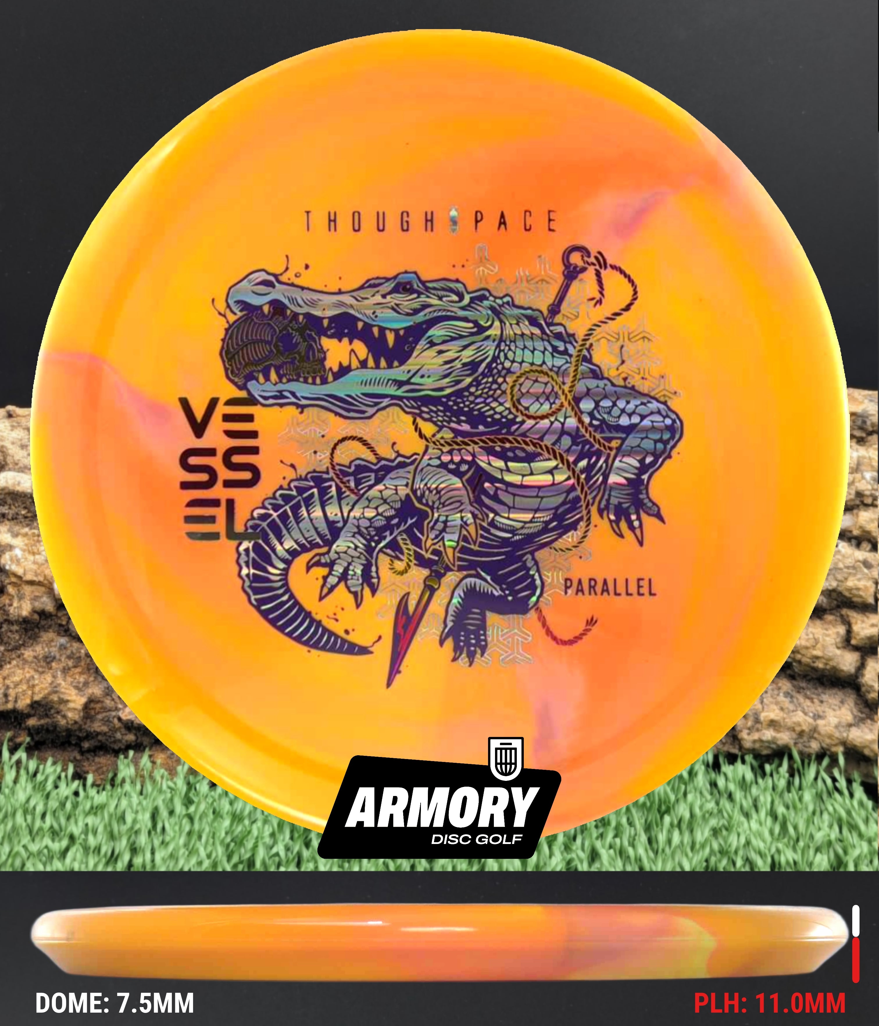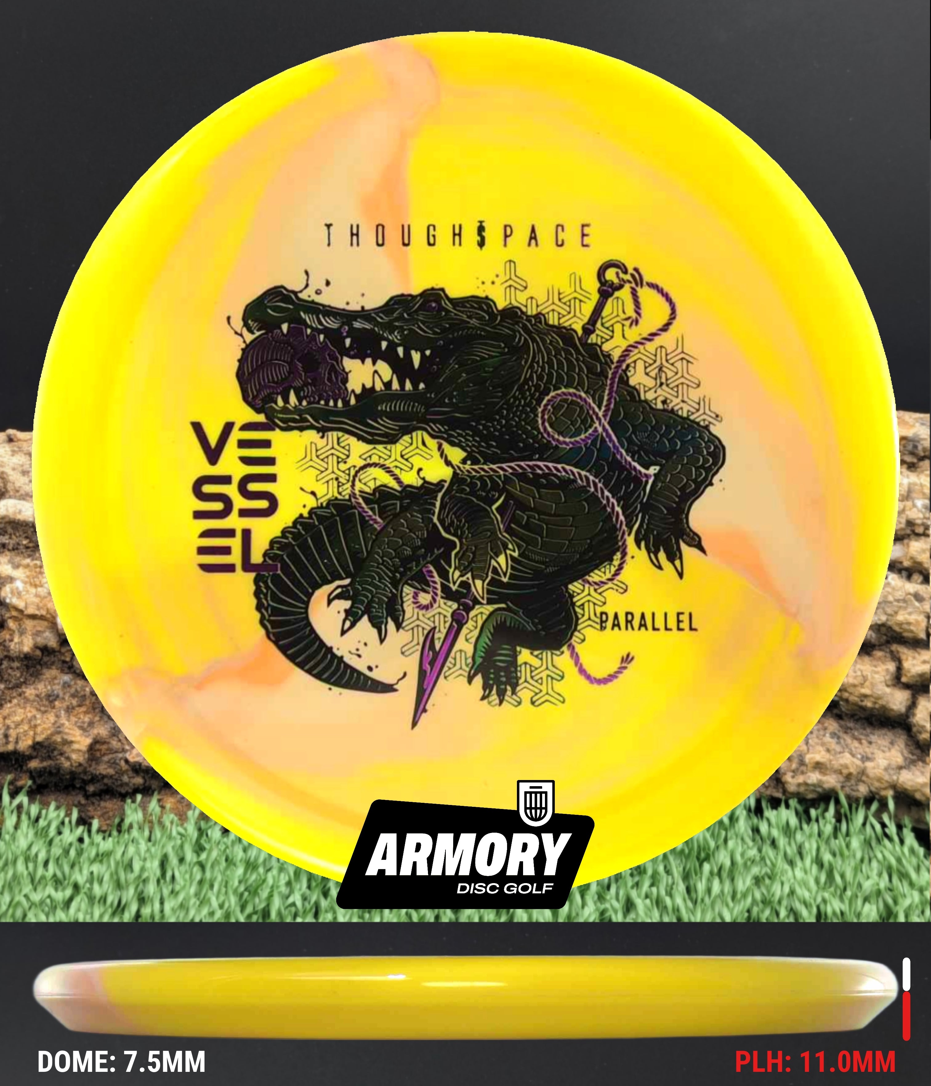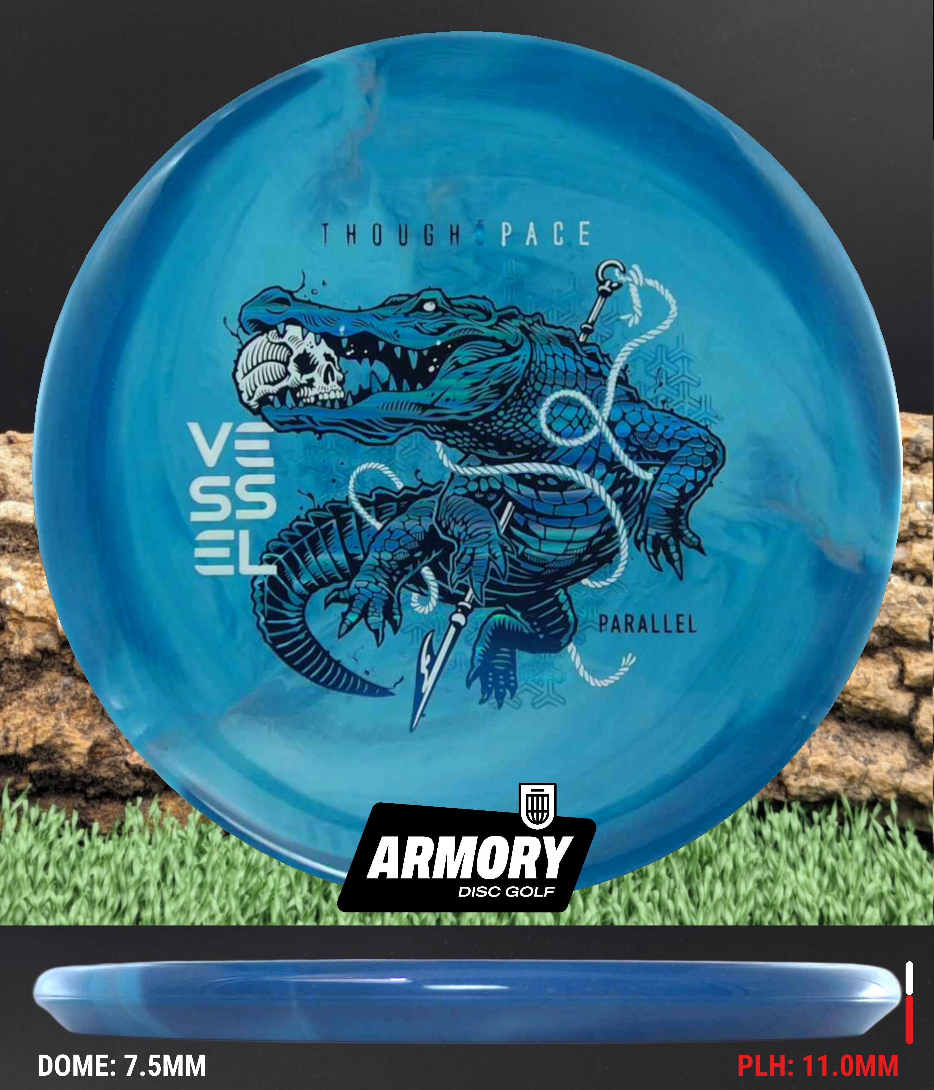 Now available in Parallel Plastic, the Vessel offers the same trusted performance with an upgraded tactile feel and stunning visual appeal. The swirled premium blend provides enhanced grip without sacrificing durability, making this one of the most dependable overstable approach discs on the market.