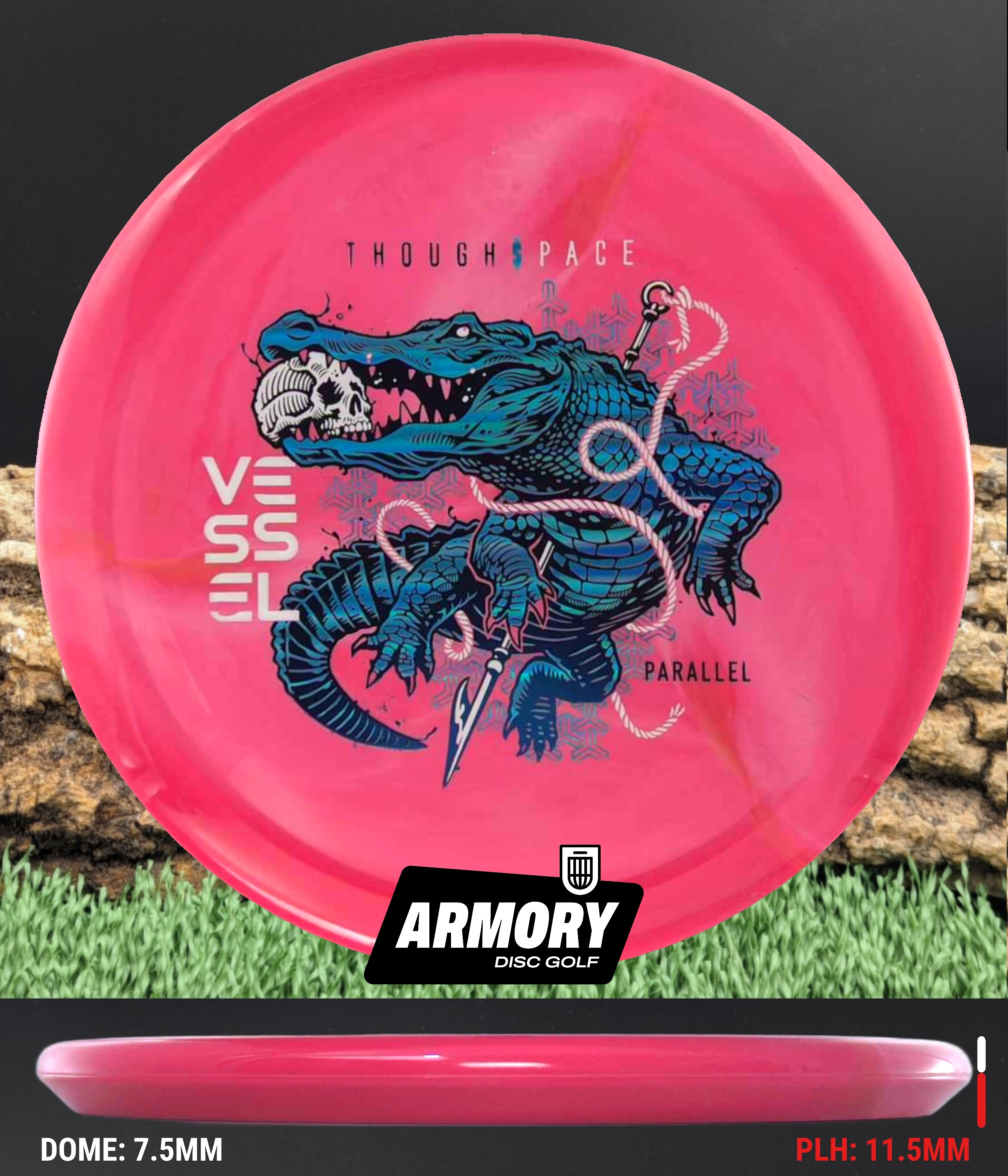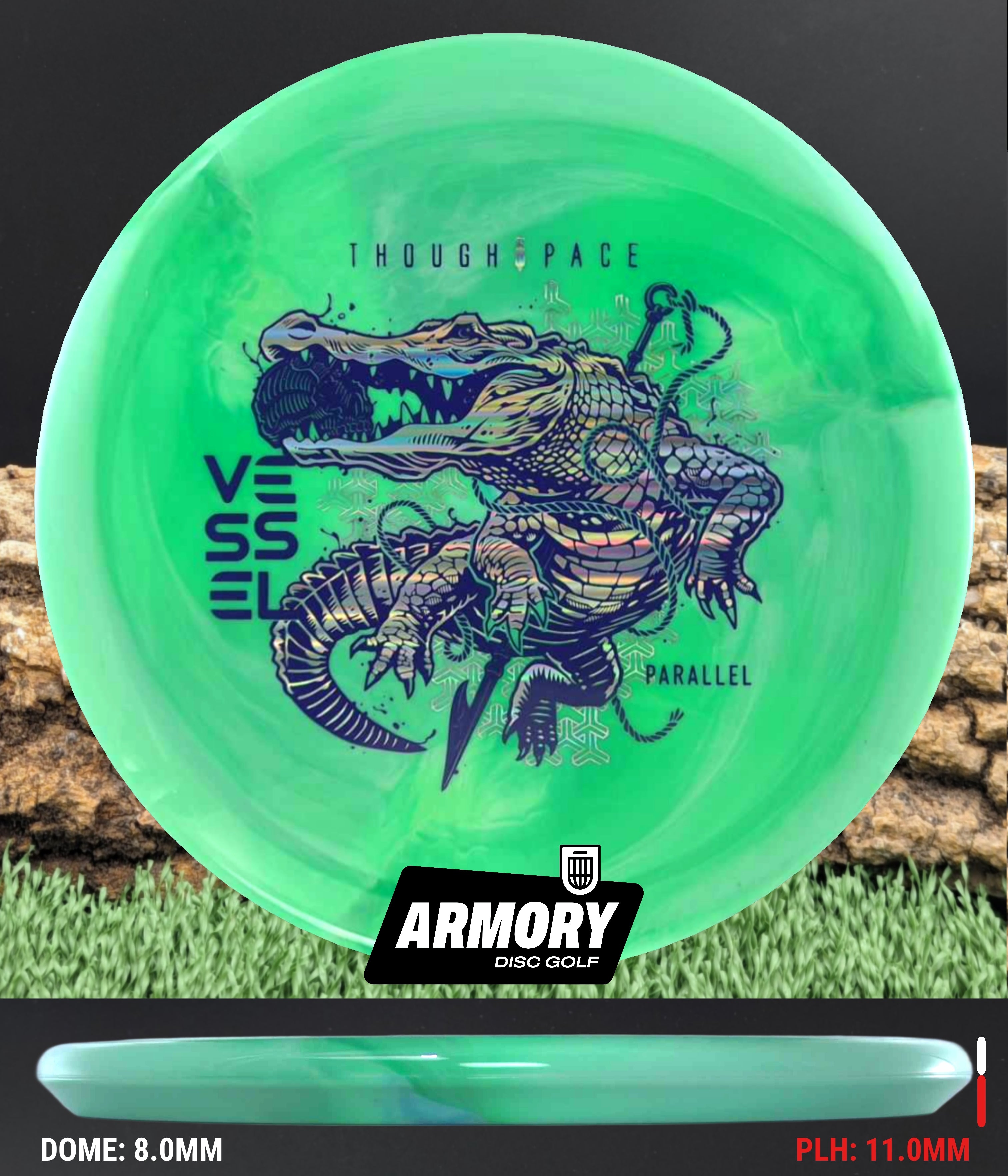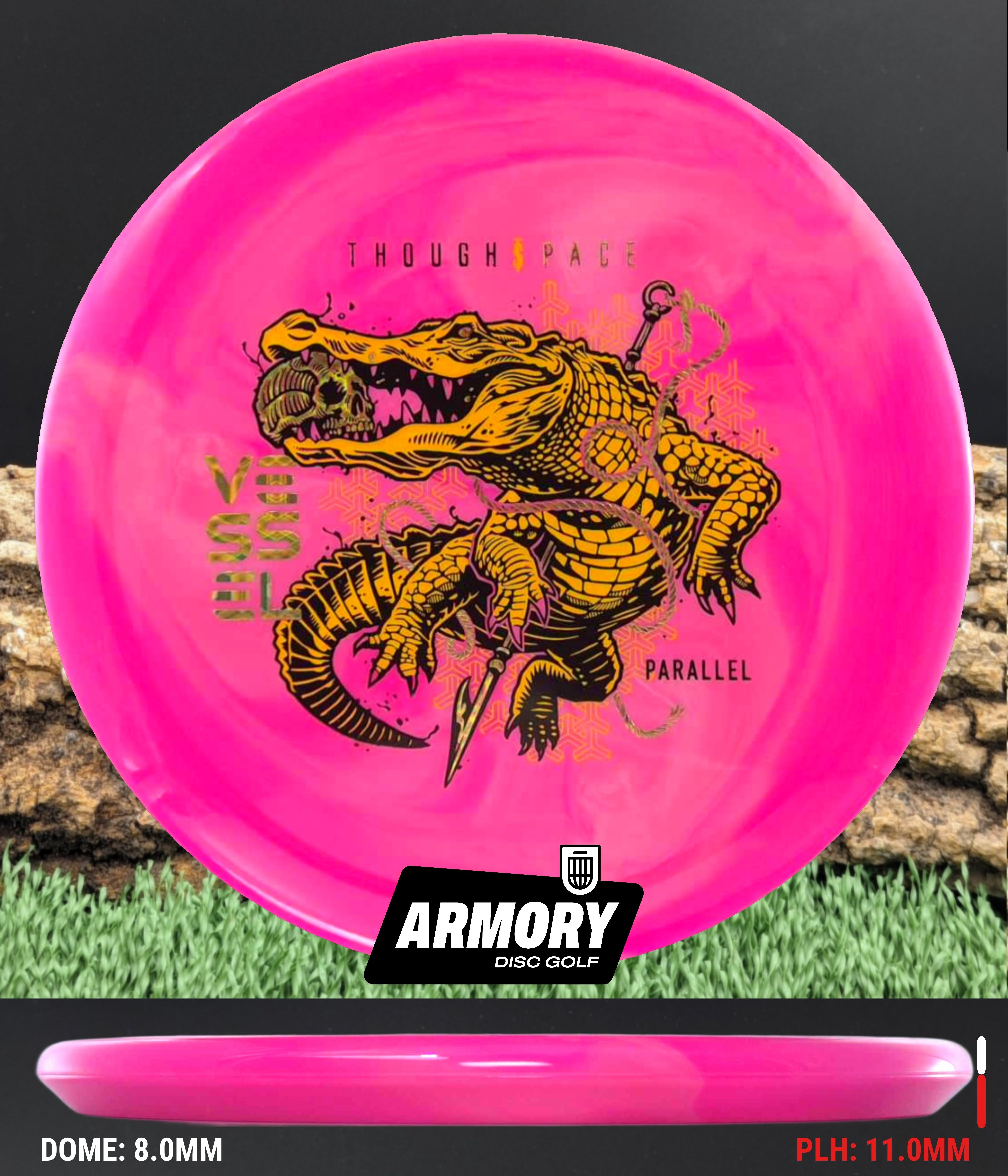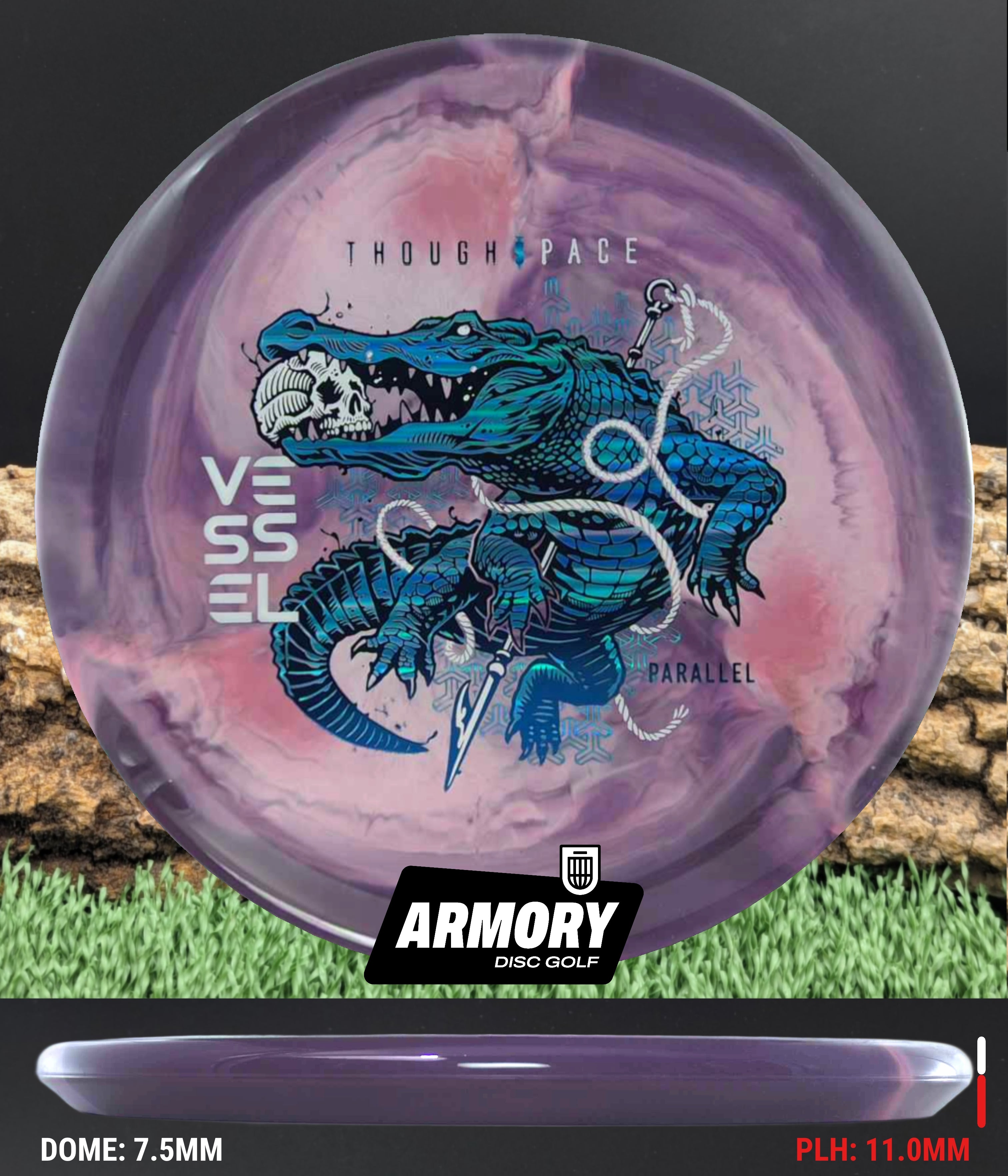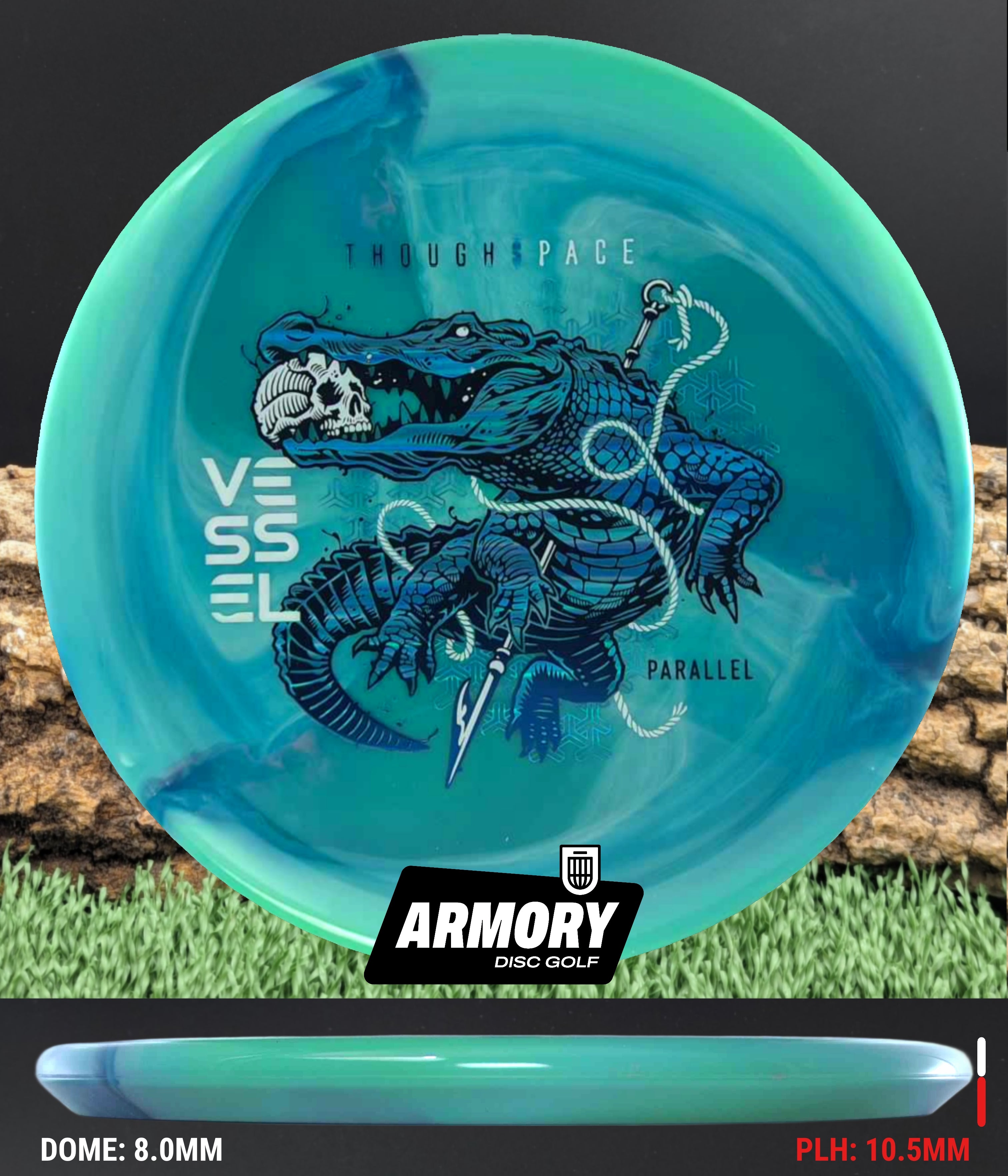 Now available in Parallel Plastic, the Vessel offers the same trusted performance with an upgraded tactile feel and stunning visual appeal. The swirled premium blend provides enhanced grip without sacrificing durability, making this one of the most dependable overstable approach discs on the market.