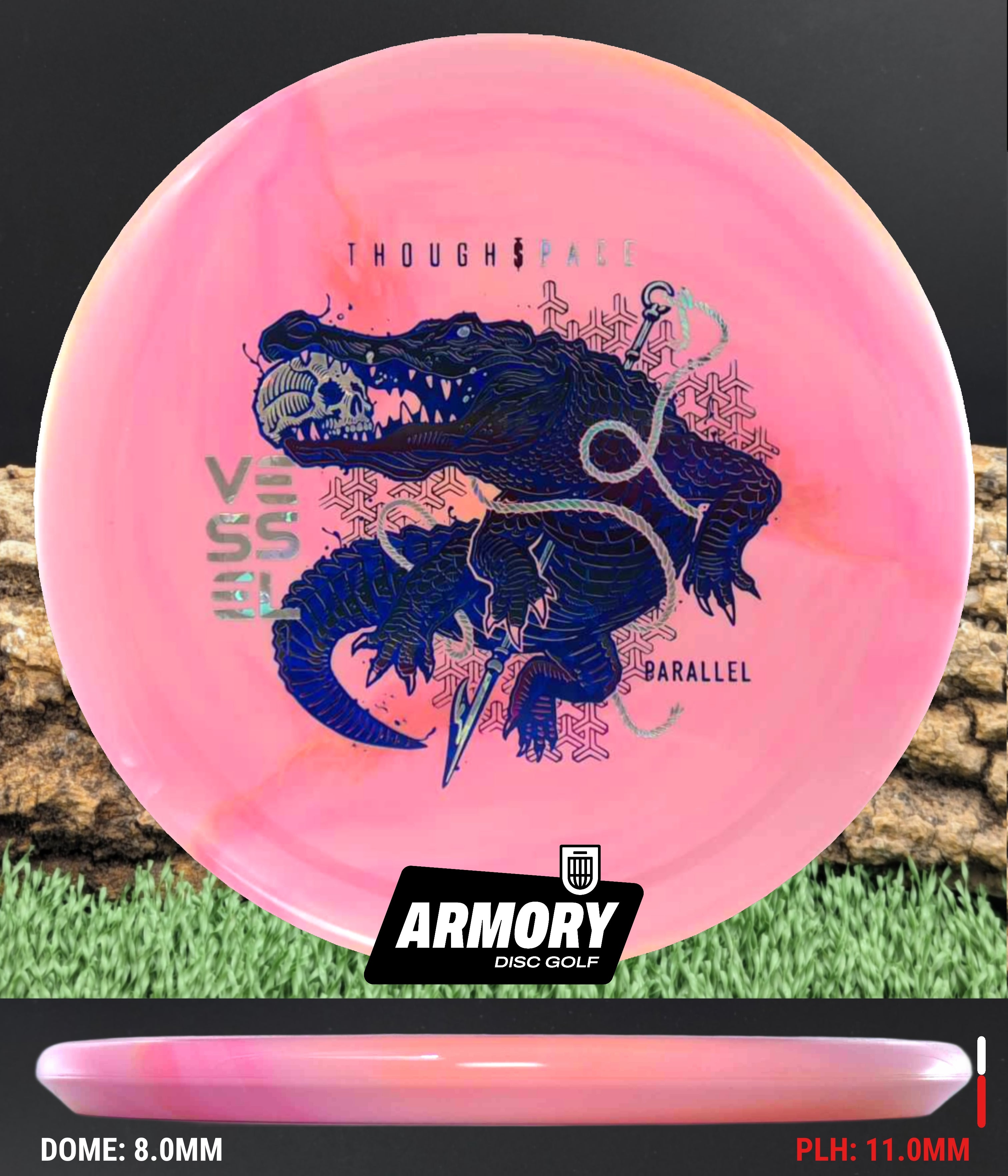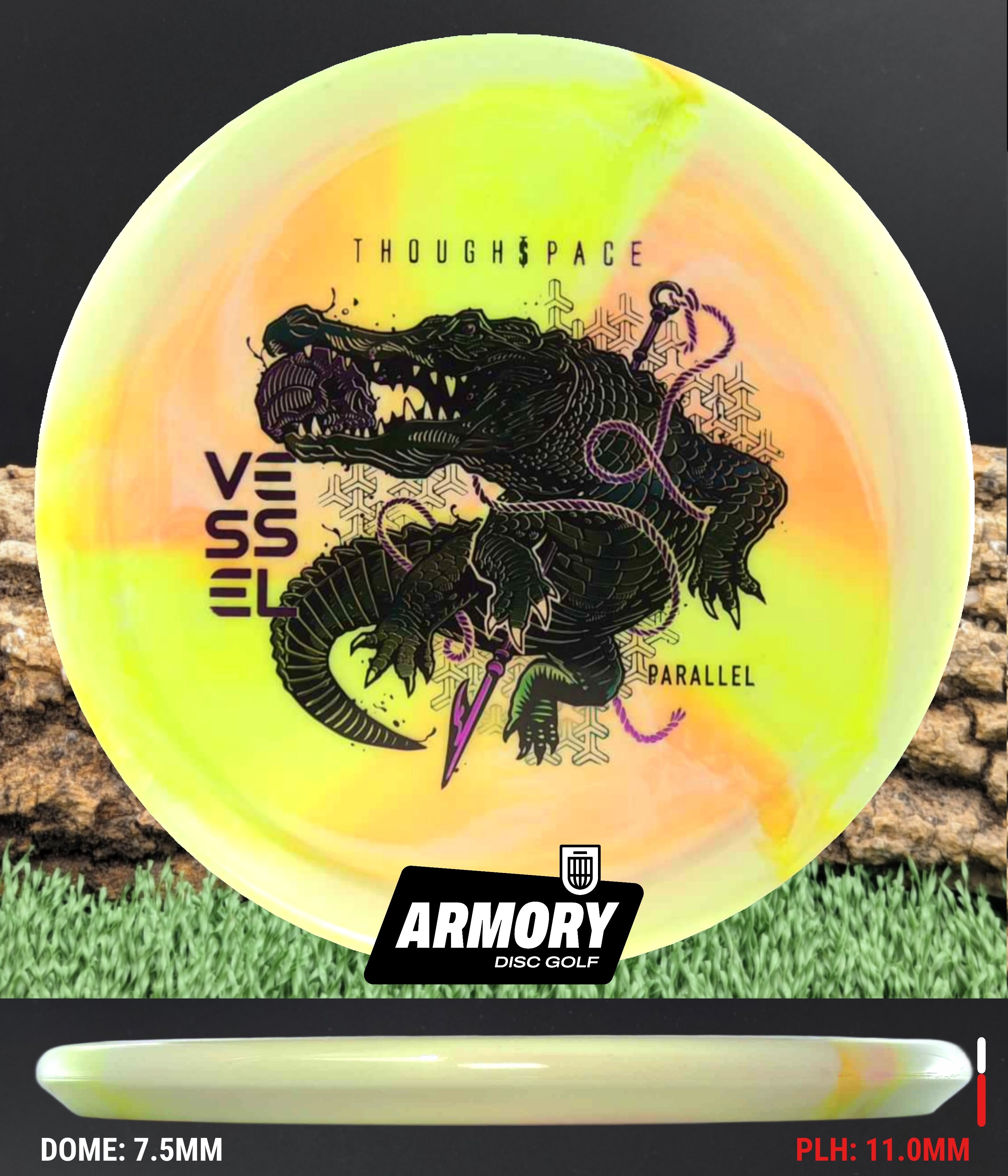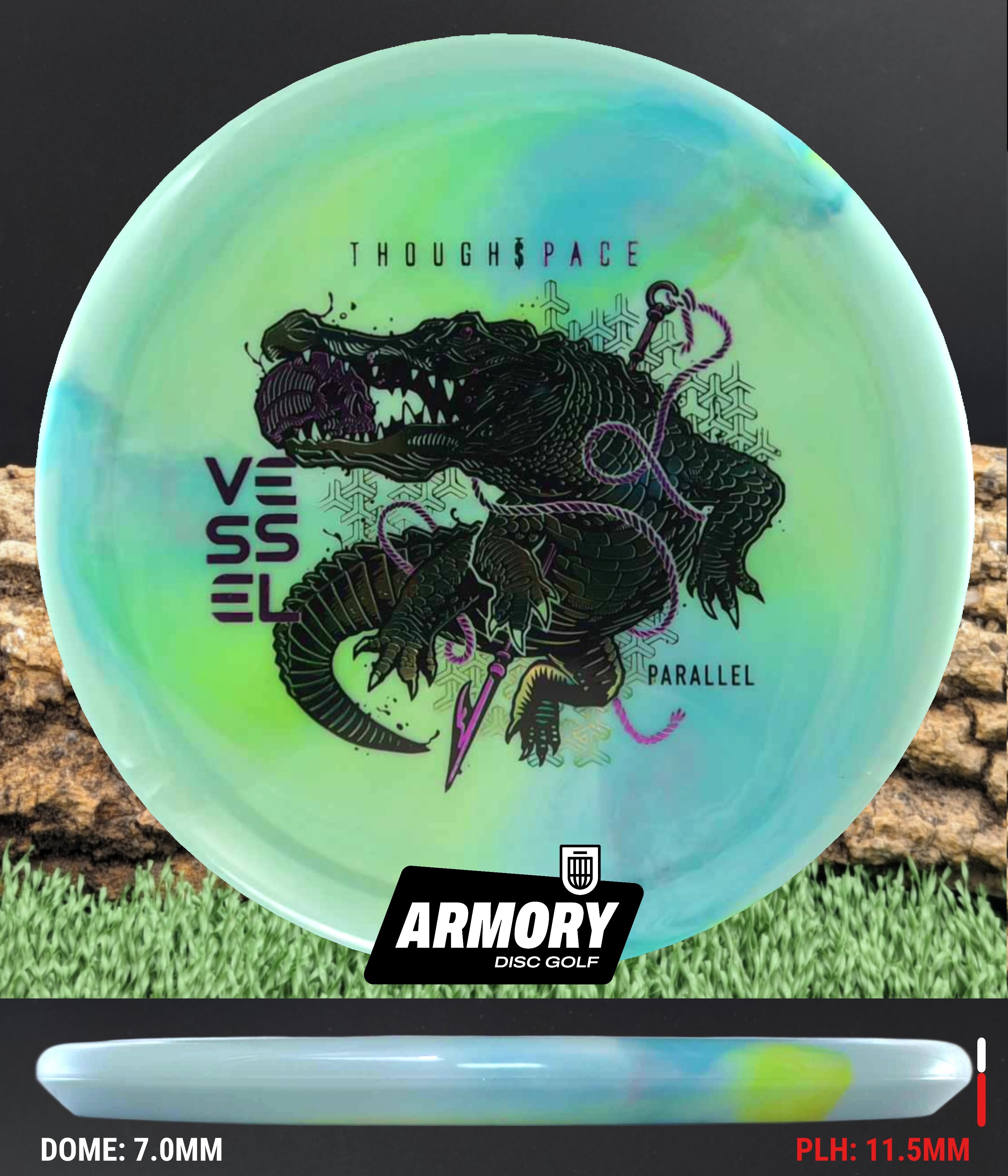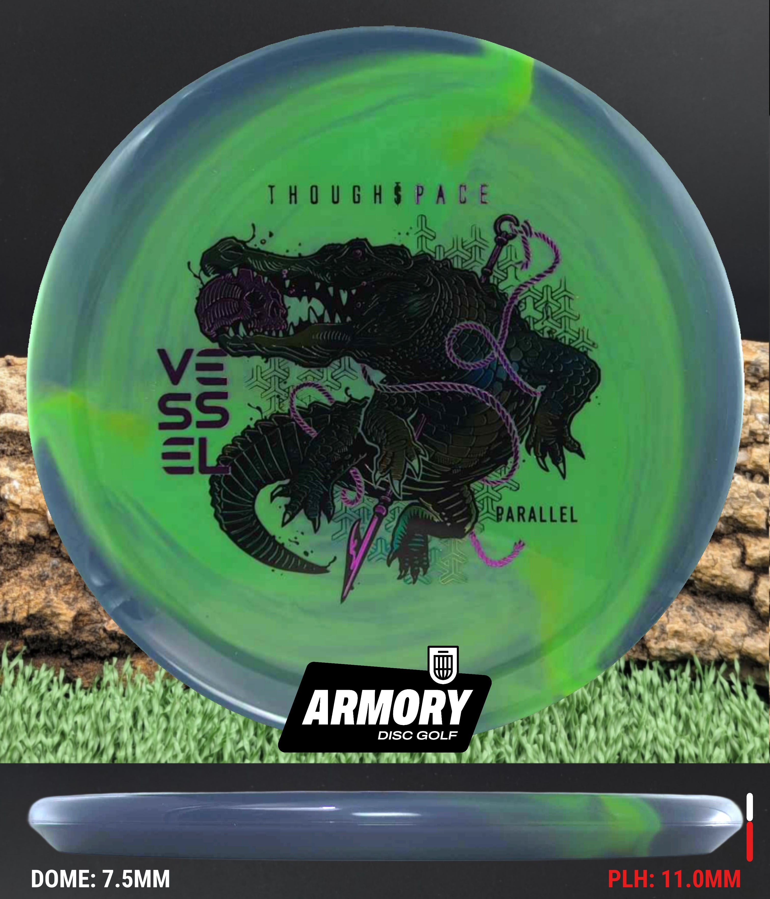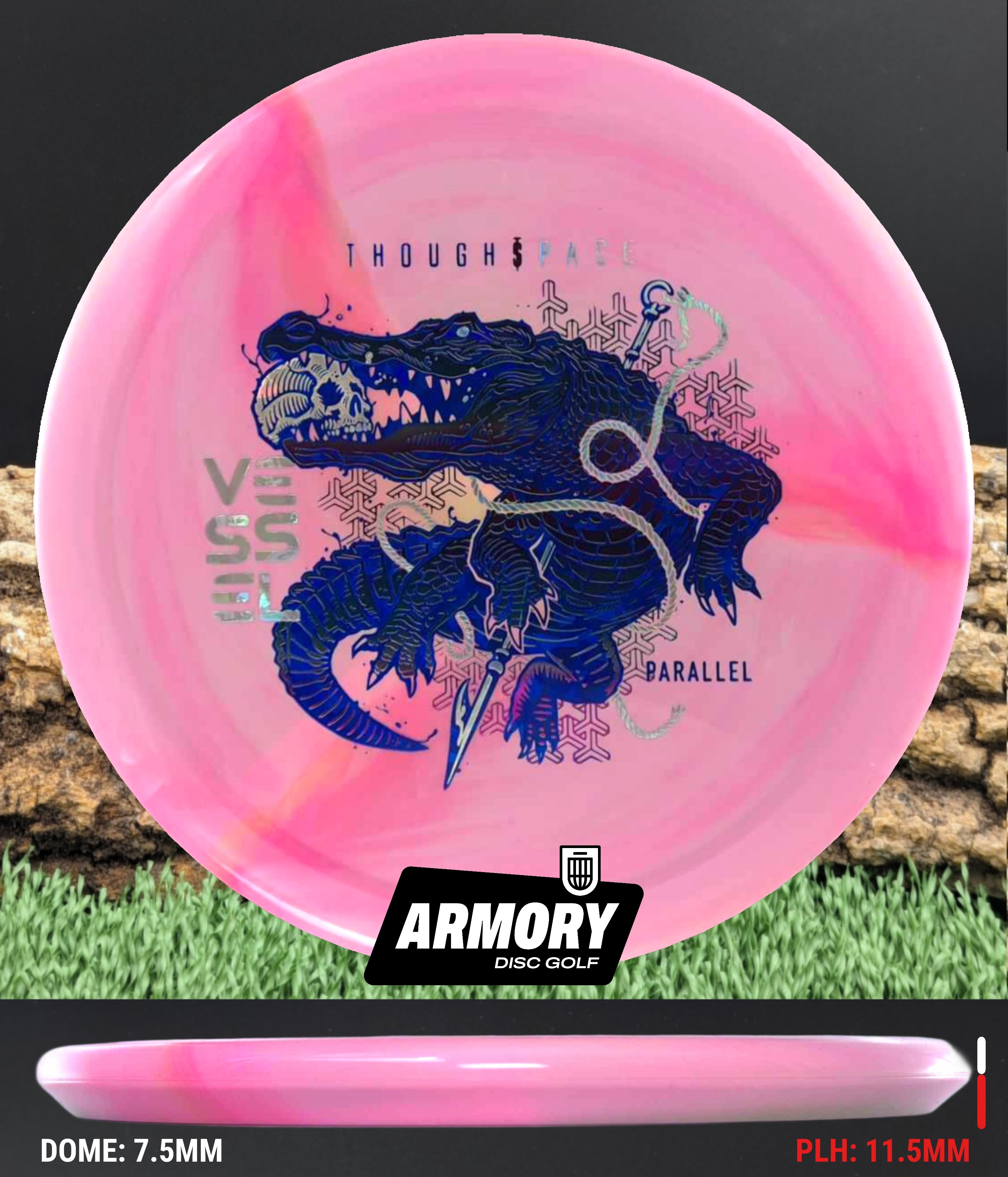Now available in Parallel Plastic, the Vessel offers the same trusted performance with an upgraded tactile feel and stunning visual appeal. The swirled premium blend provides enhanced grip without sacrificing durability, making this one of the most dependable overstable approach discs on the market.