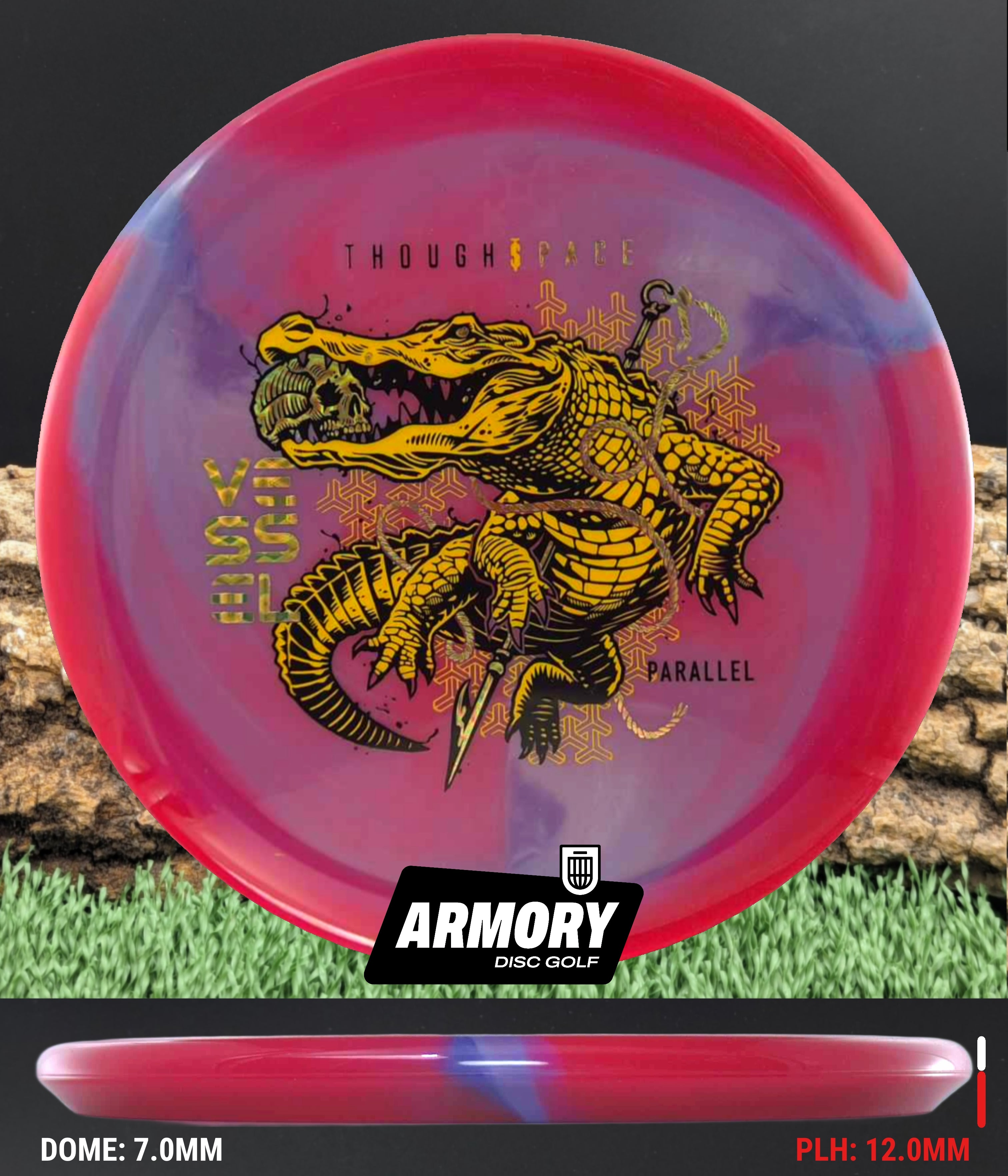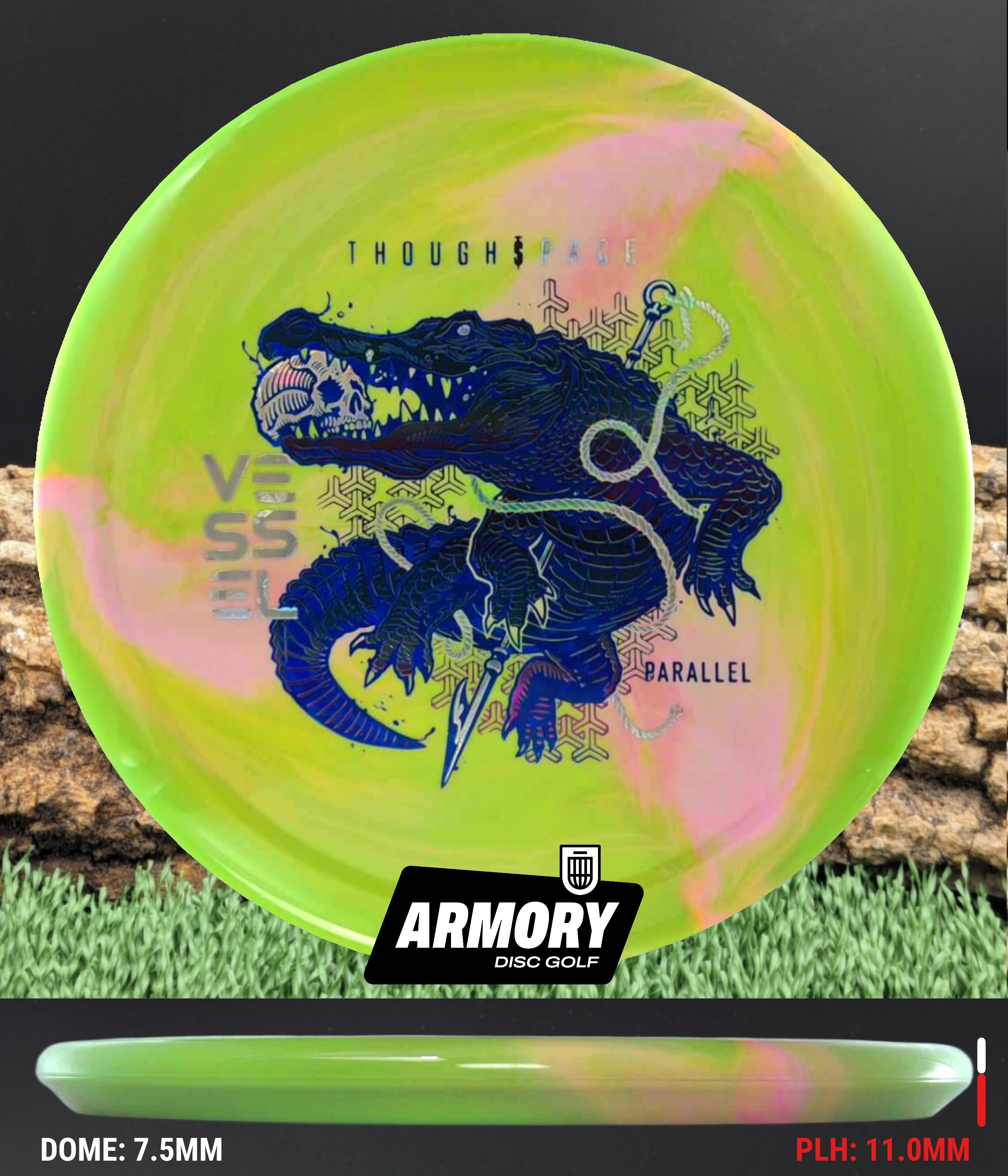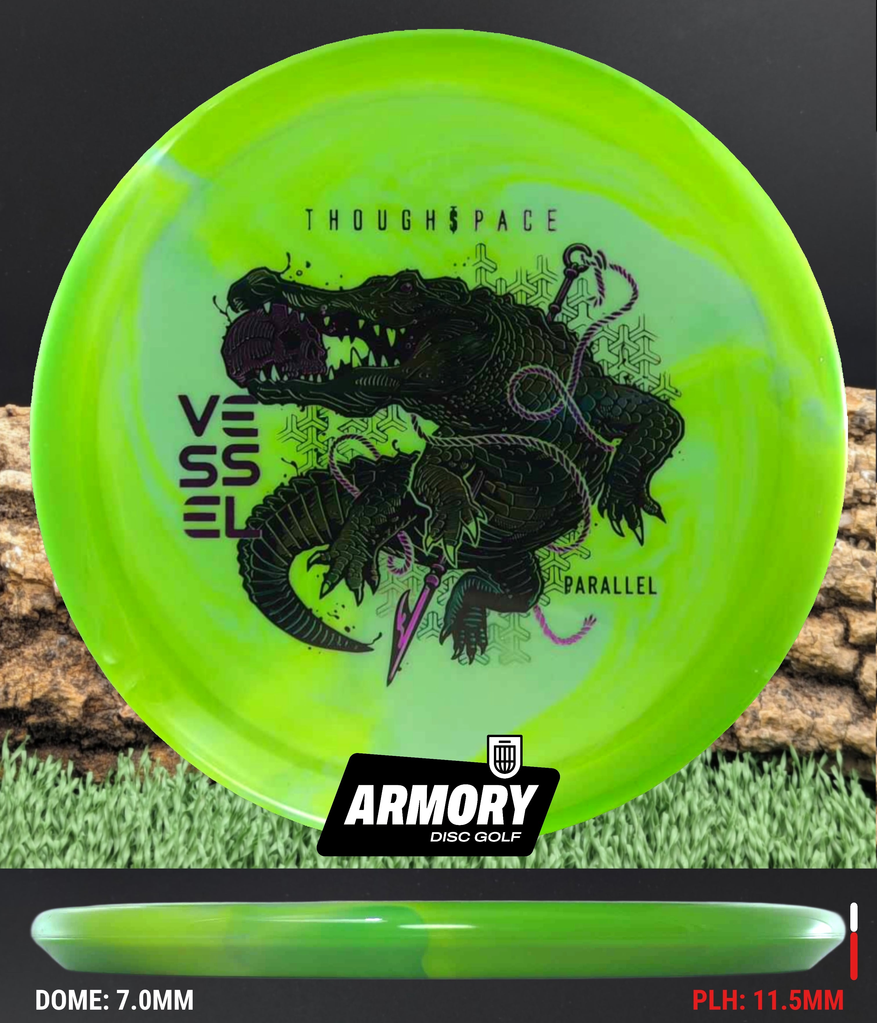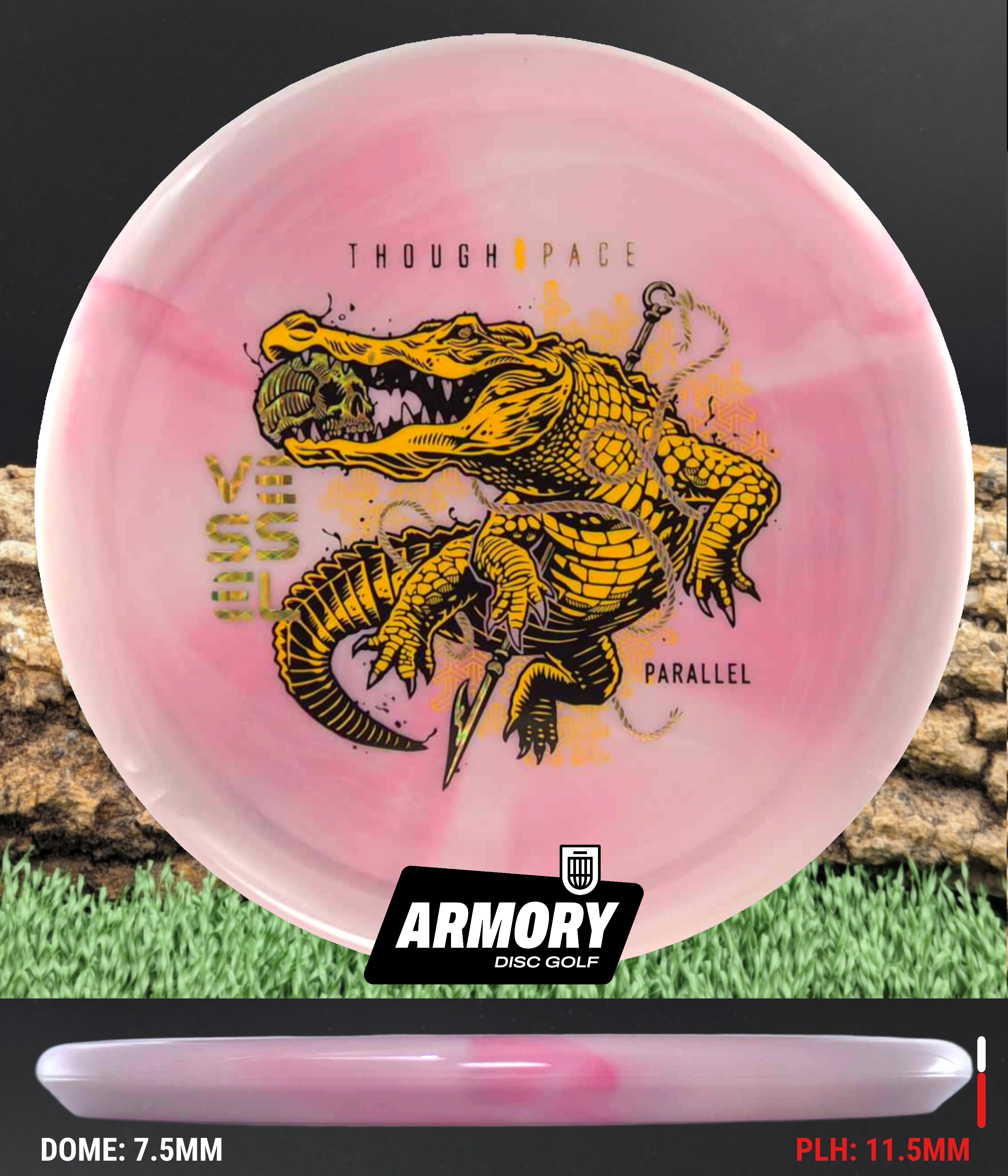 Now available in Parallel Plastic, the Vessel offers the same trusted performance with an upgraded tactile feel and stunning visual appeal. The swirled premium blend provides enhanced grip without sacrificing durability, making this one of the most dependable overstable approach discs on the market.