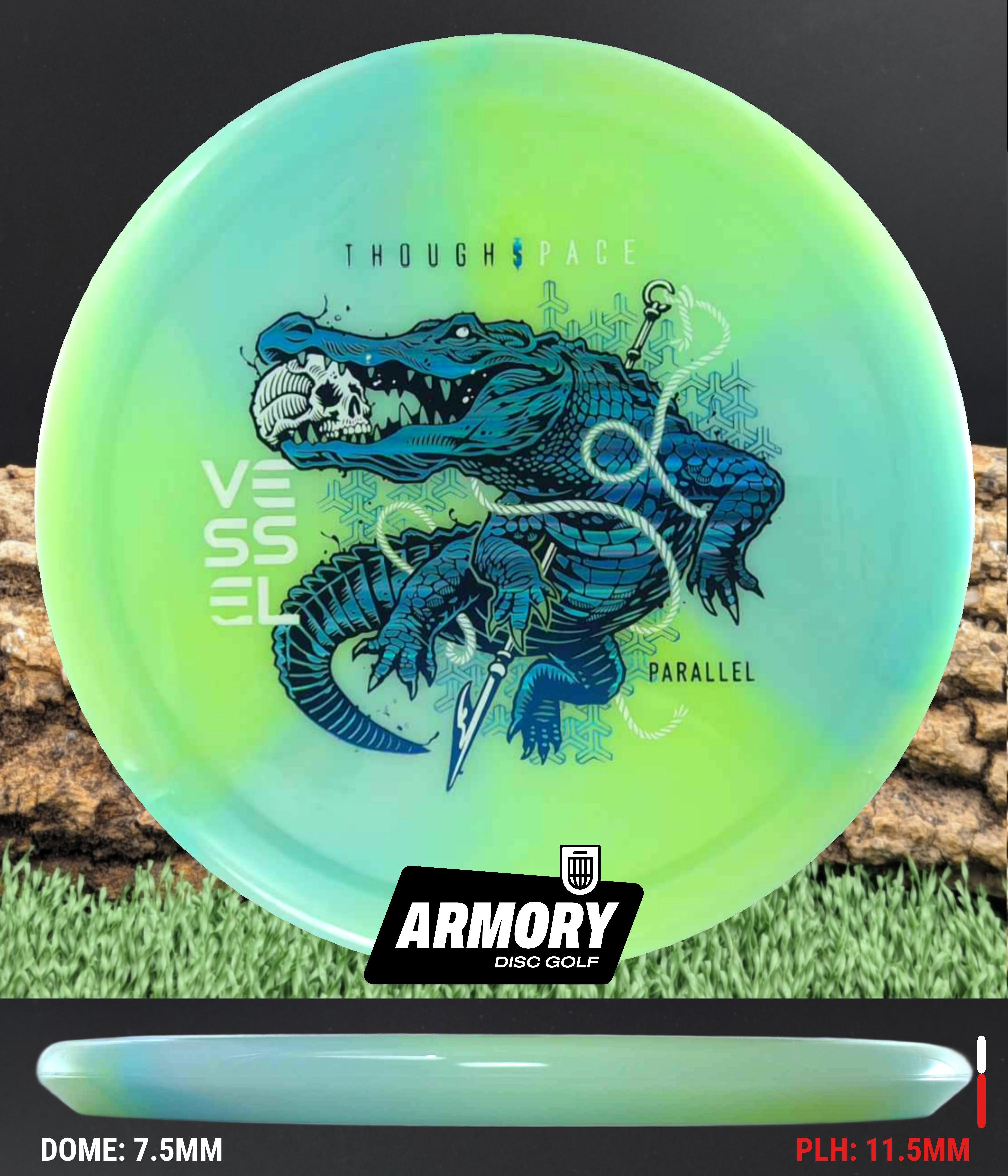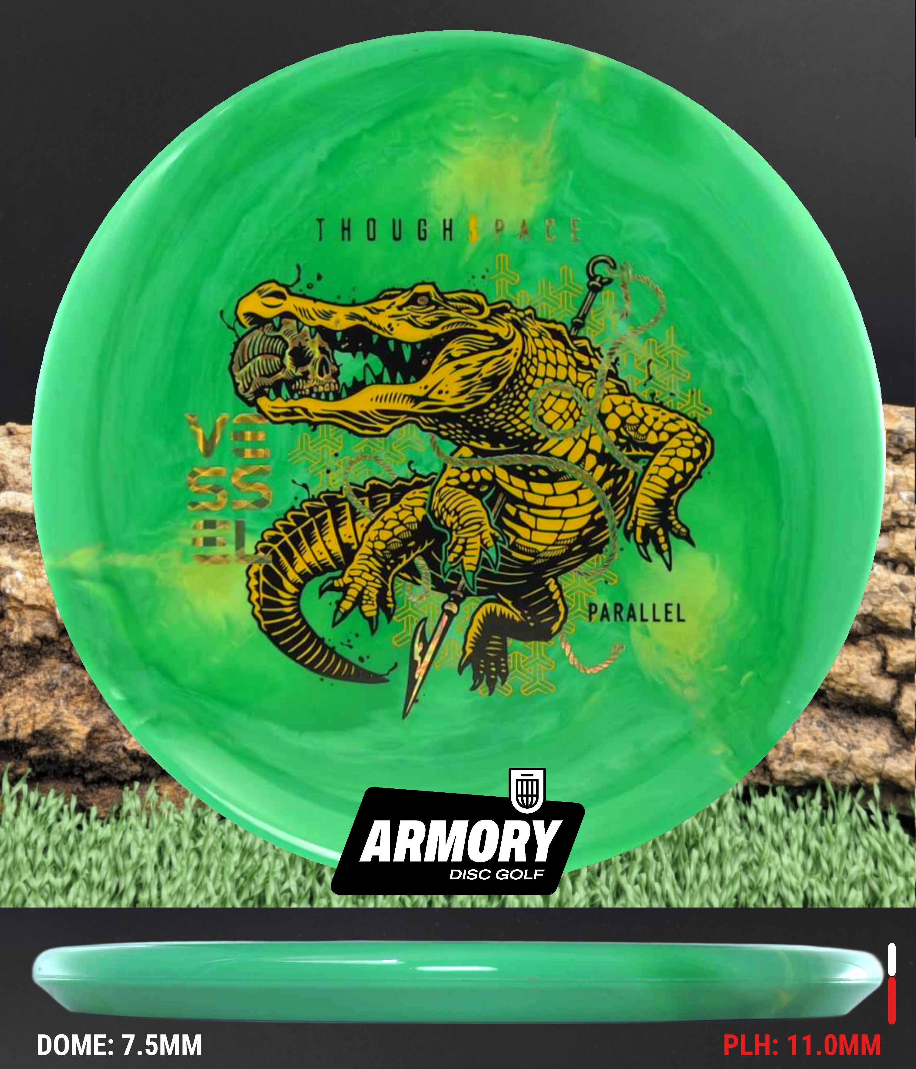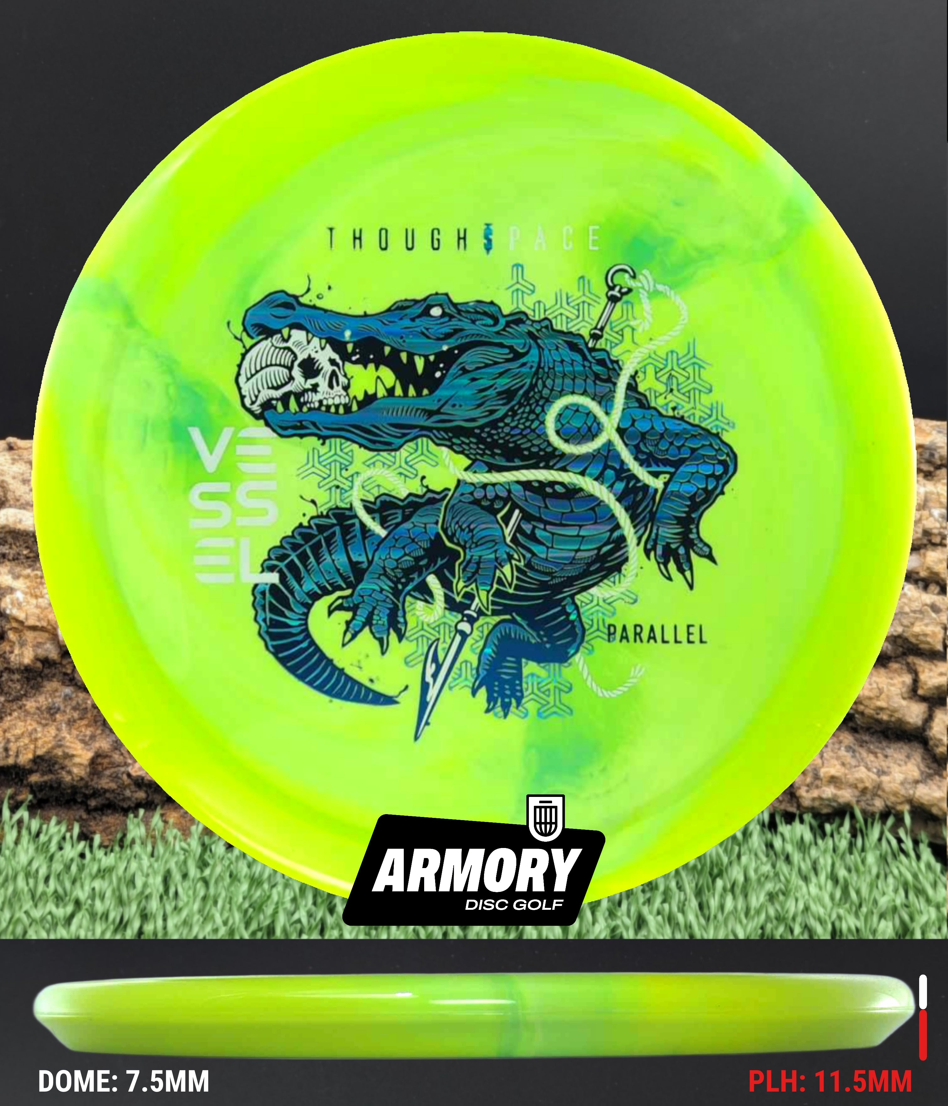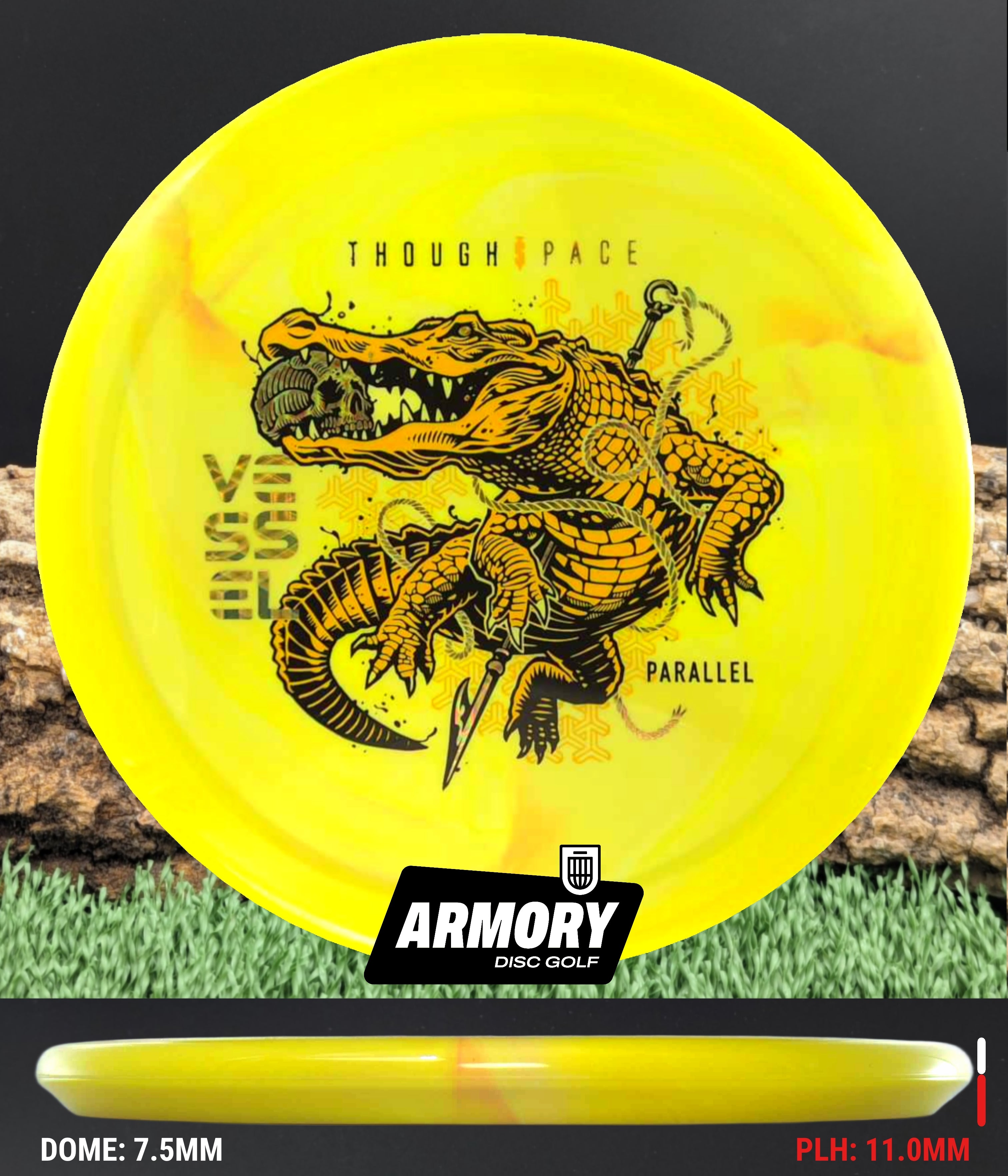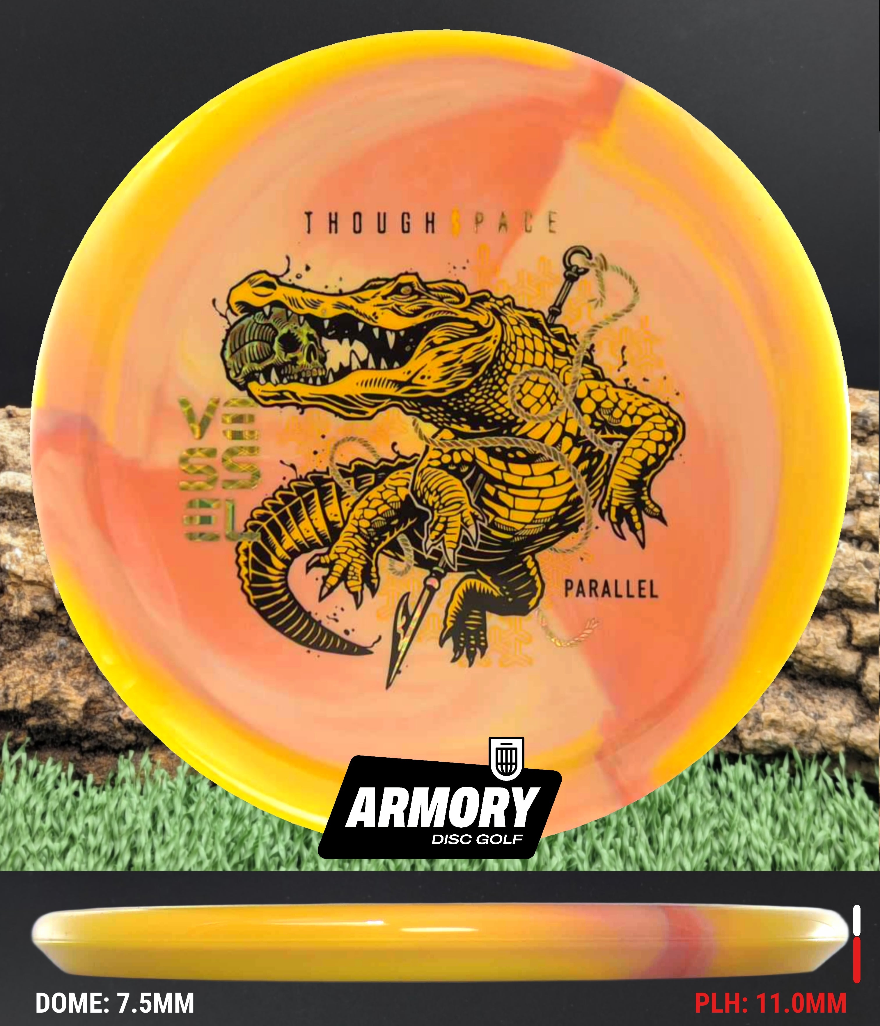 Now available in Parallel Plastic, the Vessel offers the same trusted performance with an upgraded tactile feel and stunning visual appeal. The swirled premium blend provides enhanced grip without sacrificing durability, making this one of the most dependable overstable approach discs on the market.