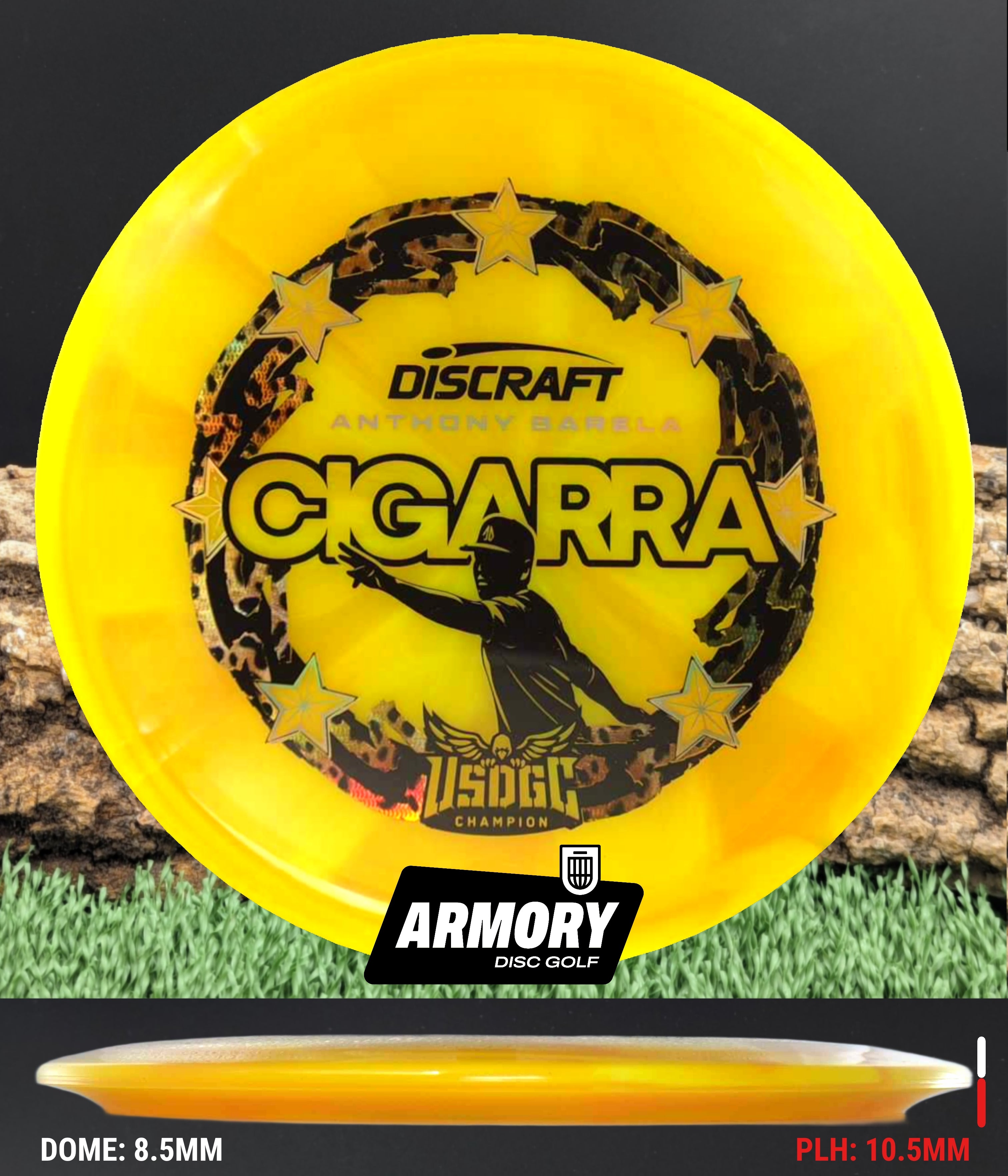 Part of the Anthony Barela USDGC Commemorative Collection, the Z Swirl Cigarra (Triple Stamp) honors Anthony’s first Major Championship victory at the 2025 USDGC.